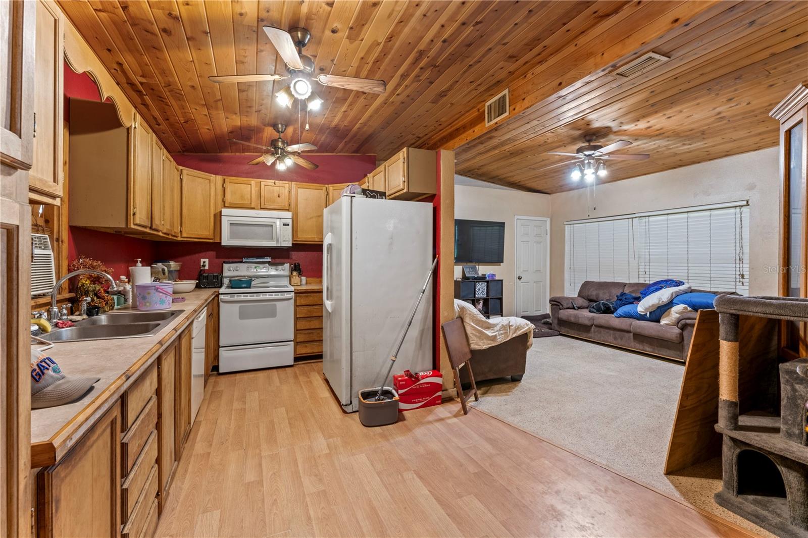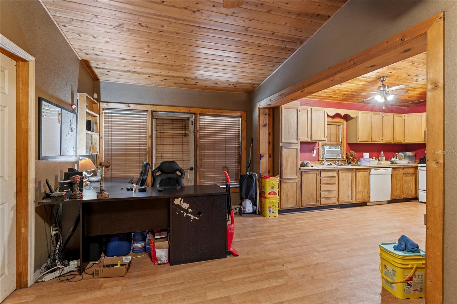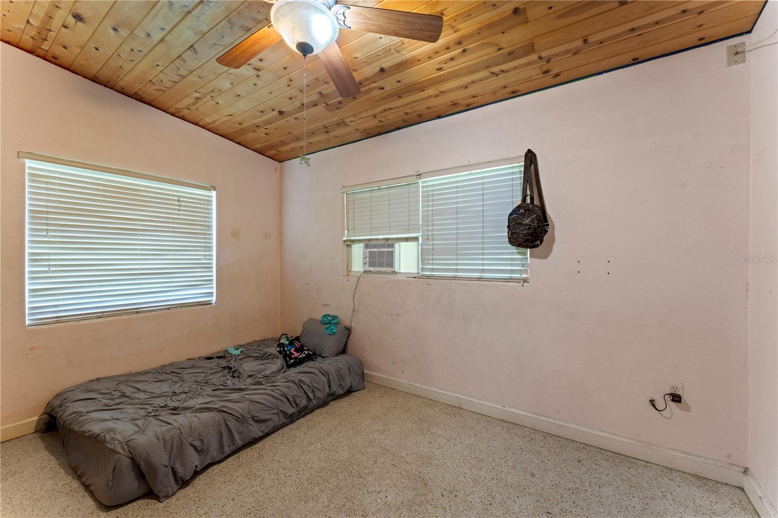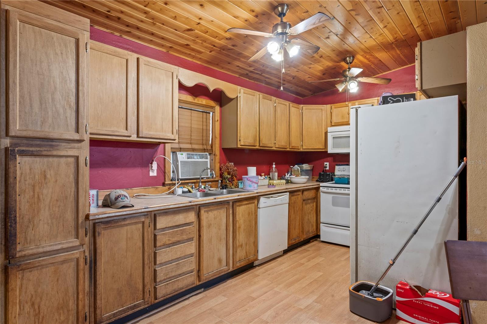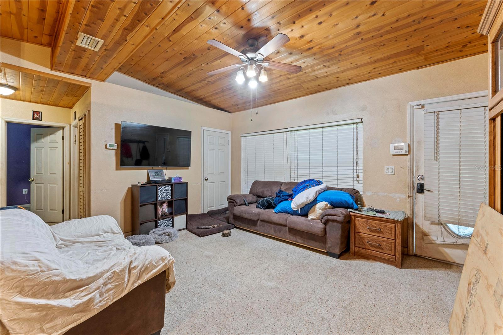 Imagine the possibilities with this 3 bedroom, 1.5 bath block home. As you enter you will notice the beautiful Knotty Pine tongue & groove ceilings that carry you though out. The spacious floor plan offers a split bedrooms, living room, dining room, & large kitchen. The master bedroom has two walk-in closets, laundry room and 1/2 bath. All situated on just under a half of an acre in the Ridge Manor suburbs, where you are close to everything yet off the beaten path. No HOA or CDD.