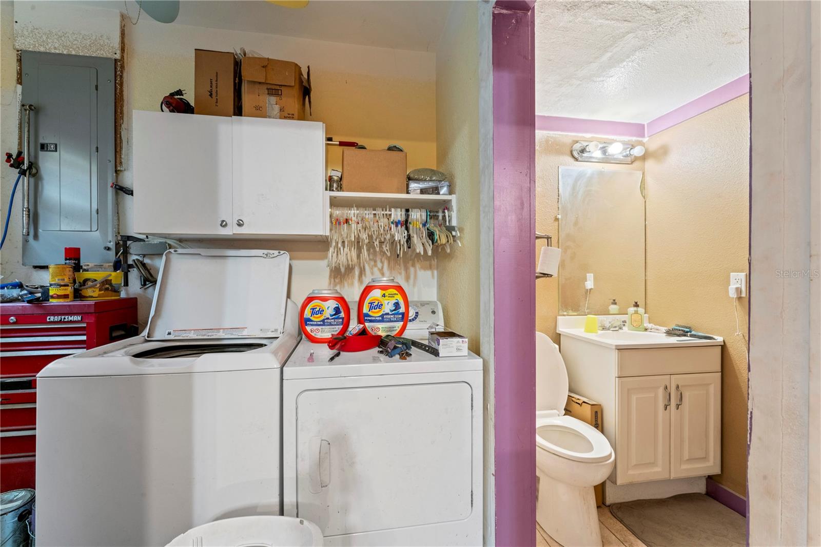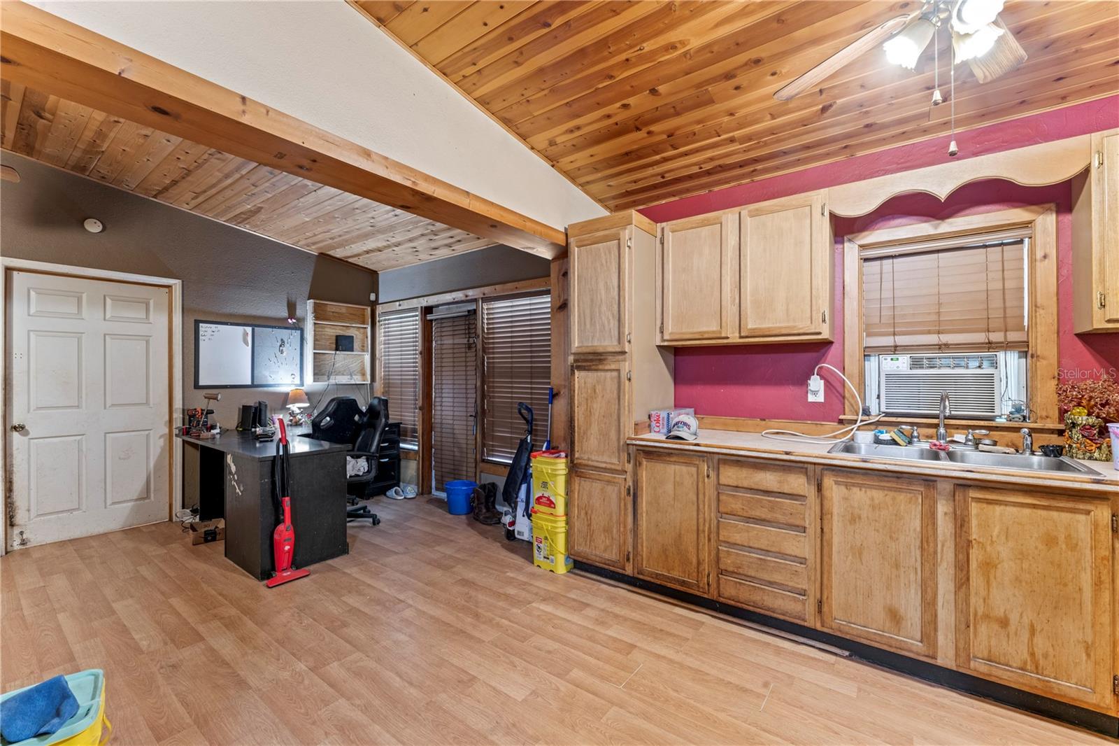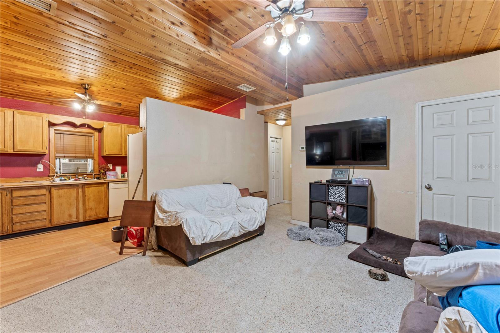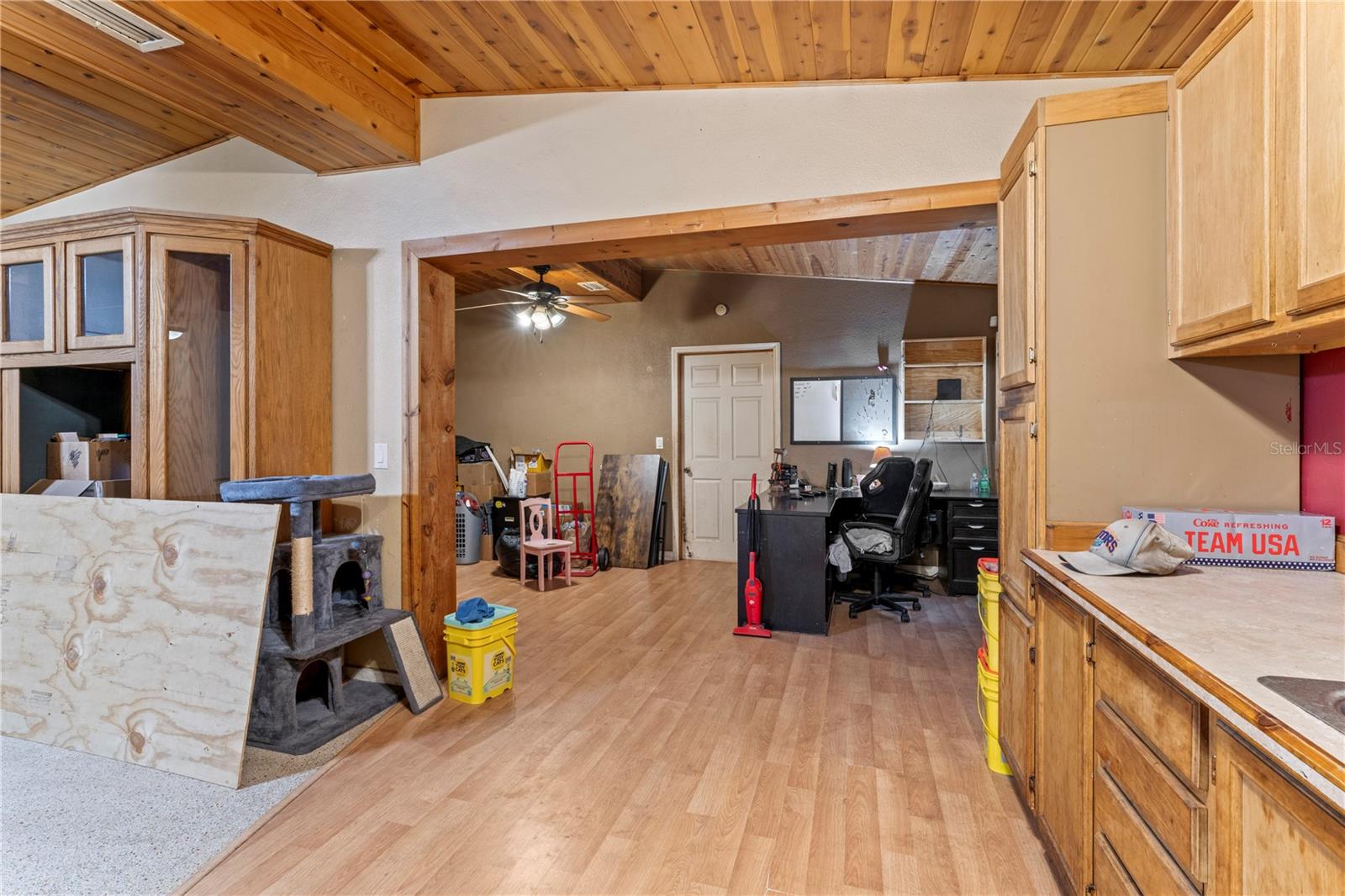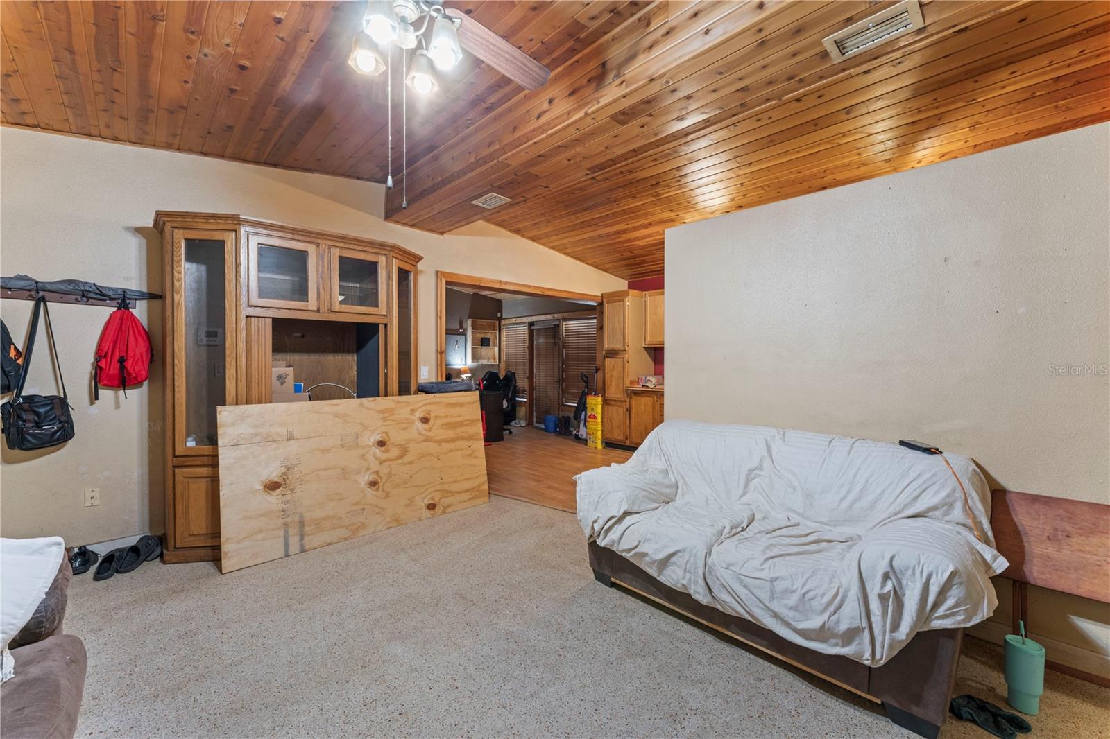 Imagine the possibilities with this 3 bedroom, 1.5 bath block home. As you enter you will notice the beautiful Knotty Pine tongue & groove ceilings that carry you though out. The spacious floor plan offers a split bedrooms, living room, dining room, & large kitchen. The master bedroom has two walk-in closets, laundry room and 1/2 bath. All situated on just under a half of an acre in the Ridge Manor suburbs, where you are close to everything yet off the beaten path. No HOA or CDD.