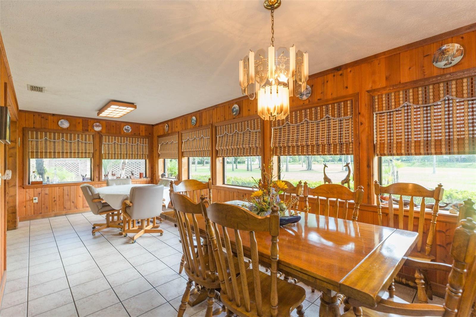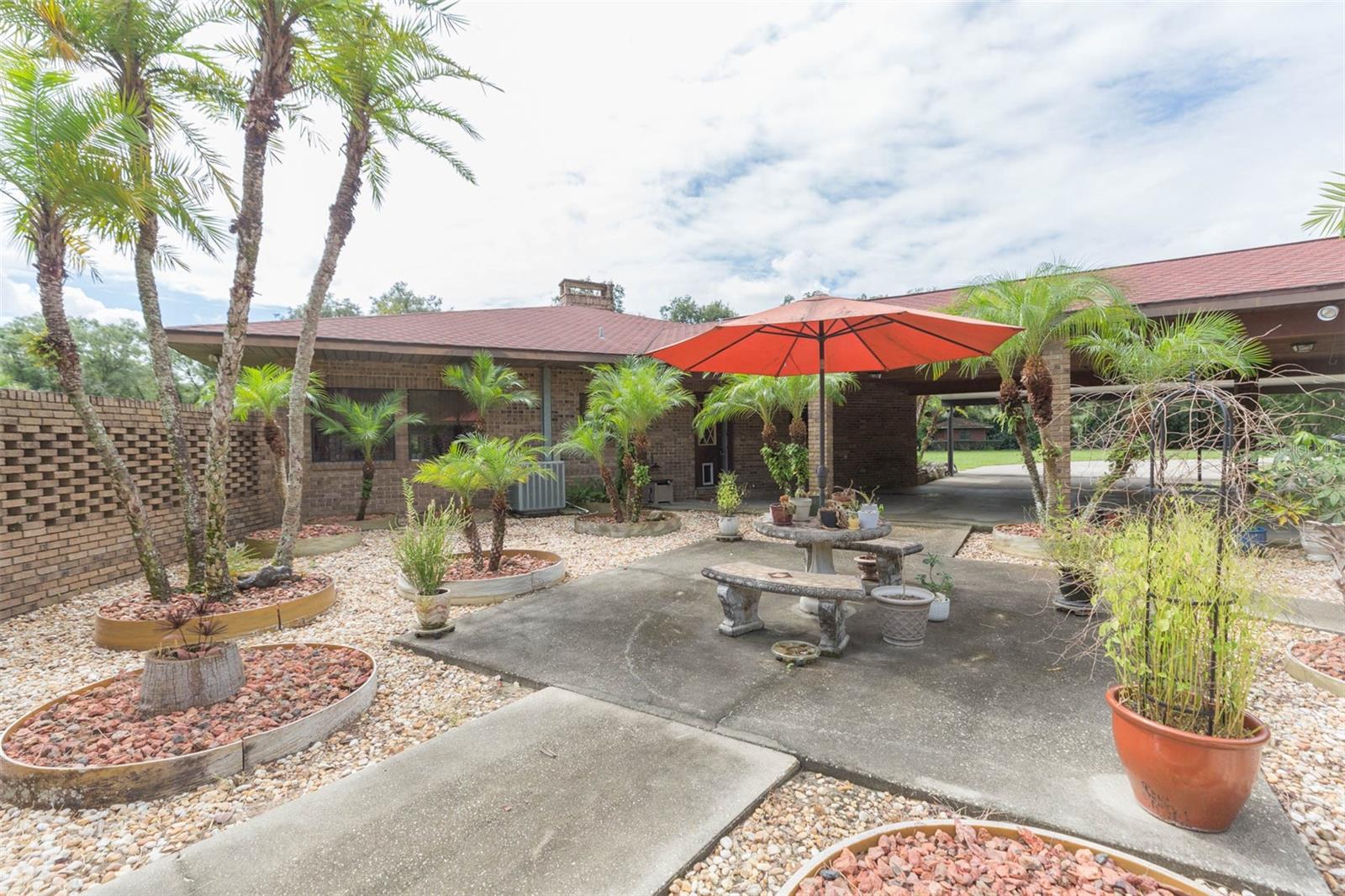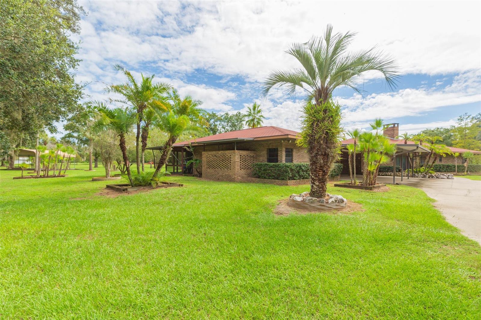 Once in a lifetime legacy property now being offered. Take advantage of this chance to own an 11+ ACRE urban oasis. Never before offered for sale, this unique property includes a private pond, gated access, privacy, workshop, and more. All conveniently located adjacent to the Dade City limits. Local schools and hospital are within 1.5 miles. The classic brick constructed home features a floor plan focused on the large primary bedroom and the spacious great room complete with wood burning fireplace. The 2nd bedroom is offered in an attached wing that would be perfect for an IN-LAW SUITE, hobby room, large home office, student suite, or anyone who needs freedom to come and go. All interior rooms are spacious and oversized with features including solid wood interior doors, "heart pine" wood accent walls and ceilings, custom brick wood burning fireplace, and vaulted ceilings. Enjoy cooking outs and entertaining guests in the huge screen lanai area or enjoy a glass of wine with friends in the private courtyard. Finally, easily feed your guests in the oversized dining area large enough for 2 table settings. Maybe even cook fish for your guests which were caught in your very own private fish pond or sit in the lanai and enjoy the wild ducks and water birds as they come and go each morning and evening. Sale also includes a kennel and workshop with storage for grounds equipment. Super conveniently located just 5 minutes from the active downtown Dade City district offering year round street festivals, craft breweries, parades, car shows, shopping, restaurants, and a new kids splash park with playground.