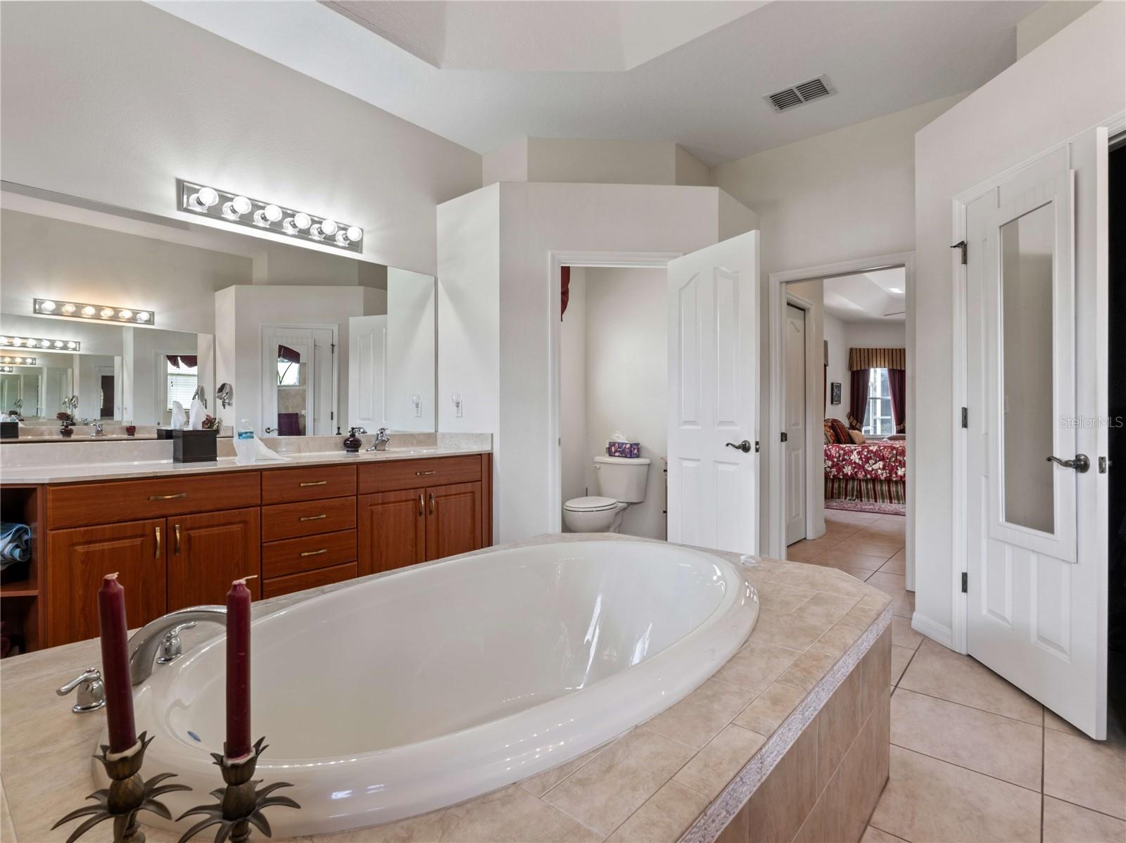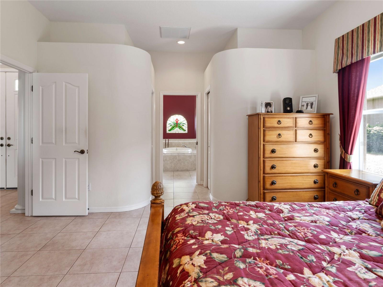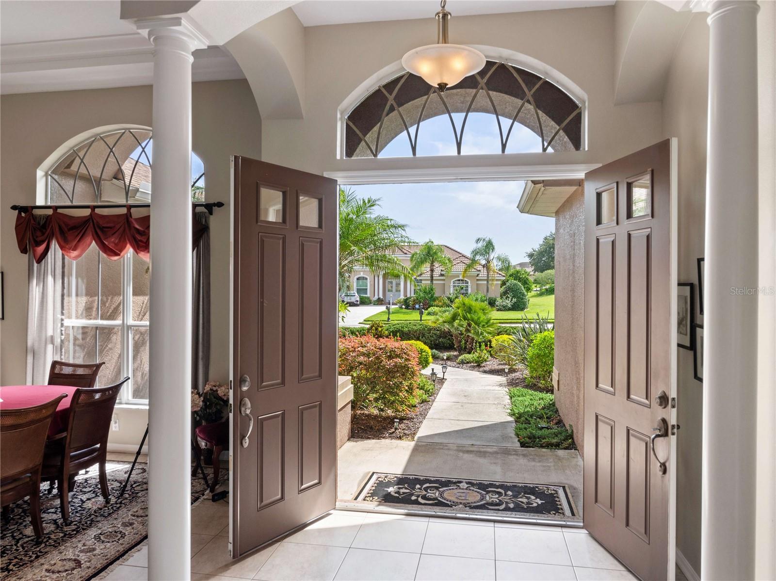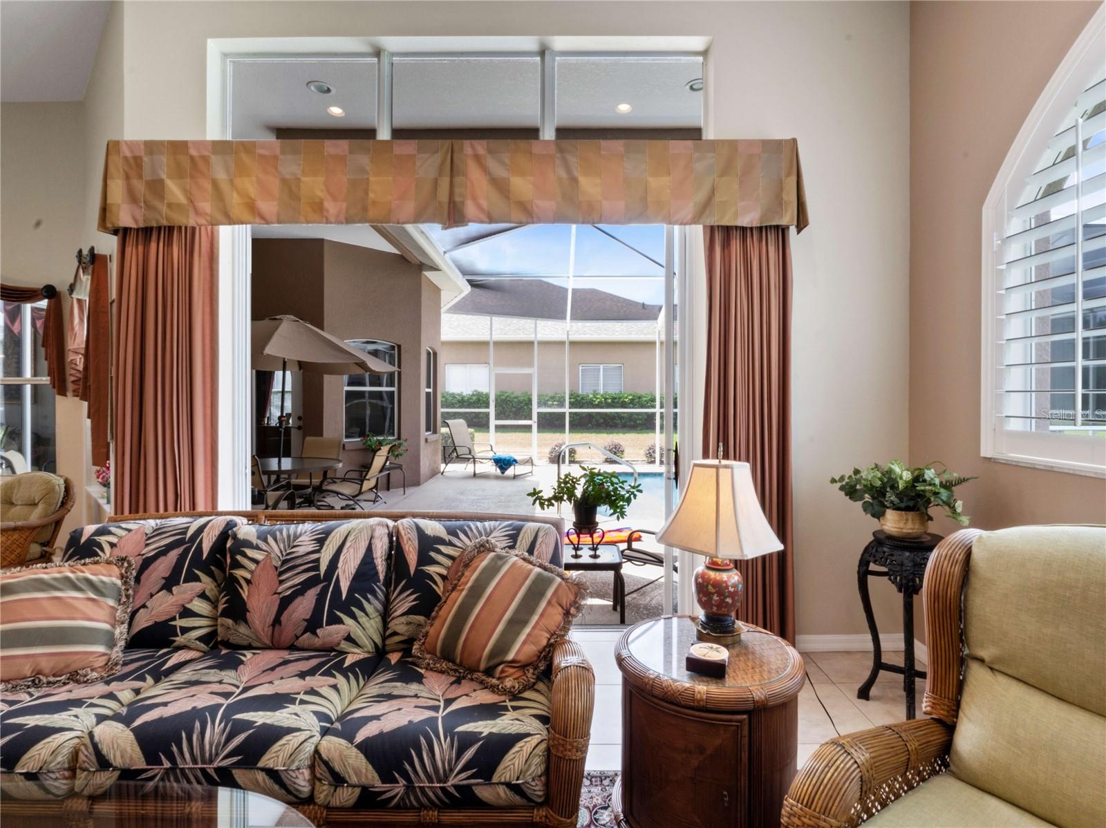 SPECTACULAR SUNSETS from this Exquisite, one-owner, CUSTOM built Lexington home offers magnificent views of the 15th hole on the North Course at Lake Jovita Golf & Country Club! Situated on a pristine .36 acre lot with a pond view, in the rolling hills of East Pasco, the property is ideally located between the new 15-acre Mirada Lagoon and historic Dade City. Landscaped entry and double doors welcome you into this grand home, with high ceilings, where ceramic tile floors lead you into the formal living space. Triple sliding glass doors pocket and open up to a SOLAR heated pool and covered pool deck, offering a perfect area for entertaining while enjoying the lush golf course views. In the formal area, just off the entryway, the STUNNING dining room is beautifully designed with custom window treatments, overlooking the front landscape, with easy access to the kitchen for effortless entertaining. The inviting kitchen boasts a high bar, 42” cherry wood cabinets with Crown, stainless steel appliances, a smooth top range, and gleaming granite countertops with breakfast nook overlooking pool and open to the great room. Architectural interest abounds with arches, plant shelves, tray ceiling with molding and rounded corners. The great room is a highlight of the home, featuring a massive arched window that frames picturesque views of the golf course. An archway off the great room two tastefully decorated secondary bedrooms, set up as home offices on either side of the guest bath with a the tub/shower combo. Additional archway at the rear of the great room leads to private guest quarters featuring the 4th bedroom and POOL BATH offering easy access outside to the screened lanai. 3 way split bedroom Plan where private owner's retreat is located to the left of the foyer at front of the home, featuring custom window treatments and bedding, along with a cozy sitting area that overlooks the pool. LUXURIOUS bath ensuite includes dual vanity areas, water closet with commode, two walk in closets and features a spacious soaking tub under stained glass window as focal point in front of the amazing walk-through shower, with bay window shape and transom windows above, offering natural light! Additional conveniences include an interior laundry room with a utility sink and storage shelves, located just off the garage. The 3 car garage itself boasts epoxy-finished floors, custom storage cabinets and a workstation. Well maintained home has a new 2024, 5 ton AC, 2018 architectural shingle ROOF, new water heaters in 2023, washer & dryer, gutters and downspouts. Located in a secure, guard-gated community with no CDD fees and low quarterly HOA fees, this Lake Jovita neighborhood offers a range of amenities, including walking trail with exercise stations, basketball and pickleball/tennis courts, a park with playground, picnic area, pavilion and two dog parks. Optional club memberships are available, providing access to social events, two 18-hole championship golf courses, har-tru clay tennis courts with tennis pro, fitness center, Jr. Olympic-sized pool and on-site dining facilities including a restaurant, pub and banquet facilities. This well-maintained, move-in-ready home offers an exceptional opportunity to experience the best of Lake Jovita living. CALL TODAY!