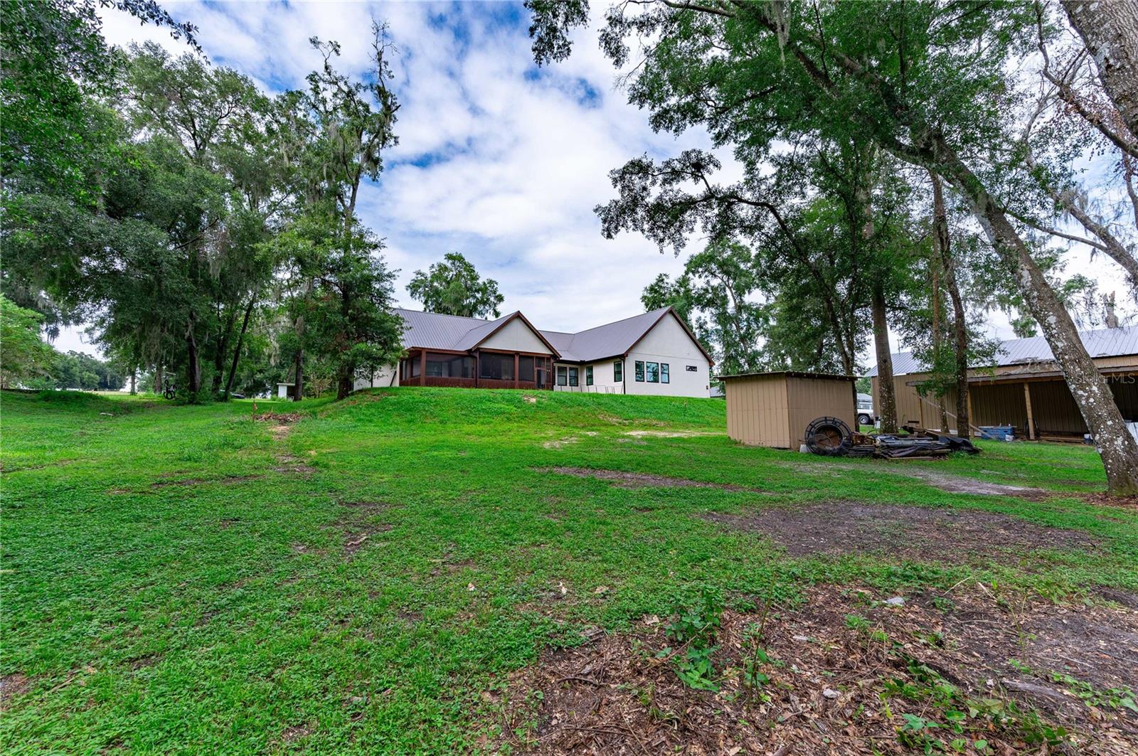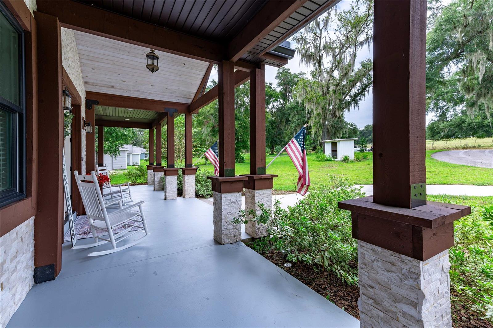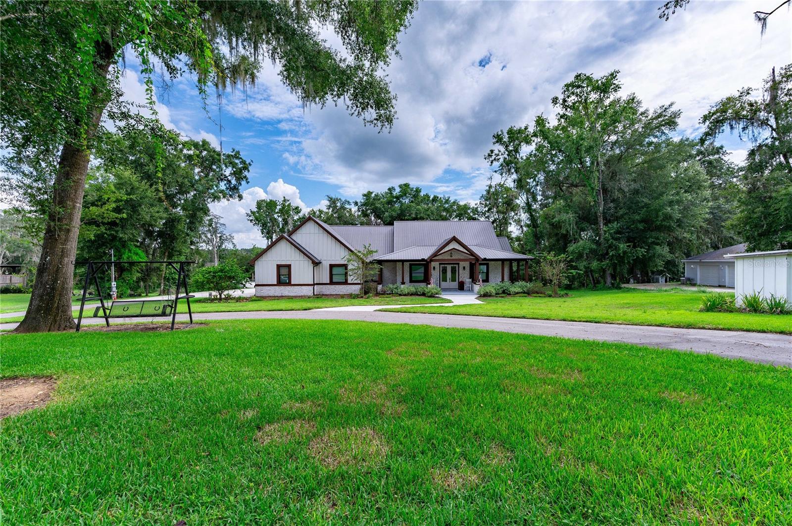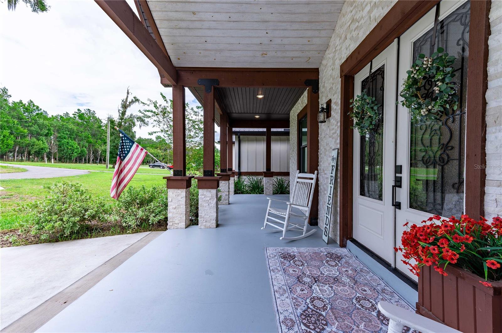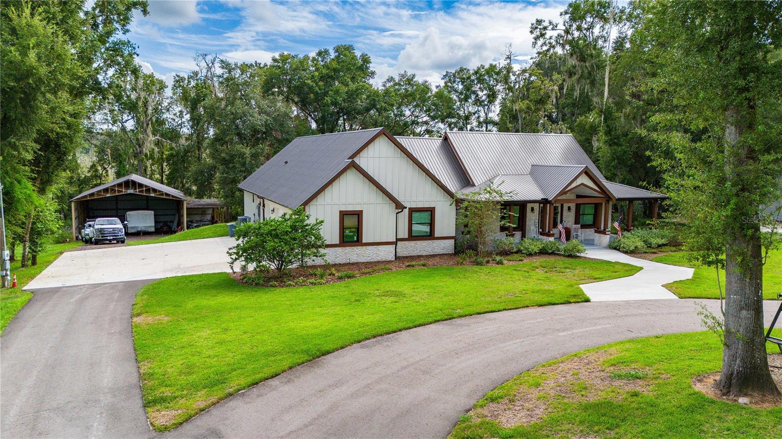 Welcome to this spectacular 3-bedroom, 3-bathroom home set on an impressive 5-acre property with no neighbors behind, offering both privacy and panoramic views of the conservation area. Step into the grand foyer adorned with a coffered ceiling, setting the tone for the luxurious finishes throughout. The kitchen is a chef's dream, featuring granite countertops, a glass backsplash, custom cabinets with under-cabinet lighting, and a true butler's pantry perfect for storing large appliances. The centerpiece is a single slab of granite on the island with breakfast bar seating, hidden storage, and a standalone icemaker. The vaulted whitewashed knotty pine ceiling in the living room offers a rustic charm, complemented by a double-sided electric fireplace that also warms the living room and the screened lanai. The primary bedroom boasts high ceilings, a magnificent custom walk-in closet, and an ensuite bath complete with a soaking tub, a vast shower with double regular AND rainfall showerheads, and dual vanities. Additional features include hardwood flooring, a fireplace, high ceilings, and a flex/office space. Guests enjoy comfortable accommodations with split-bedroom design, jack and jill bathrooms, and custom walk-in closets. Functionality meets luxury in the large laundry room equipped with built-in hampers and a spacious oversized 3-car garage that offers tall attic space—potential for additional living quarters. A screened lanai invites you with an 8 man hot tub, perfect for relaxing in the evenings bug free! The large pole barn will store all of your toys and then some. Every detail in this home has been thoughtfully planned to ensure comfort and luxury. Don’t miss the opportunity to own this exquisite property—contact us today to schedule your viewing!
