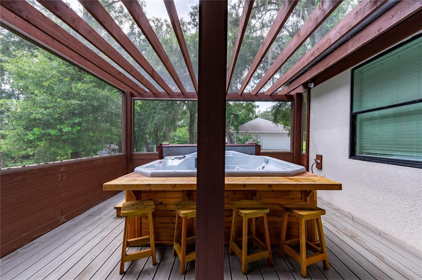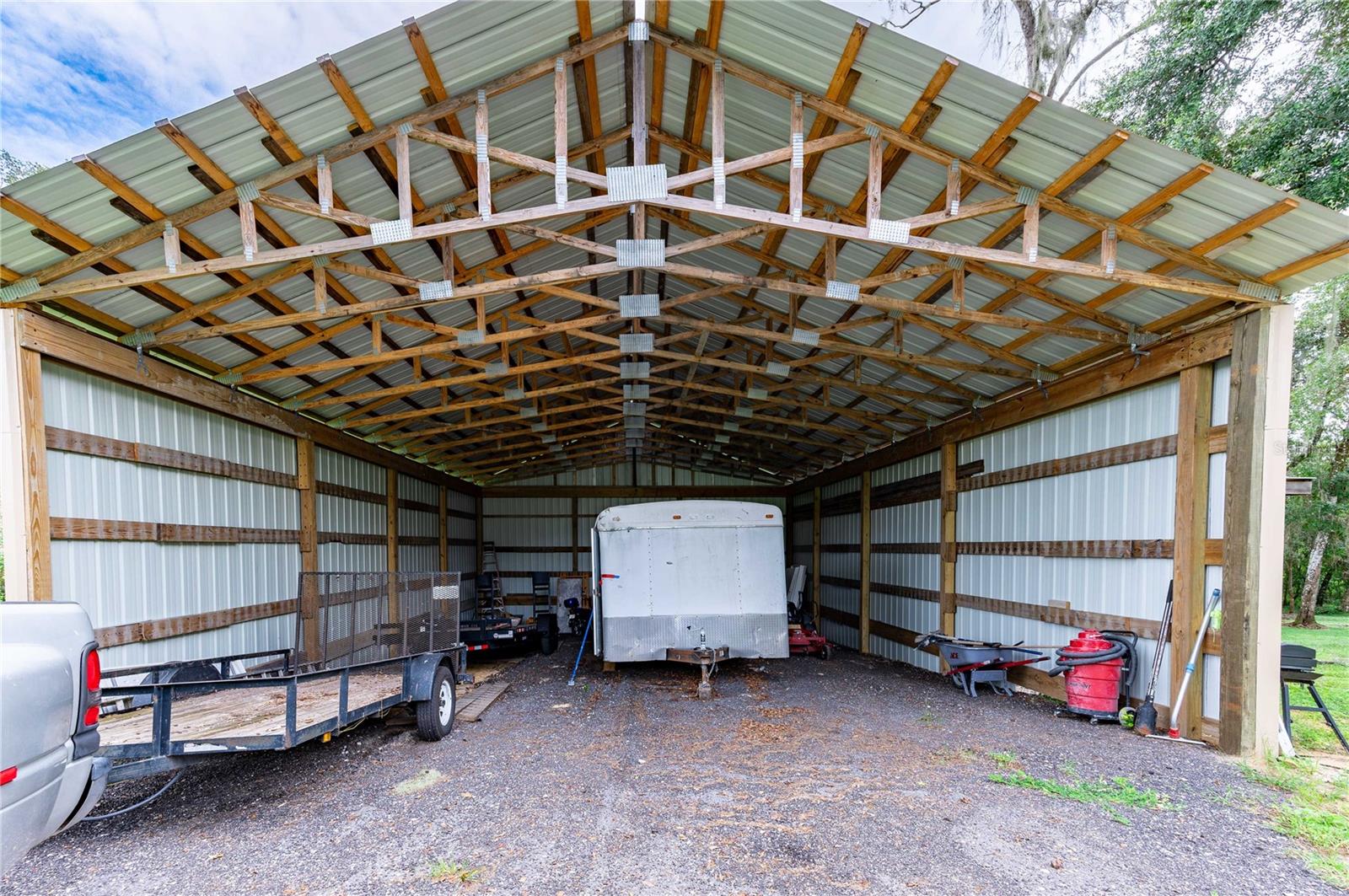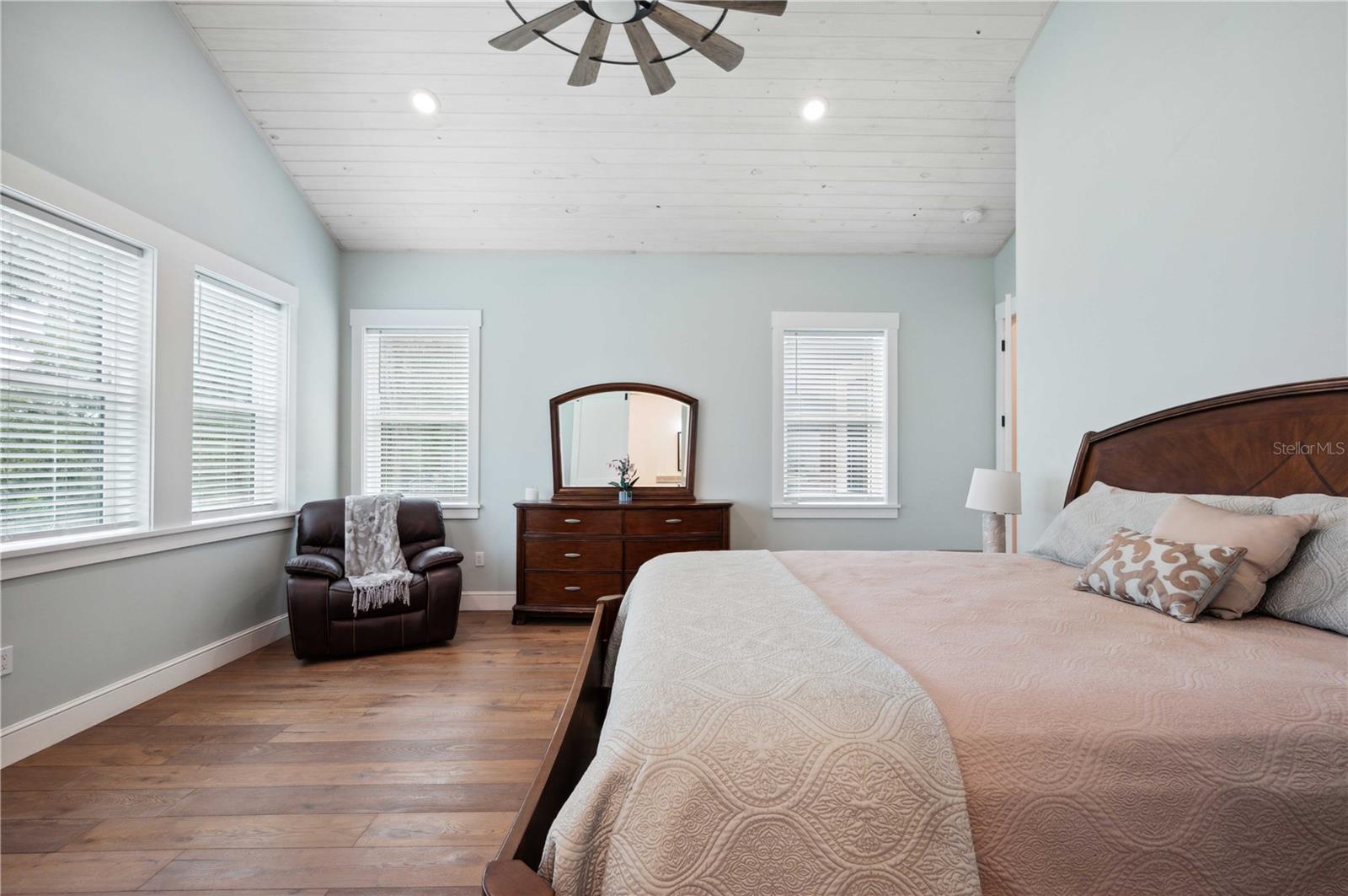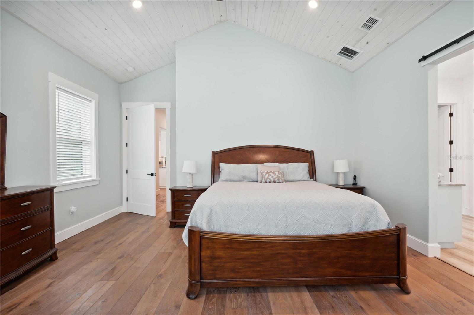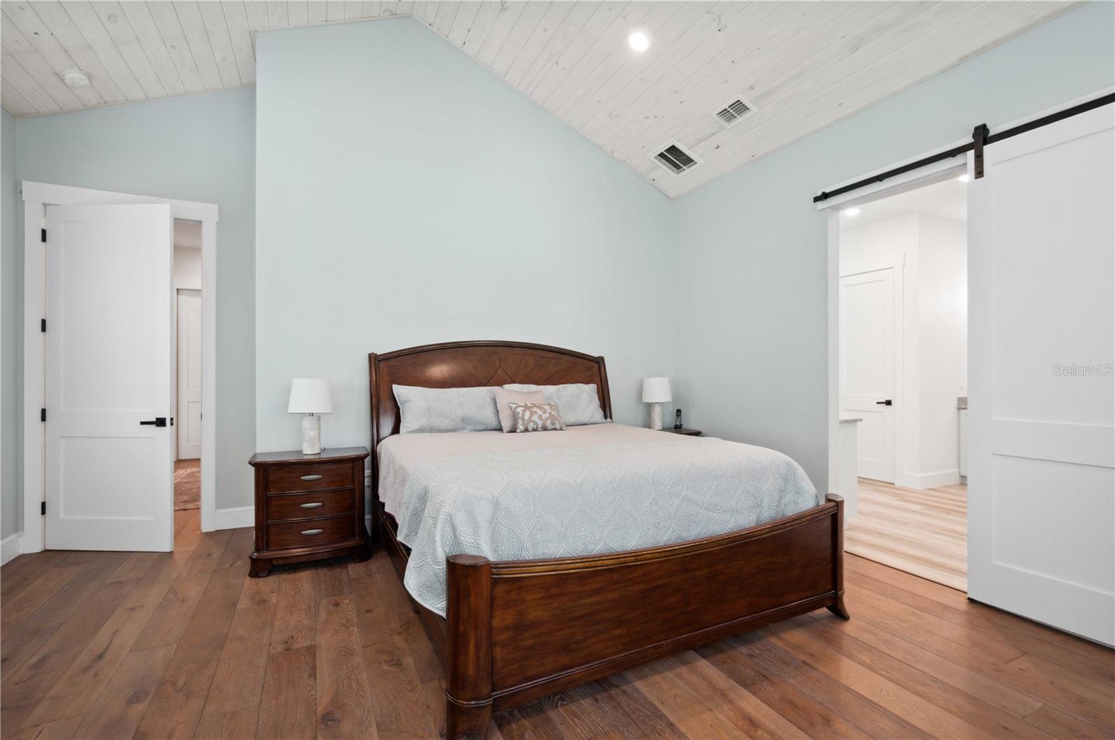 Welcome to this spectacular 3-bedroom, 3-bathroom home set on an impressive 5-acre property with no neighbors behind, offering both privacy and panoramic views of the conservation area. Step into the grand foyer adorned with a coffered ceiling, setting the tone for the luxurious finishes throughout. The kitchen is a chef's dream, featuring granite countertops, a glass backsplash, custom cabinets with under-cabinet lighting, and a true butler's pantry perfect for storing large appliances. The centerpiece is a single slab of granite on the island with breakfast bar seating, hidden storage, and a standalone icemaker. The vaulted whitewashed knotty pine ceiling in the living room offers a rustic charm, complemented by a double-sided electric fireplace that also warms the living room and the screened lanai. The primary bedroom boasts high ceilings, a magnificent custom walk-in closet, and an ensuite bath complete with a soaking tub, a vast shower with double regular AND rainfall showerheads, and dual vanities. Additional features include hardwood flooring, a fireplace, high ceilings, and a flex/office space. Guests enjoy comfortable accommodations with split-bedroom design, jack and jill bathrooms, and custom walk-in closets. Functionality meets luxury in the large laundry room equipped with built-in hampers and a spacious oversized 3-car garage that offers tall attic space—potential for additional living quarters. A screened lanai invites you with an 8 man hot tub, perfect for relaxing in the evenings bug free! The large pole barn will store all of your toys and then some. Every detail in this home has been thoughtfully planned to ensure comfort and luxury. Don’t miss the opportunity to own this exquisite property—contact us today to schedule your viewing!