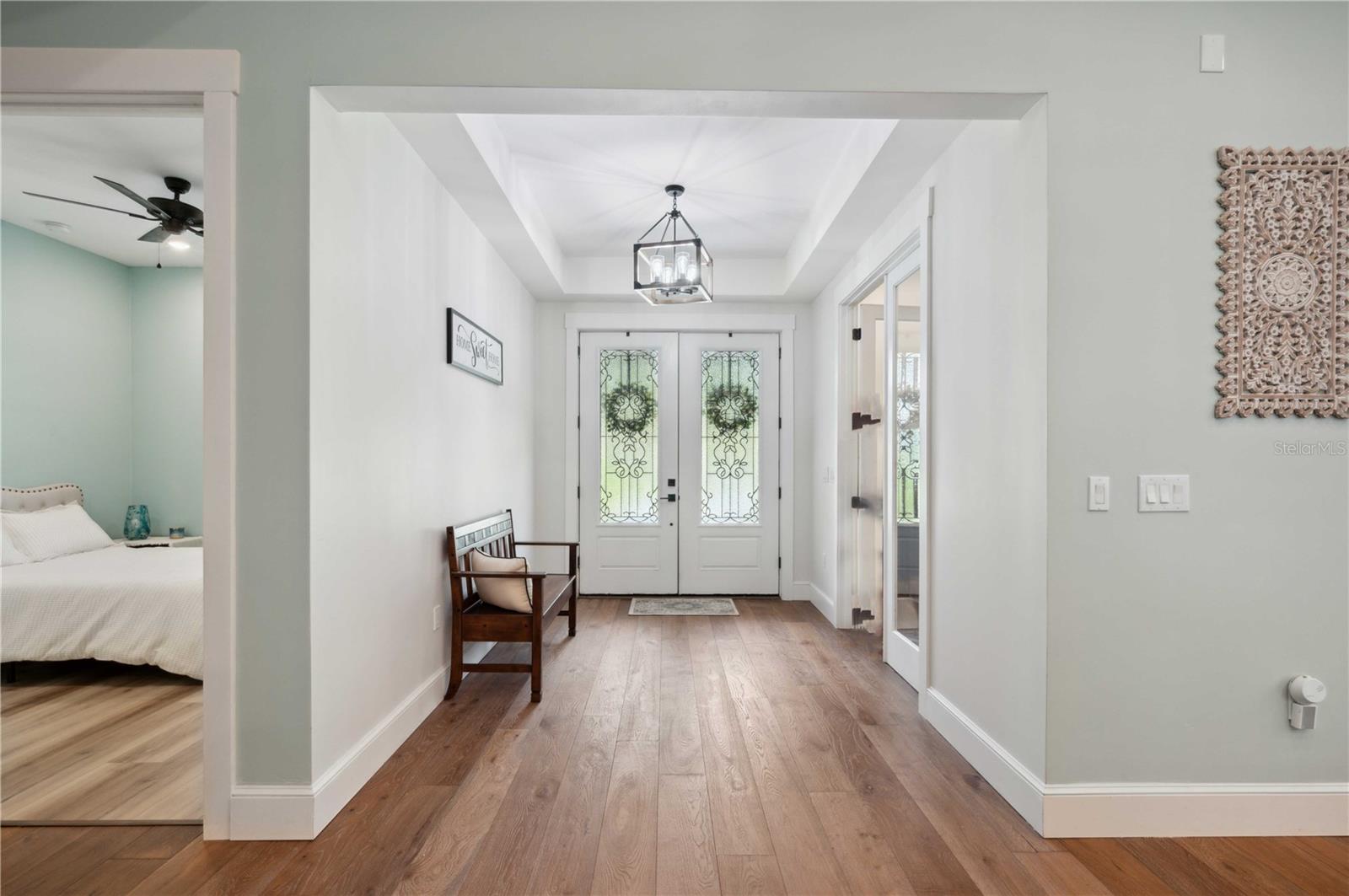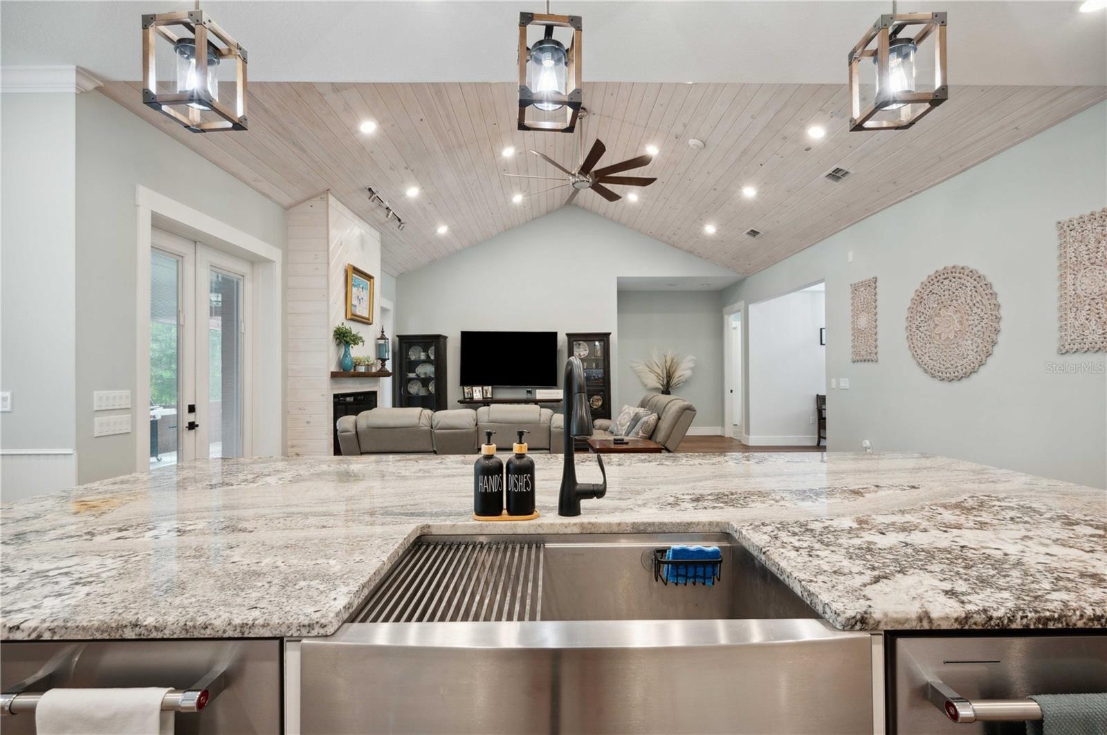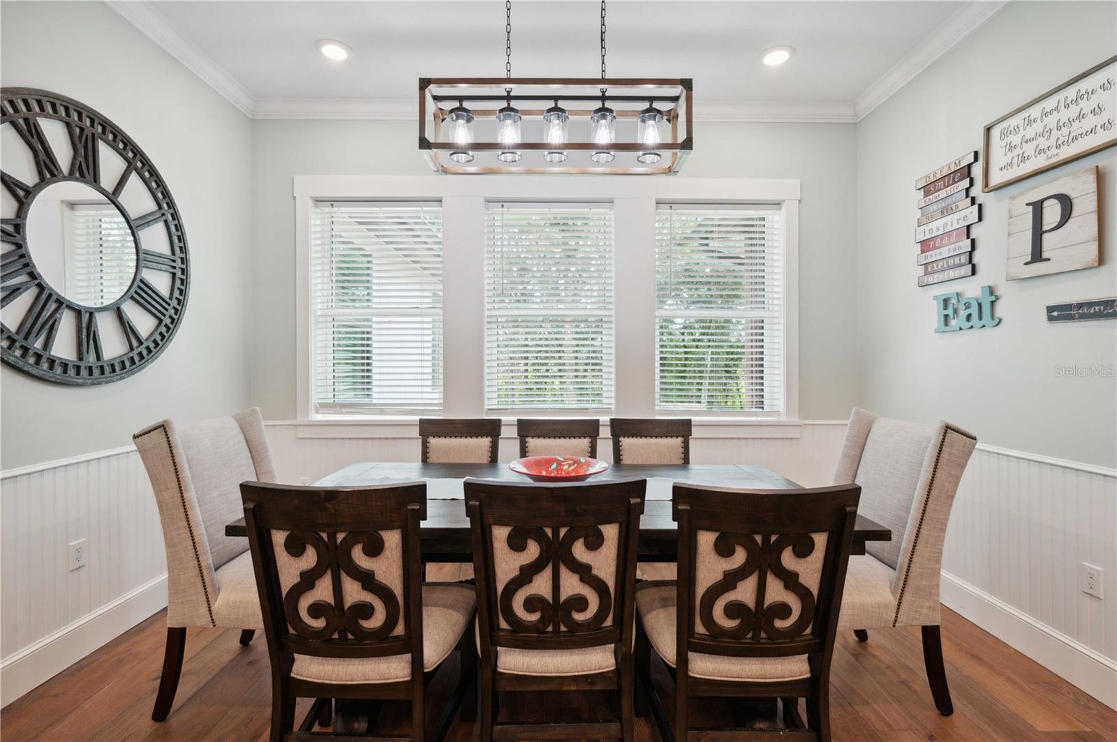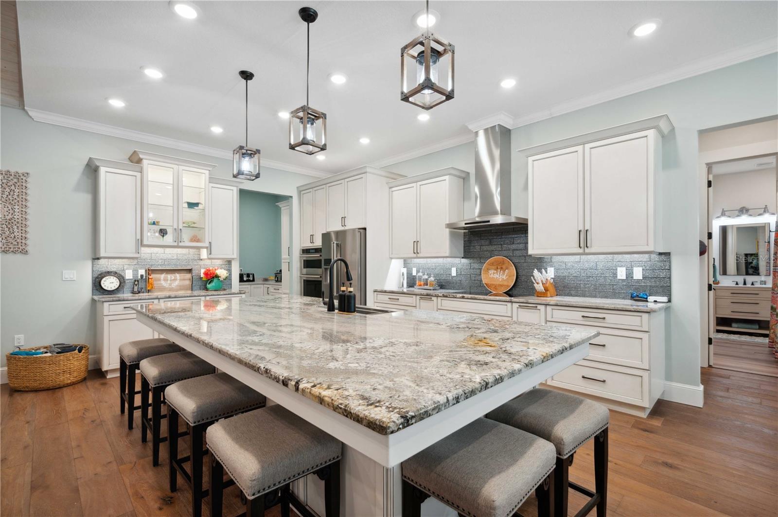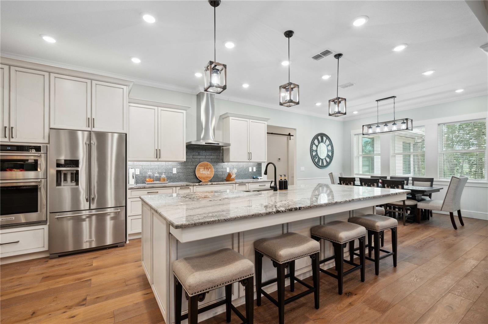Welcome to this spectacular 3-bedroom, 3-bathroom home set on an impressive 5-acre property with no neighbors behind, offering both privacy and panoramic views of the conservation area. Step into the grand foyer adorned with a coffered ceiling, setting the tone for the luxurious finishes throughout. The kitchen is a chef's dream, featuring granite countertops, a glass backsplash, custom cabinets with under-cabinet lighting, and a true butler's pantry perfect for storing large appliances. The centerpiece is a single slab of granite on the island with breakfast bar seating, hidden storage, and a standalone icemaker. The vaulted whitewashed knotty pine ceiling in the living room offers a rustic charm, complemented by a double-sided electric fireplace that also warms the living room and the screened lanai. The primary bedroom boasts high ceilings, a magnificent custom walk-in closet, and an ensuite bath complete with a soaking tub, a vast shower with double regular AND rainfall showerheads, and dual vanities. Additional features include hardwood flooring, a fireplace, high ceilings, and a flex/office space. Guests enjoy comfortable accommodations with split-bedroom design, jack and jill bathrooms, and custom walk-in closets. Functionality meets luxury in the large laundry room equipped with built-in hampers and a spacious oversized 3-car garage that offers tall attic space—potential for additional living quarters. A screened lanai invites you with an 8 man hot tub, perfect for relaxing in the evenings bug free! The large pole barn will store all of your toys and then some. Every detail in this home has been thoughtfully planned to ensure comfort and luxury. Don’t miss the opportunity to own this exquisite property—contact us today to schedule your viewing!