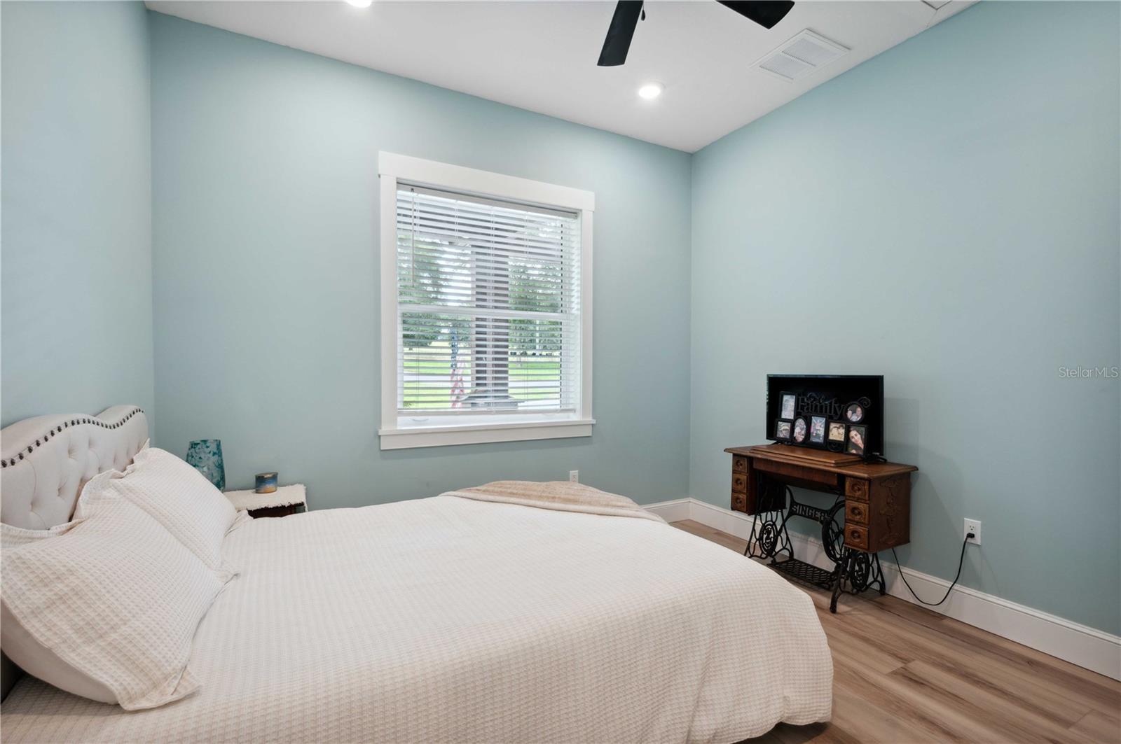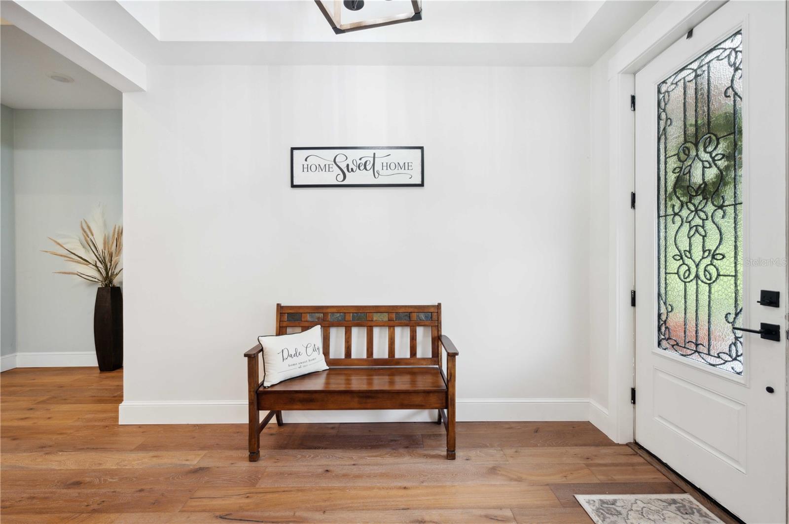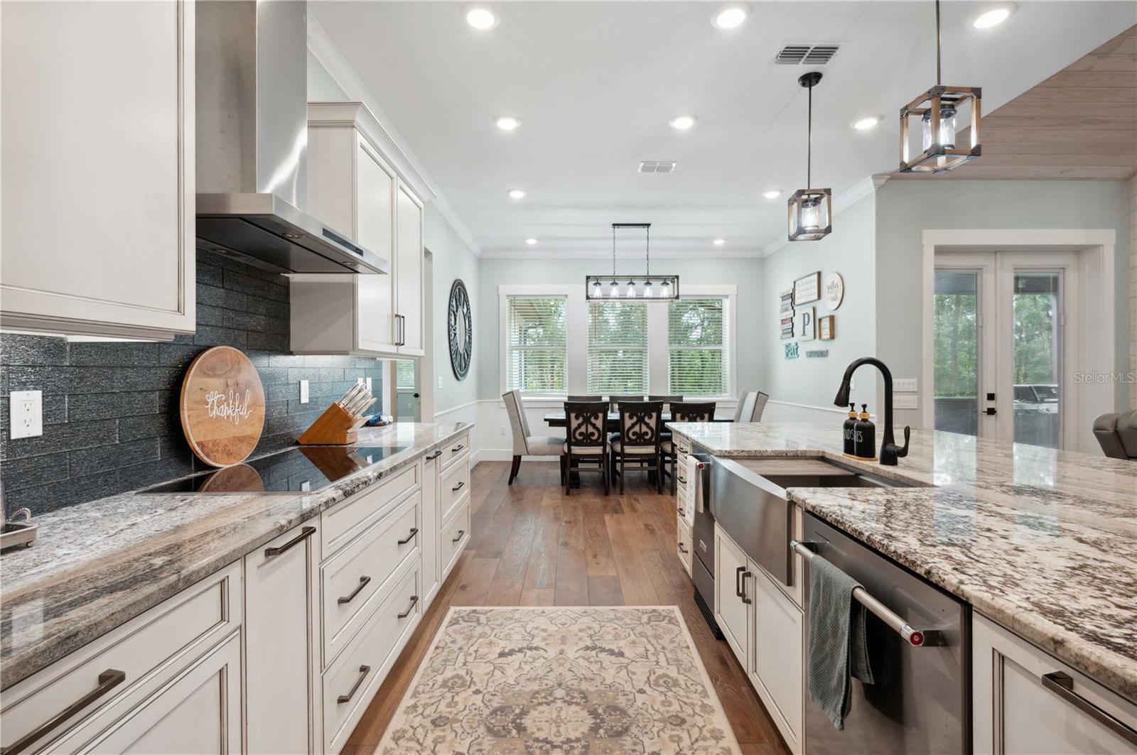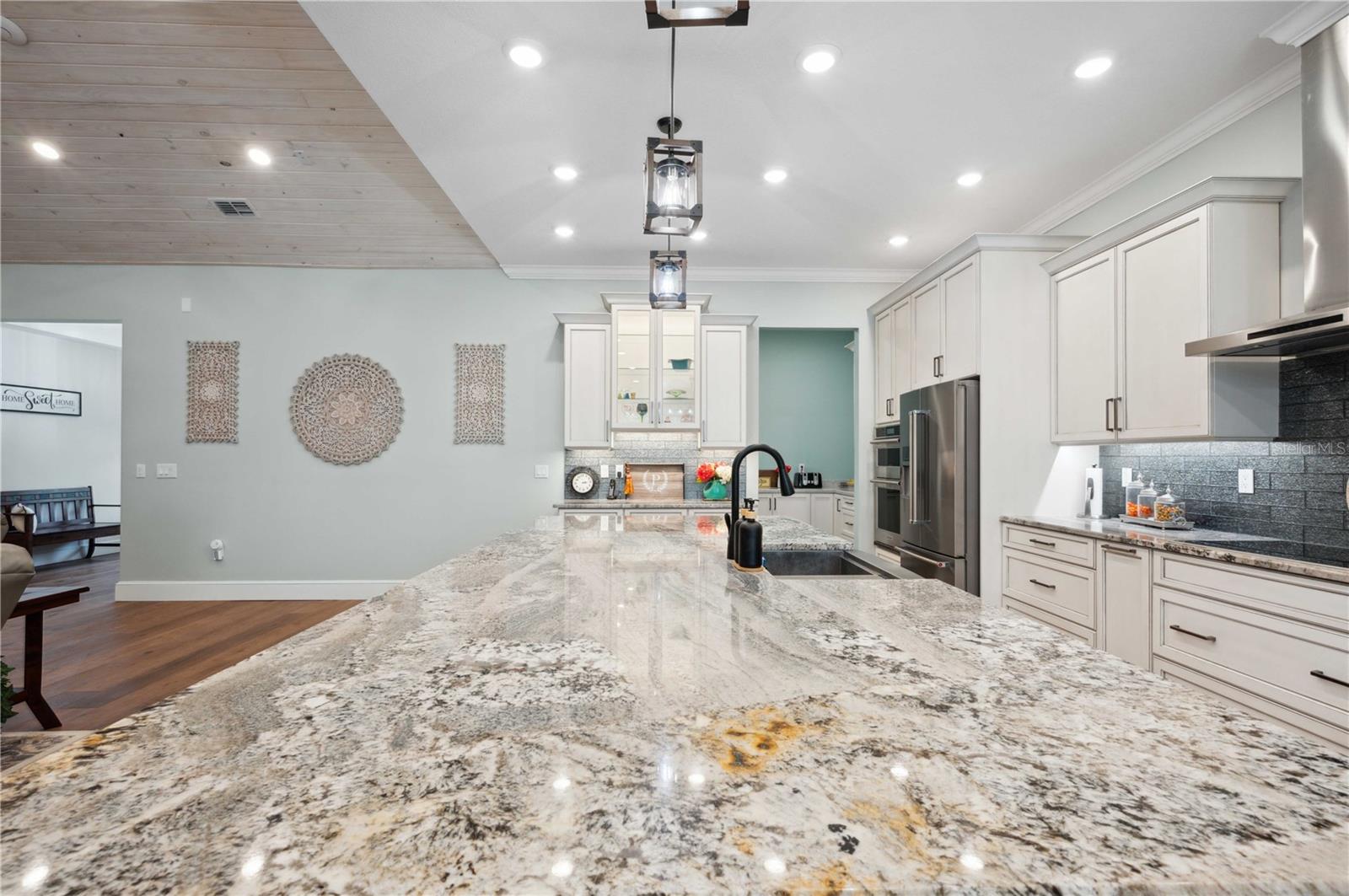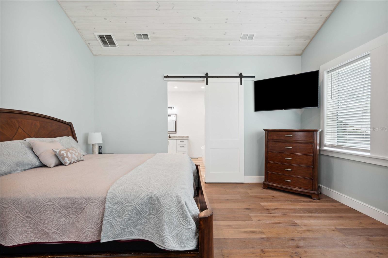 Welcome to this spectacular 3-bedroom, 3-bathroom home set on an impressive 5-acre property with no neighbors behind, offering both privacy and panoramic views of the conservation area. Step into the grand foyer adorned with a coffered ceiling, setting the tone for the luxurious finishes throughout. The kitchen is a chef's dream, featuring granite countertops, a glass backsplash, custom cabinets with under-cabinet lighting, and a true butler's pantry perfect for storing large appliances. The centerpiece is a single slab of granite on the island with breakfast bar seating, hidden storage, and a standalone icemaker. The vaulted whitewashed knotty pine ceiling in the living room offers a rustic charm, complemented by a double-sided electric fireplace that also warms the living room and the screened lanai. The primary bedroom boasts high ceilings, a magnificent custom walk-in closet, and an ensuite bath complete with a soaking tub, a vast shower with double regular AND rainfall showerheads, and dual vanities. Additional features include hardwood flooring, a fireplace, high ceilings, and a flex/office space. Guests enjoy comfortable accommodations with split-bedroom design, jack and jill bathrooms, and custom walk-in closets. Functionality meets luxury in the large laundry room equipped with built-in hampers and a spacious oversized 3-car garage that offers tall attic space—potential for additional living quarters. A screened lanai invites you with an 8 man hot tub, perfect for relaxing in the evenings bug free! The large pole barn will store all of your toys and then some. Every detail in this home has been thoughtfully planned to ensure comfort and luxury. Don’t miss the opportunity to own this exquisite property—contact us today to schedule your viewing!