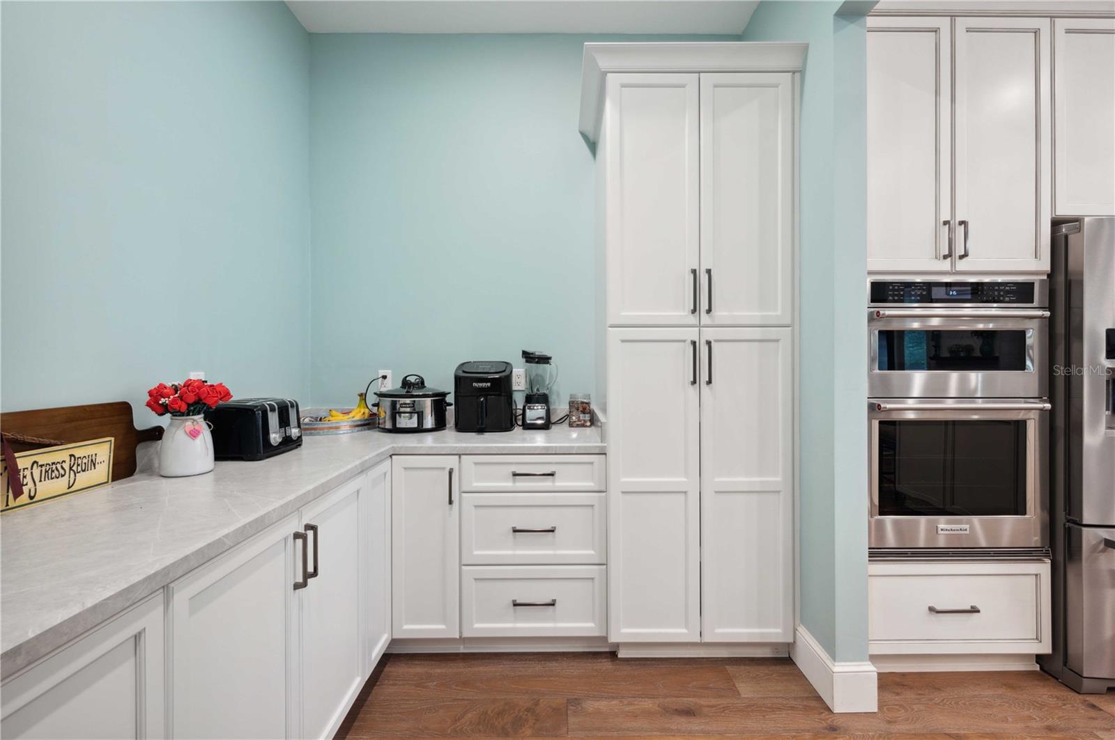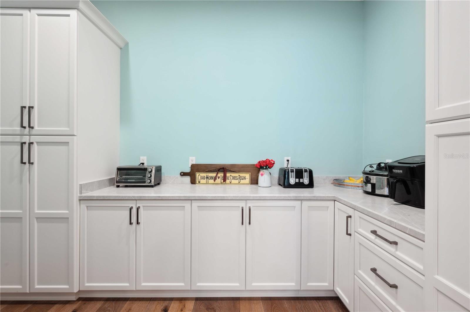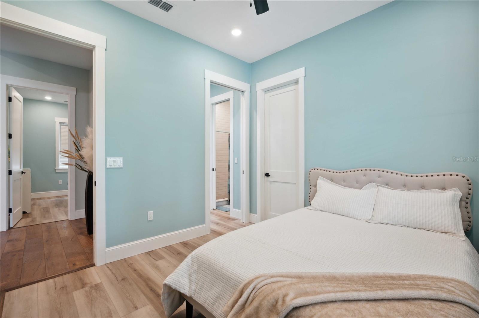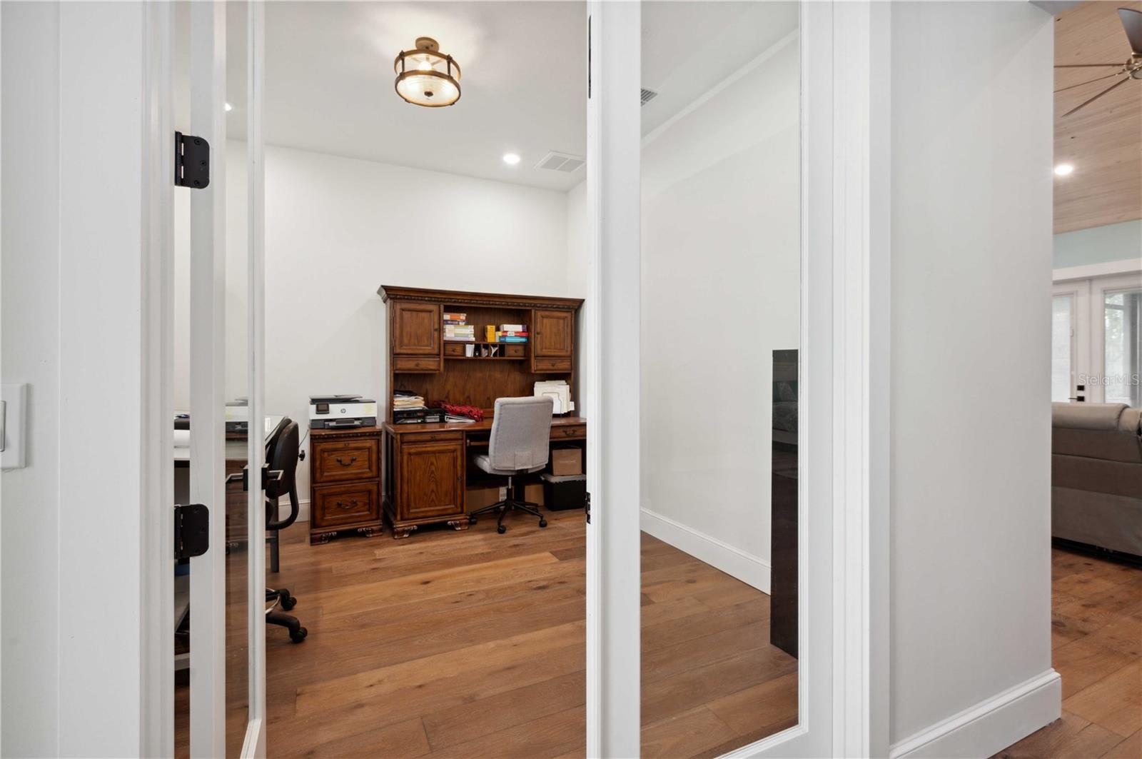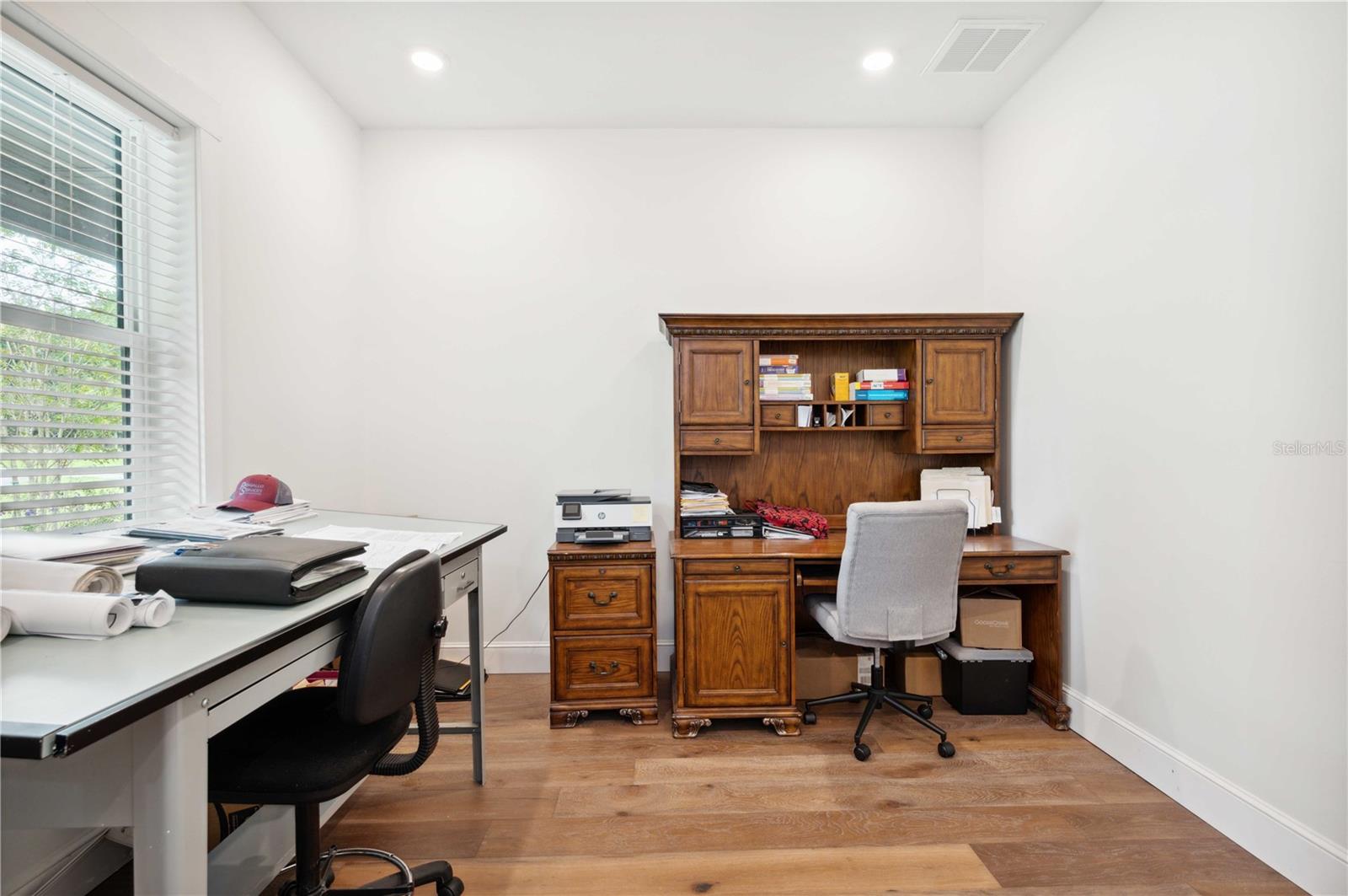 Welcome to this spectacular 3-bedroom, 3-bathroom home set on an impressive 5-acre property with no neighbors behind, offering both privacy and panoramic views of the conservation area. Step into the grand foyer adorned with a coffered ceiling, setting the tone for the luxurious finishes throughout. The kitchen is a chef's dream, featuring granite countertops, a glass backsplash, custom cabinets with under-cabinet lighting, and a true butler's pantry perfect for storing large appliances. The centerpiece is a single slab of granite on the island with breakfast bar seating, hidden storage, and a standalone icemaker. The vaulted whitewashed knotty pine ceiling in the living room offers a rustic charm, complemented by a double-sided electric fireplace that also warms the living room and the screened lanai. The primary bedroom boasts high ceilings, a magnificent custom walk-in closet, and an ensuite bath complete with a soaking tub, a vast shower with double regular AND rainfall showerheads, and dual vanities. Additional features include hardwood flooring, a fireplace, high ceilings, and a flex/office space. Guests enjoy comfortable accommodations with split-bedroom design, jack and jill bathrooms, and custom walk-in closets. Functionality meets luxury in the large laundry room equipped with built-in hampers and a spacious oversized 3-car garage that offers tall attic space—potential for additional living quarters. A screened lanai invites you with an 8 man hot tub, perfect for relaxing in the evenings bug free! The large pole barn will store all of your toys and then some. Every detail in this home has been thoughtfully planned to ensure comfort and luxury. Don’t miss the opportunity to own this exquisite property—contact us today to schedule your viewing!