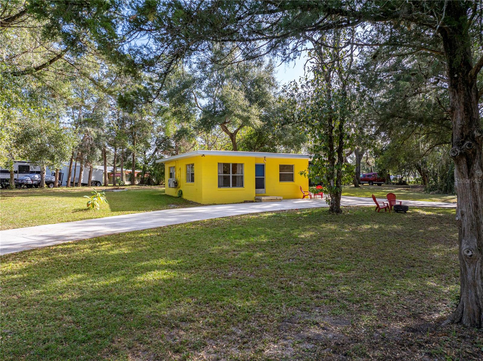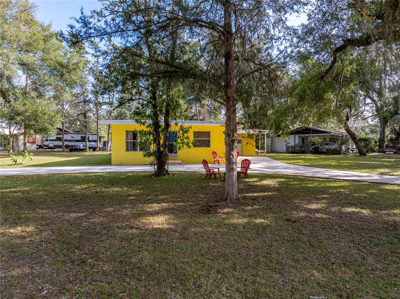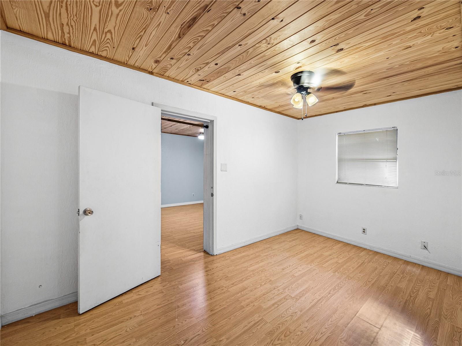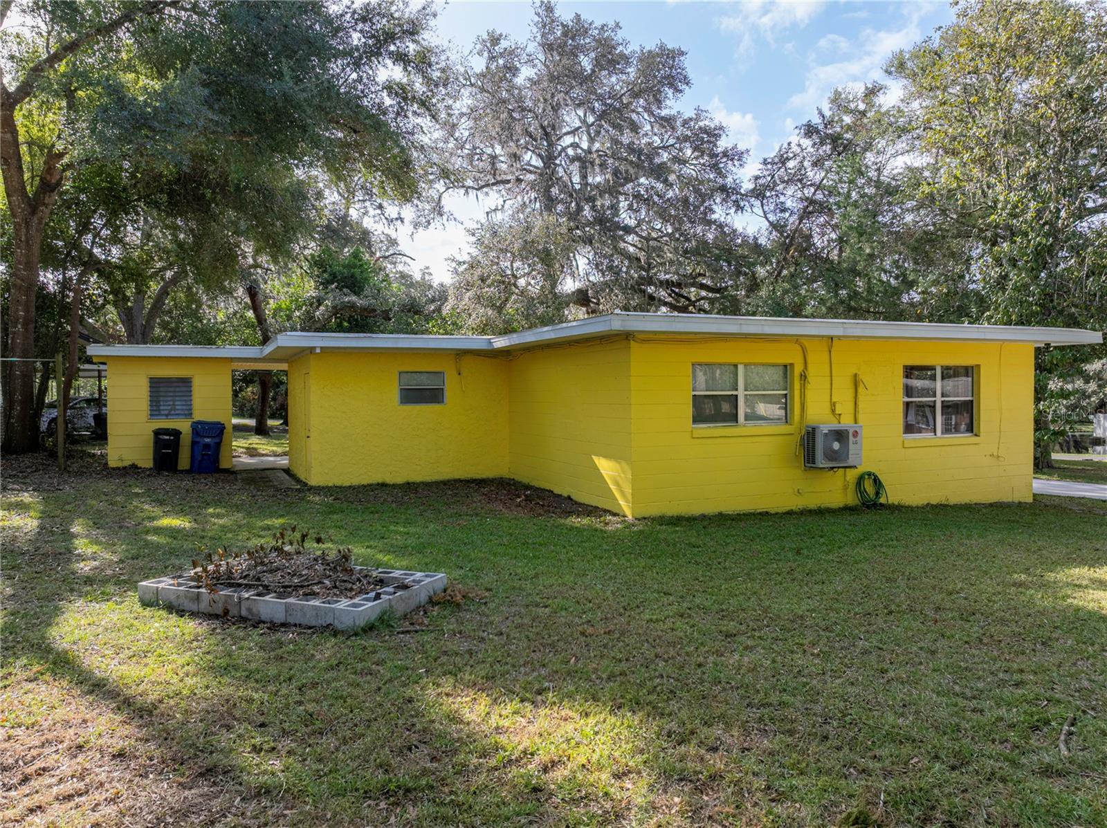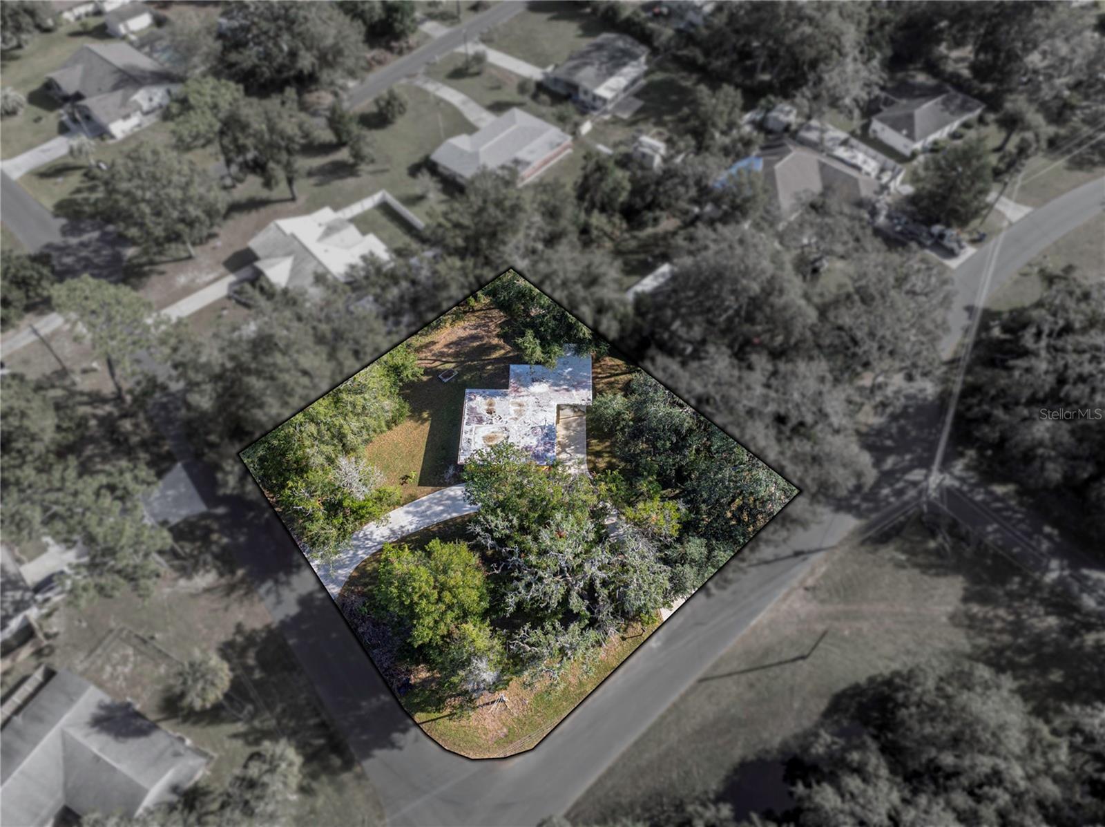 Resting high and dry on an oversized nearly 1/2 an acre corner lot, this beautifully wooded property offers 2 bedrooms, 1 bathroom, an open floor plan, and separate storage spaces! You are welcomed to the residence by a convenient circular driveway that leads to the carport and large front patio. Inside, laminate flooring and a gorgeous tongue and groove ceiling run throughout the space. Entertain with ease from the eat-in kitchen that features wood cabinetry, breakfast bar seating, a refrigerator, a range, and a microwave. A bonus room in the middle of the home adds flexibility as a formal dining room, a second living room, an office, etc. Both bedrooms are generously sized, and they share the home’s full bathroom with a tub/shower combo. New drain field in 2022, the roof was redone in 2018, the exterior has recently been painted, and this property was fortunate enough to stay dry during the storms. Call us today for your private showing and to learn more about the Ridge Manor community, just a short drive into Dade City, Brooksville, Webster, and more!