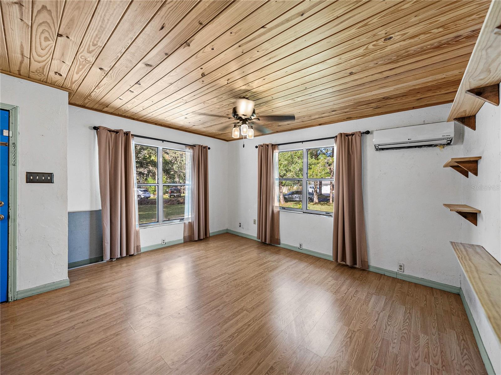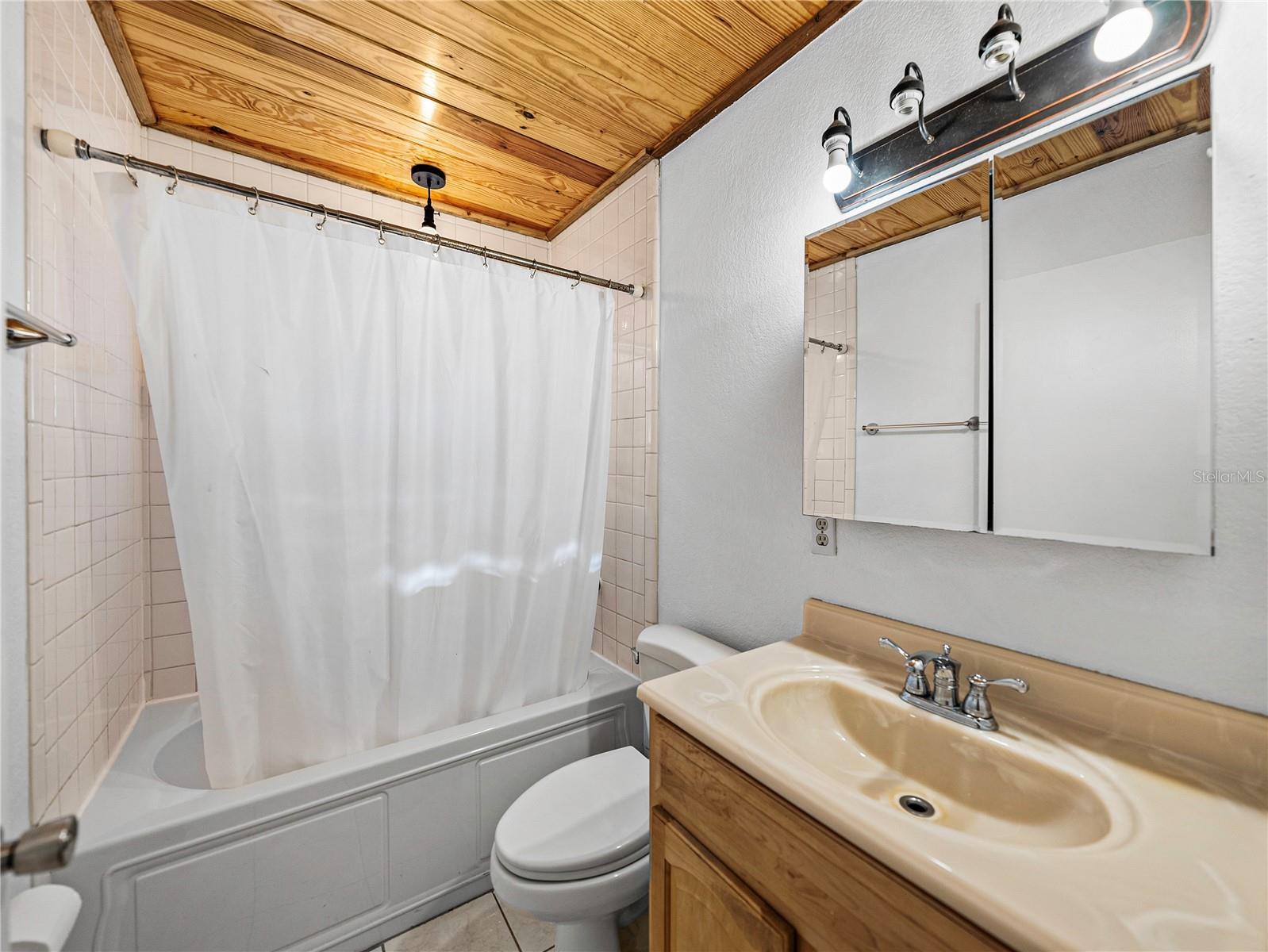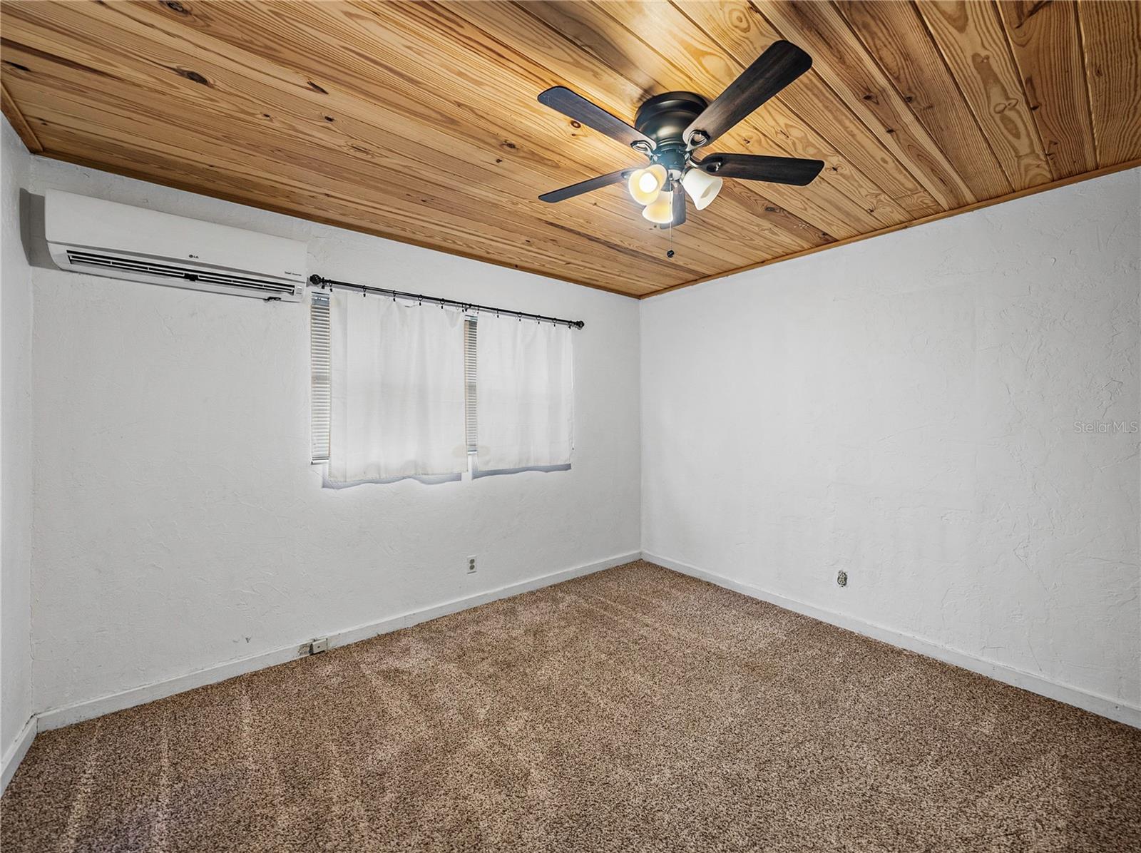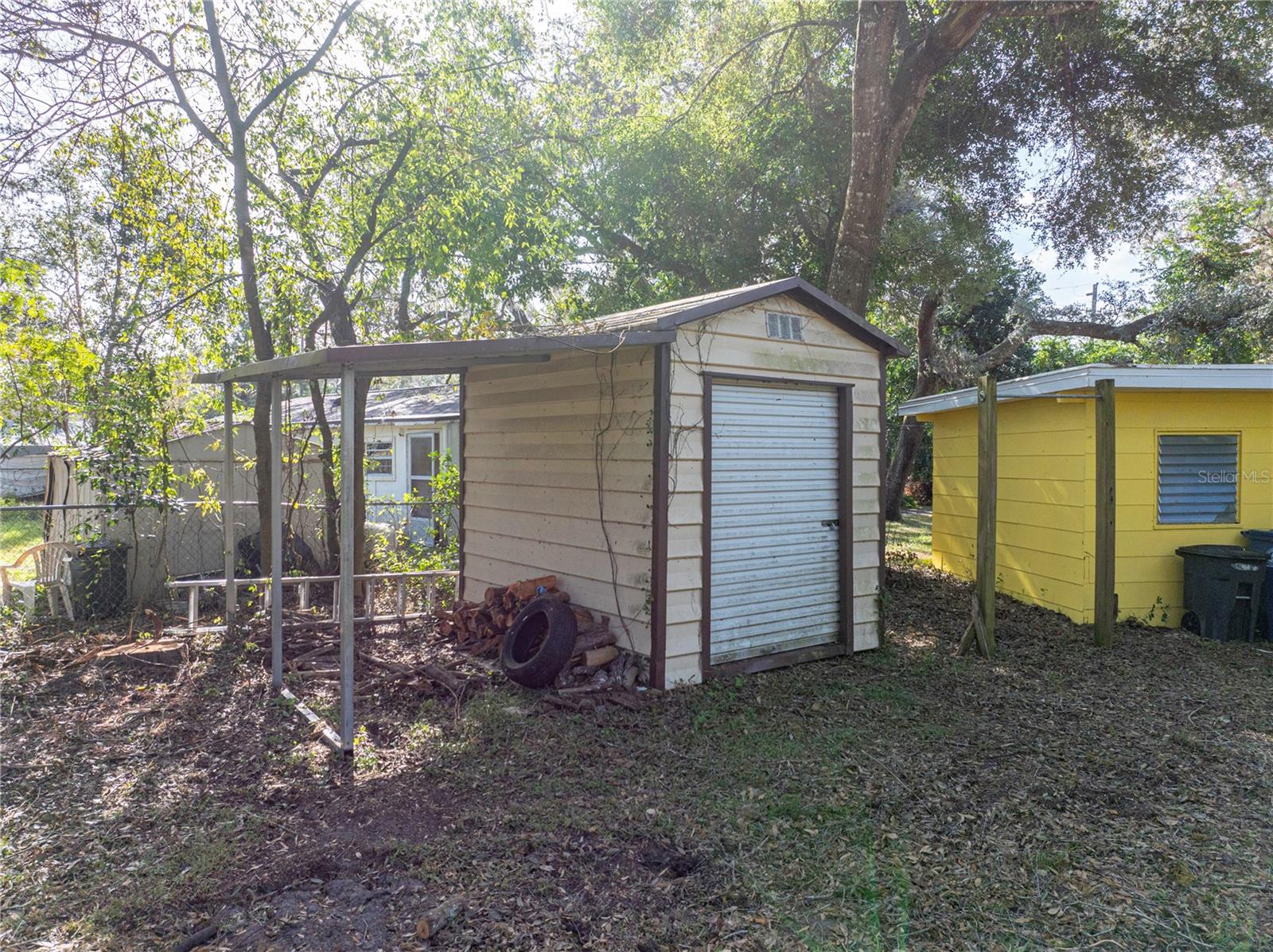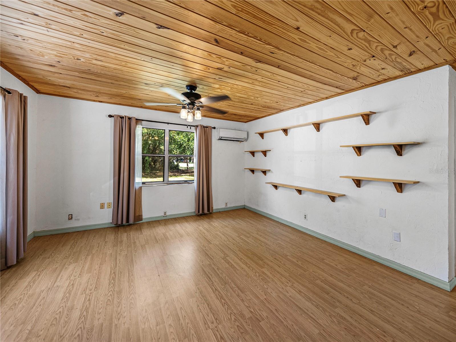 Resting high and dry on an oversized nearly 1/2 an acre corner lot, this beautifully wooded property offers 2 bedrooms, 1 bathroom, an open floor plan, and separate storage spaces! You are welcomed to the residence by a convenient circular driveway that leads to the carport and large front patio. Inside, laminate flooring and a gorgeous tongue and groove ceiling run throughout the space. Entertain with ease from the eat-in kitchen that features wood cabinetry, breakfast bar seating, a refrigerator, a range, and a microwave. A bonus room in the middle of the home adds flexibility as a formal dining room, a second living room, an office, etc. Both bedrooms are generously sized, and they share the home’s full bathroom with a tub/shower combo. New drain field in 2022, the roof was redone in 2018, the exterior has recently been painted, and this property was fortunate enough to stay dry during the storms. Call us today for your private showing and to learn more about the Ridge Manor community, just a short drive into Dade City, Brooksville, Webster, and more!