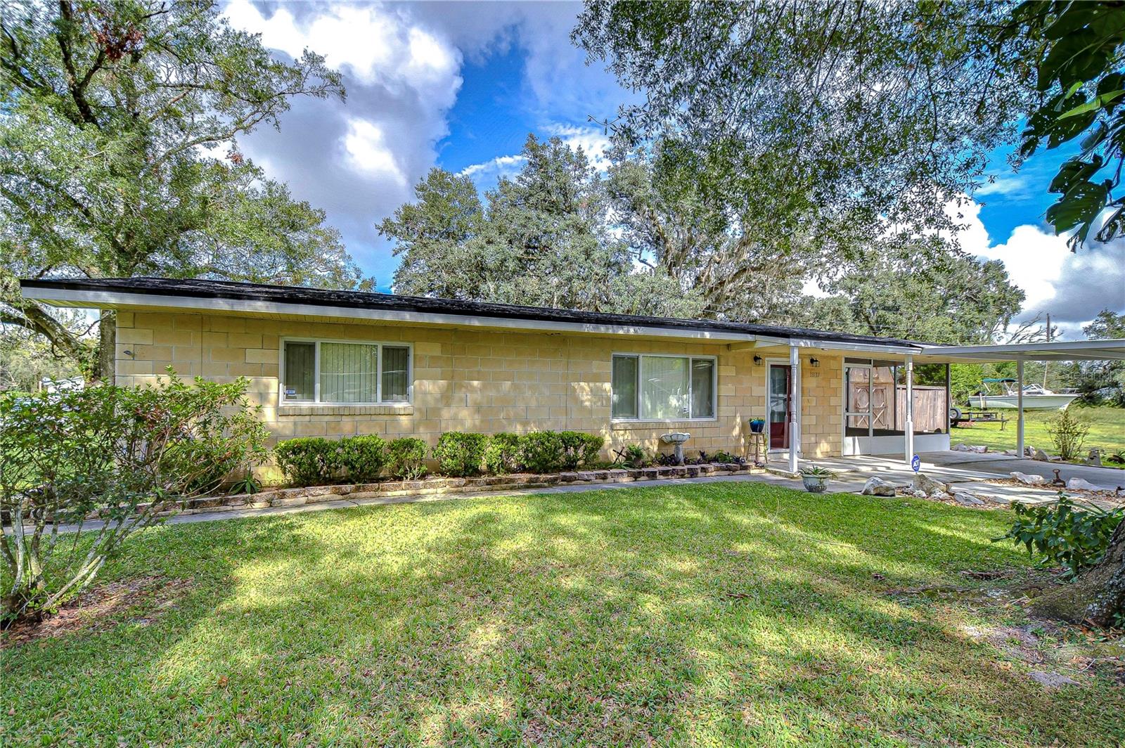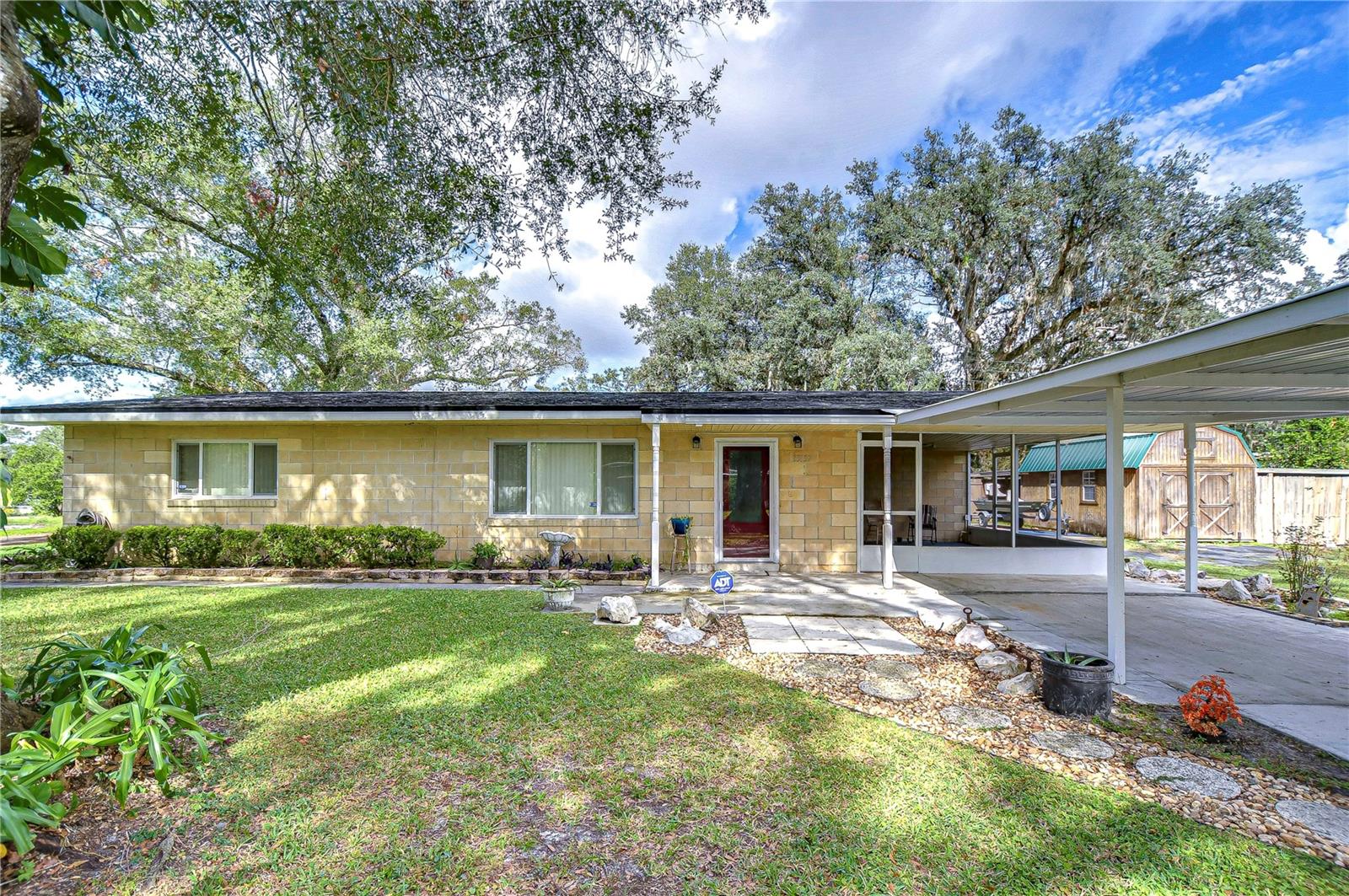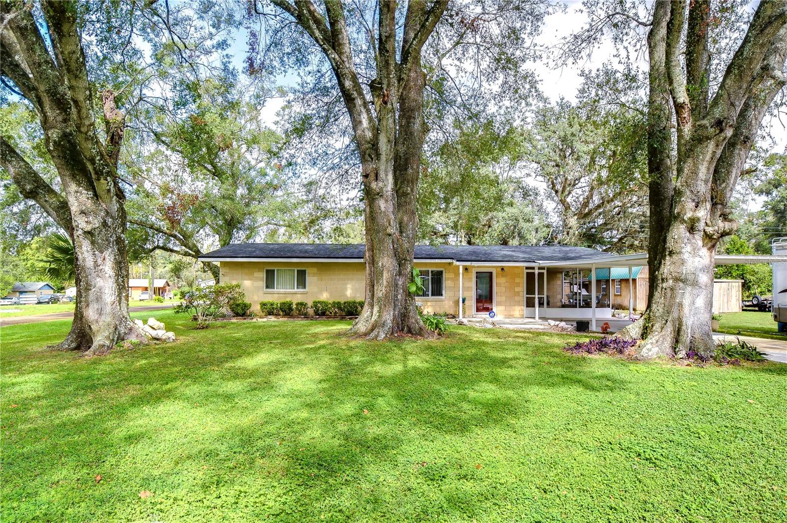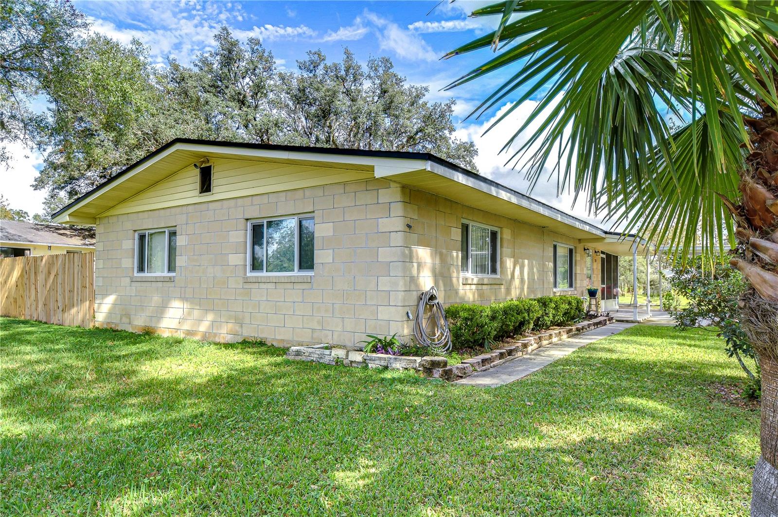 Peaceful, country setting. Corner lot with a cement block home and large oak trees. Walk in the front door to an open floor plan with the living room, dining room and kitchen. The kitchen has been remodeled with newer cabinets, countertops and appliances. The home has three bedrooms and two bathrooms. The ceilings are tongue and groove throughout the home. At the back is a laundry room. The roof was replaced in 2015. The home also has newer wood plank flooring, and cedar closets. The exterior of the home has a fenced back yard, large storage shed and paved driveway PLUS a large side yard. This home has access to I-75 for Ocala and Tampa, SR 50 toward Orlando and US 98 to Lakeland. It is situated near the Withlacoochee River, the trail leading to Inverness, and the Croom hunting preserve! But best of all there is no HOA fee. Don't let this one get away! Call now for an appointment to view this home.