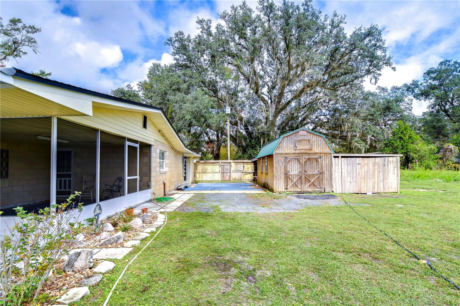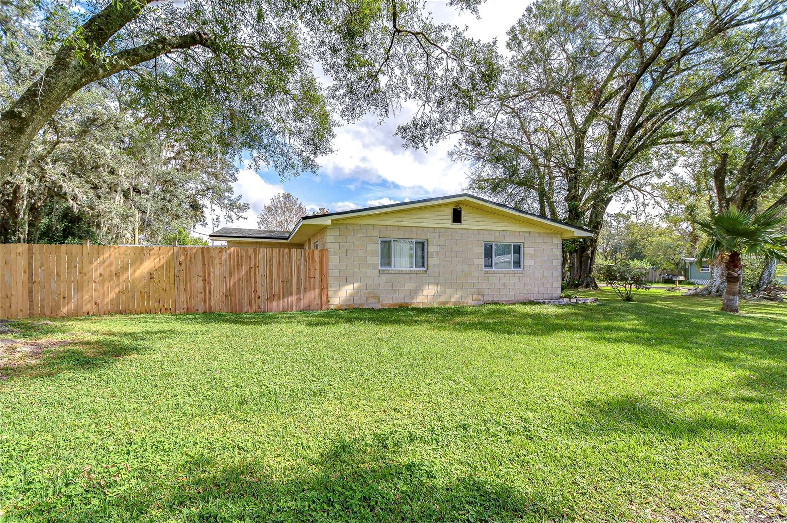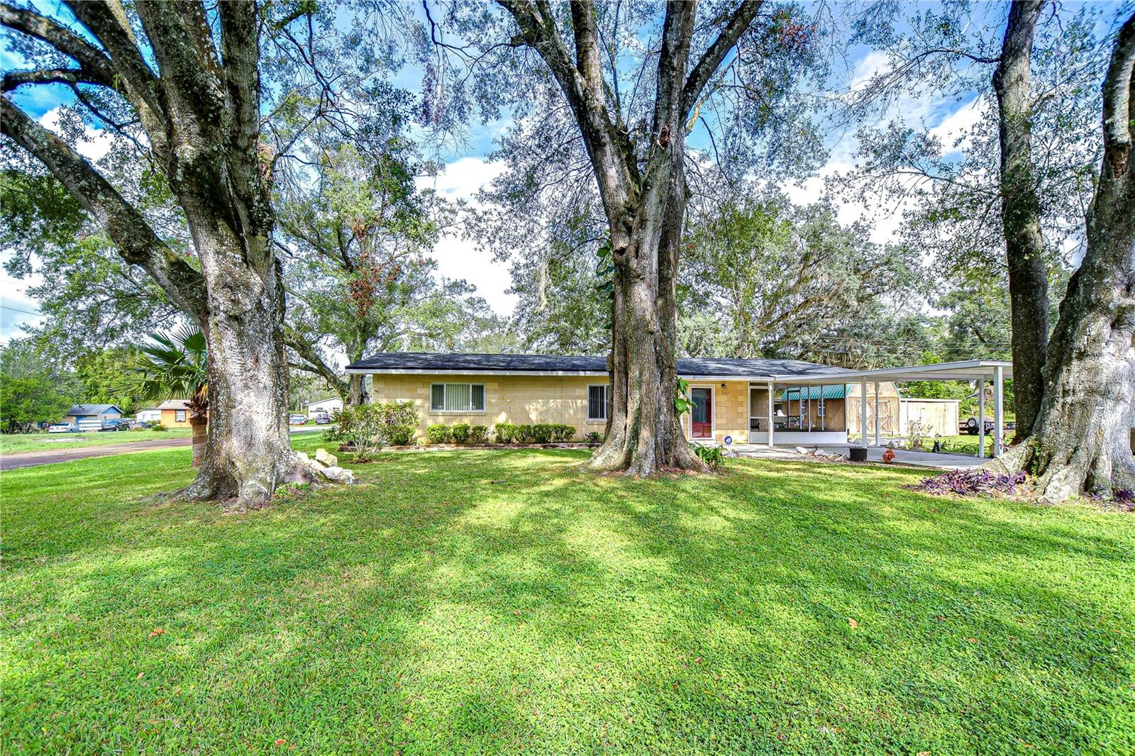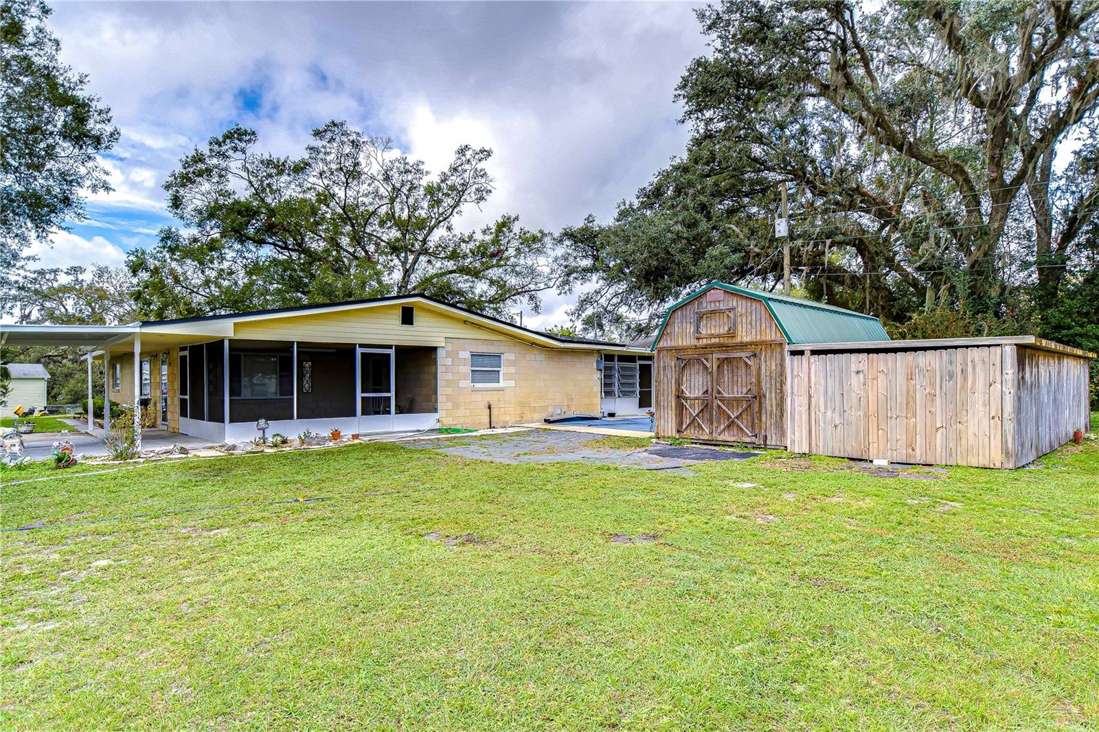 Peaceful, country setting. Corner lot with a cement block home and large oak trees. Walk in the front door to an open floor plan with the living room, dining room and kitchen. The kitchen has been remodeled with newer cabinets, countertops and appliances. The home has three bedrooms and two bathrooms. The ceilings are tongue and groove throughout the home. At the back is a laundry room. The roof was replaced in 2015. The home also has newer wood plank flooring, and cedar closets. The exterior of the home has a fenced back yard, large storage shed and paved driveway PLUS a large side yard. This home has access to I-75 for Ocala and Tampa, SR 50 toward Orlando and US 98 to Lakeland. It is situated near the Withlacoochee River, the trail leading to Inverness, and the Croom hunting preserve! But best of all there is no HOA fee. Don't let this one get away! Call now for an appointment to view this home.