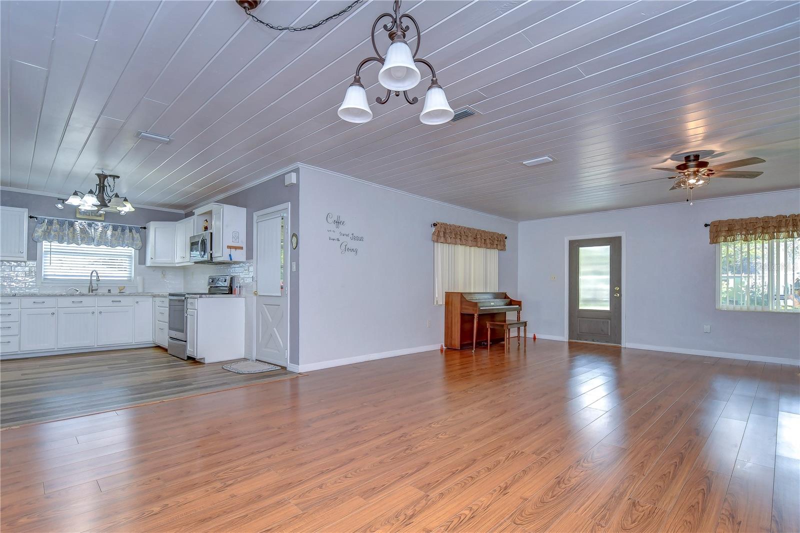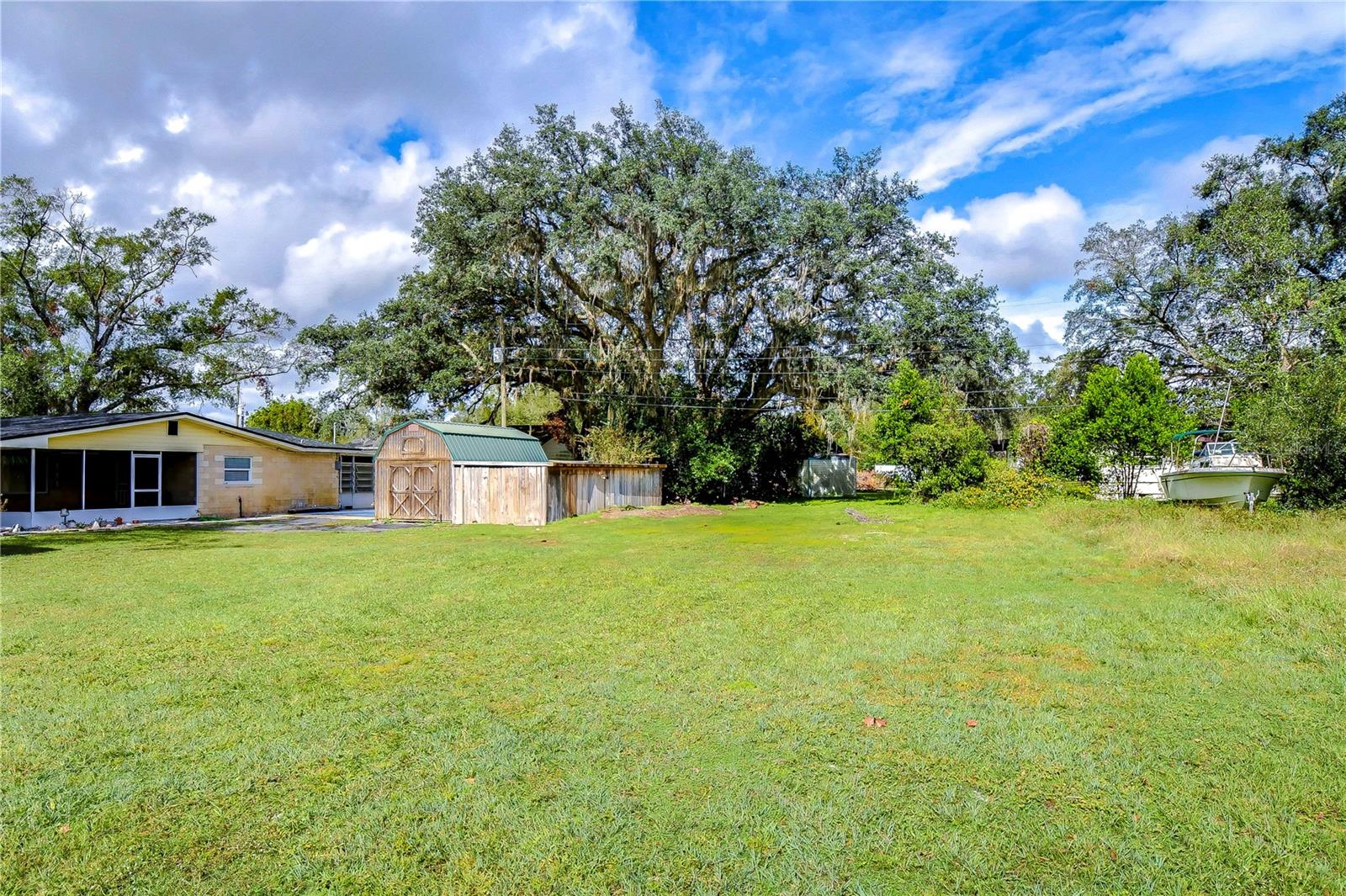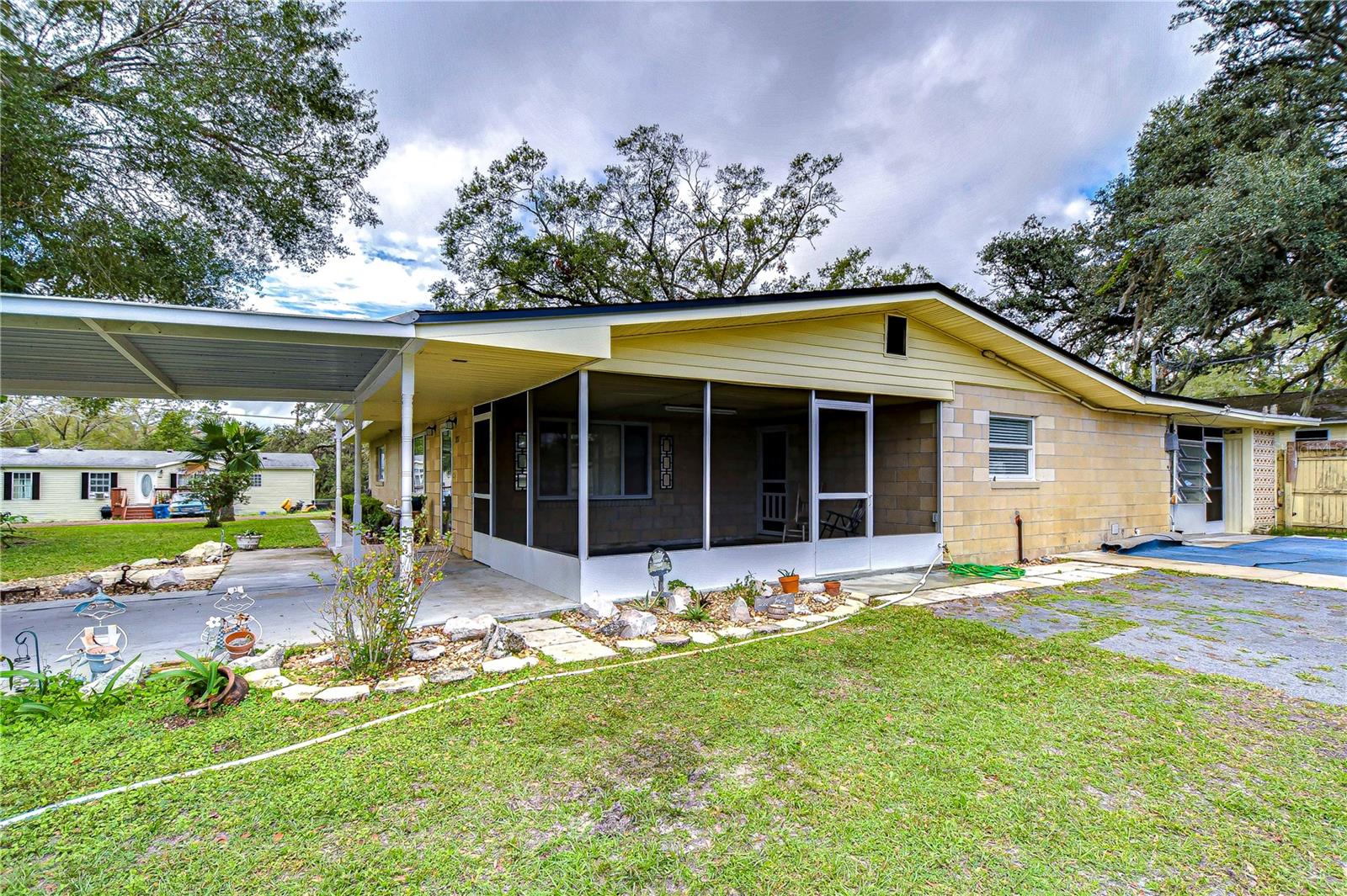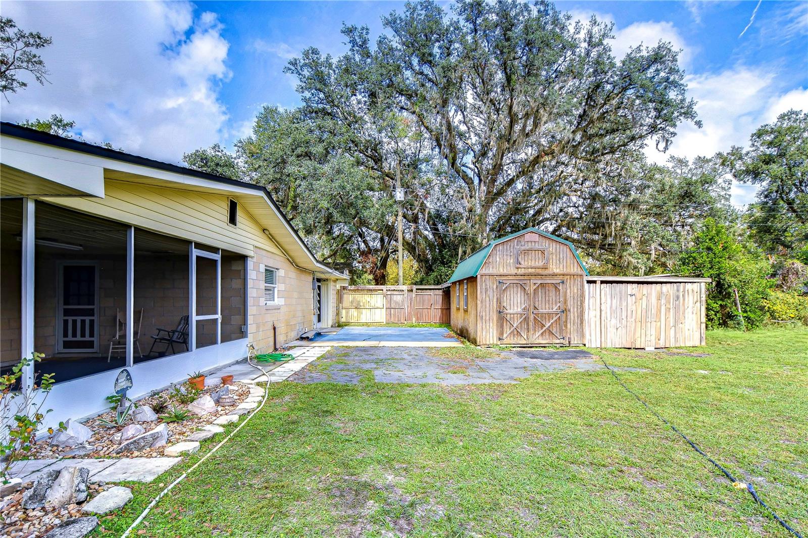 Peaceful, country setting. Corner lot with a cement block home and large oak trees. Walk in the front door to an open floor plan with the living room, dining room and kitchen. The kitchen has been remodeled with newer cabinets, countertops and appliances. The home has three bedrooms and two bathrooms. The ceilings are tongue and groove throughout the home. At the back is a laundry room. The roof was replaced in 2015. The home also has newer wood plank flooring, and cedar closets. The exterior of the home has a fenced back yard, large storage shed and paved driveway PLUS a large side yard. This home has access to I-75 for Ocala and Tampa, SR 50 toward Orlando and US 98 to Lakeland. It is situated near the Withlacoochee River, the trail leading to Inverness, and the Croom hunting preserve! But best of all there is no HOA fee. Don't let this one get away! Call now for an appointment to view this home.