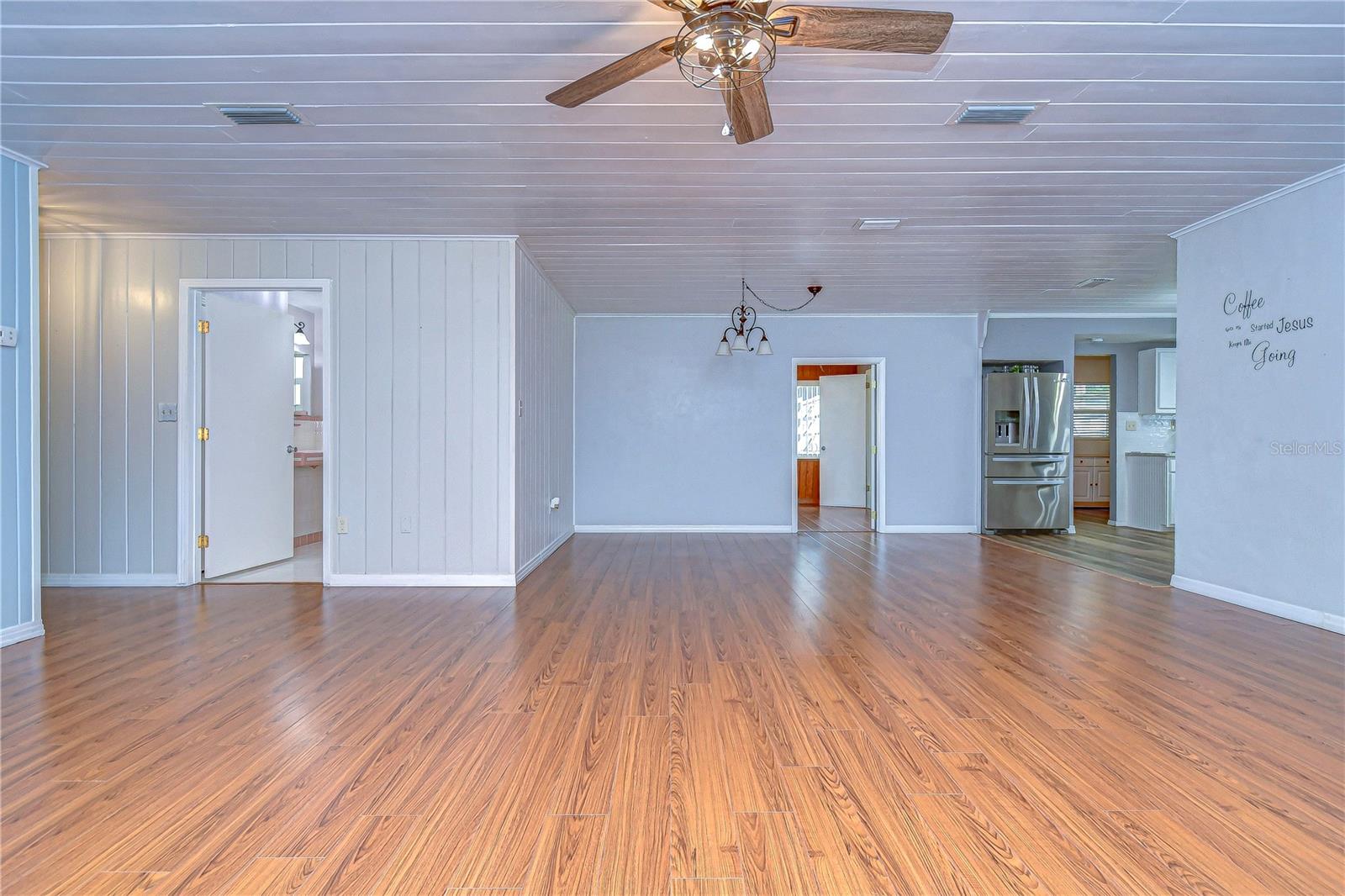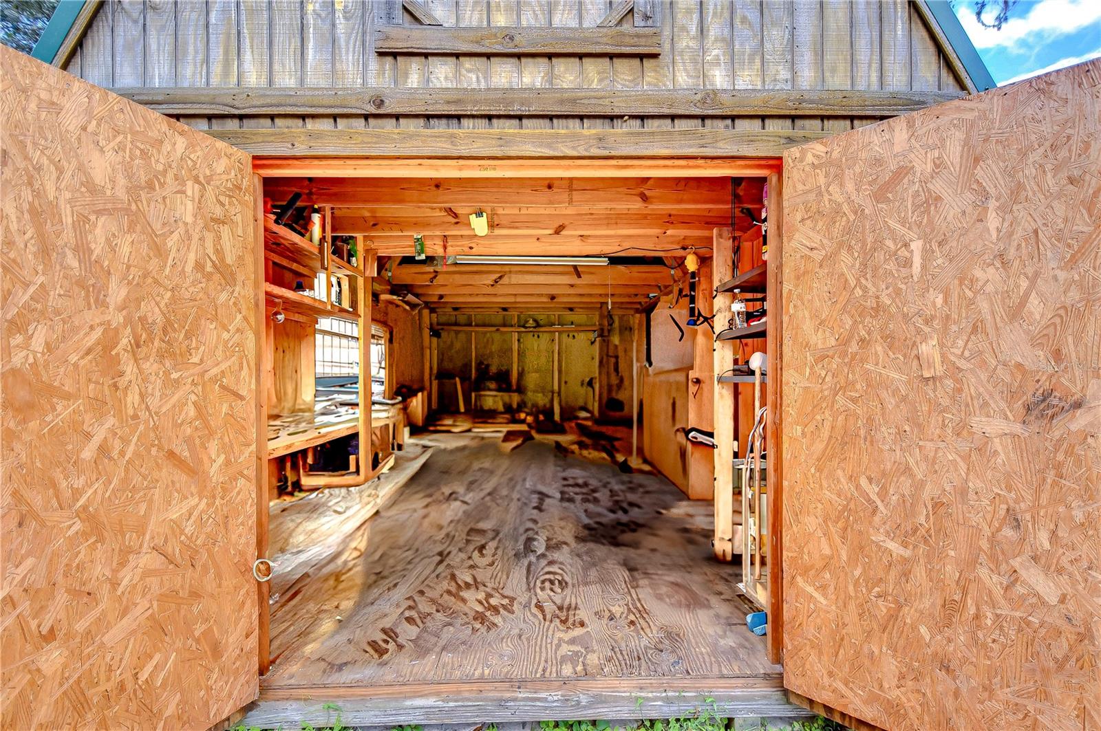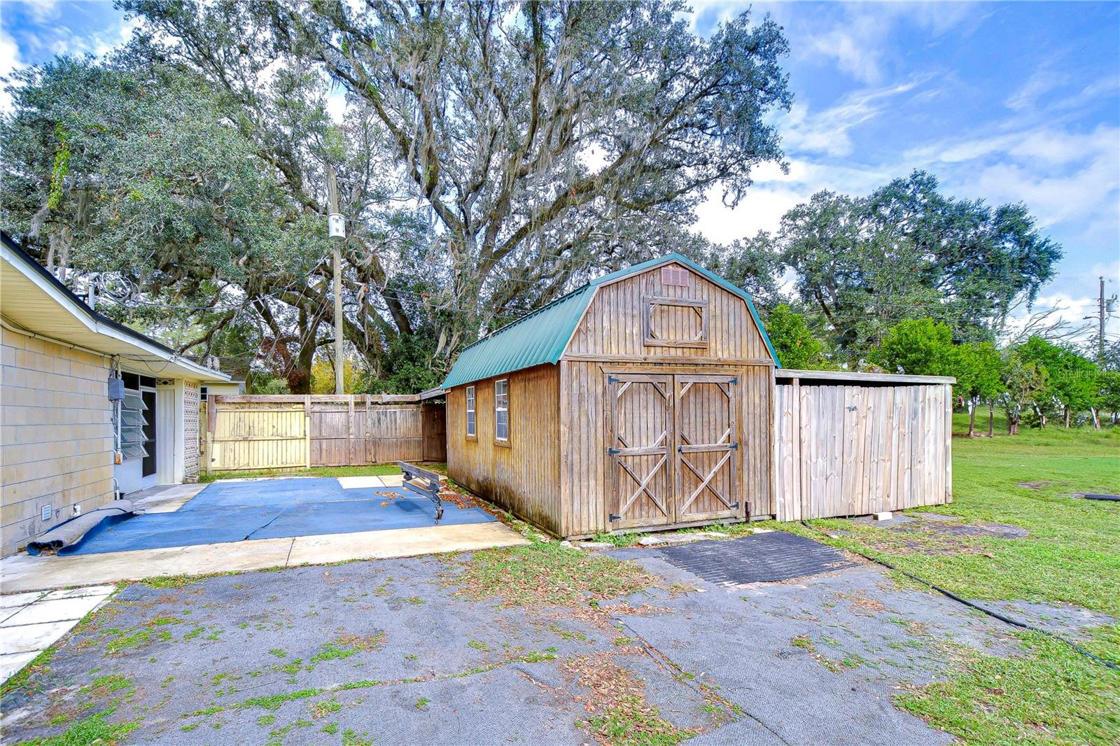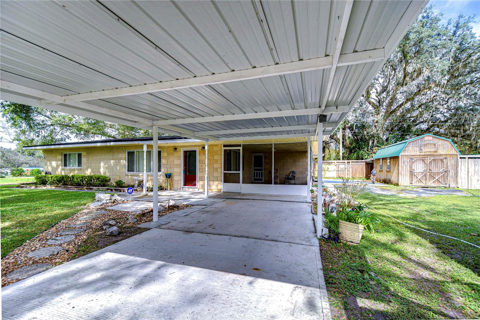 Peaceful, country setting. Corner lot with a cement block home and large oak trees. Walk in the front door to an open floor plan with the living room, dining room and kitchen. The kitchen has been remodeled with newer cabinets, countertops and appliances. The home has three bedrooms and two bathrooms. The ceilings are tongue and groove throughout the home. At the back is a laundry room. The roof was replaced in 2015. The home also has newer wood plank flooring, and cedar closets. The exterior of the home has a fenced back yard, large storage shed and paved driveway PLUS a large side yard. This home has access to I-75 for Ocala and Tampa, SR 50 toward Orlando and US 98 to Lakeland. It is situated near the Withlacoochee River, the trail leading to Inverness, and the Croom hunting preserve! But best of all there is no HOA fee. Don't let this one get away! Call now for an appointment to view this home.