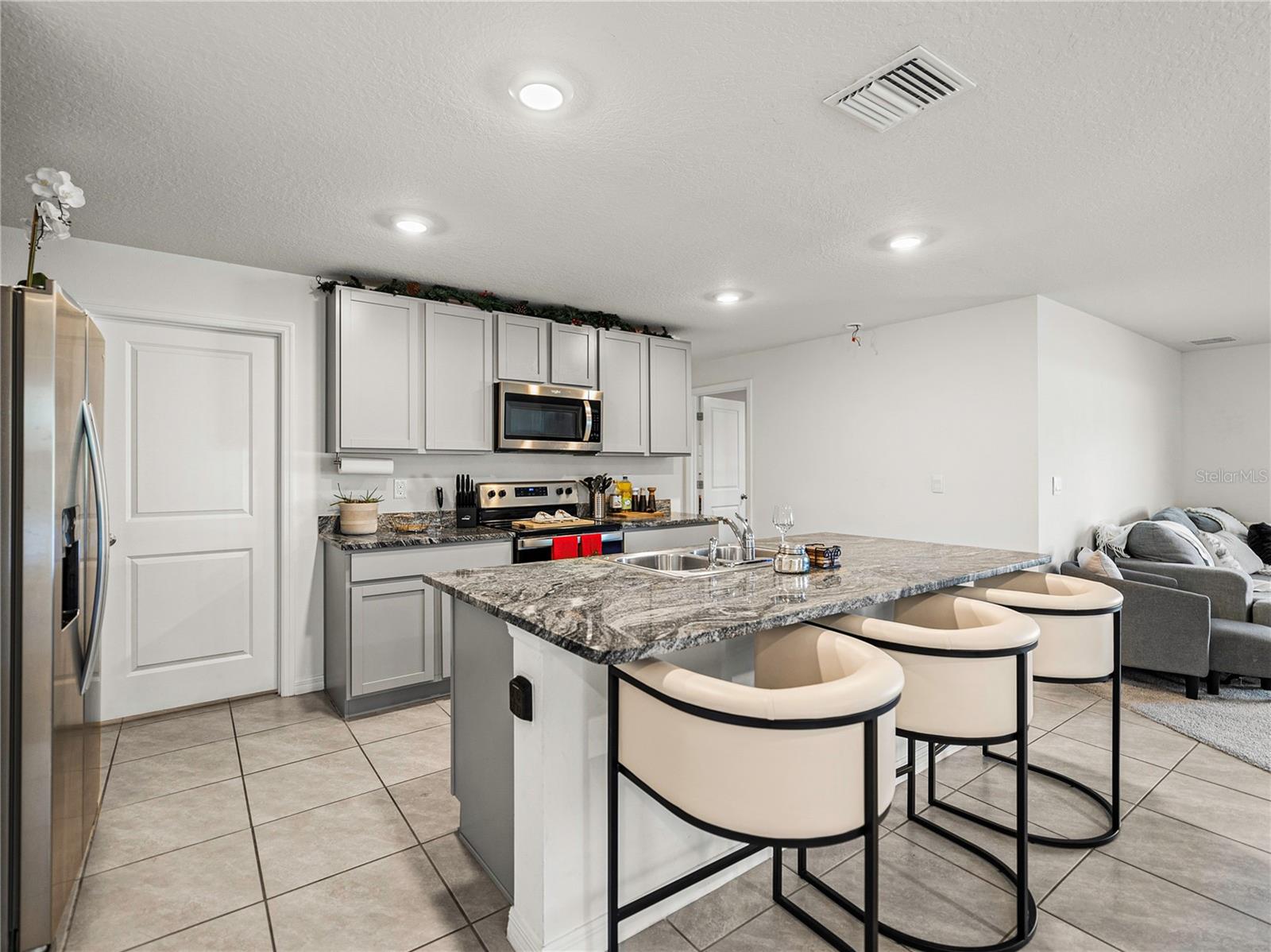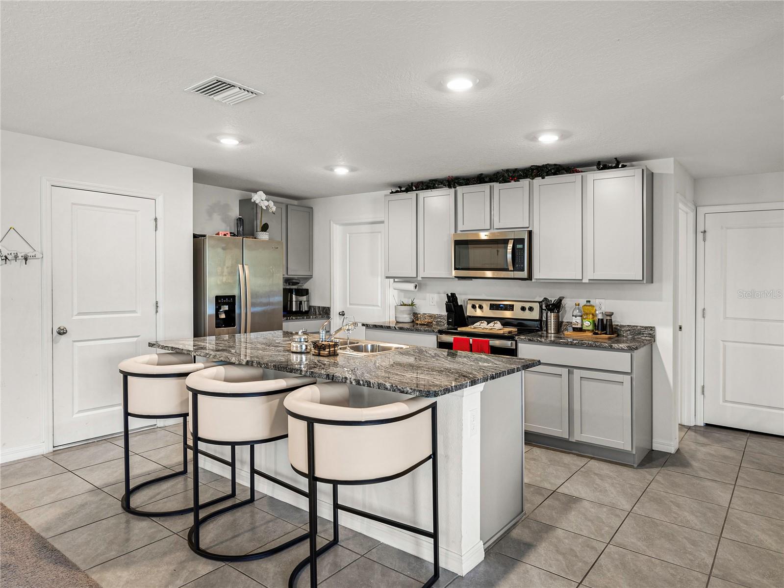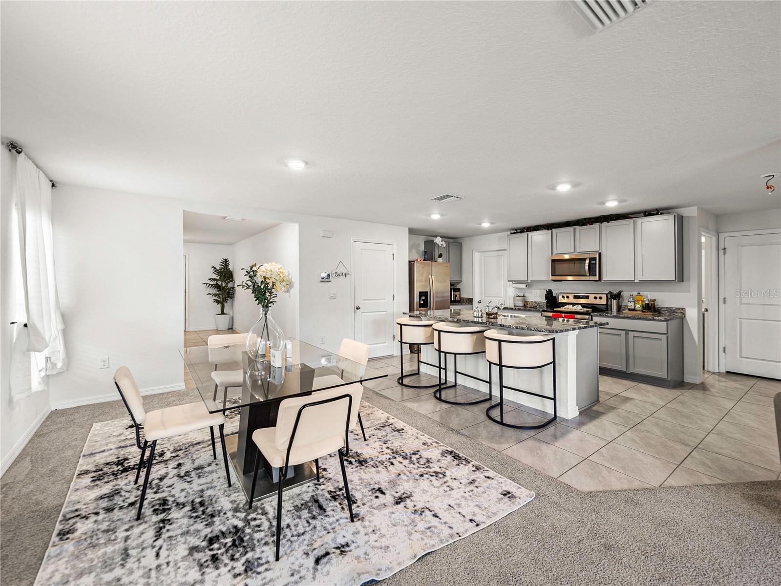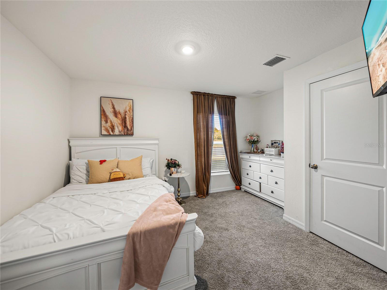 FIVE BEDROOMS UNDER $375,000!!! This spacious move-in ready home is less than 2 years old and offers 5 bedrooms, 3 bathrooms, a bonus room/loft, and a peaceful pond view! Arrive to lovely mature landscaping, sidewalk-lined streets, and a covered front entryway that welcomes you into the home. A sweeping open floor plan filled with natural light and calm, neutral colors makes for a fantastic space to unwind with friends and family. The chef's kitchen features granite countertops, a central island with breakfast bar seating, a massive walk-in pantry, ample prep and storage room, and an easy flow to the dining room, living room, and patio through sliding doors. A first-floor bedroom and full bathroom add appeal as a private guest space. Stroll up the staircase to find the open loft area. This space is incredibly convenient and versatile. It could be a playroom, a second living room, an office, etc. The possibilities are endless!! Secluded from the secondary bedrooms, the primary suite provides a huge walk-in closet, generous sleeping quarters, and an ensuite bathroom with a walk-in shower, dual sinks, a large linen closet, and a water closet. Bedrooms 3-5 are all a great size; they are near the 3rd full bathroom with dual sinks and the 2nd-floor laundry room! Enjoy the spectacular pond view from the backyard, walk down to the playground, or take advantage of Heritage Hills' stellar location - next to Burks Park, and just a short drive to Downtown Dade City, the Mirada lagoon, and major highways. Call us today for more information and your private tour!