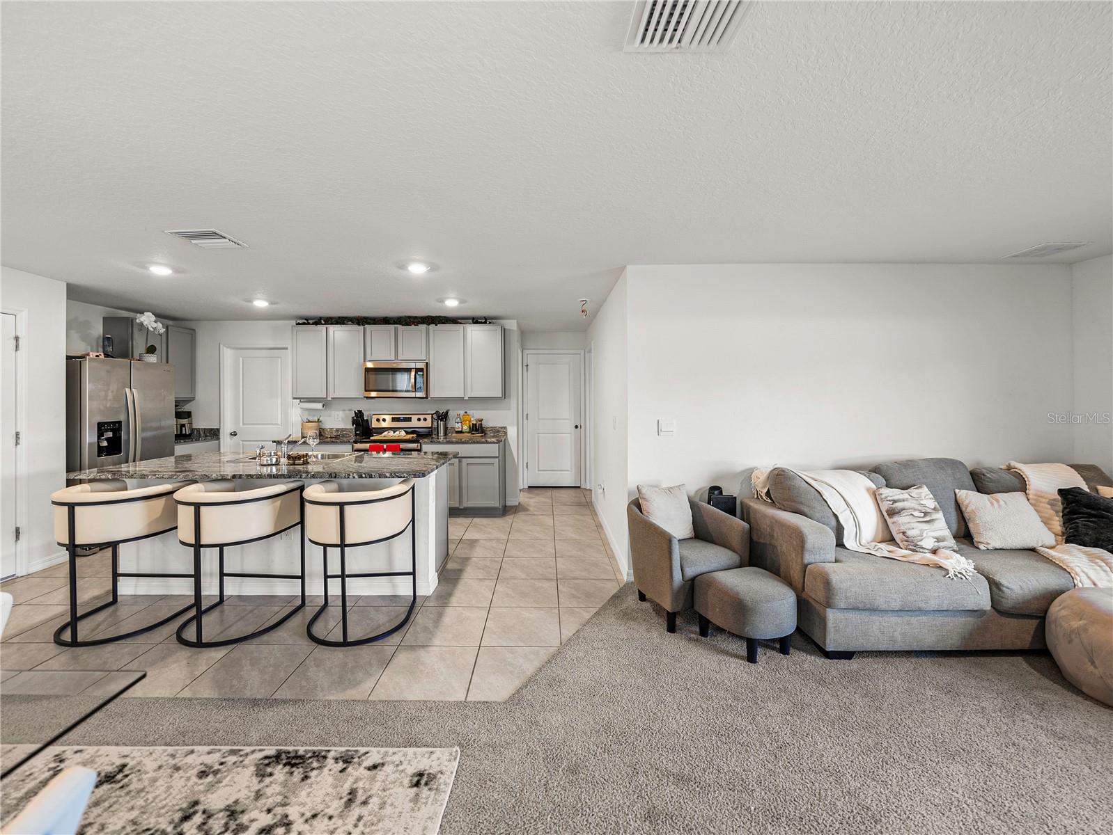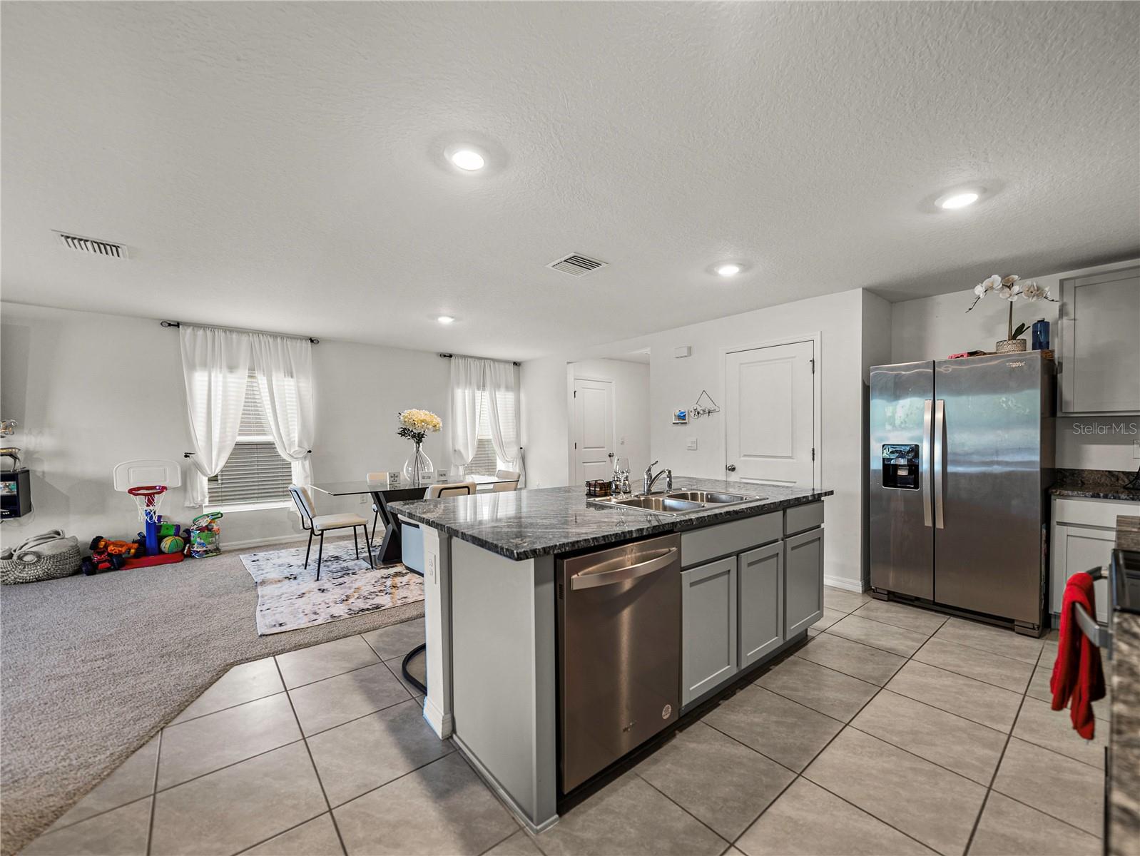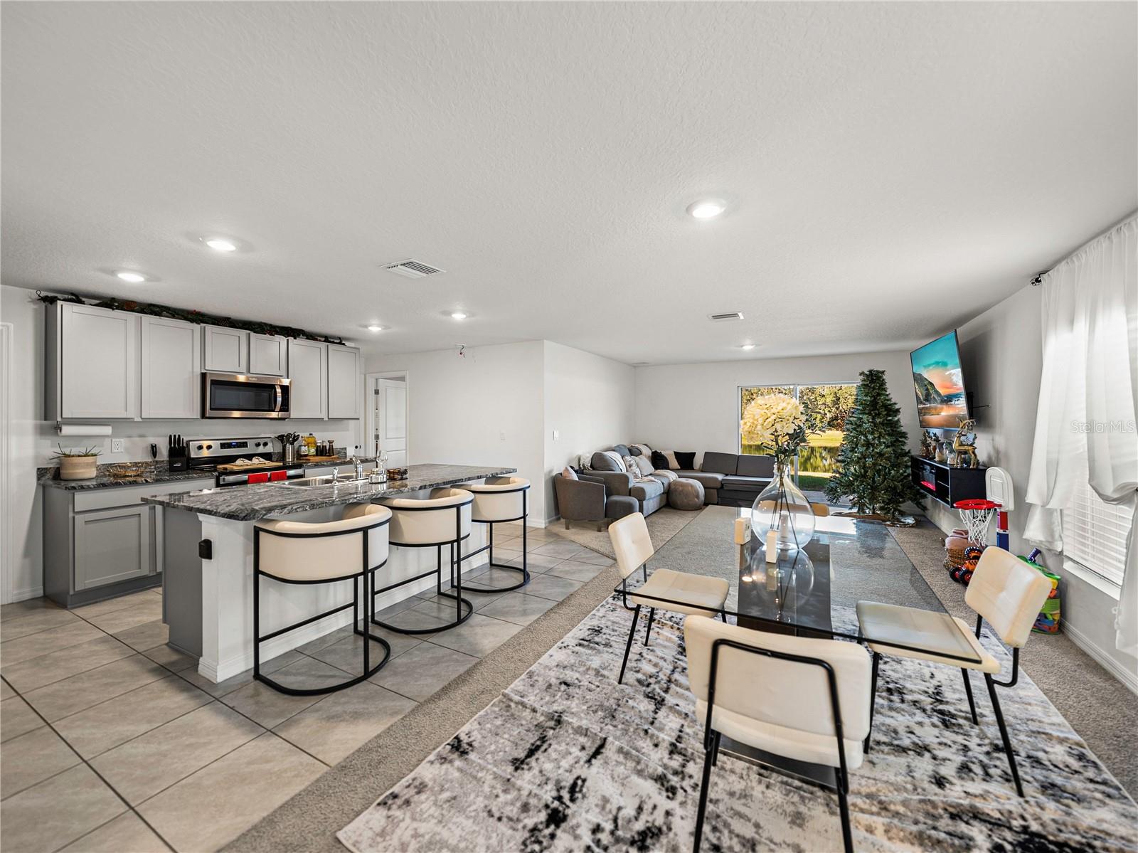 FIVE BEDROOMS UNDER $375,000!!! This spacious move-in ready home is less than 2 years old and offers 5 bedrooms, 3 bathrooms, a bonus room/loft, and a peaceful pond view! Arrive to lovely mature landscaping, sidewalk-lined streets, and a covered front entryway that welcomes you into the home. A sweeping open floor plan filled with natural light and calm, neutral colors makes for a fantastic space to unwind with friends and family. The chef's kitchen features granite countertops, a central island with breakfast bar seating, a massive walk-in pantry, ample prep and storage room, and an easy flow to the dining room, living room, and patio through sliding doors. A first-floor bedroom and full bathroom add appeal as a private guest space. Stroll up the staircase to find the open loft area. This space is incredibly convenient and versatile. It could be a playroom, a second living room, an office, etc. The possibilities are endless!! Secluded from the secondary bedrooms, the primary suite provides a huge walk-in closet, generous sleeping quarters, and an ensuite bathroom with a walk-in shower, dual sinks, a large linen closet, and a water closet. Bedrooms 3-5 are all a great size; they are near the 3rd full bathroom with dual sinks and the 2nd-floor laundry room! Enjoy the spectacular pond view from the backyard, walk down to the playground, or take advantage of Heritage Hills' stellar location - next to Burks Park, and just a short drive to Downtown Dade City, the Mirada lagoon, and major highways. Call us today for more information and your private tour!