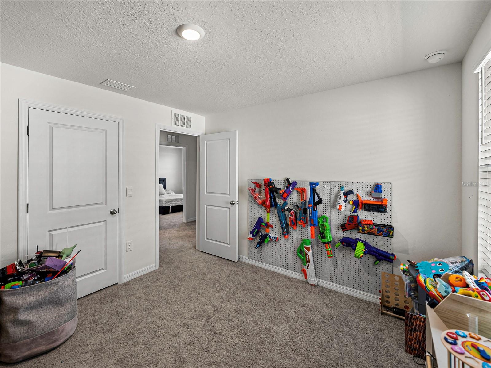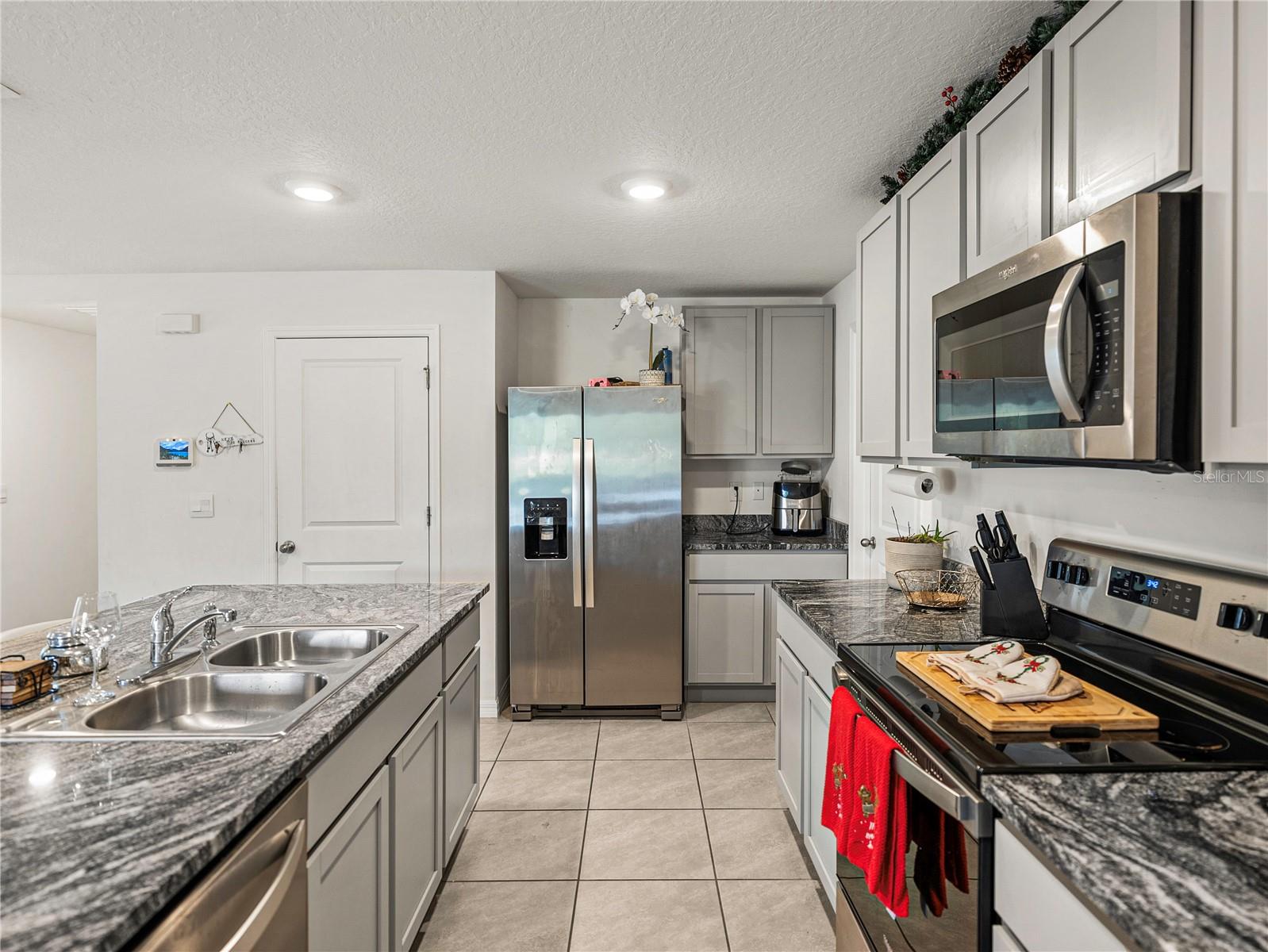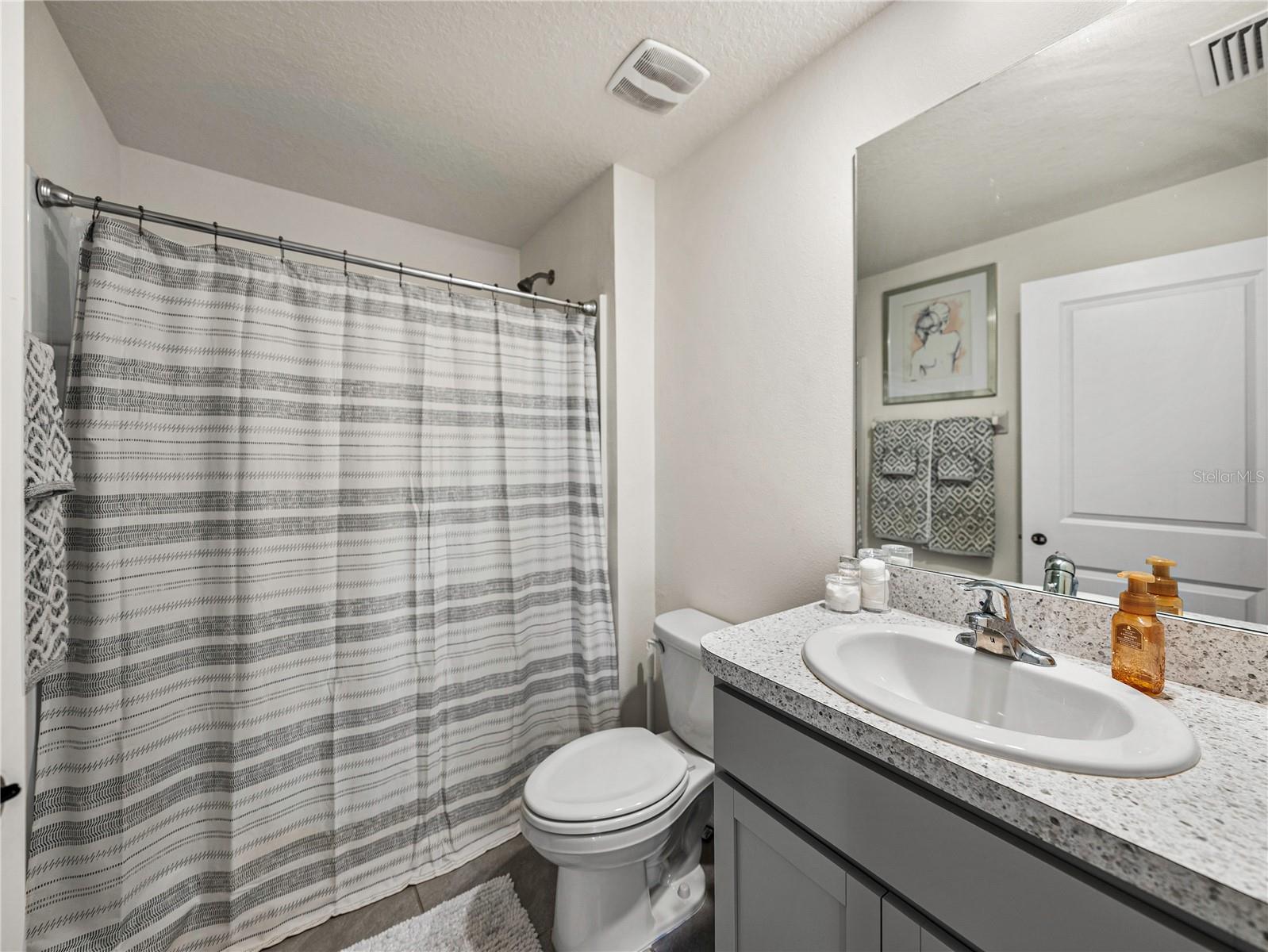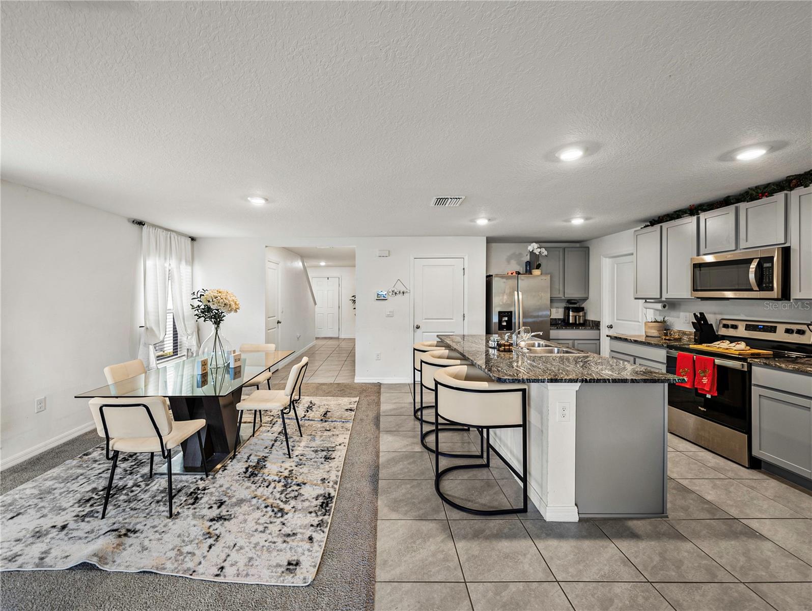 FIVE BEDROOMS UNDER $375,000!!! This spacious move-in ready home is less than 2 years old and offers 5 bedrooms, 3 bathrooms, a bonus room/loft, and a peaceful pond view! Arrive to lovely mature landscaping, sidewalk-lined streets, and a covered front entryway that welcomes you into the home. A sweeping open floor plan filled with natural light and calm, neutral colors makes for a fantastic space to unwind with friends and family. The chef's kitchen features granite countertops, a central island with breakfast bar seating, a massive walk-in pantry, ample prep and storage room, and an easy flow to the dining room, living room, and patio through sliding doors. A first-floor bedroom and full bathroom add appeal as a private guest space. Stroll up the staircase to find the open loft area. This space is incredibly convenient and versatile. It could be a playroom, a second living room, an office, etc. The possibilities are endless!! Secluded from the secondary bedrooms, the primary suite provides a huge walk-in closet, generous sleeping quarters, and an ensuite bathroom with a walk-in shower, dual sinks, a large linen closet, and a water closet. Bedrooms 3-5 are all a great size; they are near the 3rd full bathroom with dual sinks and the 2nd-floor laundry room! Enjoy the spectacular pond view from the backyard, walk down to the playground, or take advantage of Heritage Hills' stellar location - next to Burks Park, and just a short drive to Downtown Dade City, the Mirada lagoon, and major highways. Call us today for more information and your private tour!