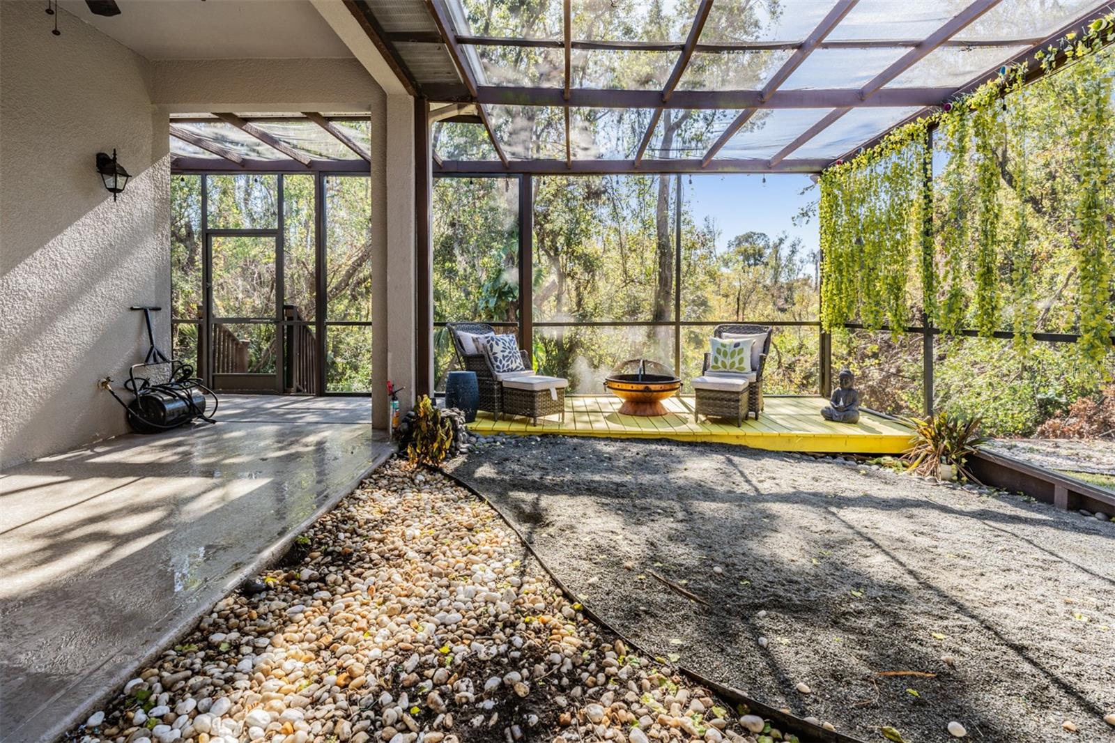 LIMITED TIME ONLY!!! October 11th thru October 20. PRICED to SELL below appraised value! Adjusted for QUICK SALE due to Seller Relocating….BRING ALL OFFERS! BEST VALUE in Lake Jovita Golf & Country Club! NATURE LOVERS private retreat awaits….Peace and Serenity abounds in this home which backs up to dense wooded backdrop in the GATED community of Lake Jovita Golf & Country Club! Situated on a premium conservation lot, this thoughtfully updated 4-bedroom, 2.5-bath, 2-car garage home offers privacy, serenity, and impressive upgrades. As you approach, you'll notice the extra wide lot, concrete front patio and double front doors, which open into a spacious, single-level floor plan filled with natural light and designer details. Arches, niches, accent walls and Recent upgrades include a newer Roof (2022), LVP luxury vinyl plank floors throughout the home, a fully remodeled kitchen with two-tone cabinets, granite countertops, stainless steel appliances, contrasting glass tile backsplash, pendant lighting, and a unique vintage tile floor. The open-concept layout features a large great room with an accent wall, welcoming foyer, dining room, and eat-in kitchen... ideal for entertaining plus everyday living. The owner’s suite is a true retreat, complete with a spacious bedroom, a spa-like bath with a soaking tub, double vanities, separate shower, and a custom walk-in closet featuring custom closet organizers. A stunning $20,000 window frames views of the tranquil conservation lot, bringing the outdoors in!! The additional three bedrooms and a full bath provide ample space for guests, family, or a home office. A beautifully updated powder room features a glass accent wall, pedestal sink and floor-to-ceiling ceramic tile for an upscale touch. Step outside to enjoy your own peaceful sanctuary....Relax on your expanded screened-in lanai overlooking a wooded conservation area, offering complete privacy and the feel of a Zen garden—perfect for morning coffee, meditation or evening relaxation. A pool, hot tub, water feature, playground or pet park could easily be added in this space. The backyard includes a wooden deck with space for a firepit, making it ideal for outdoor gatherings. The garage has been upgraded with built-in cabinets, shelves and overhead racks, giving you plenty of storage space. Golf cart is negotiable, making it easy to enjoy the full Lake Jovita Golf and Country Club lifestyle. Located in The Preserve, with walking trail at the end of the street, to access ball fields, tennis courts and WELLNESS Center at Saint Leo via Golf cart! Lake Jovita is a premier, gated, resort-style community just 20 minutes from North Tampa, with easy access to major highways for easy commute to Orlando, Ocala, Tampa, Saint Pete, Airports and the Beaches. Optional memberships provide access to two championship 18-hole golf courses, a Junior Olympic-sized swimming pool, Har-Tru clay tennis courts, state-of-the-art fitness center, clubhouse and social events. Low quarterly HOA includes use of playground, dog parks and community walking trails with exercise stations, pickleball, tennis and basketball courts. This MOVE IN ready home combines a serene natural setting with resort-style amenities, in one of Florida’s most picturesque and welcoming communities. Don’t miss your opportunity to experience the lifestyle you deserve with a tranquil outdoor space…. CALL TODAY!