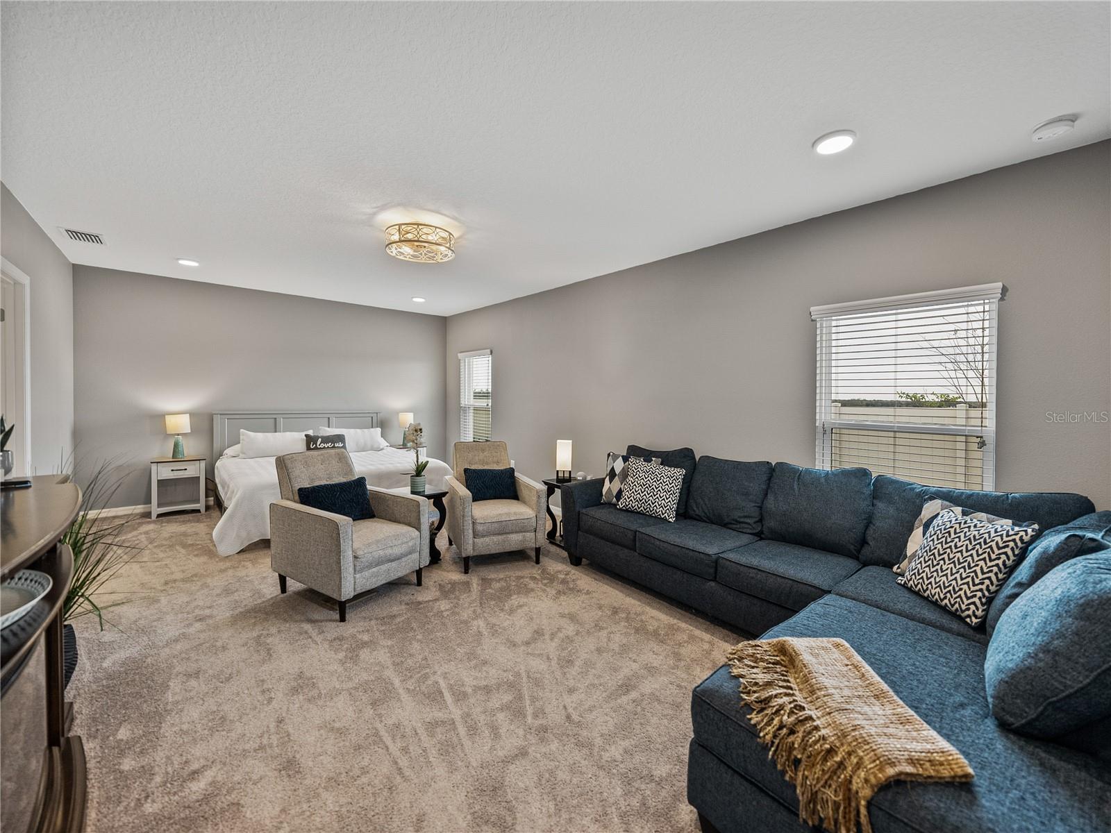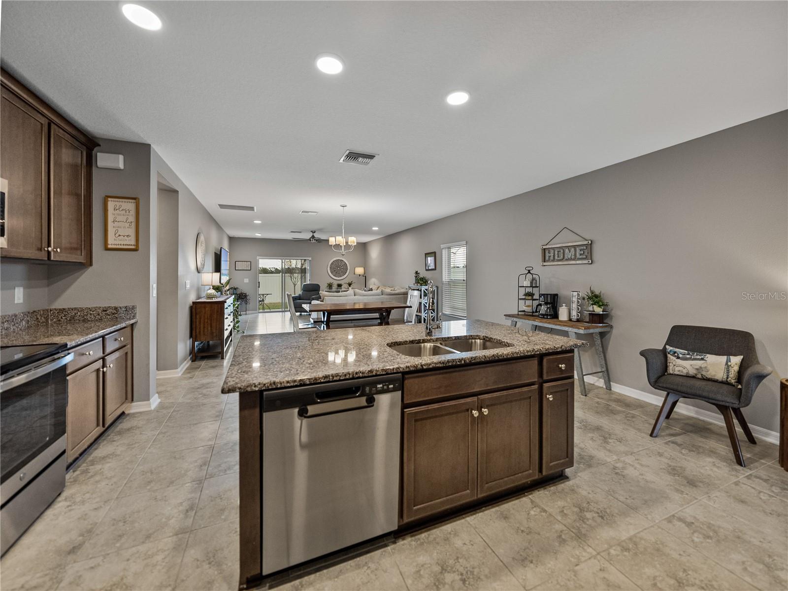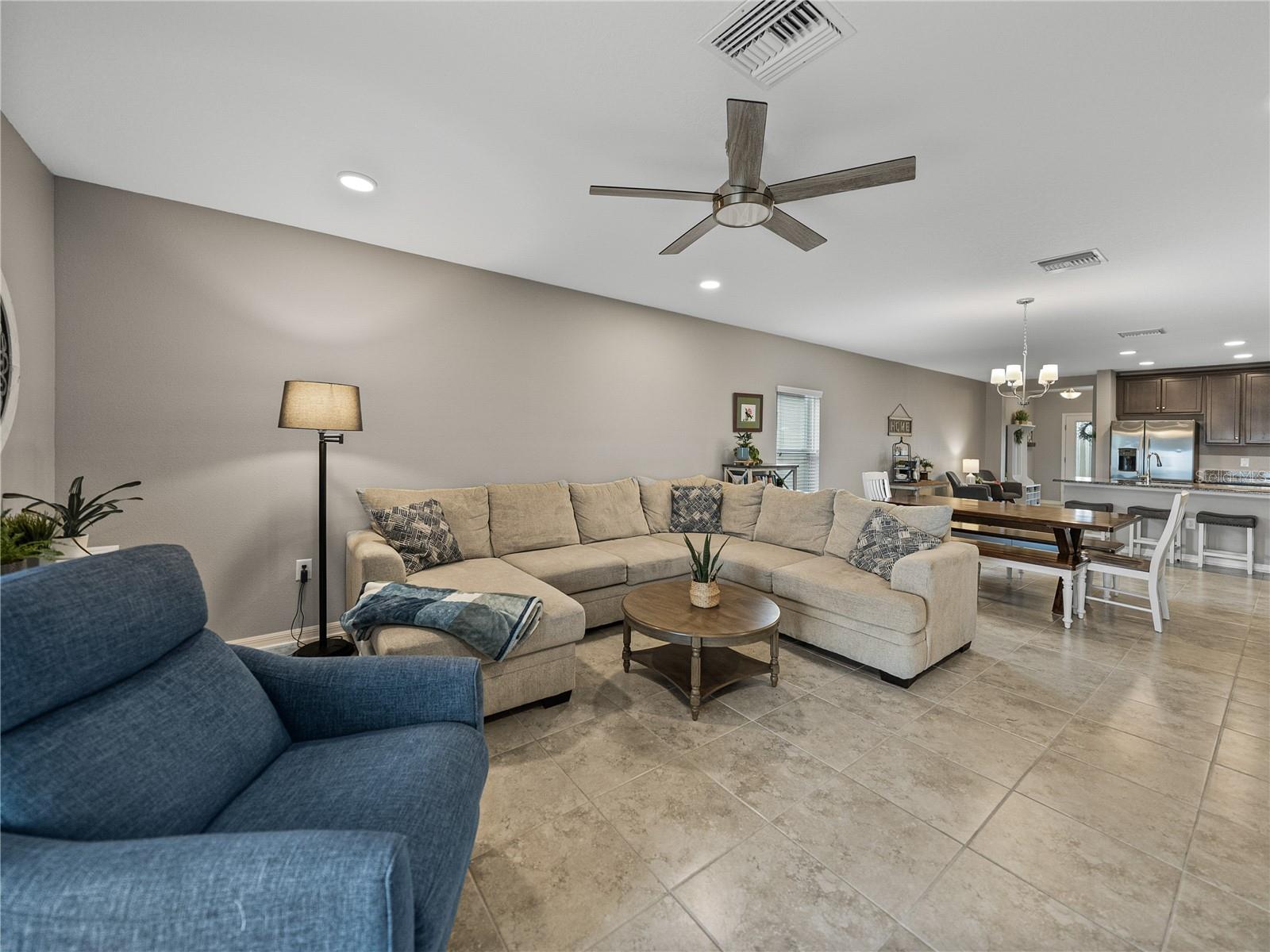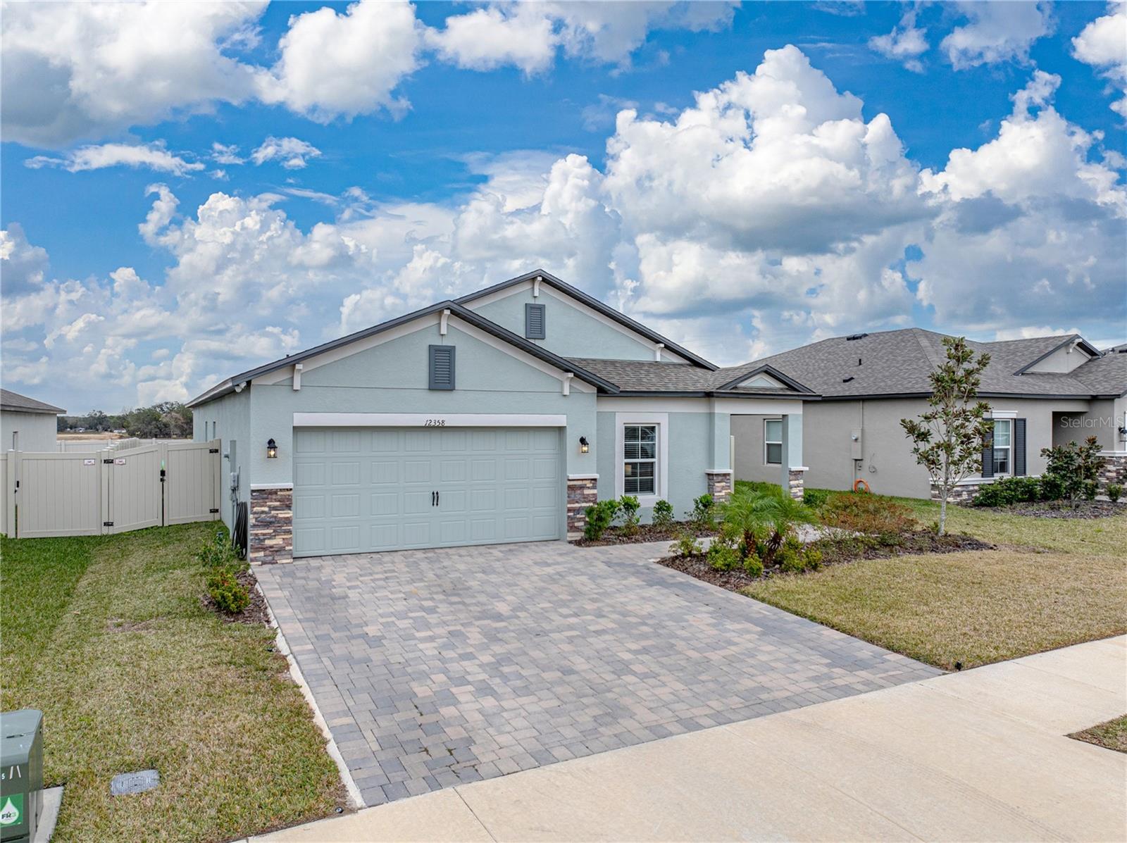 Don't wait on new construction! This like-new 3 bedroom, 2 bath, 2 car garage + bonus room home was built in 2023 and offers a flexible floor plan, a privacy fenced yard, thoughtful upgrades, and a stellar location!! Set within Hilltop Point, one of Dade City's newest communities, this stunning property welcomes you with sidewalk-lined streets, a widened paver drive, eye-catching stone accents, mature landscaping, and a covered entryway. Inside, you will immediately appreciate the sweeping open-concept living spaces, which makes comfortable entertaining a breeze. The chef's kitchen features granite countertops, a central island with breakfast bar seating, a walk-in pantry, stainless steel appliances, and views of the dining room, living room, and covered back patio through a set of sliding glass doors. A large bonus room with plush carpeting, a ceiling fan, and barn door access is set near the front of the home and is currently used as a bedroom. The expansive 22x13 primary suite is secluded from the other bedrooms. It offers a large seating area, spacious sleeping quarters, and an ensuite bathroom with dual sinks, an oversized walk-in shower, a water closet, and a walk-in closet. Bedrooms 2 and 3 are tucked away near the laundry room, garage, and the home's 2nd full bathroom with a tub/shower combo. The current owner has lovingly updated this property with a new front door, new light fixtures, the barn door on the bonus room, a vinyl privacy fence, and a widened driveway. Hilltop Point is a centrally located Dade City community, just minutes from downtown and a short drive to the highway. Residents here enjoy access to the sparkling swimming pool, a covered seating/entertaining space, a playground, and a pet area. Call us today for your private showing of this fantastic home!