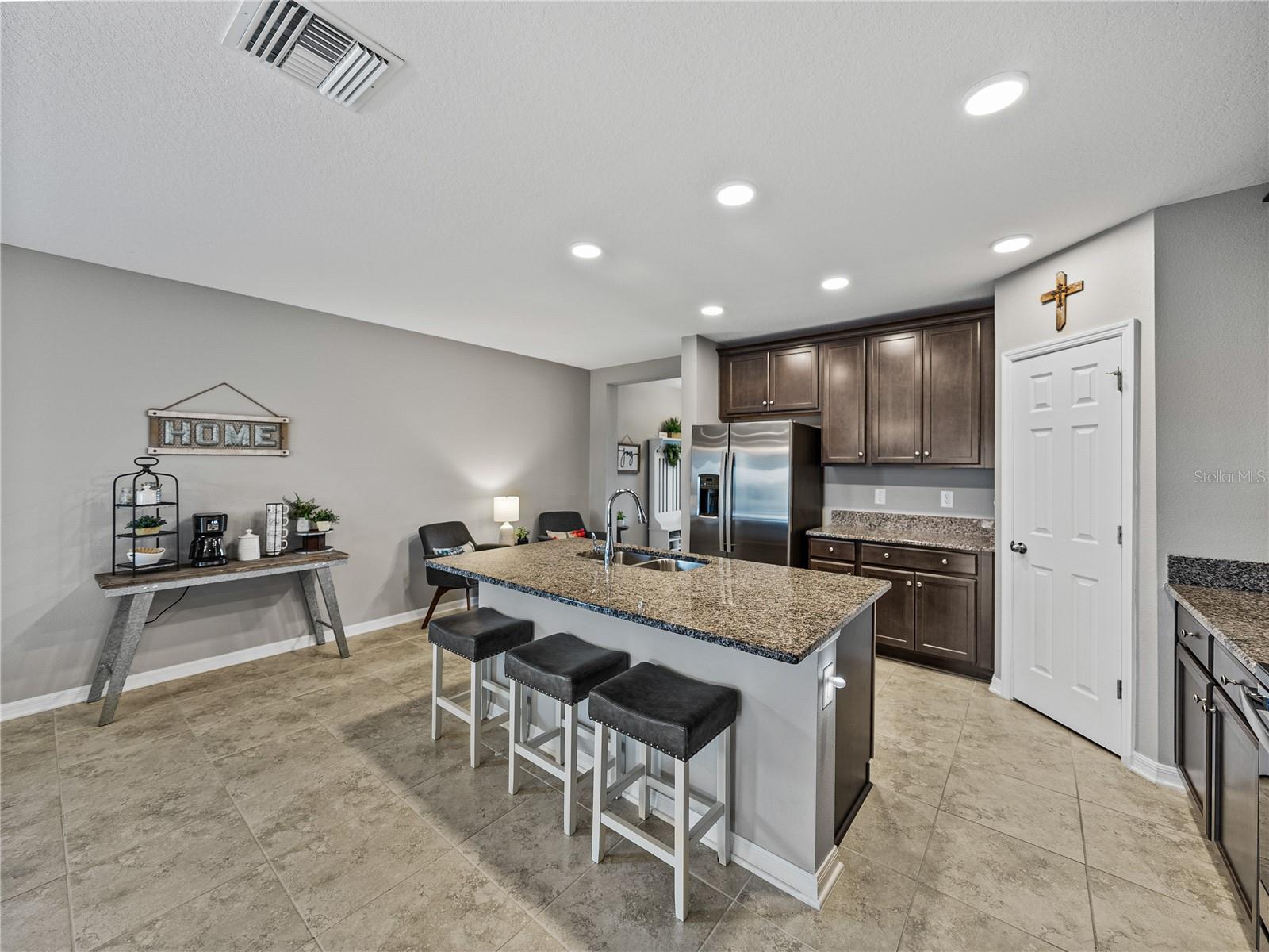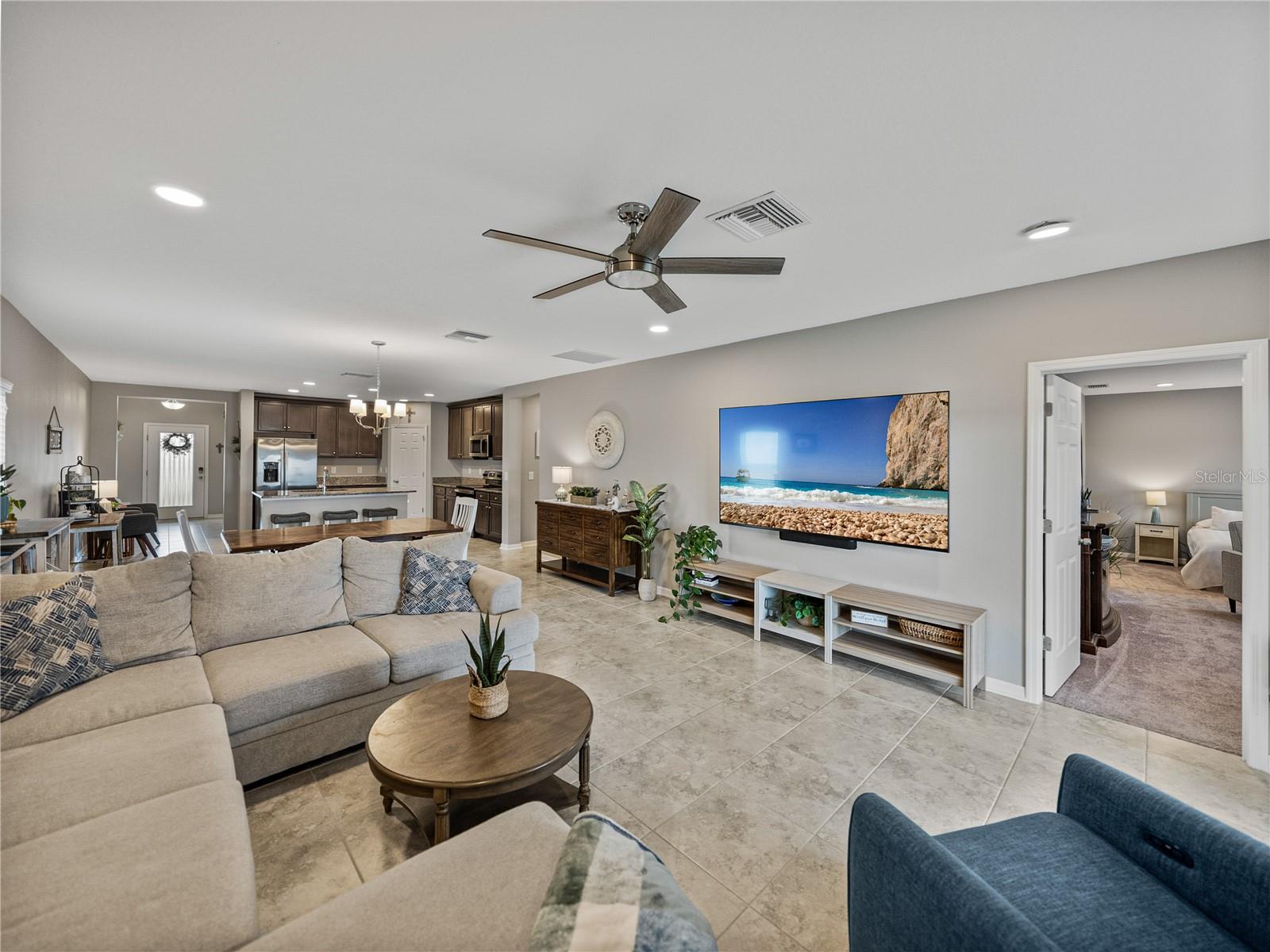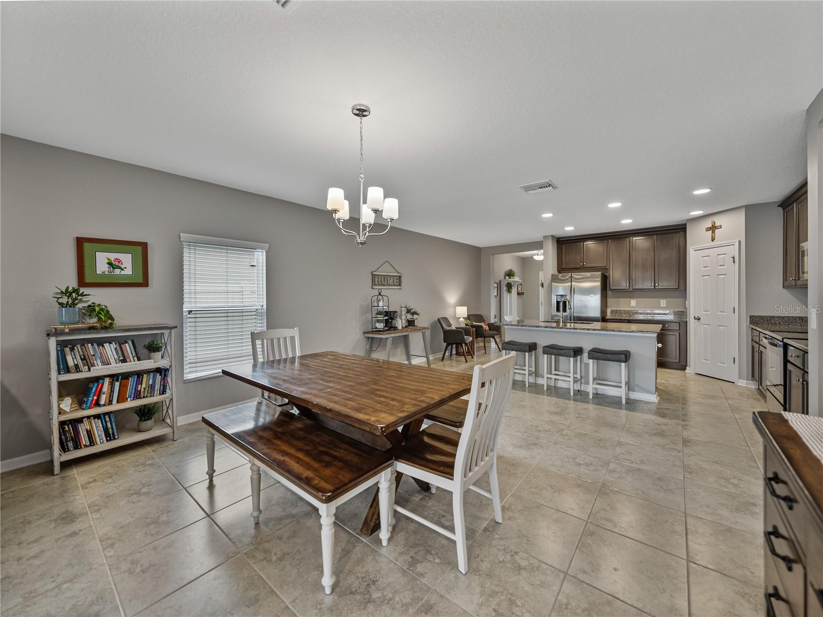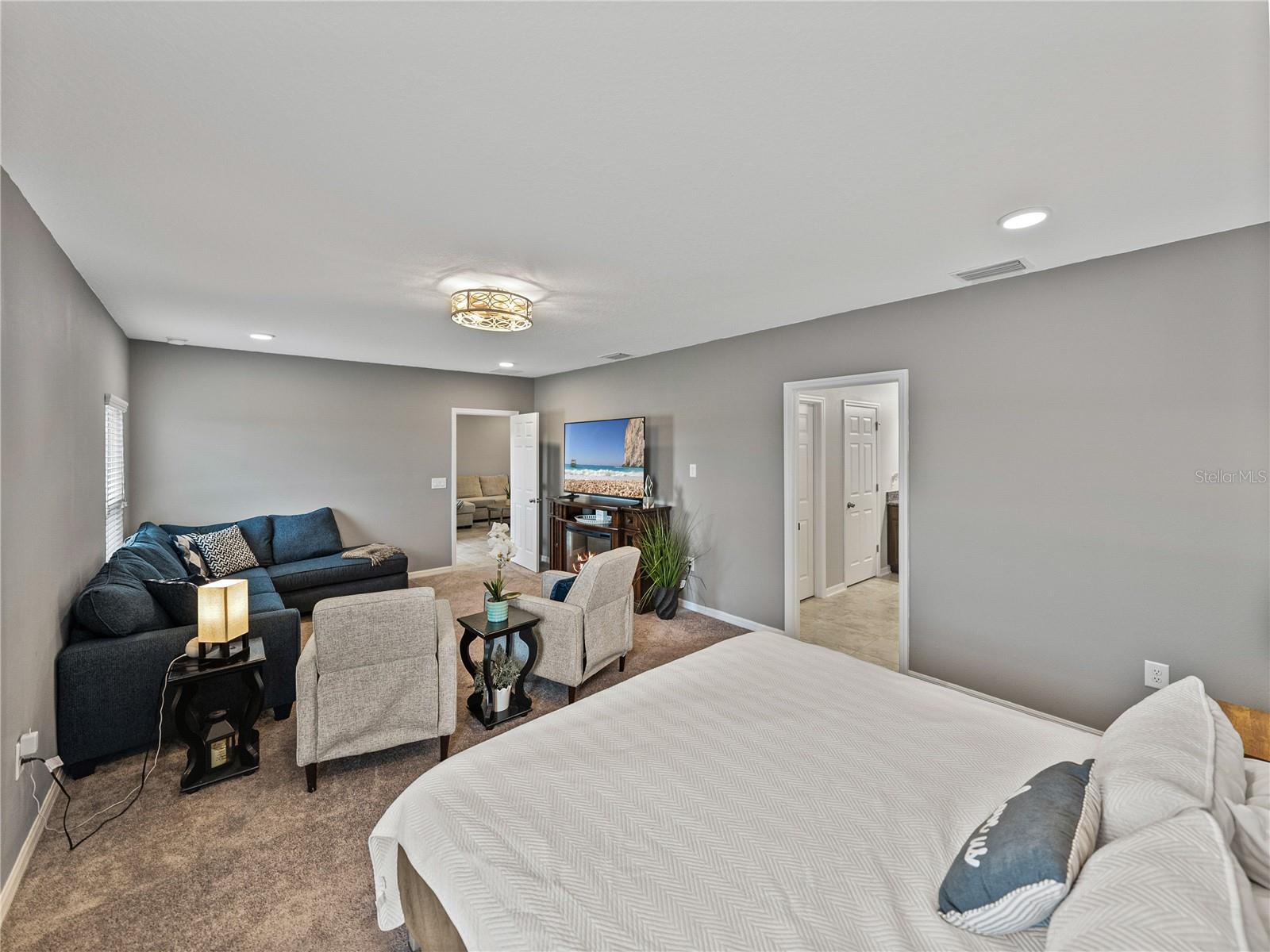 Don't wait on new construction! This like-new 3 bedroom, 2 bath, 2 car garage + bonus room home was built in 2023 and offers a flexible floor plan, a privacy fenced yard, thoughtful upgrades, and a stellar location!! Set within Hilltop Point, one of Dade City's newest communities, this stunning property welcomes you with sidewalk-lined streets, a widened paver drive, eye-catching stone accents, mature landscaping, and a covered entryway. Inside, you will immediately appreciate the sweeping open-concept living spaces, which makes comfortable entertaining a breeze. The chef's kitchen features granite countertops, a central island with breakfast bar seating, a walk-in pantry, stainless steel appliances, and views of the dining room, living room, and covered back patio through a set of sliding glass doors. A large bonus room with plush carpeting, a ceiling fan, and barn door access is set near the front of the home and is currently used as a bedroom. The expansive 22x13 primary suite is secluded from the other bedrooms. It offers a large seating area, spacious sleeping quarters, and an ensuite bathroom with dual sinks, an oversized walk-in shower, a water closet, and a walk-in closet. Bedrooms 2 and 3 are tucked away near the laundry room, garage, and the home's 2nd full bathroom with a tub/shower combo. The current owner has lovingly updated this property with a new front door, new light fixtures, the barn door on the bonus room, a vinyl privacy fence, and a widened driveway. Hilltop Point is a centrally located Dade City community, just minutes from downtown and a short drive to the highway. Residents here enjoy access to the sparkling swimming pool, a covered seating/entertaining space, a playground, and a pet area. Call us today for your private showing of this fantastic home!