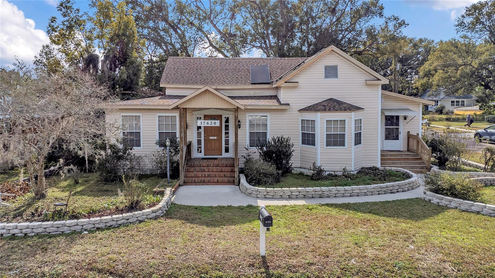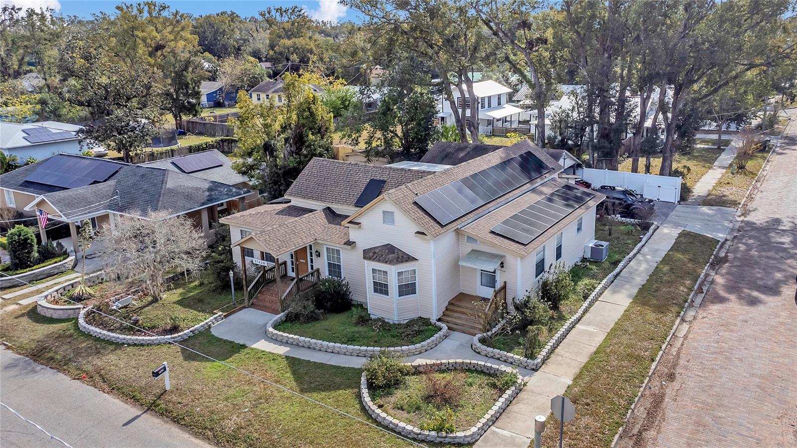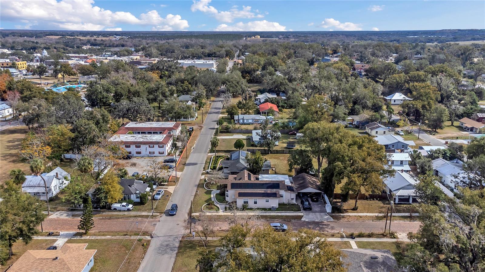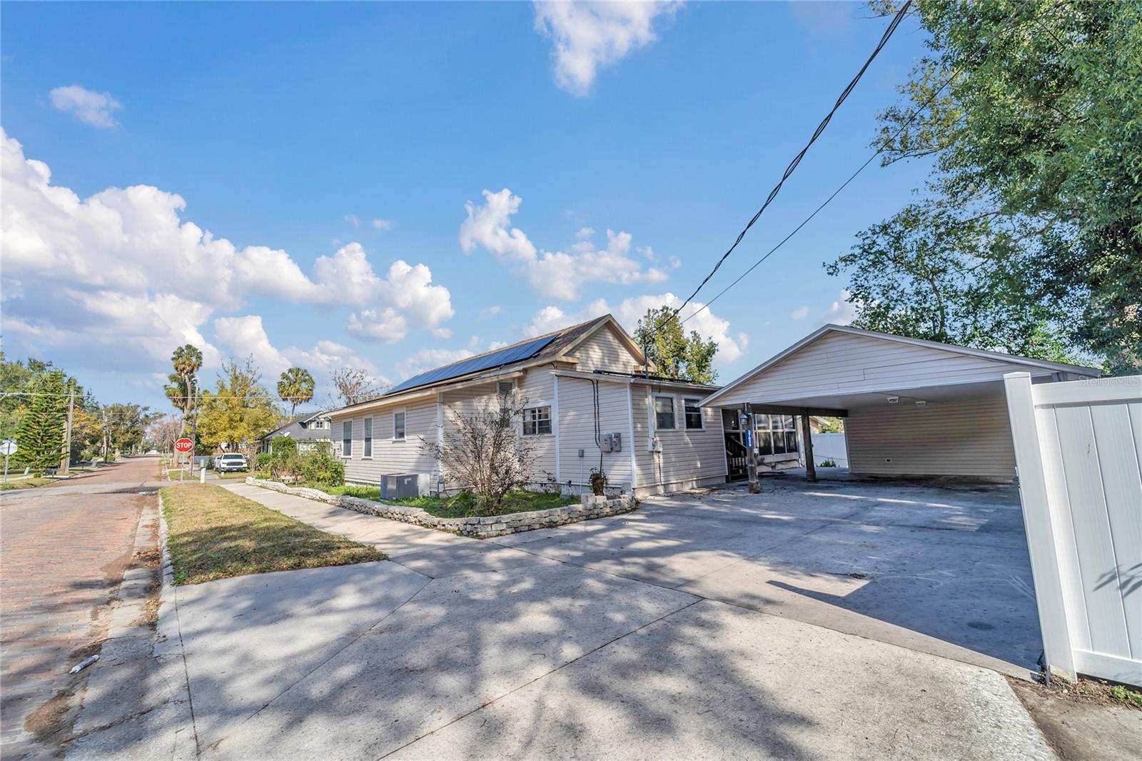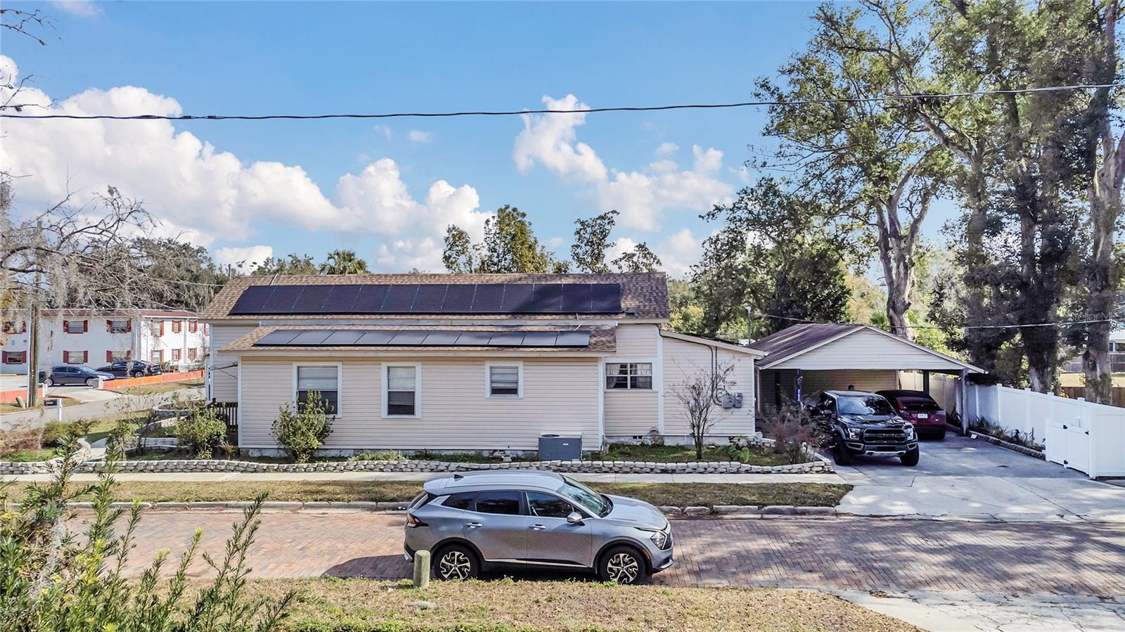 This historic home in Dade City has been recently remodeled. This property has 2 units and are attached side by side. This property is located on a large corner lot in the highly sought after Historic Downtown Dade City area. The main house features 3 bedrooms, 3 baths including 2 spacious master suites. The kitchen opens up to the dining and family room perfect for entertaining on any scale. The main house upgrades features upgraded flooring, new plumbing, electrical, new paint, a brand new marble look bathroom and upgraded chefs kitchen. The pantry room/utility room adjoins the kitchen. The second unit features 1 bedroom, 1 bathroom and a full kitchen, with washer/Dryer. This unit is perfect for guests or to help pay your mortgage. The lovely long porch area is perfect to enjoy Florida weather. The roof was done in 2019 and both HVAC and AC units are newer and in great condition. The carport is large enough for 4 vehicles. Also there is a large shed that can be used for storage. Completing this home is a solar panel system that is owned outright and creates a very minimal electric bill. The property is close proximity to many hospitals, schools and downtown. The property is 15 minutes to the biggest Lagoon and 20 minutes from one of America’s and Florida’s #1 skydiving center. Do not miss seeing this! Schedule your tour today!