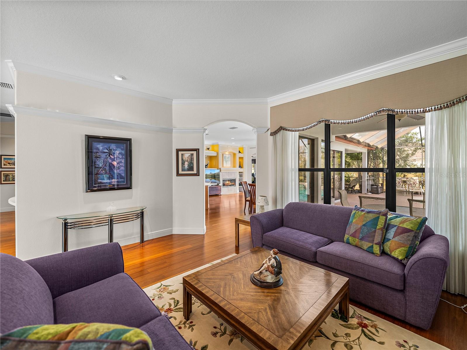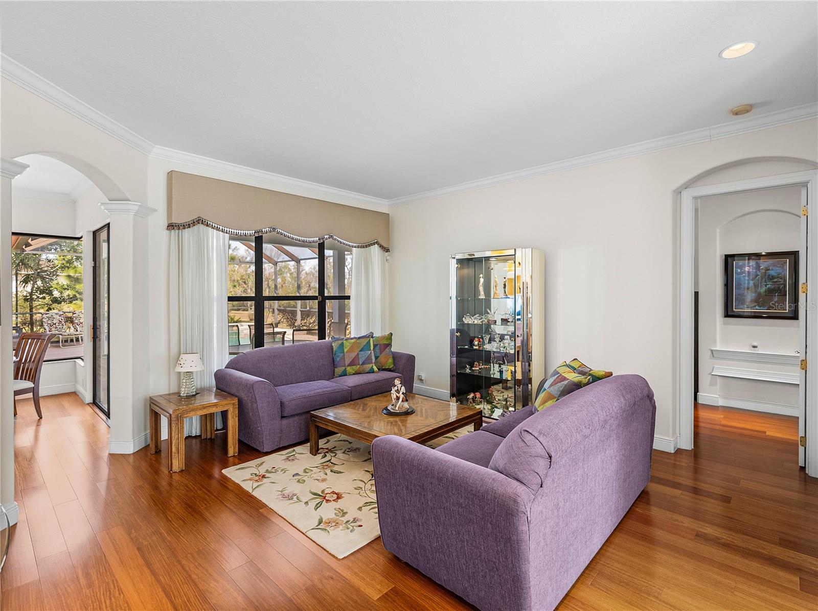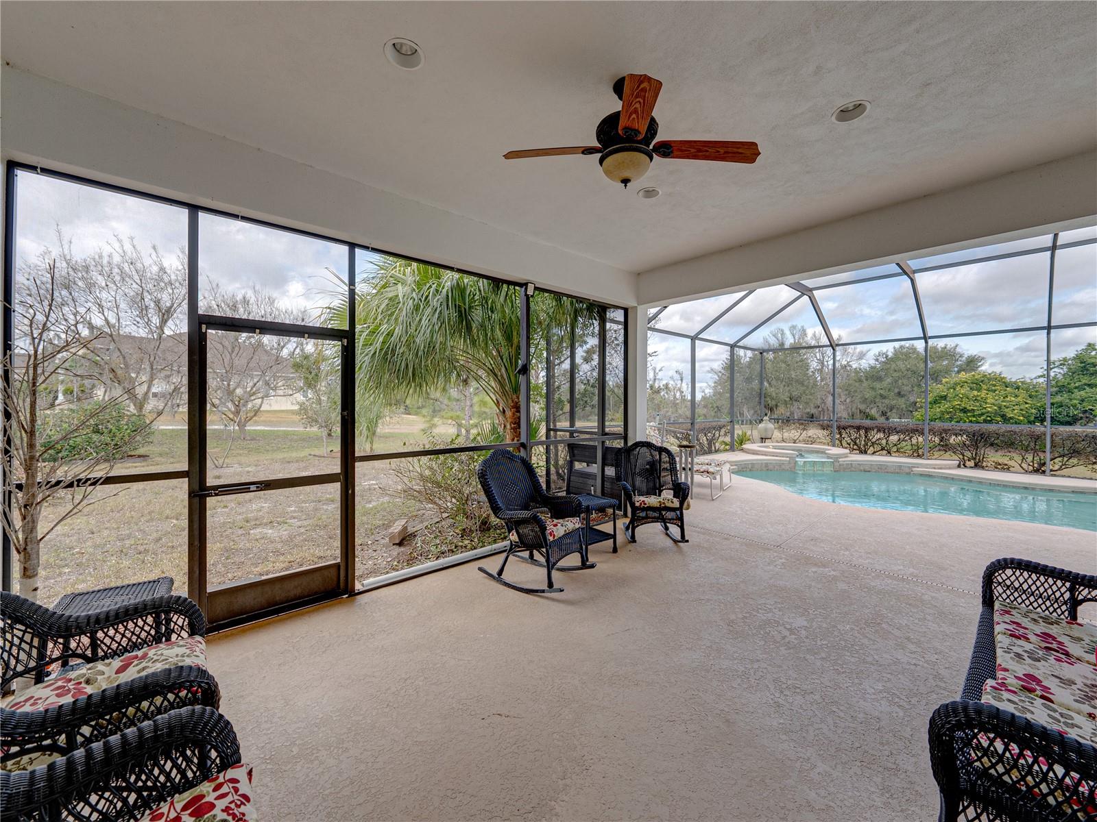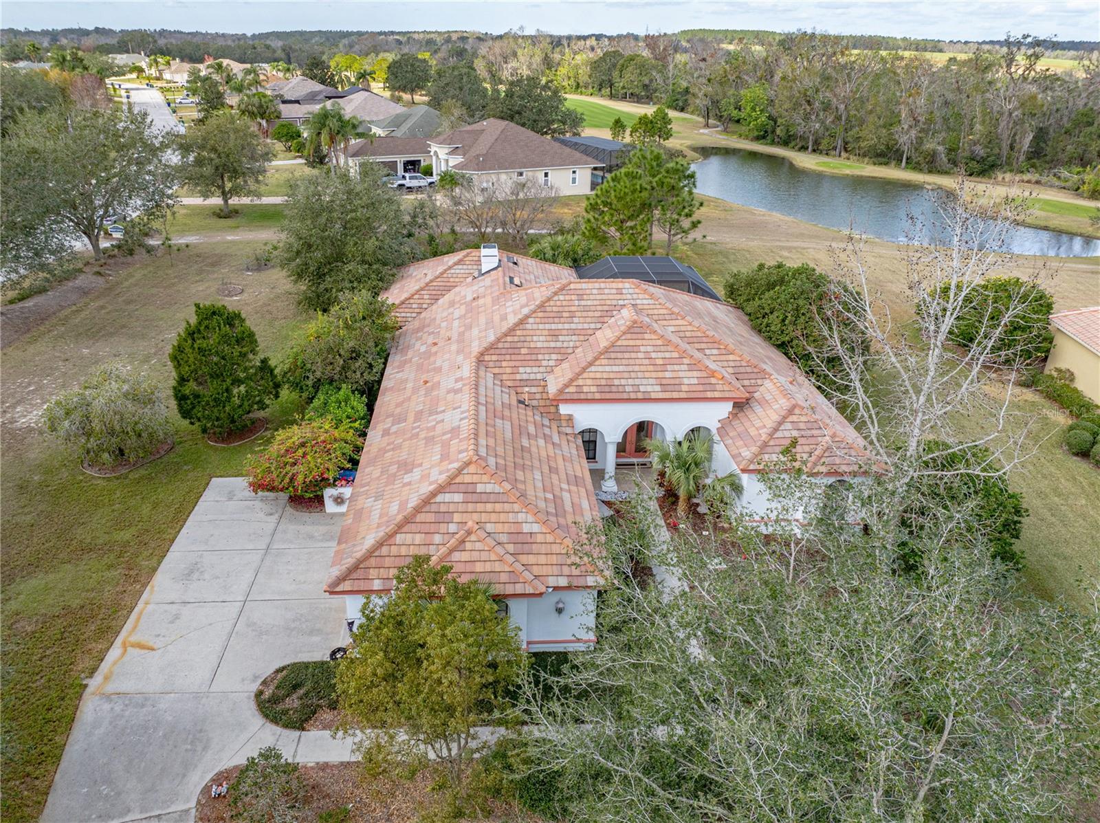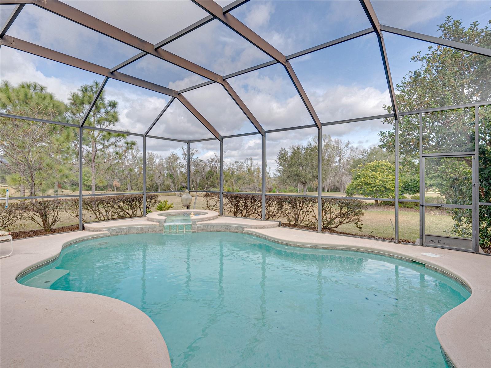 Welcome home. This expansive corner lot, 4 bedroom, 3 bath + office and den, Lake Jovita pool home rests on nearly an acre of land with a sensational view of the North course's 14th tee box and a peaceful pond. Classic and inviting, this customized Arthur Rutenberg residence greets you with a lovingly maintained landscape, a 3 car side-facing garage, and a covered entryway that leads into the grand foyer. High ceilings, crown molding, wood flooring, and ample natural light provide character and warmth to the space. A generous formal living room and dining room are near the front of the home for intimate gatherings. An oversized kitchen with Corian countertops, wood cabinetry, a central island, breakfast bar seating, an eat-in dinette, a pass-through bar to the dining room, and a large pantry overlook the family room. This room is the epitome of indoor/outdoor living with two sets of quadruple sliding doors that open to the pool deck welcoming the fresh Florida air inside. The bonus room down the hallway is plumbed for a bar and near a full bathroom and a guest bedroom, creating an opportunity to extend your entertaining space or turn it into a private in-law suite! Tucked away on the north side of the property is the spacious owner's retreat featuring private access to the dedicated office, a large walk-in closet, and a luxurious ensuite bathroom with a comfortable soaking tub, a walk-in shower, two sinks, an island, and chandelier lighting. Bedrooms 3 and 4 share a full bathroom with a tub/shower combo in between. Storage is no issue!! Three large closets line the hallway to the laundry room and garage. An outdoor oasis accompanies this beautiful home and flexible floor plan. Overlooking the beautiful Lake Jovita landscape, the pool deck provides multiple covered seating areas, a pool, and a spa. Lake Jovita is a resort- style community with a 24-hour manned gate, a playground, a park, pickleball courts, and walking trails. Optional membership packages to the Lake Jovita Golf and Country Club include access to 2 world-class 18-hole golf courses, a Junior Olympic-sized swimming pool, a fitness center, a clubhouse, a restaurant, social clubs, and more! Call us today for your private showing!