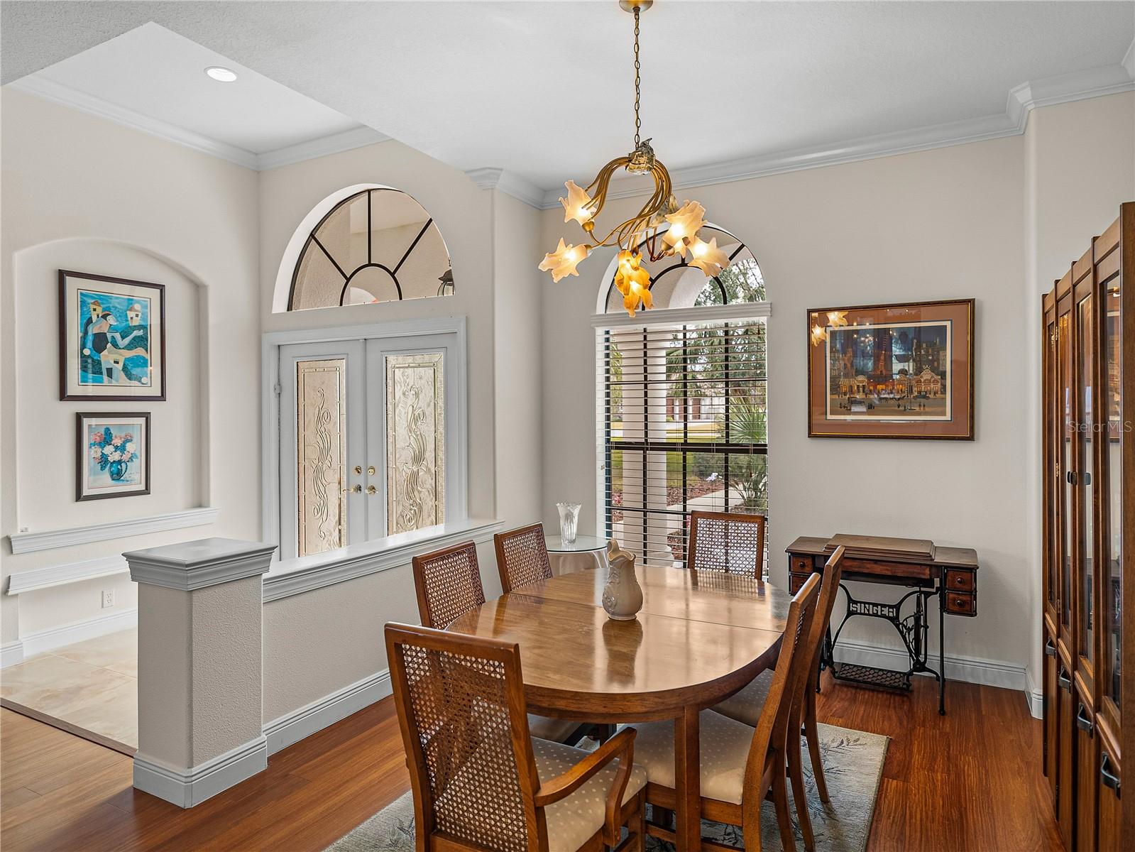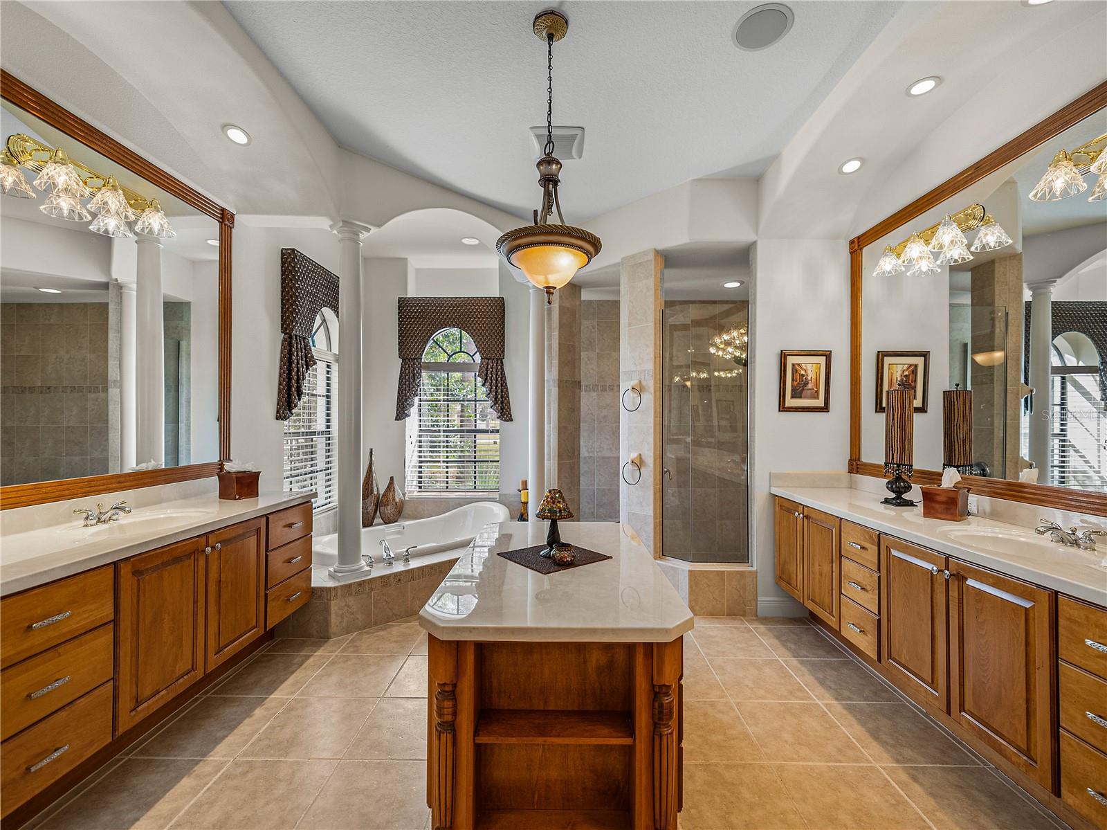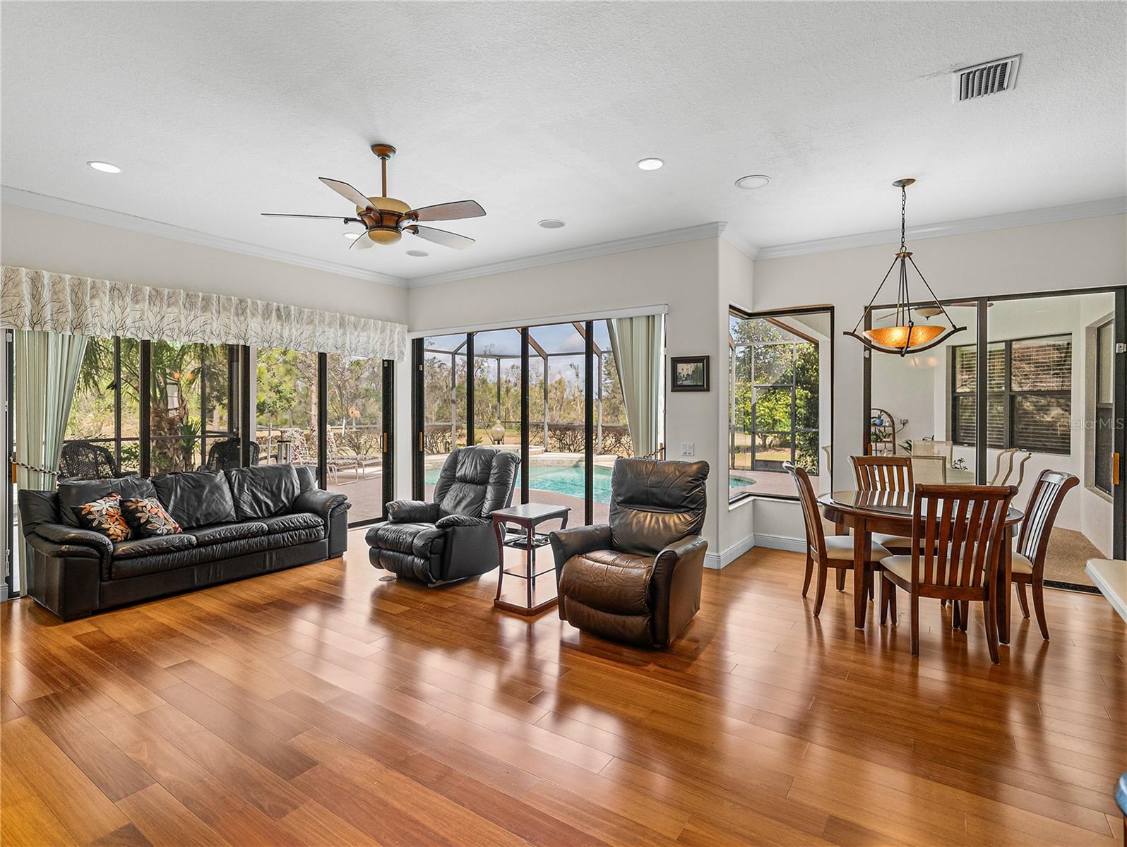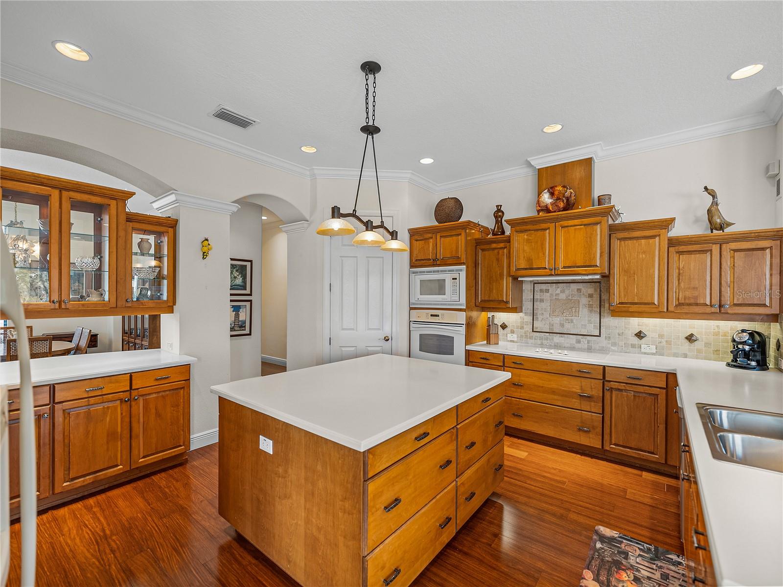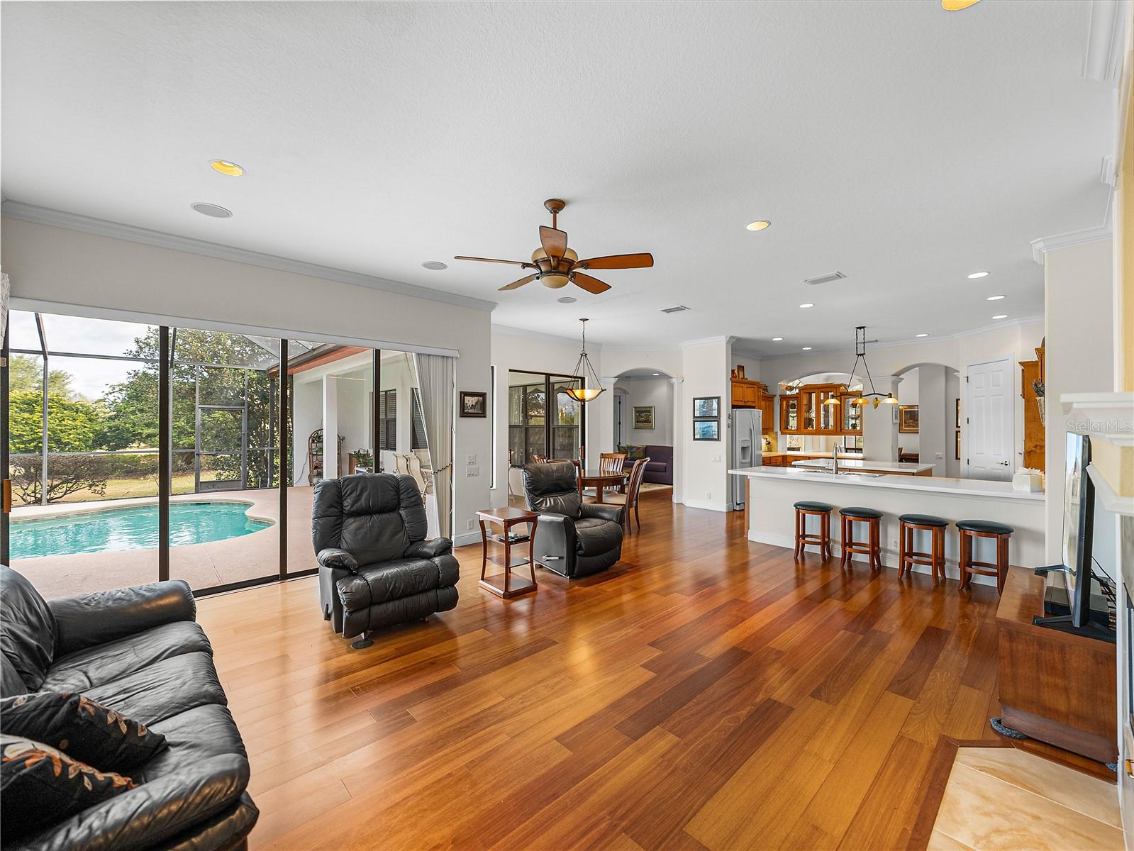 Welcome home. This expansive corner lot, 4 bedroom, 3 bath + office and den, Lake Jovita pool home rests on nearly an acre of land with a sensational view of the North course's 14th tee box and a peaceful pond. Classic and inviting, this customized Arthur Rutenberg residence greets you with a lovingly maintained landscape, a 3 car side-facing garage, and a covered entryway that leads into the grand foyer. High ceilings, crown molding, wood flooring, and ample natural light provide character and warmth to the space. A generous formal living room and dining room are near the front of the home for intimate gatherings. An oversized kitchen with Corian countertops, wood cabinetry, a central island, breakfast bar seating, an eat-in dinette, a pass-through bar to the dining room, and a large pantry overlook the family room. This room is the epitome of indoor/outdoor living with two sets of quadruple sliding doors that open to the pool deck welcoming the fresh Florida air inside. The bonus room down the hallway is plumbed for a bar and near a full bathroom and a guest bedroom, creating an opportunity to extend your entertaining space or turn it into a private in-law suite! Tucked away on the north side of the property is the spacious owner's retreat featuring private access to the dedicated office, a large walk-in closet, and a luxurious ensuite bathroom with a comfortable soaking tub, a walk-in shower, two sinks, an island, and chandelier lighting. Bedrooms 3 and 4 share a full bathroom with a tub/shower combo in between. Storage is no issue!! Three large closets line the hallway to the laundry room and garage. An outdoor oasis accompanies this beautiful home and flexible floor plan. Overlooking the beautiful Lake Jovita landscape, the pool deck provides multiple covered seating areas, a pool, and a spa. Lake Jovita is a resort- style community with a 24-hour manned gate, a playground, a park, pickleball courts, and walking trails. Optional membership packages to the Lake Jovita Golf and Country Club include access to 2 world-class 18-hole golf courses, a Junior Olympic-sized swimming pool, a fitness center, a clubhouse, a restaurant, social clubs, and more! Call us today for your private showing!