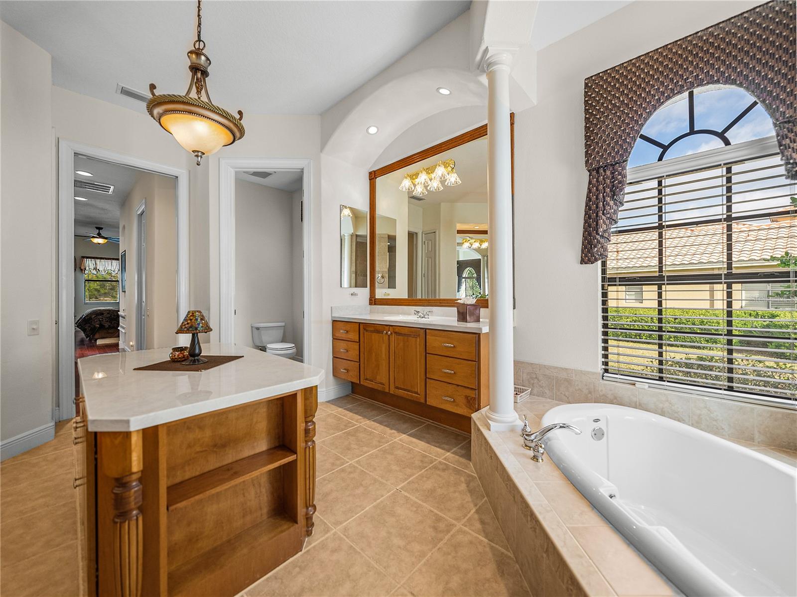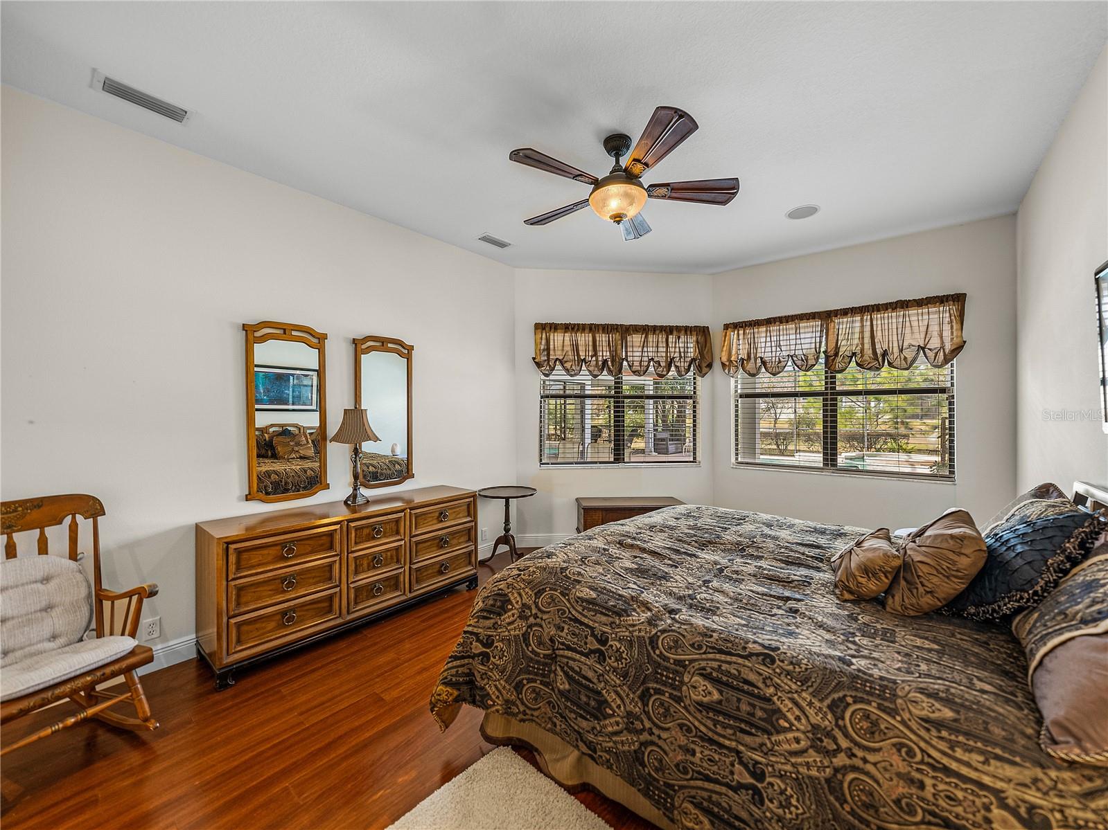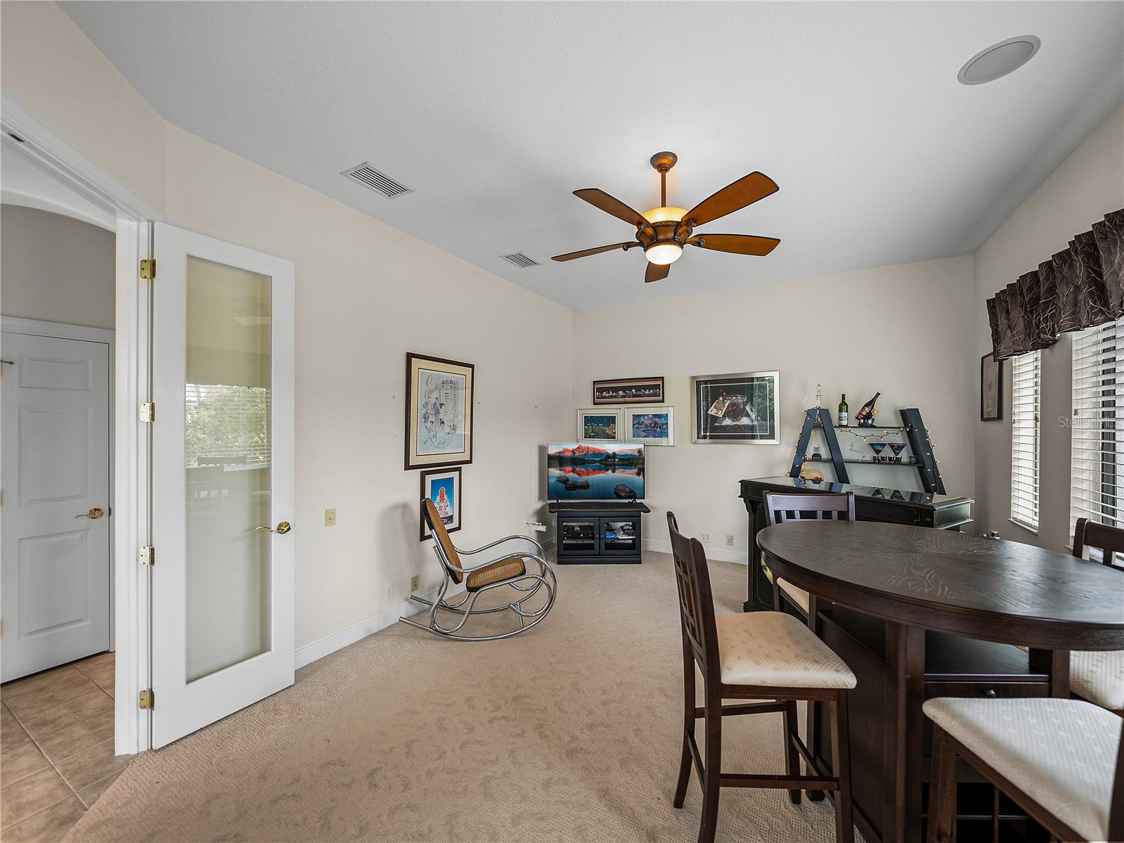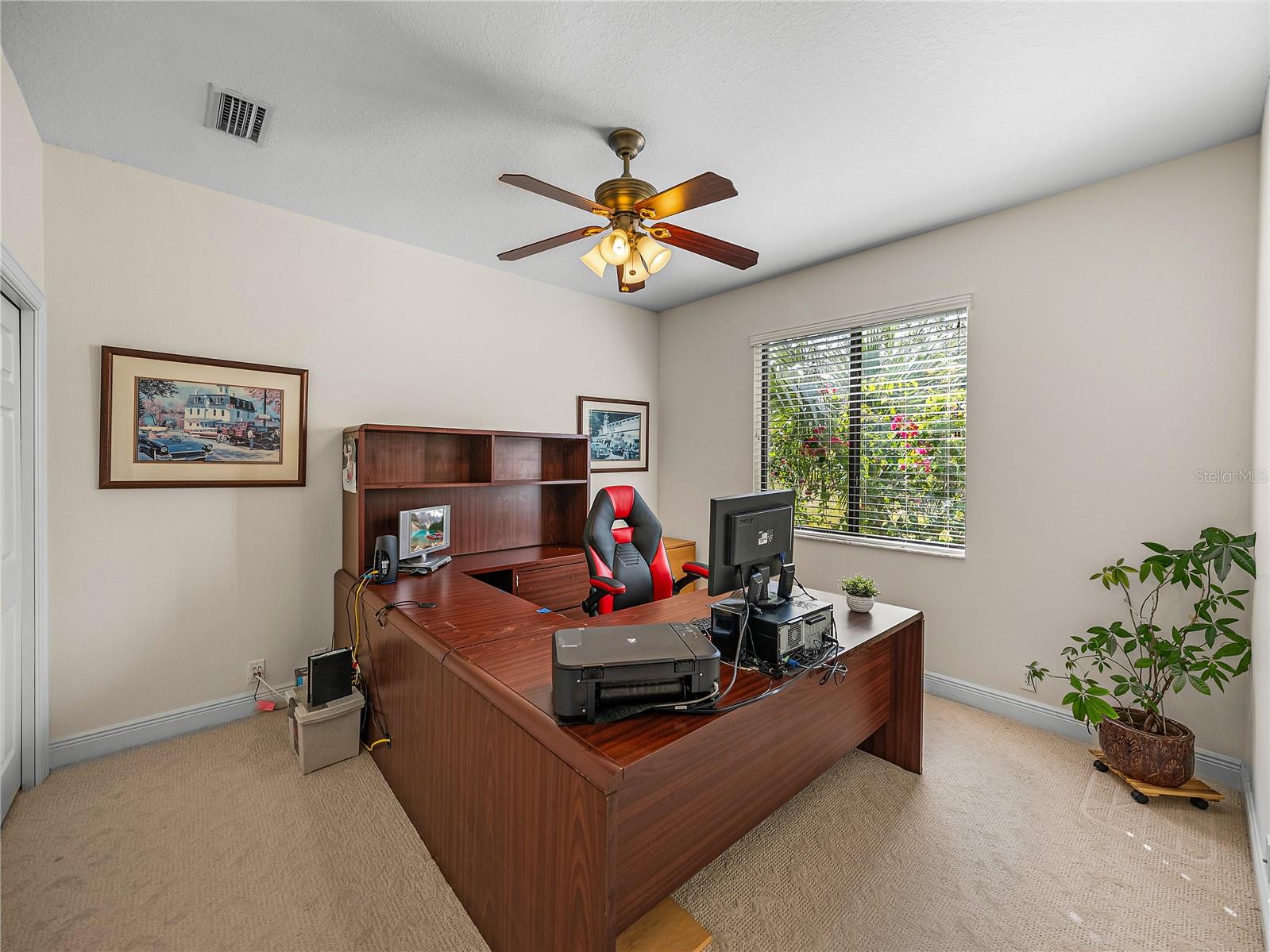 Welcome home. This expansive corner lot, 4 bedroom, 3 bath + office and den, Lake Jovita pool home rests on nearly an acre of land with a sensational view of the North course's 14th tee box and a peaceful pond. Classic and inviting, this customized Arthur Rutenberg residence greets you with a lovingly maintained landscape, a 3 car side-facing garage, and a covered entryway that leads into the grand foyer. High ceilings, crown molding, wood flooring, and ample natural light provide character and warmth to the space. A generous formal living room and dining room are near the front of the home for intimate gatherings. An oversized kitchen with Corian countertops, wood cabinetry, a central island, breakfast bar seating, an eat-in dinette, a pass-through bar to the dining room, and a large pantry overlook the family room. This room is the epitome of indoor/outdoor living with two sets of quadruple sliding doors that open to the pool deck welcoming the fresh Florida air inside. The bonus room down the hallway is plumbed for a bar and near a full bathroom and a guest bedroom, creating an opportunity to extend your entertaining space or turn it into a private in-law suite! Tucked away on the north side of the property is the spacious owner's retreat featuring private access to the dedicated office, a large walk-in closet, and a luxurious ensuite bathroom with a comfortable soaking tub, a walk-in shower, two sinks, an island, and chandelier lighting. Bedrooms 3 and 4 share a full bathroom with a tub/shower combo in between. Storage is no issue!! Three large closets line the hallway to the laundry room and garage. An outdoor oasis accompanies this beautiful home and flexible floor plan. Overlooking the beautiful Lake Jovita landscape, the pool deck provides multiple covered seating areas, a pool, and a spa. Lake Jovita is a resort- style community with a 24-hour manned gate, a playground, a park, pickleball courts, and walking trails. Optional membership packages to the Lake Jovita Golf and Country Club include access to 2 world-class 18-hole golf courses, a Junior Olympic-sized swimming pool, a fitness center, a clubhouse, a restaurant, social clubs, and more! Call us today for your private showing!