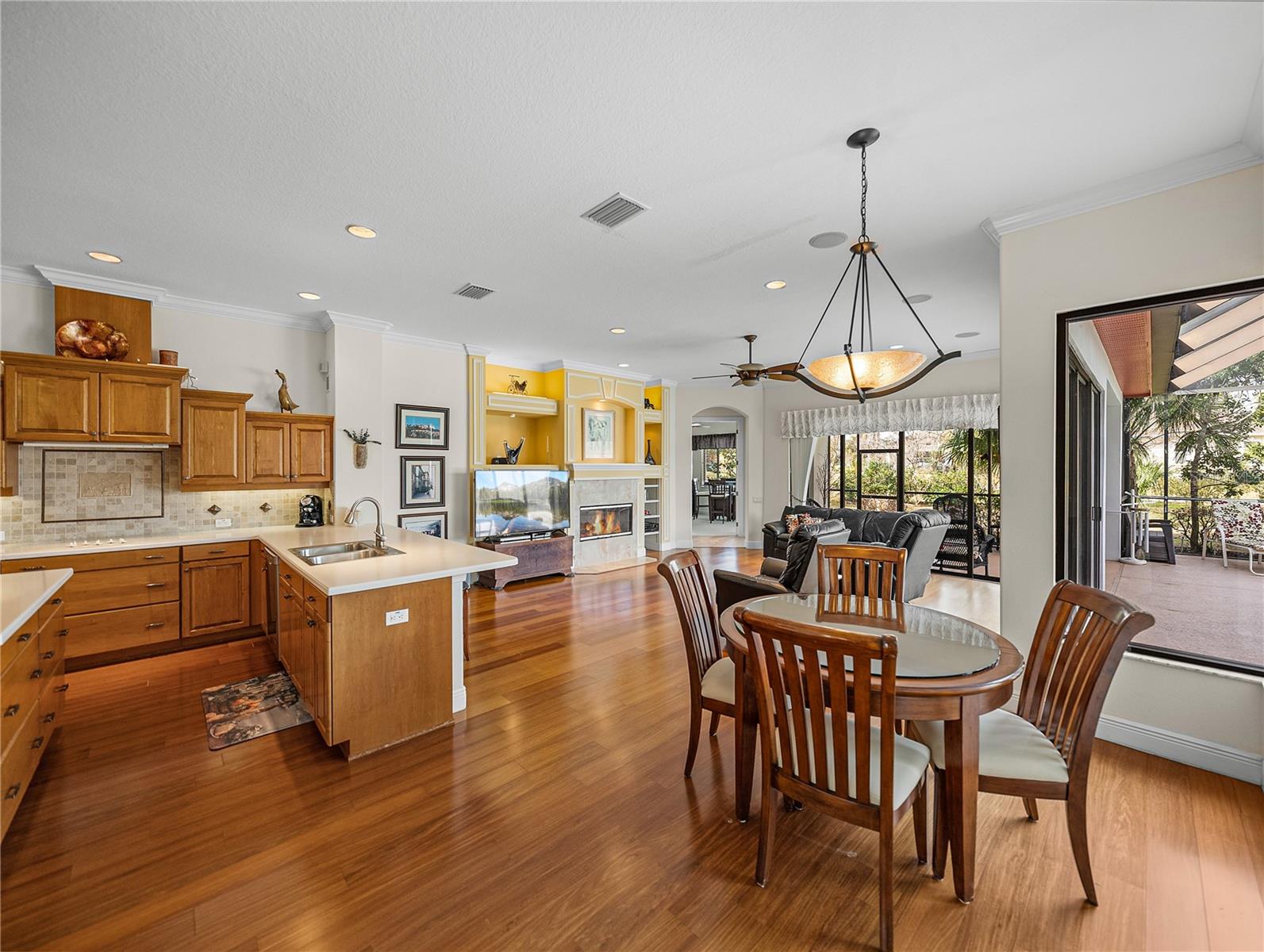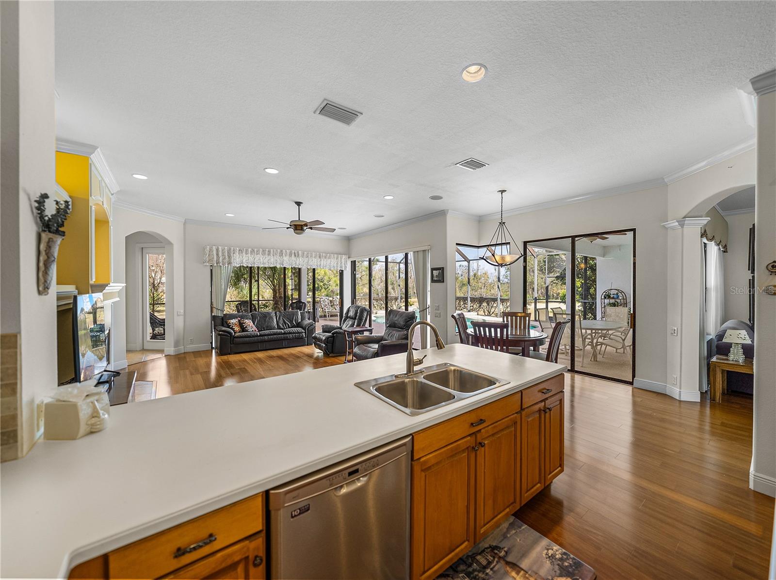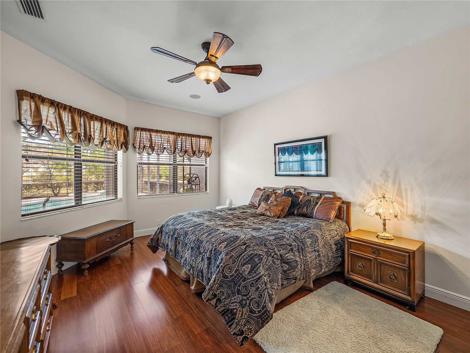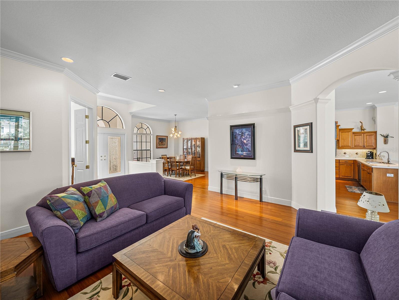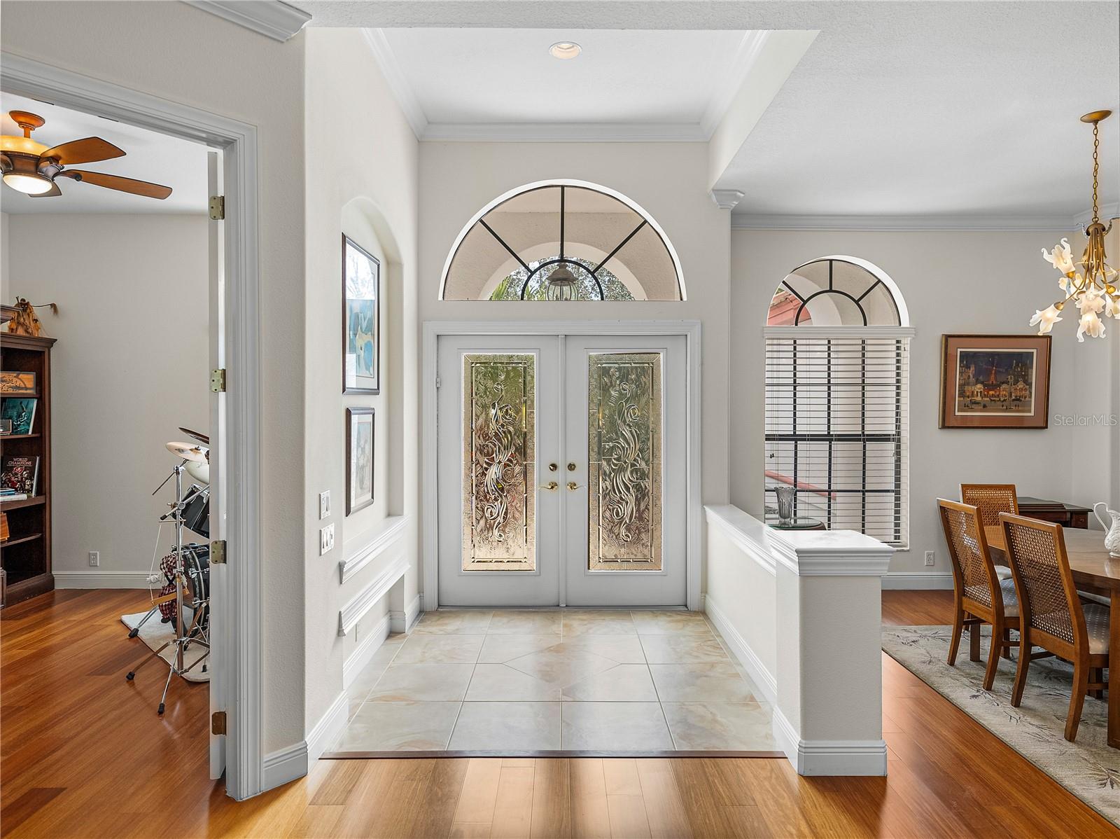 Welcome home. This expansive corner lot, 4 bedroom, 3 bath + office and den, Lake Jovita pool home rests on nearly an acre of land with a sensational view of the North course's 14th tee box and a peaceful pond. Classic and inviting, this customized Arthur Rutenberg residence greets you with a lovingly maintained landscape, a 3 car side-facing garage, and a covered entryway that leads into the grand foyer. High ceilings, crown molding, wood flooring, and ample natural light provide character and warmth to the space. A generous formal living room and dining room are near the front of the home for intimate gatherings. An oversized kitchen with Corian countertops, wood cabinetry, a central island, breakfast bar seating, an eat-in dinette, a pass-through bar to the dining room, and a large pantry overlook the family room. This room is the epitome of indoor/outdoor living with two sets of quadruple sliding doors that open to the pool deck welcoming the fresh Florida air inside. The bonus room down the hallway is plumbed for a bar and near a full bathroom and a guest bedroom, creating an opportunity to extend your entertaining space or turn it into a private in-law suite! Tucked away on the north side of the property is the spacious owner's retreat featuring private access to the dedicated office, a large walk-in closet, and a luxurious ensuite bathroom with a comfortable soaking tub, a walk-in shower, two sinks, an island, and chandelier lighting. Bedrooms 3 and 4 share a full bathroom with a tub/shower combo in between. Storage is no issue!! Three large closets line the hallway to the laundry room and garage. An outdoor oasis accompanies this beautiful home and flexible floor plan. Overlooking the beautiful Lake Jovita landscape, the pool deck provides multiple covered seating areas, a pool, and a spa. Lake Jovita is a resort- style community with a 24-hour manned gate, a playground, a park, pickleball courts, and walking trails. Optional membership packages to the Lake Jovita Golf and Country Club include access to 2 world-class 18-hole golf courses, a Junior Olympic-sized swimming pool, a fitness center, a clubhouse, a restaurant, social clubs, and more! Call us today for your private showing!
