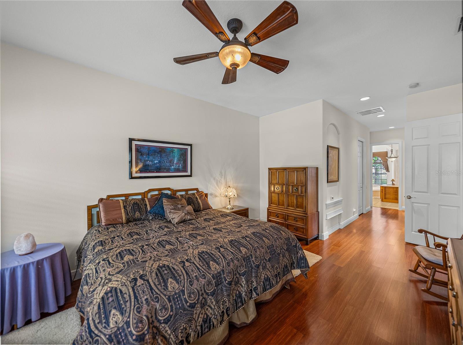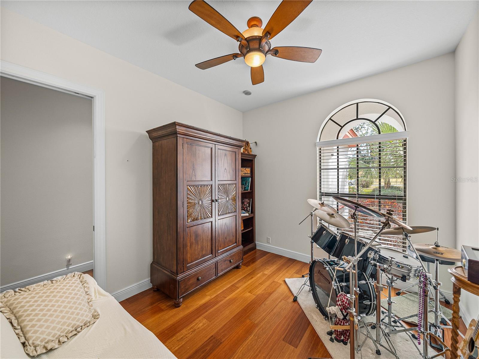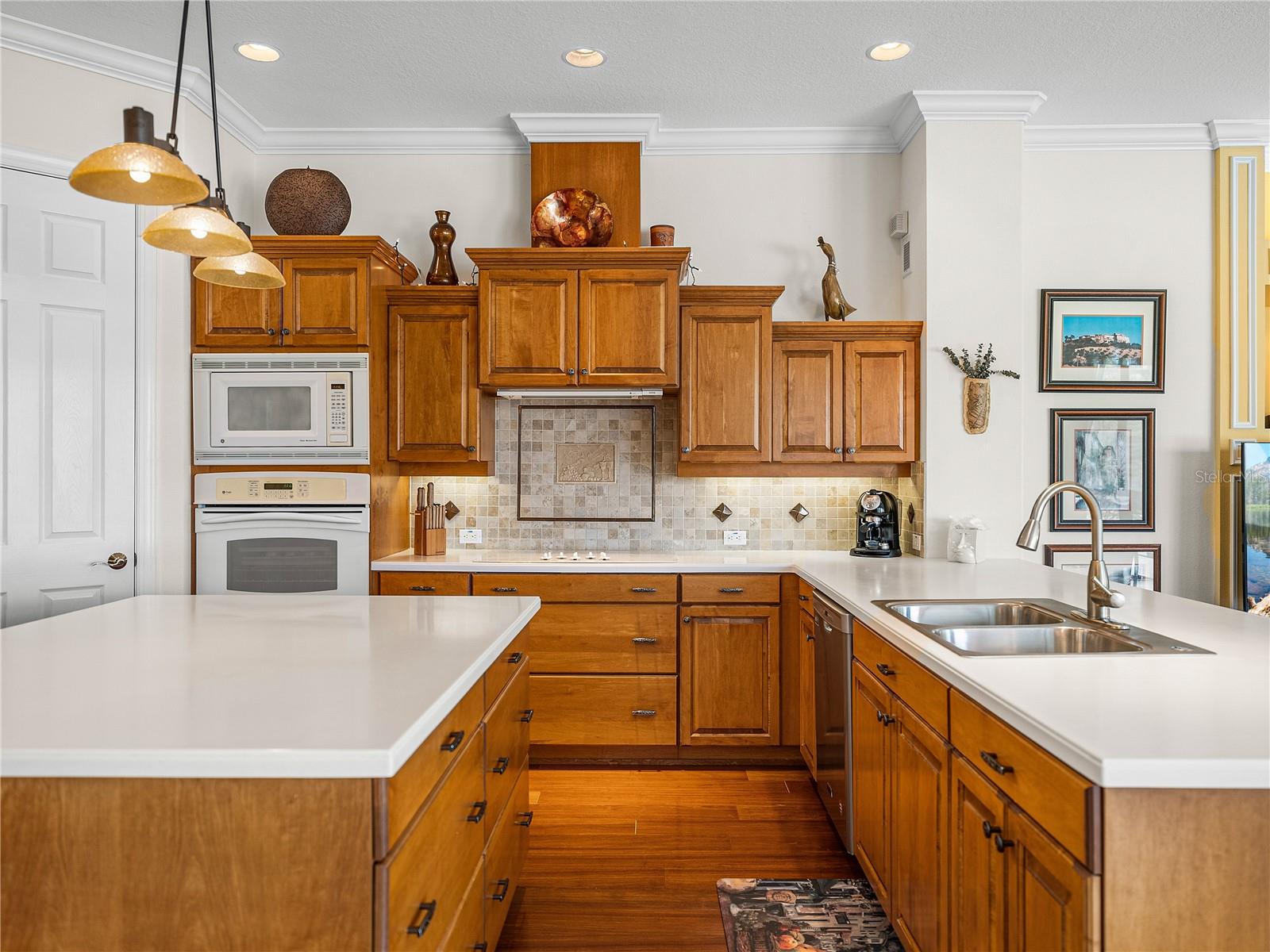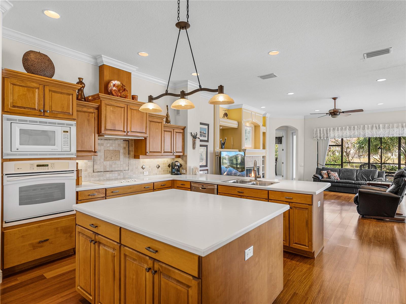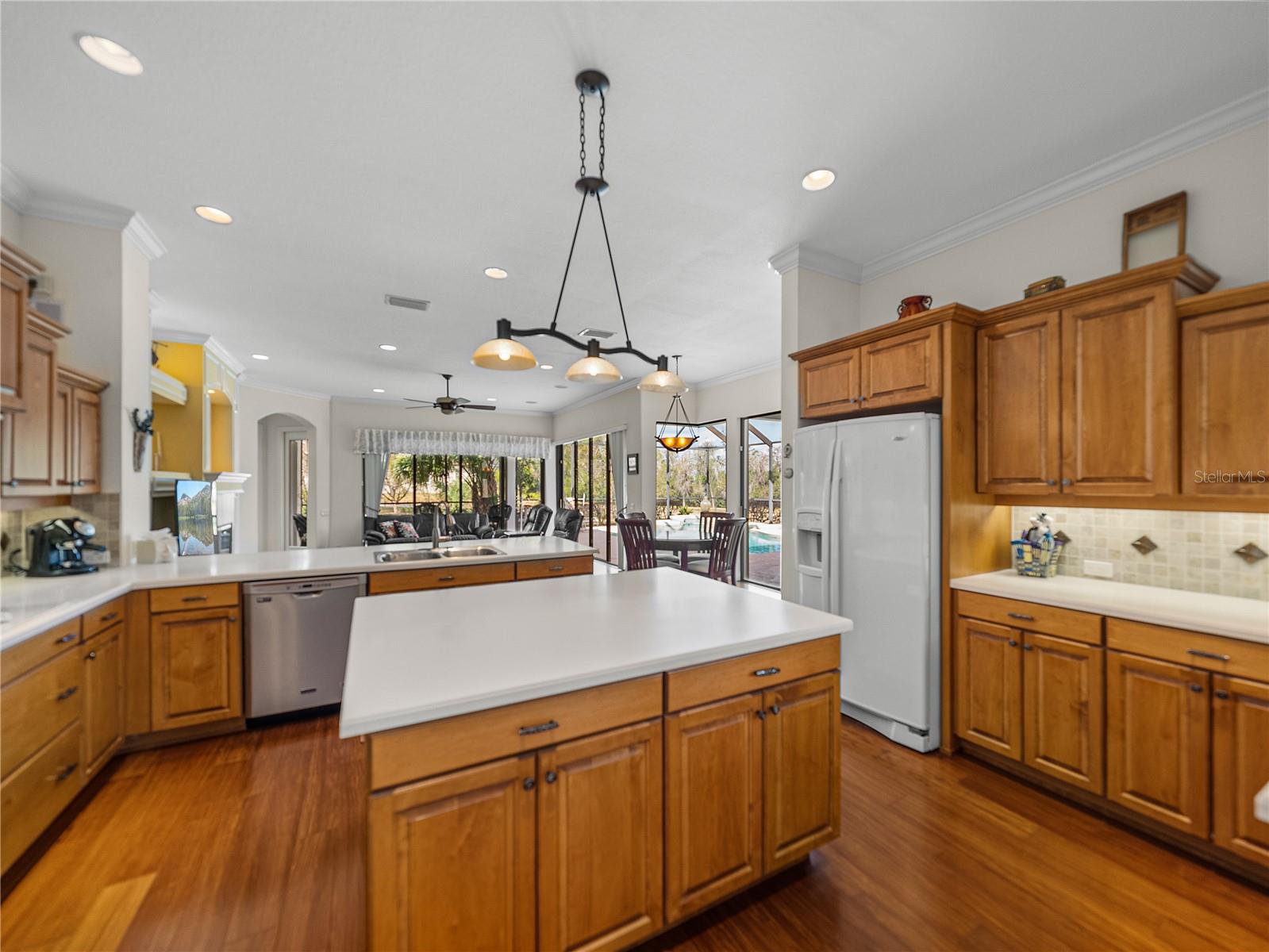 Welcome home. This expansive corner lot, 4 bedroom, 3 bath + office and den, Lake Jovita pool home rests on nearly an acre of land with a sensational view of the North course's 14th tee box and a peaceful pond. Classic and inviting, this customized Arthur Rutenberg residence greets you with a lovingly maintained landscape, a 3 car side-facing garage, and a covered entryway that leads into the grand foyer. High ceilings, crown molding, wood flooring, and ample natural light provide character and warmth to the space. A generous formal living room and dining room are near the front of the home for intimate gatherings. An oversized kitchen with Corian countertops, wood cabinetry, a central island, breakfast bar seating, an eat-in dinette, a pass-through bar to the dining room, and a large pantry overlook the family room. This room is the epitome of indoor/outdoor living with two sets of quadruple sliding doors that open to the pool deck welcoming the fresh Florida air inside. The bonus room down the hallway is plumbed for a bar and near a full bathroom and a guest bedroom, creating an opportunity to extend your entertaining space or turn it into a private in-law suite! Tucked away on the north side of the property is the spacious owner's retreat featuring private access to the dedicated office, a large walk-in closet, and a luxurious ensuite bathroom with a comfortable soaking tub, a walk-in shower, two sinks, an island, and chandelier lighting. Bedrooms 3 and 4 share a full bathroom with a tub/shower combo in between. Storage is no issue!! Three large closets line the hallway to the laundry room and garage. An outdoor oasis accompanies this beautiful home and flexible floor plan. Overlooking the beautiful Lake Jovita landscape, the pool deck provides multiple covered seating areas, a pool, and a spa. Lake Jovita is a resort- style community with a 24-hour manned gate, a playground, a park, pickleball courts, and walking trails. Optional membership packages to the Lake Jovita Golf and Country Club include access to 2 world-class 18-hole golf courses, a Junior Olympic-sized swimming pool, a fitness center, a clubhouse, a restaurant, social clubs, and more! Call us today for your private showing!