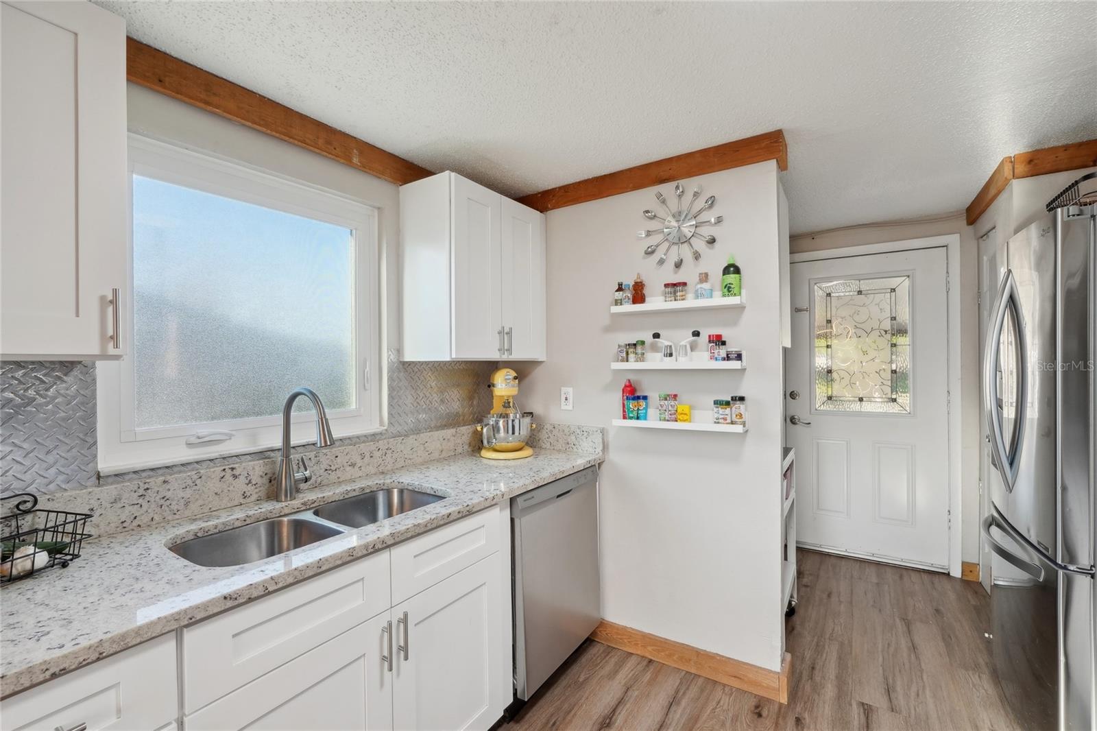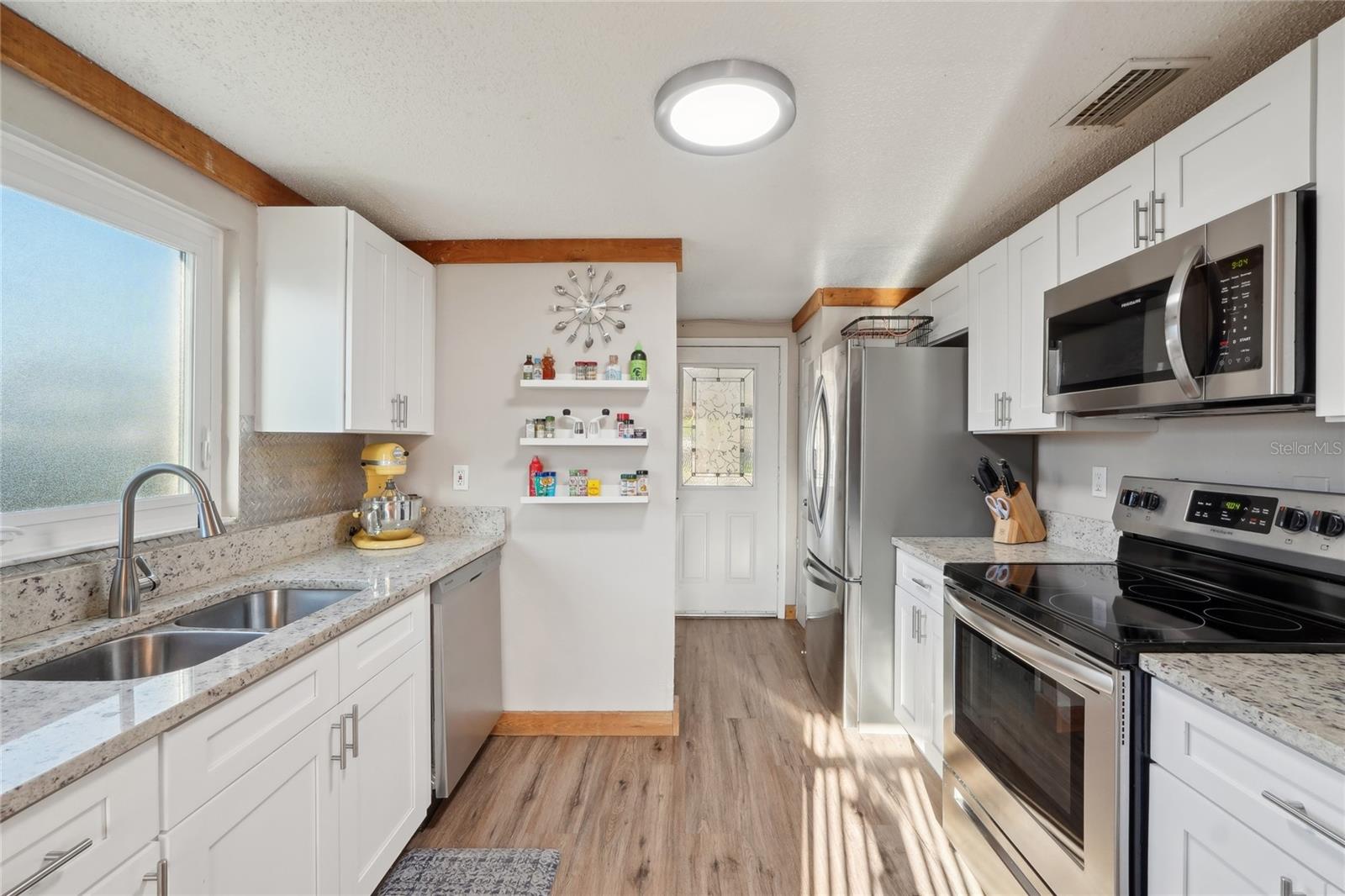 Charming & Updated Home Near Downtown Dade City! ***Seller is offering cash towards rate buy-down or closing costs with a reasonable contract.*** Welcome to this beautifully updated 2-bedroom, 1-bathroom block home, ideally situated just minutes from historic downtown Dade City. Step inside to discover a bright, open living space featuring a newly refinished wood-burning fireplace, perfect for cozy evenings. The stunning remodeled kitchen boasts shaker-style cabinets, granite countertops, and stainless steel appliances, making meal prep a delight. Enjoy the spacious, fully fenced backyard from your screened-in rear porch, a perfect spot for morning coffee or evening relaxation. Looking to start your own urban homestead or food forest? The oversized lot provides ample space for gardening, fruit trees, and sustainable living. The only thing this home needs to be completely off-grid is solar! Major updates provide peace of mind, including a new roof (2022), new AC (2021), hurricane impact windows (2023) with a transferable lifetime warranty, and a tankless water heater (2022). Plus, the home features new luxury laminate plank flooring, carpeted bedrooms, and an updated electrical panel (installed in 2022). With modern upgrades, timeless charm, and a prime location, this home is move-in ready! Don’t miss your opportunity—schedule your showing today!