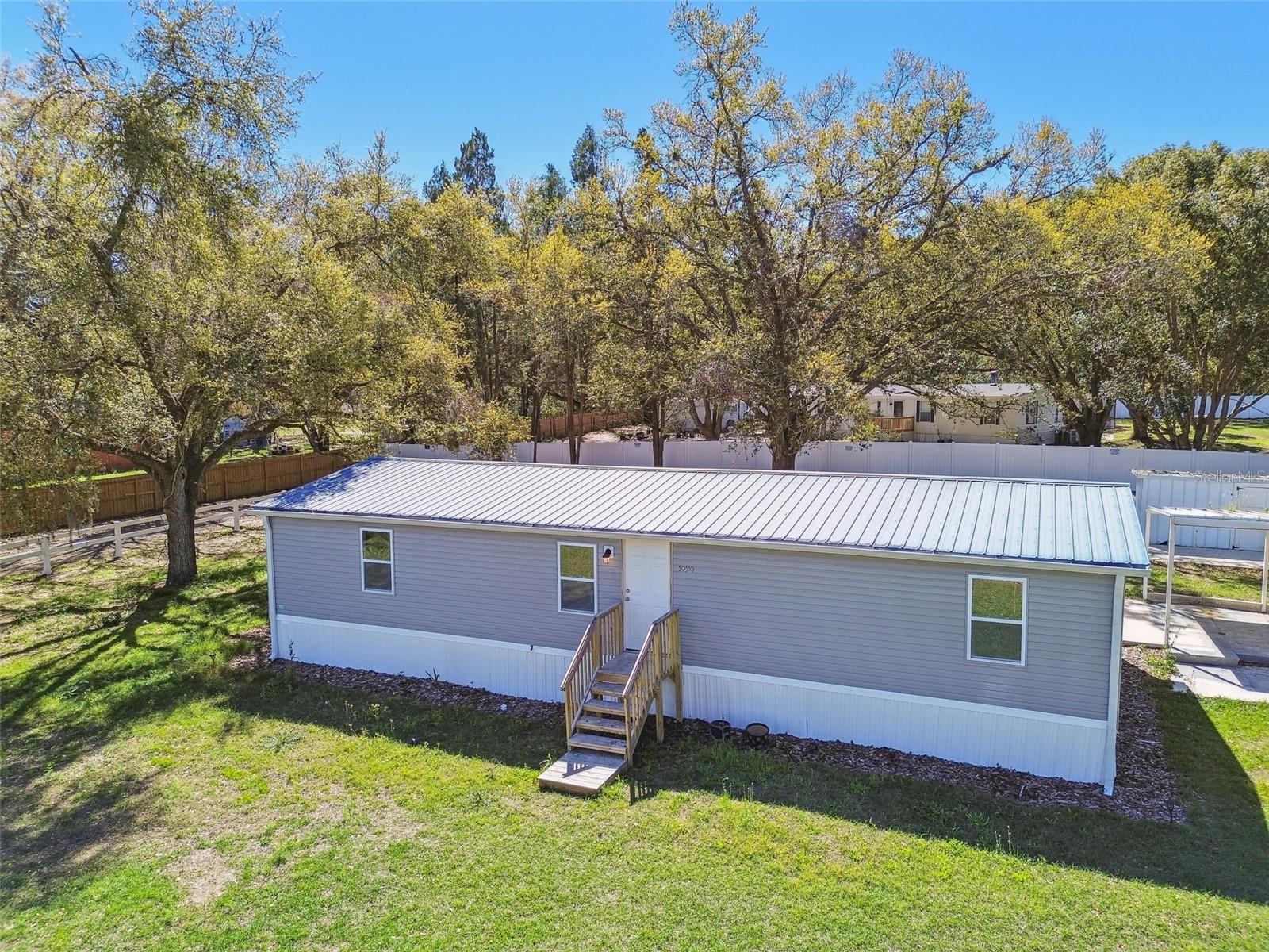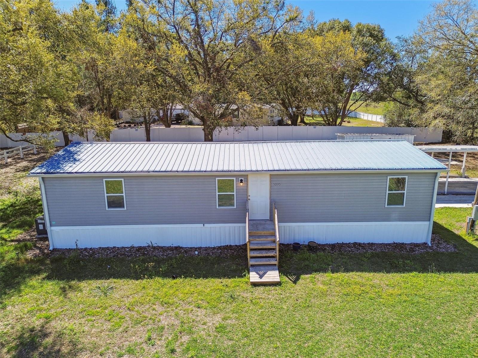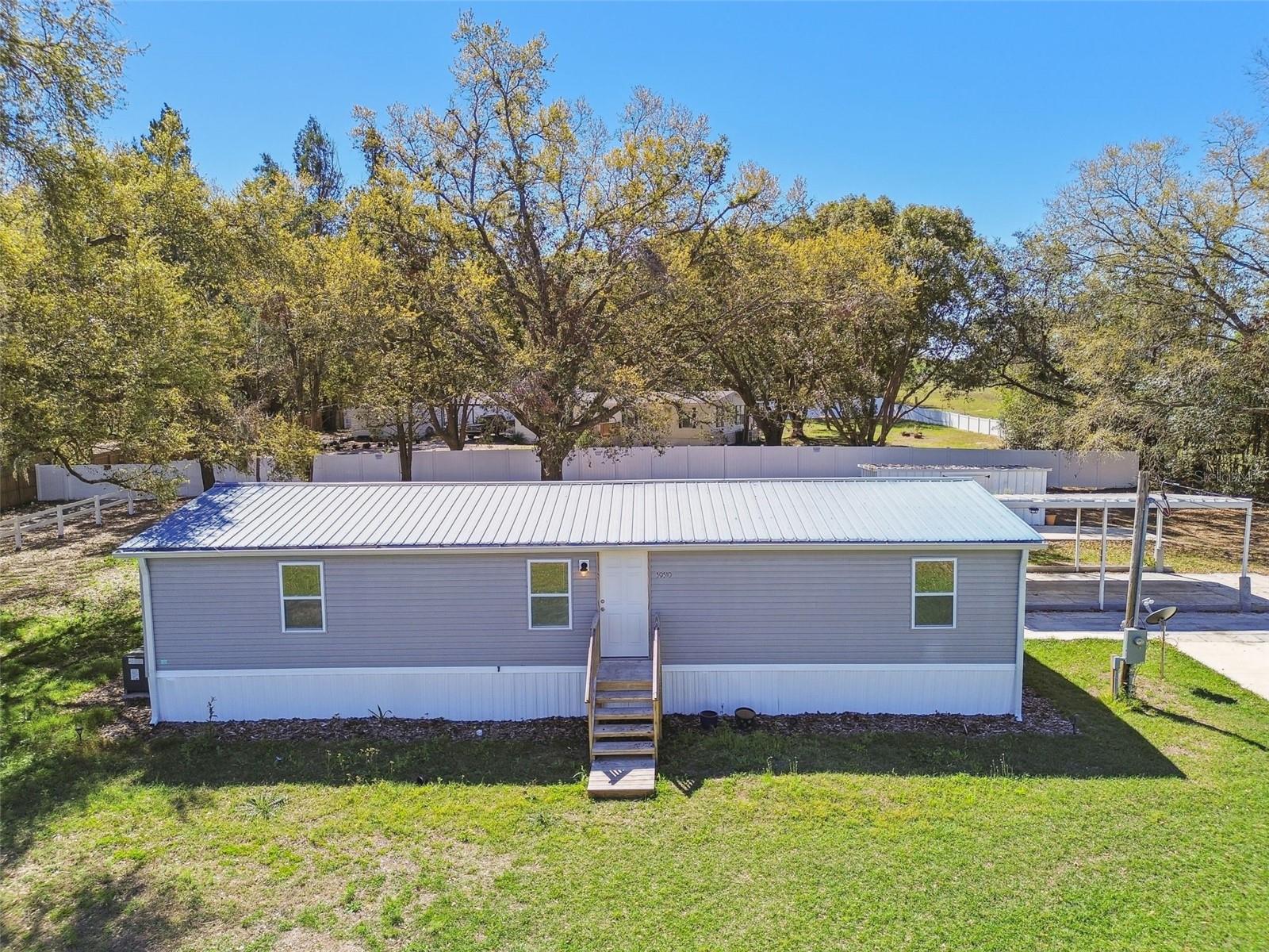 Welcome to 39510 Sunburst Drive, a fully renovated 3-bedroom, 2-bathroom home situated on a spacious 0.5-acre lot at the end of a quiet road adjacent to farmland. This home offers a peaceful, rural feel while still being just minutes from shopping, dining, and entertainment options, including a bowling alley and movie theater. Inside, you’ll find new luxury vinyl plank flooring throughout and a durable METAL ROOF, offering long-lasting protection and peace of mind. The primary suite includes a large walk-in closet, while the second bathroom features both a JETTED TUB and a RAIN SHOWER, providing a relaxing retreat. NEW AC with all new ductwork. The beautifully updated kitchen boasts BRAND-NEW GRANITE countertops and high-quality STAINLESS STEEL appliances, creating a stylish and functional cooking space. The home also includes a washer and dryer for added convenience. Outdoor living is easy with a large CONCRETE patio and an additional COVERED pad, perfect for entertaining. A shed in the backyard offers extra storage, and a concrete parking pad provides additional flexibility. The expansive lot allows space for a BOAT, RV, or WORK TRAILER, making it ideal for those who need extra parking for recreational or work vehicles. This home provides quiet country living with modern conveniences just a short drive away, making it the perfect blend of privacy and accessibility.