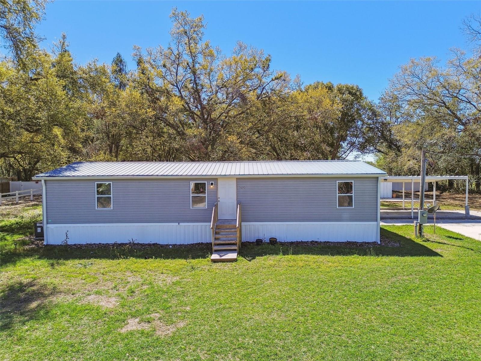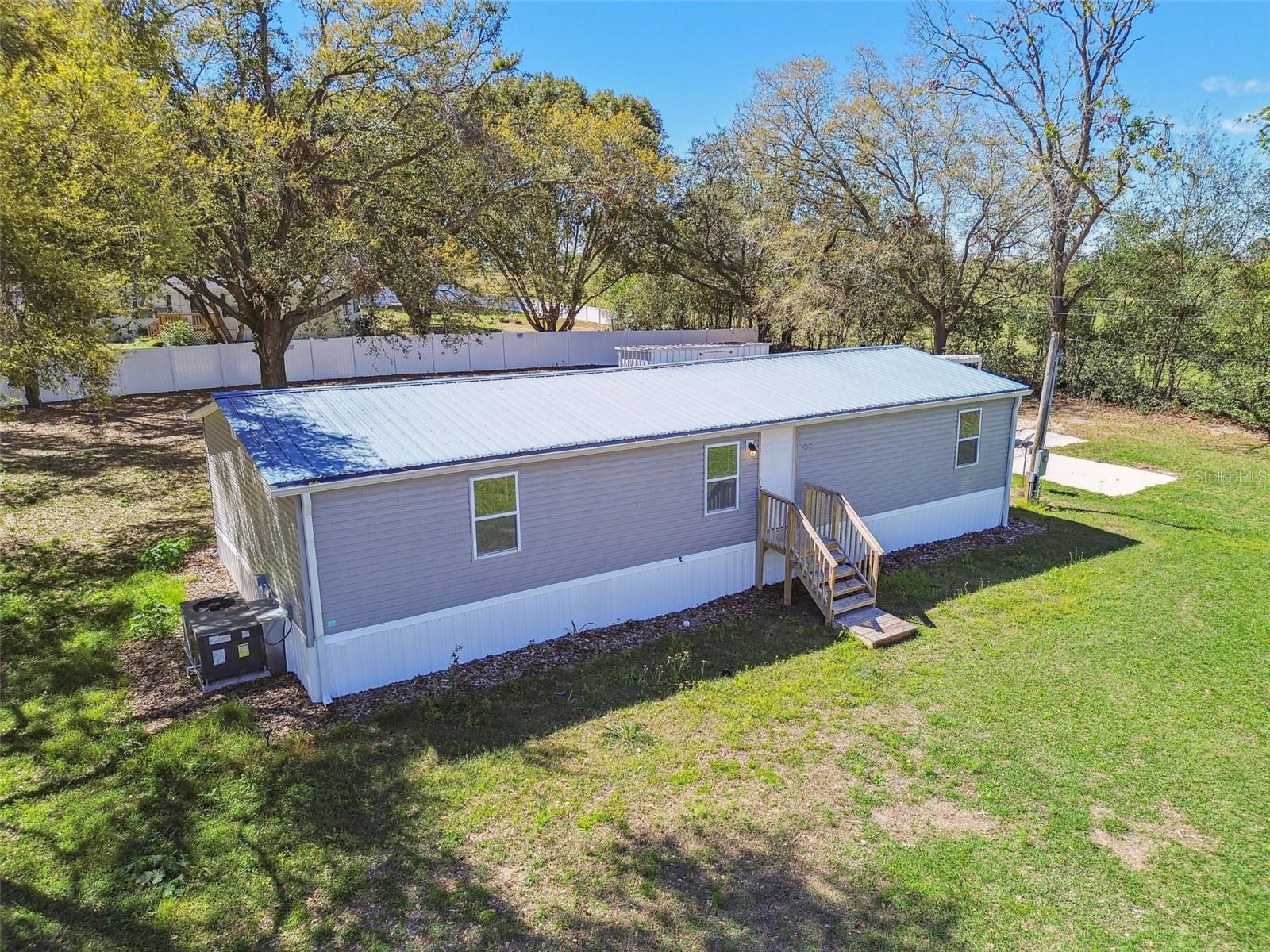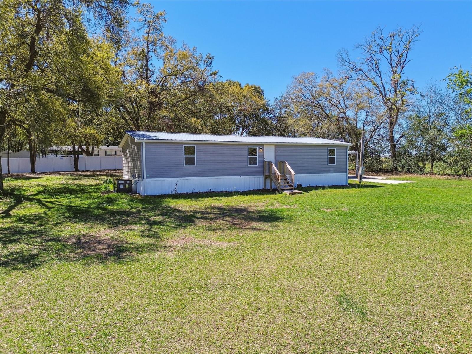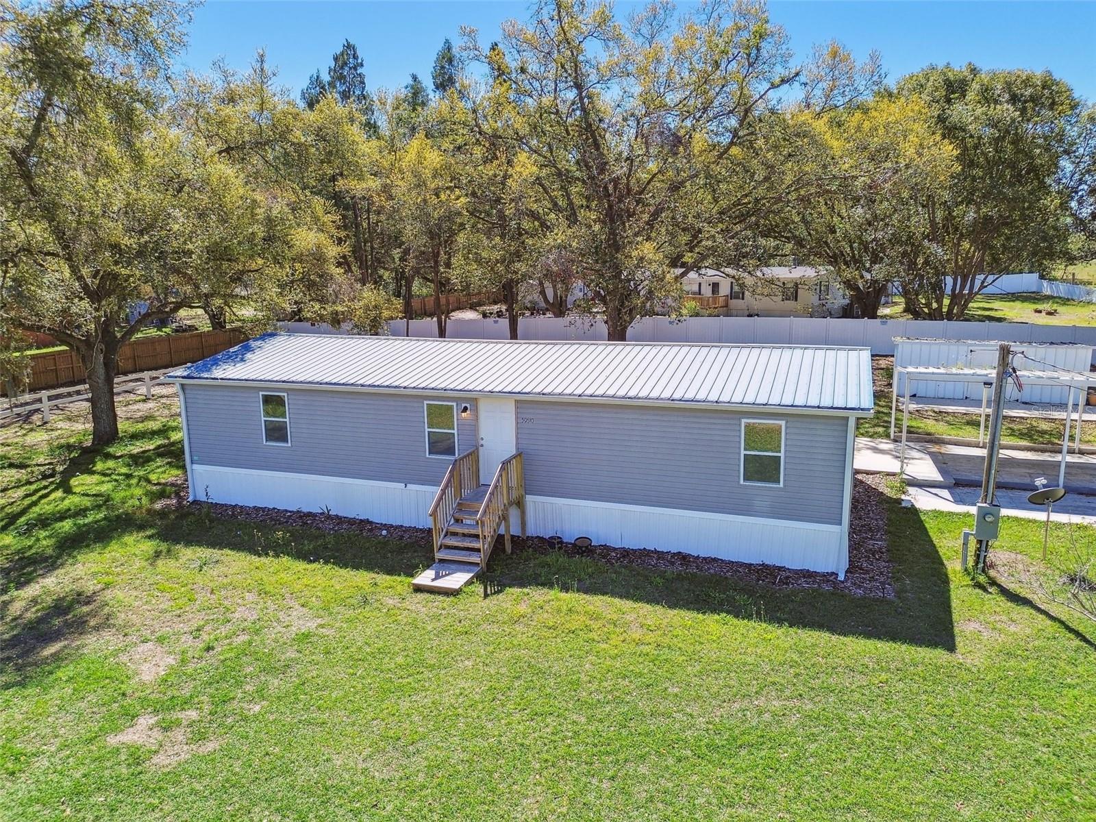 Welcome to 39510 Sunburst Drive, a fully renovated 3-bedroom, 2-bathroom home situated on a spacious 0.5-acre lot at the end of a quiet road adjacent to farmland. This home offers a peaceful, rural feel while still being just minutes from shopping, dining, and entertainment options, including a bowling alley and movie theater. Inside, you’ll find new luxury vinyl plank flooring throughout and a durable METAL ROOF, offering long-lasting protection and peace of mind. The primary suite includes a large walk-in closet, while the second bathroom features both a JETTED TUB and a RAIN SHOWER, providing a relaxing retreat. NEW AC with all new ductwork. The beautifully updated kitchen boasts BRAND-NEW GRANITE countertops and high-quality STAINLESS STEEL appliances, creating a stylish and functional cooking space. The home also includes a washer and dryer for added convenience. Outdoor living is easy with a large CONCRETE patio and an additional COVERED pad, perfect for entertaining. A shed in the backyard offers extra storage, and a concrete parking pad provides additional flexibility. The expansive lot allows space for a BOAT, RV, or WORK TRAILER, making it ideal for those who need extra parking for recreational or work vehicles. This home provides quiet country living with modern conveniences just a short drive away, making it the perfect blend of privacy and accessibility.