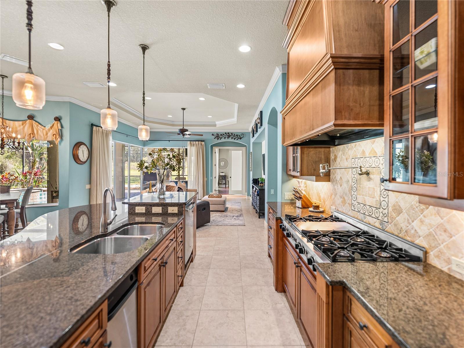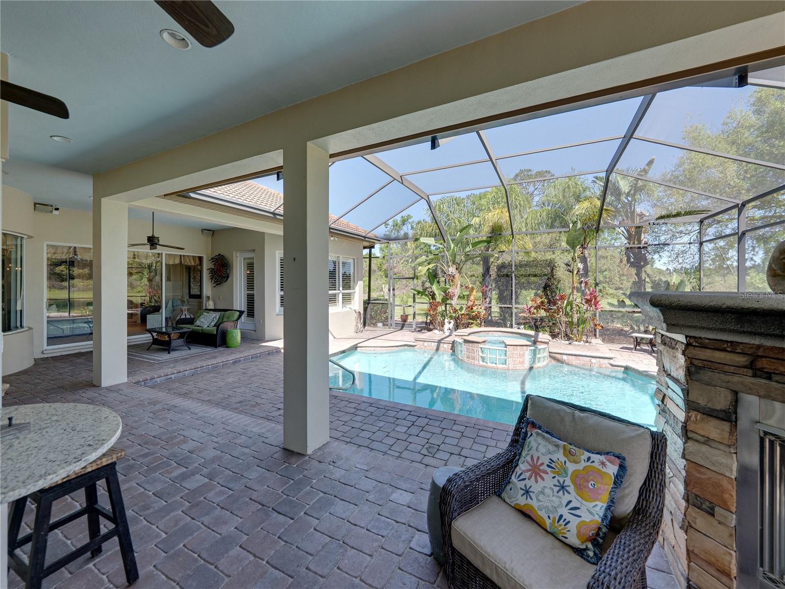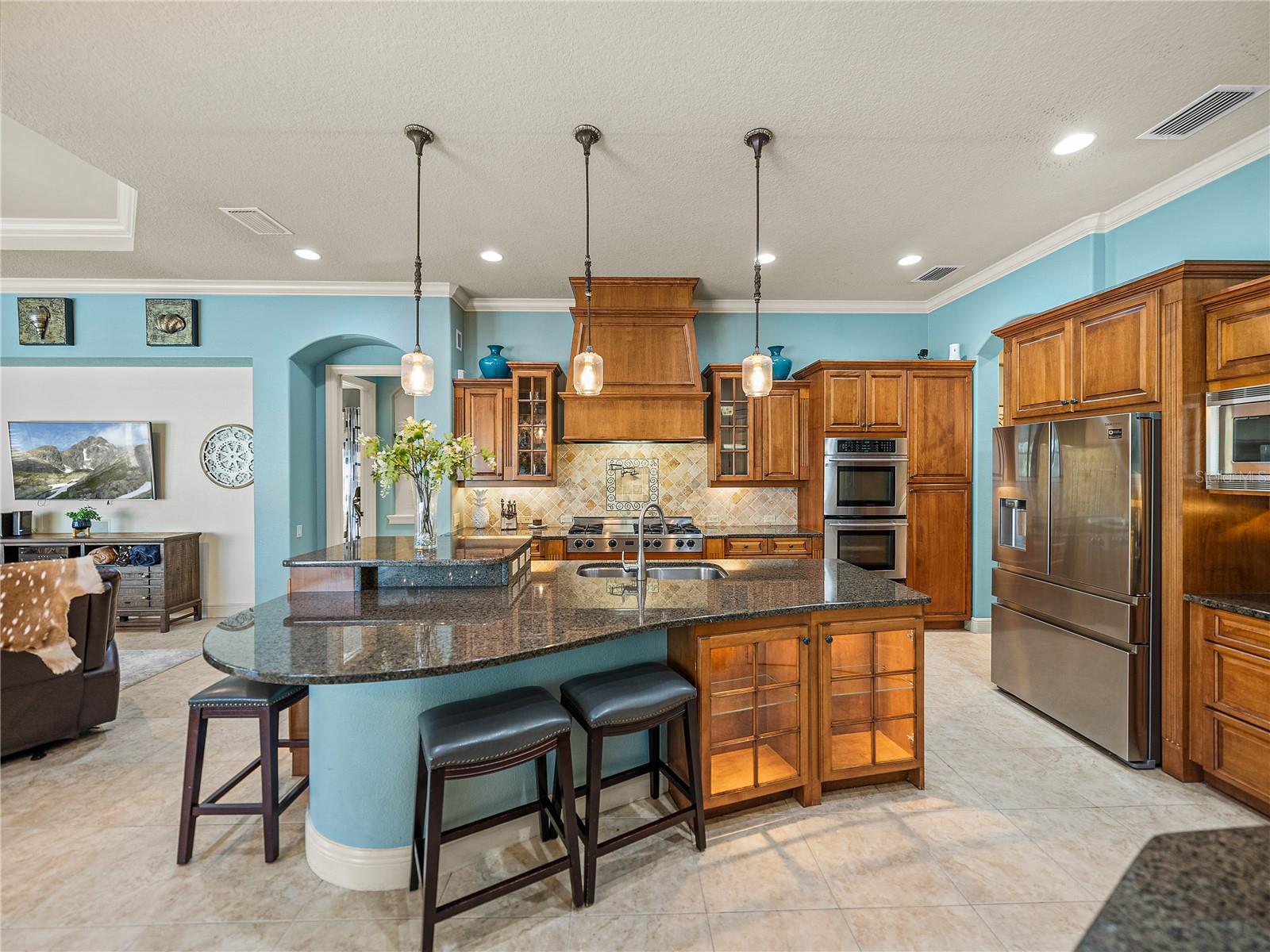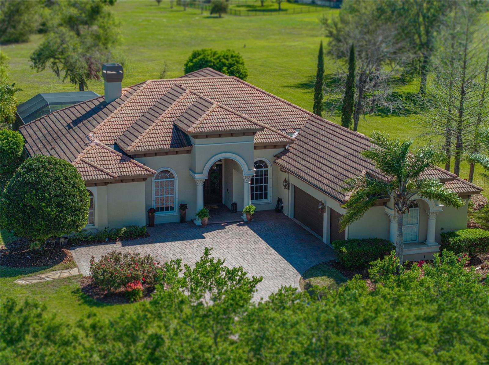 Motivated Sellers! A masterpiece of elegance and design, this 3,668 sq ft, 3 bedroom + office, 4 bath, 3 car garage estate is set within the prestigious gated community of Farmington Hills. It is nestled among tree-lined streets, offering an unparalleled lifestyle less than 5 minutes from Academy at the Farm- a highly regarded K-8 charter school soon expanding to include a high school. A paver driveway, 2022 exterior paint, and lush, manicured landscaping create a grand first impression, leading to a side-facing garage & a covered entryway. Through custom double doors, a breathtaking interior unfolds, revealing an open-concept design with soaring tray ceilings, refined architectural details, and seamless indoor-outdoor living. The formal living room captivates with a gas fireplace, exquisite molding, and triple sliding doors framing the resort-style pool. Combined with the formal dining room, it sets the stage for intimate gatherings. At the heart of the home, the chef’s kitchen is a triumph of style and function, beautifully appointed with granite countertops, a central island, breakfast bar and dinette seating, under-lit custom wood cabinetry, a wet bar, a walk-in pantry, and an overflow pantry. Delight in a culinary experience without compromise, as the list of top-notch amenities continues with a custom range hood, a pot filler, and high-end stainless steel appliances, including a double oven, a 6-burner gas range with a griddle, a wine refrigerator, a dishwasher, and a refrigerator. It flows seamlessly into the family room, designed for effortless entertaining, with 2 sets of triple sliding doors opening to the pool and outdoor kitchen. Set near a full guest bathroom, a convertible den awaits, ideal for guest comfort and privacy; it features a striking built-in wood entertainment center, bay windows with a bench overlooking the yard, and direct pool access. Each of the 3 bedroom suites is privately positioned, offering luxurious ensuite bathrooms, walk-in closets with custom organizers, ceiling fans, and rich wood flooring. The primary suite is a sanctuary of relaxation, introduced by an elegant foyer with intricate tile inlay. The spa-like ensuite bathroom features a jetted soaking tub, a walk-in shower with 2 showerheads, a central island with storage, separate sinks with vanity seating, and a hidden TV in the mirror! Generous custom closets lead to the serene sleeping quarters, which open directly to the poolside retreat. Designed for those who appreciate the finest details and added function, this home has exquisite crown molding, tray ceilings, decorative molding and pillar accents, a built-in desk near the 2nd bedroom, a thoughtfully designed laundry room, a 300- gallon propane tank, an integrated speaker system, and abundant storage throughout. Authentic Florida living awaits outdoors, where a heated saltwater pool and spa with updated equipment are set within a tropically landscaped paradise. A covered lanai with ceiling fans, a stone-faced gas fireplace, and an exquisite outdoor kitchen- complete with a grill, wet bar, 2 beverage refrigerators, and granite bar seating- create unmatched alfresco dining. Beyond, the expansive 1.17-acre lot offers endless possibilities for enjoying the Florida sunshine with an added open paver patio. Farmington Hills is a premier community in a prime location near Dade City, Zephyrhills, Wesley Chapel and the Lagoons. Call today for your exclusive viewing!