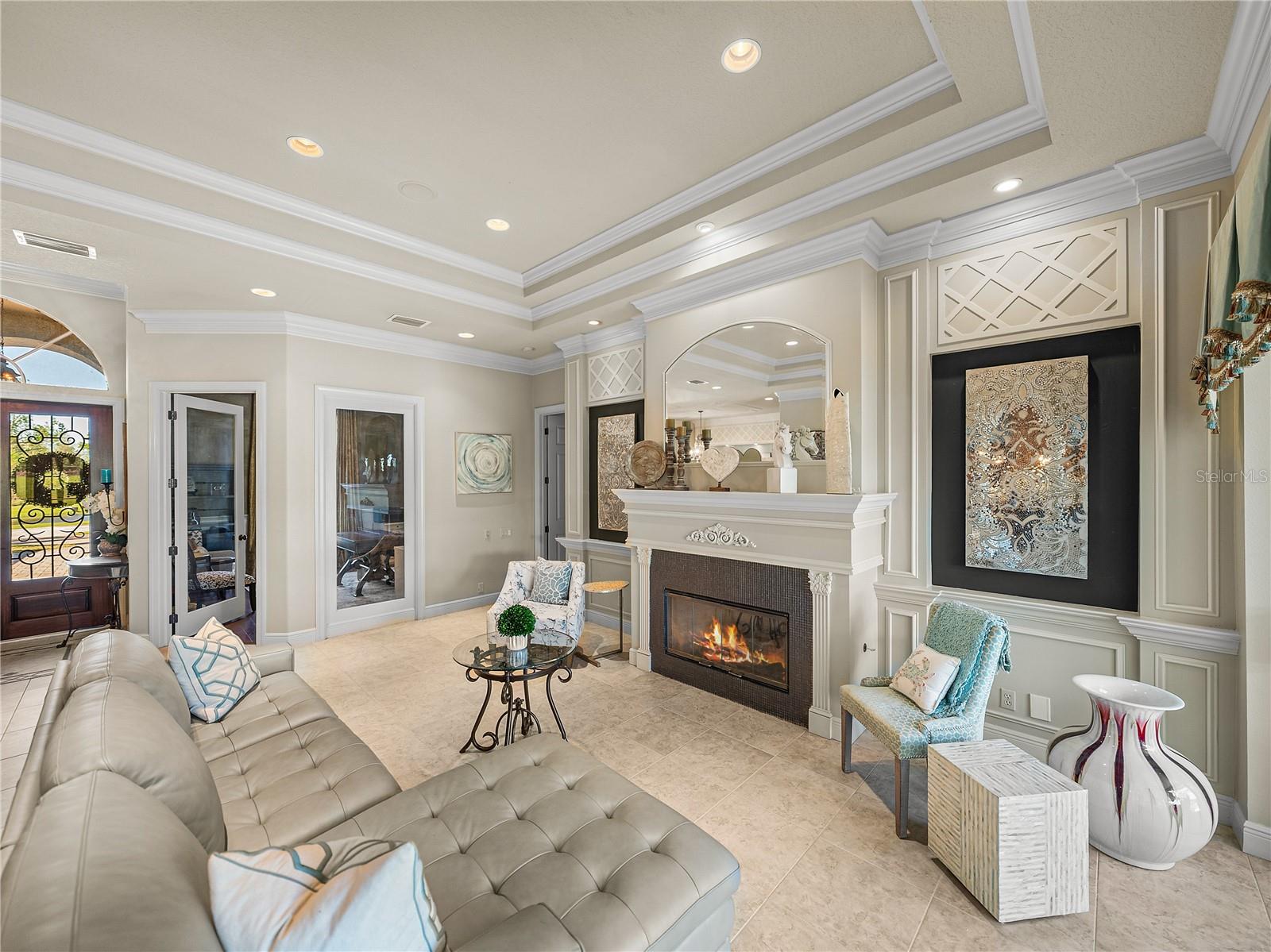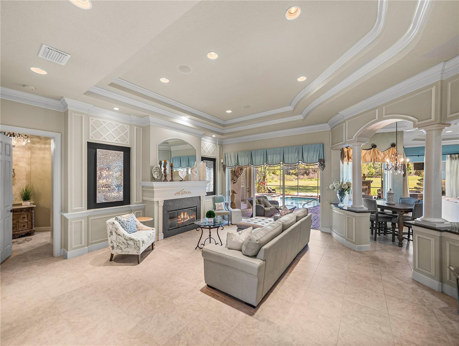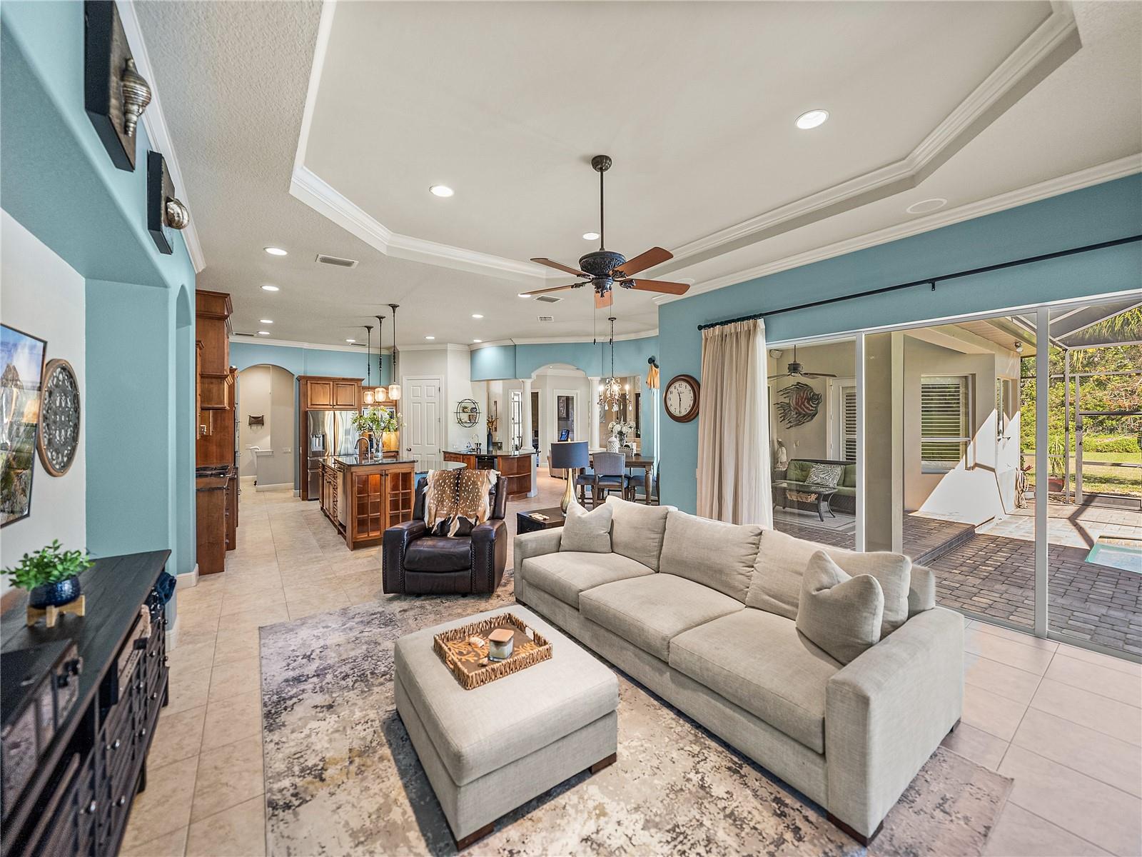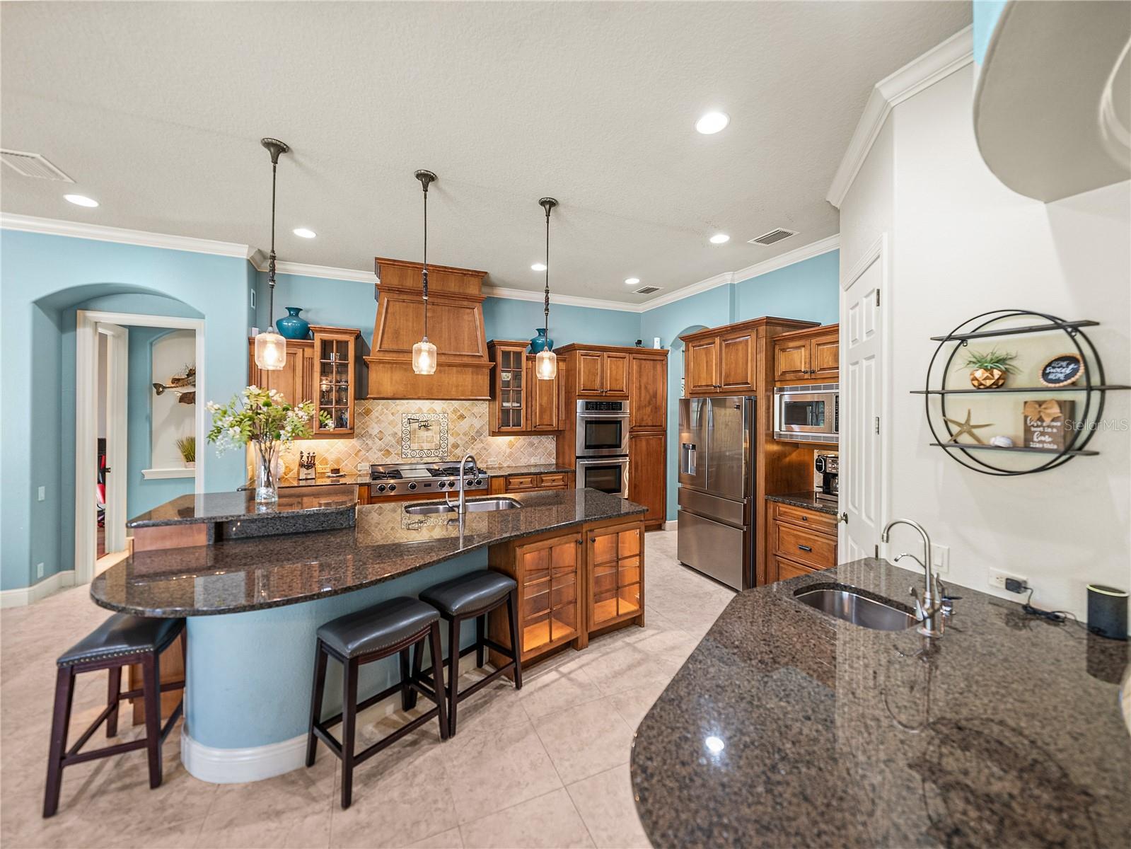 Motivated Sellers! A masterpiece of elegance and design, this 3,668 sq ft, 3 bedroom + office, 4 bath, 3 car garage estate is set within the prestigious gated community of Farmington Hills. It is nestled among tree-lined streets, offering an unparalleled lifestyle less than 5 minutes from Academy at the Farm- a highly regarded K-8 charter school soon expanding to include a high school. A paver driveway, 2022 exterior paint, and lush, manicured landscaping create a grand first impression, leading to a side-facing garage & a covered entryway. Through custom double doors, a breathtaking interior unfolds, revealing an open-concept design with soaring tray ceilings, refined architectural details, and seamless indoor-outdoor living. The formal living room captivates with a gas fireplace, exquisite molding, and triple sliding doors framing the resort-style pool. Combined with the formal dining room, it sets the stage for intimate gatherings. At the heart of the home, the chef’s kitchen is a triumph of style and function, beautifully appointed with granite countertops, a central island, breakfast bar and dinette seating, under-lit custom wood cabinetry, a wet bar, a walk-in pantry, and an overflow pantry. Delight in a culinary experience without compromise, as the list of top-notch amenities continues with a custom range hood, a pot filler, and high-end stainless steel appliances, including a double oven, a 6-burner gas range with a griddle, a wine refrigerator, a dishwasher, and a refrigerator. It flows seamlessly into the family room, designed for effortless entertaining, with 2 sets of triple sliding doors opening to the pool and outdoor kitchen. Set near a full guest bathroom, a convertible den awaits, ideal for guest comfort and privacy; it features a striking built-in wood entertainment center, bay windows with a bench overlooking the yard, and direct pool access. Each of the 3 bedroom suites is privately positioned, offering luxurious ensuite bathrooms, walk-in closets with custom organizers, ceiling fans, and rich wood flooring. The primary suite is a sanctuary of relaxation, introduced by an elegant foyer with intricate tile inlay. The spa-like ensuite bathroom features a jetted soaking tub, a walk-in shower with 2 showerheads, a central island with storage, separate sinks with vanity seating, and a hidden TV in the mirror! Generous custom closets lead to the serene sleeping quarters, which open directly to the poolside retreat. Designed for those who appreciate the finest details and added function, this home has exquisite crown molding, tray ceilings, decorative molding and pillar accents, a built-in desk near the 2nd bedroom, a thoughtfully designed laundry room, a 300- gallon propane tank, an integrated speaker system, and abundant storage throughout. Authentic Florida living awaits outdoors, where a heated saltwater pool and spa with updated equipment are set within a tropically landscaped paradise. A covered lanai with ceiling fans, a stone-faced gas fireplace, and an exquisite outdoor kitchen- complete with a grill, wet bar, 2 beverage refrigerators, and granite bar seating- create unmatched alfresco dining. Beyond, the expansive 1.17-acre lot offers endless possibilities for enjoying the Florida sunshine with an added open paver patio. Farmington Hills is a premier community in a prime location near Dade City, Zephyrhills, Wesley Chapel and the Lagoons. Call today for your exclusive viewing!