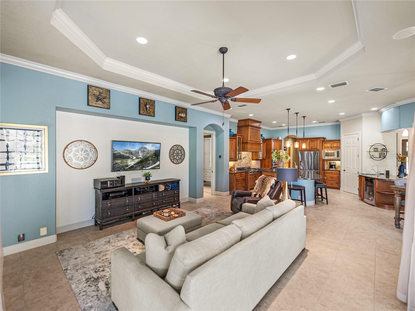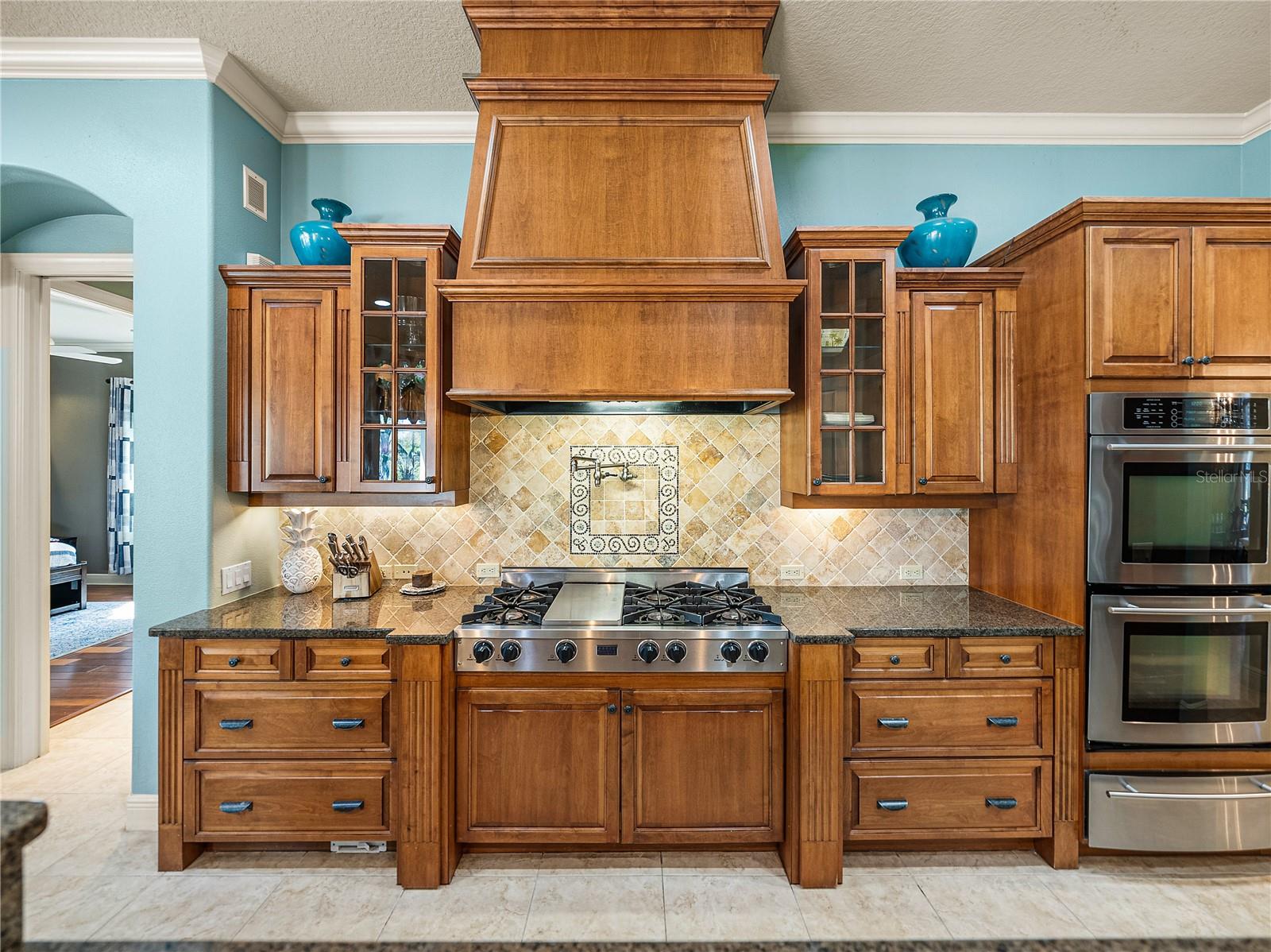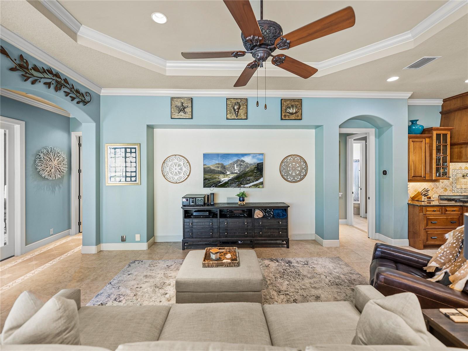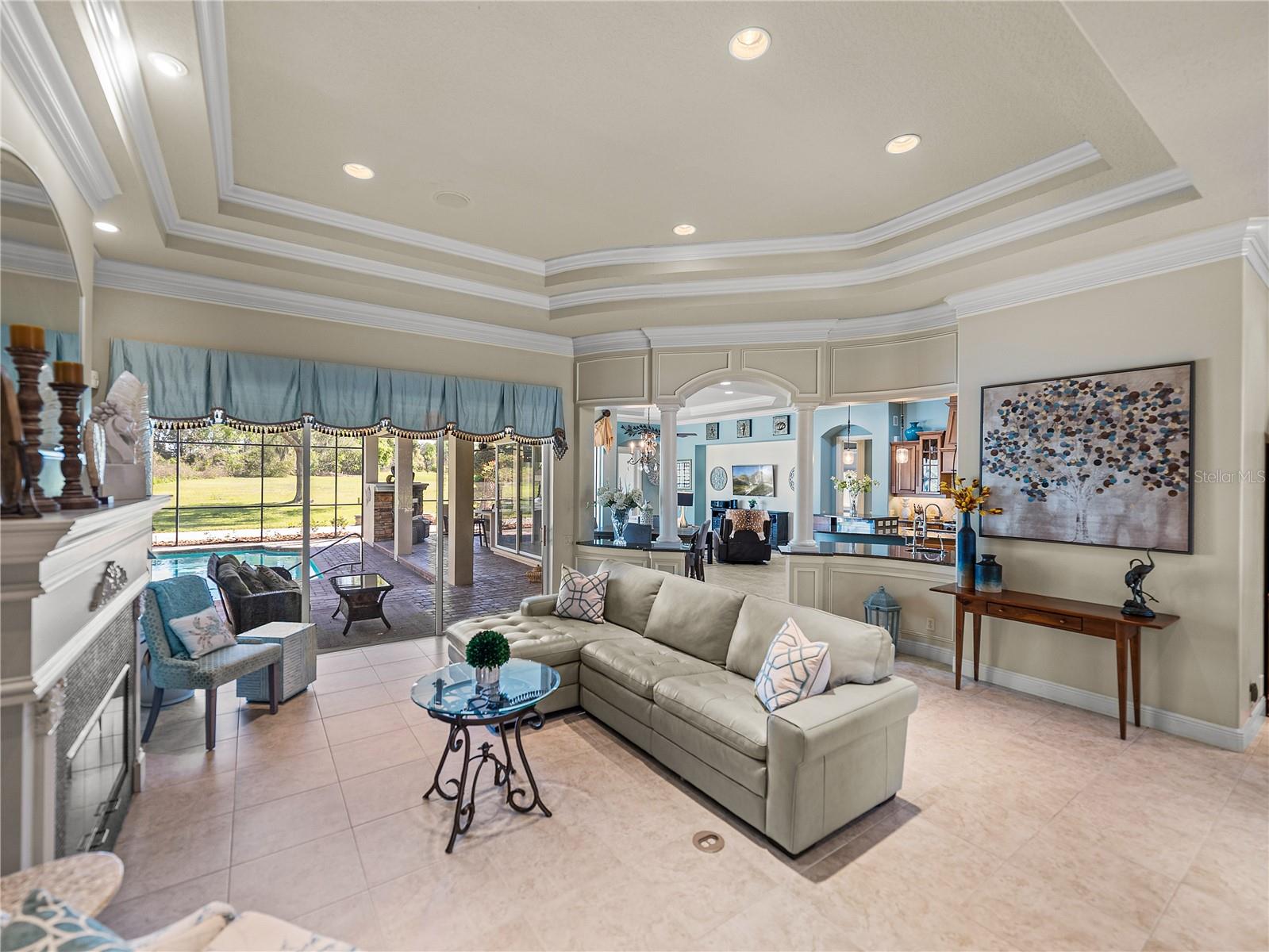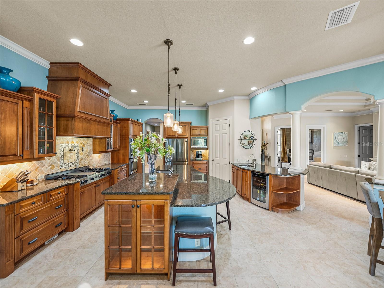 Motivated Sellers! A masterpiece of elegance and design, this 3,668 sq ft, 3 bedroom + office, 4 bath, 3 car garage estate is set within the prestigious gated community of Farmington Hills. It is nestled among tree-lined streets, offering an unparalleled lifestyle less than 5 minutes from Academy at the Farm- a highly regarded K-8 charter school soon expanding to include a high school. A paver driveway, 2022 exterior paint, and lush, manicured landscaping create a grand first impression, leading to a side-facing garage & a covered entryway. Through custom double doors, a breathtaking interior unfolds, revealing an open-concept design with soaring tray ceilings, refined architectural details, and seamless indoor-outdoor living. The formal living room captivates with a gas fireplace, exquisite molding, and triple sliding doors framing the resort-style pool. Combined with the formal dining room, it sets the stage for intimate gatherings. At the heart of the home, the chef’s kitchen is a triumph of style and function, beautifully appointed with granite countertops, a central island, breakfast bar and dinette seating, under-lit custom wood cabinetry, a wet bar, a walk-in pantry, and an overflow pantry. Delight in a culinary experience without compromise, as the list of top-notch amenities continues with a custom range hood, a pot filler, and high-end stainless steel appliances, including a double oven, a 6-burner gas range with a griddle, a wine refrigerator, a dishwasher, and a refrigerator. It flows seamlessly into the family room, designed for effortless entertaining, with 2 sets of triple sliding doors opening to the pool and outdoor kitchen. Set near a full guest bathroom, a convertible den awaits, ideal for guest comfort and privacy; it features a striking built-in wood entertainment center, bay windows with a bench overlooking the yard, and direct pool access. Each of the 3 bedroom suites is privately positioned, offering luxurious ensuite bathrooms, walk-in closets with custom organizers, ceiling fans, and rich wood flooring. The primary suite is a sanctuary of relaxation, introduced by an elegant foyer with intricate tile inlay. The spa-like ensuite bathroom features a jetted soaking tub, a walk-in shower with 2 showerheads, a central island with storage, separate sinks with vanity seating, and a hidden TV in the mirror! Generous custom closets lead to the serene sleeping quarters, which open directly to the poolside retreat. Designed for those who appreciate the finest details and added function, this home has exquisite crown molding, tray ceilings, decorative molding and pillar accents, a built-in desk near the 2nd bedroom, a thoughtfully designed laundry room, a 300- gallon propane tank, an integrated speaker system, and abundant storage throughout. Authentic Florida living awaits outdoors, where a heated saltwater pool and spa with updated equipment are set within a tropically landscaped paradise. A covered lanai with ceiling fans, a stone-faced gas fireplace, and an exquisite outdoor kitchen- complete with a grill, wet bar, 2 beverage refrigerators, and granite bar seating- create unmatched alfresco dining. Beyond, the expansive 1.17-acre lot offers endless possibilities for enjoying the Florida sunshine with an added open paver patio. Farmington Hills is a premier community in a prime location near Dade City, Zephyrhills, Wesley Chapel and the Lagoons. Call today for your exclusive viewing!
