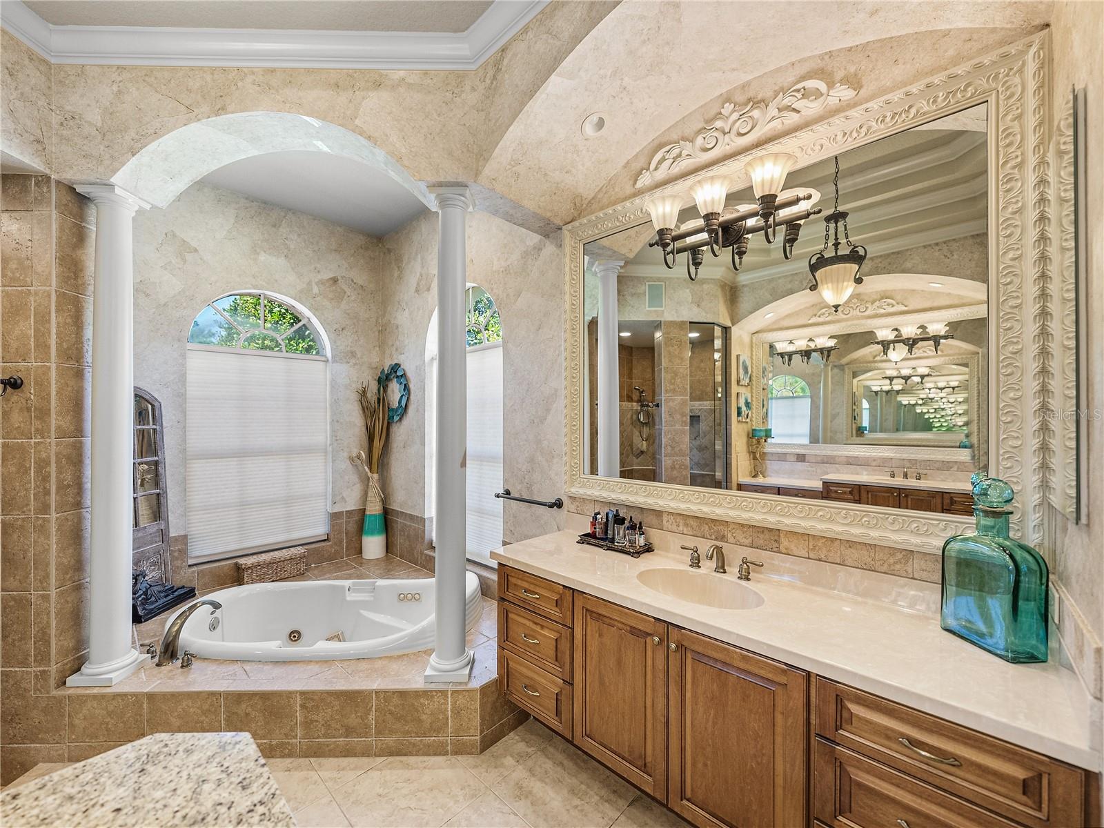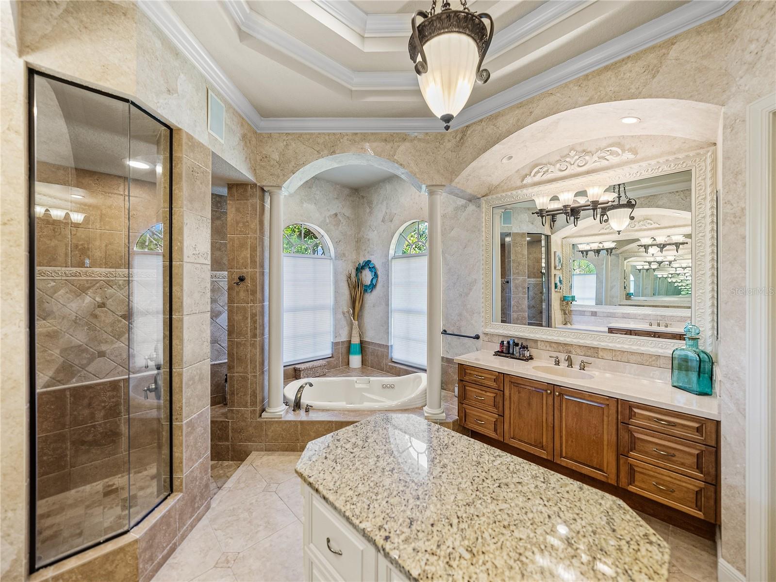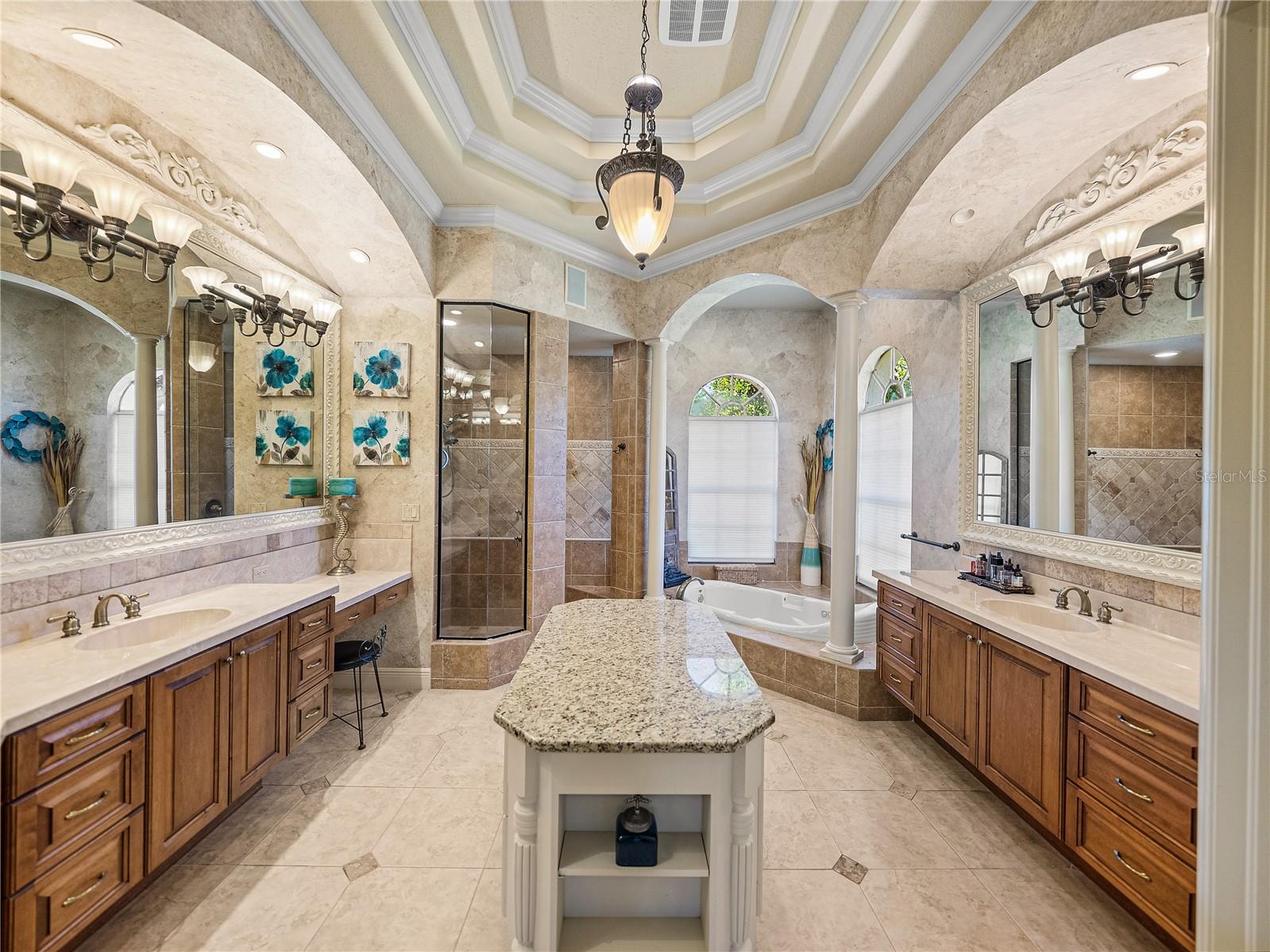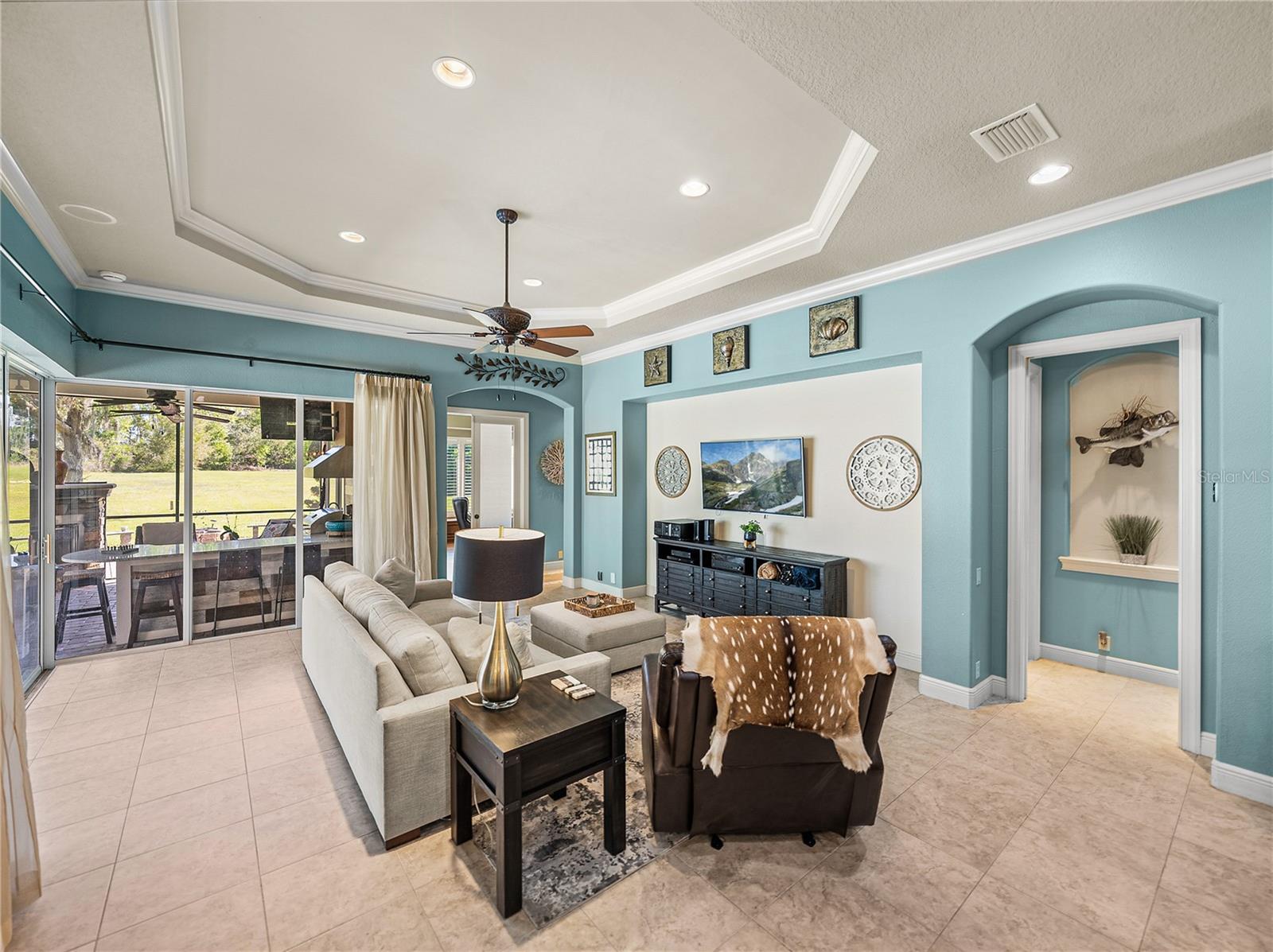 Motivated Sellers! A masterpiece of elegance and design, this 3,668 sq ft, 3 bedroom + office, 4 bath, 3 car garage estate is set within the prestigious gated community of Farmington Hills. It is nestled among tree-lined streets, offering an unparalleled lifestyle less than 5 minutes from Academy at the Farm- a highly regarded K-8 charter school soon expanding to include a high school. A paver driveway, 2022 exterior paint, and lush, manicured landscaping create a grand first impression, leading to a side-facing garage & a covered entryway. Through custom double doors, a breathtaking interior unfolds, revealing an open-concept design with soaring tray ceilings, refined architectural details, and seamless indoor-outdoor living. The formal living room captivates with a gas fireplace, exquisite molding, and triple sliding doors framing the resort-style pool. Combined with the formal dining room, it sets the stage for intimate gatherings. At the heart of the home, the chef’s kitchen is a triumph of style and function, beautifully appointed with granite countertops, a central island, breakfast bar and dinette seating, under-lit custom wood cabinetry, a wet bar, a walk-in pantry, and an overflow pantry. Delight in a culinary experience without compromise, as the list of top-notch amenities continues with a custom range hood, a pot filler, and high-end stainless steel appliances, including a double oven, a 6-burner gas range with a griddle, a wine refrigerator, a dishwasher, and a refrigerator. It flows seamlessly into the family room, designed for effortless entertaining, with 2 sets of triple sliding doors opening to the pool and outdoor kitchen. Set near a full guest bathroom, a convertible den awaits, ideal for guest comfort and privacy; it features a striking built-in wood entertainment center, bay windows with a bench overlooking the yard, and direct pool access. Each of the 3 bedroom suites is privately positioned, offering luxurious ensuite bathrooms, walk-in closets with custom organizers, ceiling fans, and rich wood flooring. The primary suite is a sanctuary of relaxation, introduced by an elegant foyer with intricate tile inlay. The spa-like ensuite bathroom features a jetted soaking tub, a walk-in shower with 2 showerheads, a central island with storage, separate sinks with vanity seating, and a hidden TV in the mirror! Generous custom closets lead to the serene sleeping quarters, which open directly to the poolside retreat. Designed for those who appreciate the finest details and added function, this home has exquisite crown molding, tray ceilings, decorative molding and pillar accents, a built-in desk near the 2nd bedroom, a thoughtfully designed laundry room, a 300- gallon propane tank, an integrated speaker system, and abundant storage throughout. Authentic Florida living awaits outdoors, where a heated saltwater pool and spa with updated equipment are set within a tropically landscaped paradise. A covered lanai with ceiling fans, a stone-faced gas fireplace, and an exquisite outdoor kitchen- complete with a grill, wet bar, 2 beverage refrigerators, and granite bar seating- create unmatched alfresco dining. Beyond, the expansive 1.17-acre lot offers endless possibilities for enjoying the Florida sunshine with an added open paver patio. Farmington Hills is a premier community in a prime location near Dade City, Zephyrhills, Wesley Chapel and the Lagoons. Call today for your exclusive viewing!
