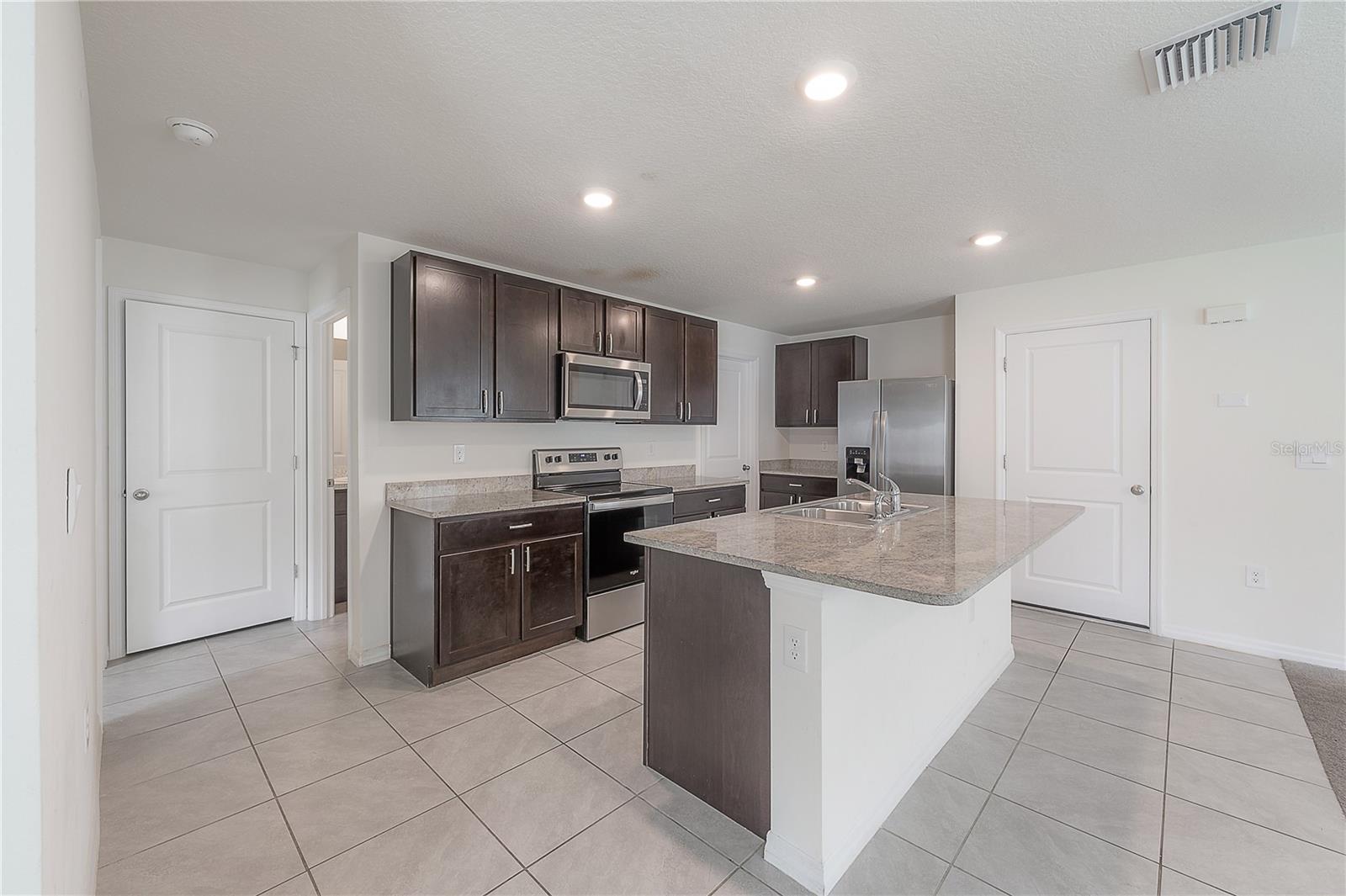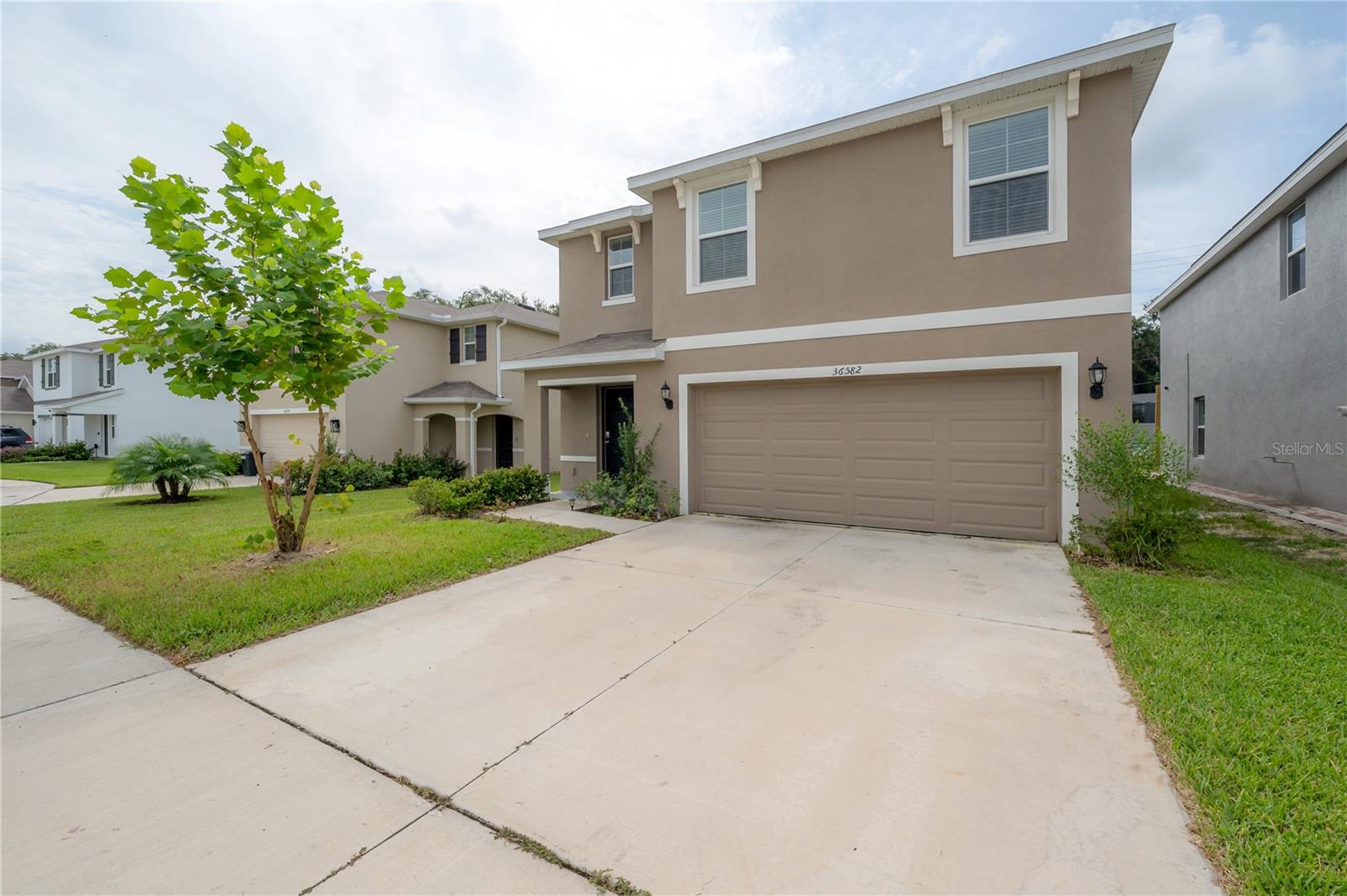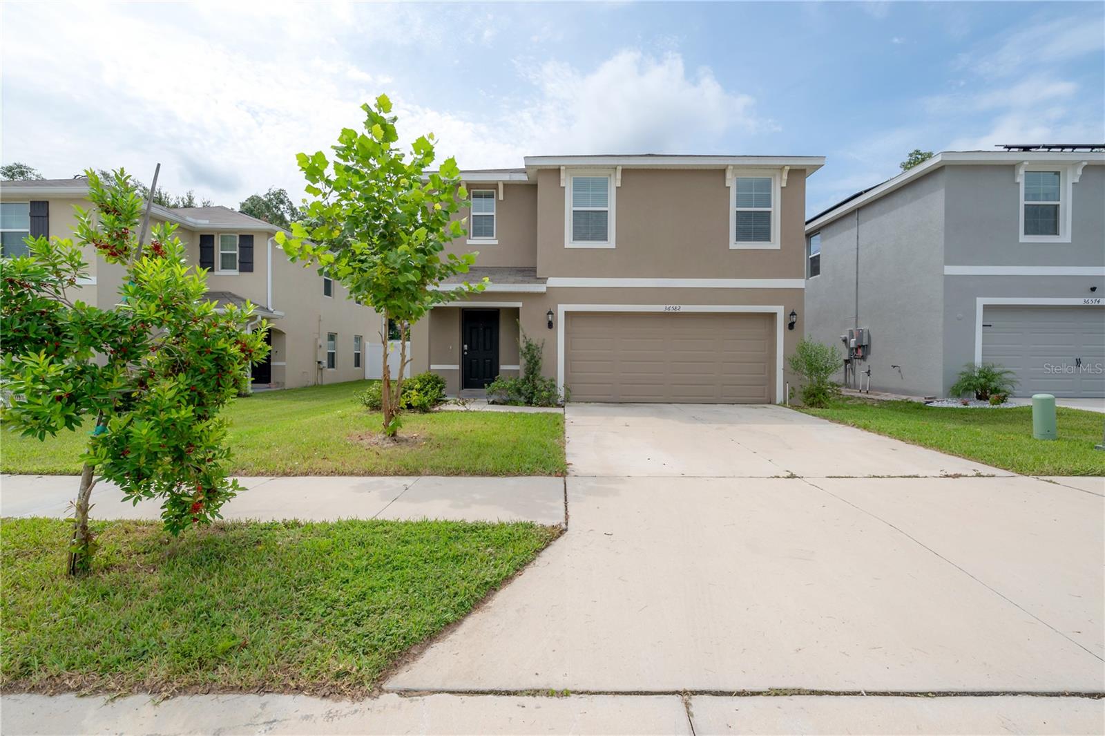 One or more photo(s) has been virtually staged. HERITAGE HILLS!! Suwanee Lakeside - 5 BEDROOM / 3 BATH OPEN CONCEPT Home - 2022 BUILD - BLOCK CONSTRUCTION on BOTH the First and Second Floor With NO Neighbors Behind You! This Beautiful Home Has A Gracious Entryway Leading Directly to the OPEN Living, Dining, and Spacious Kitchen Area, Which Includes an Abundance of Cabinetry, Stainless Steel Appliances, Recessed Lighting, and An Oversized Island - The Living Area Opens to The Nicely Sized Backyard With NO REAR NEIGHBORS And There is Also ONE BEDROOM ON THE FIRST FLOOR - Perfect for an In-Law Suite, Guest Bedroom, Or Home Office .... The Other 3 Bedrooms Are Located on the Second Level with a Main Bedroom that Includes Both an Oversized En Suite Bath and a Large Walk-In Closet - ALL Located Within the NEWLY DEVELOPED Heritage Hills Community - That Includes Both a Park and a Playground - Located Close to I-75, With Easy Access to Tampa, Westchase, Tampa International Airport, Tampa Premium Outlets, International Plaza ......