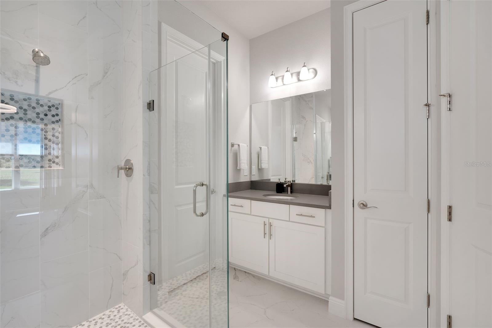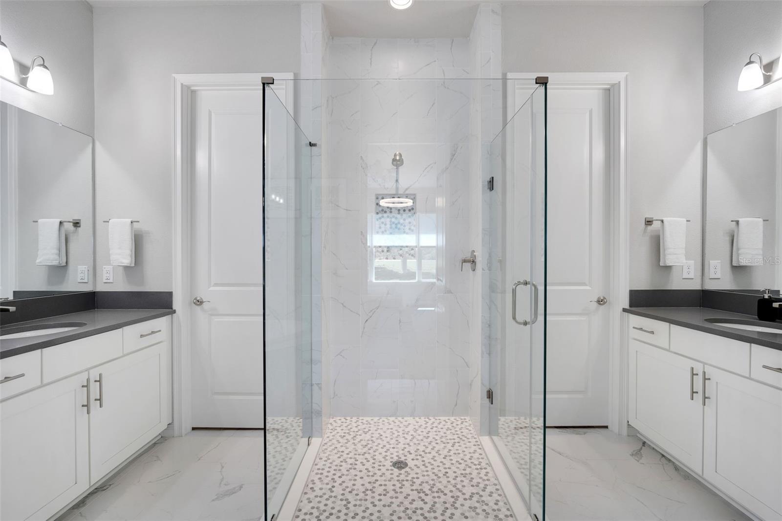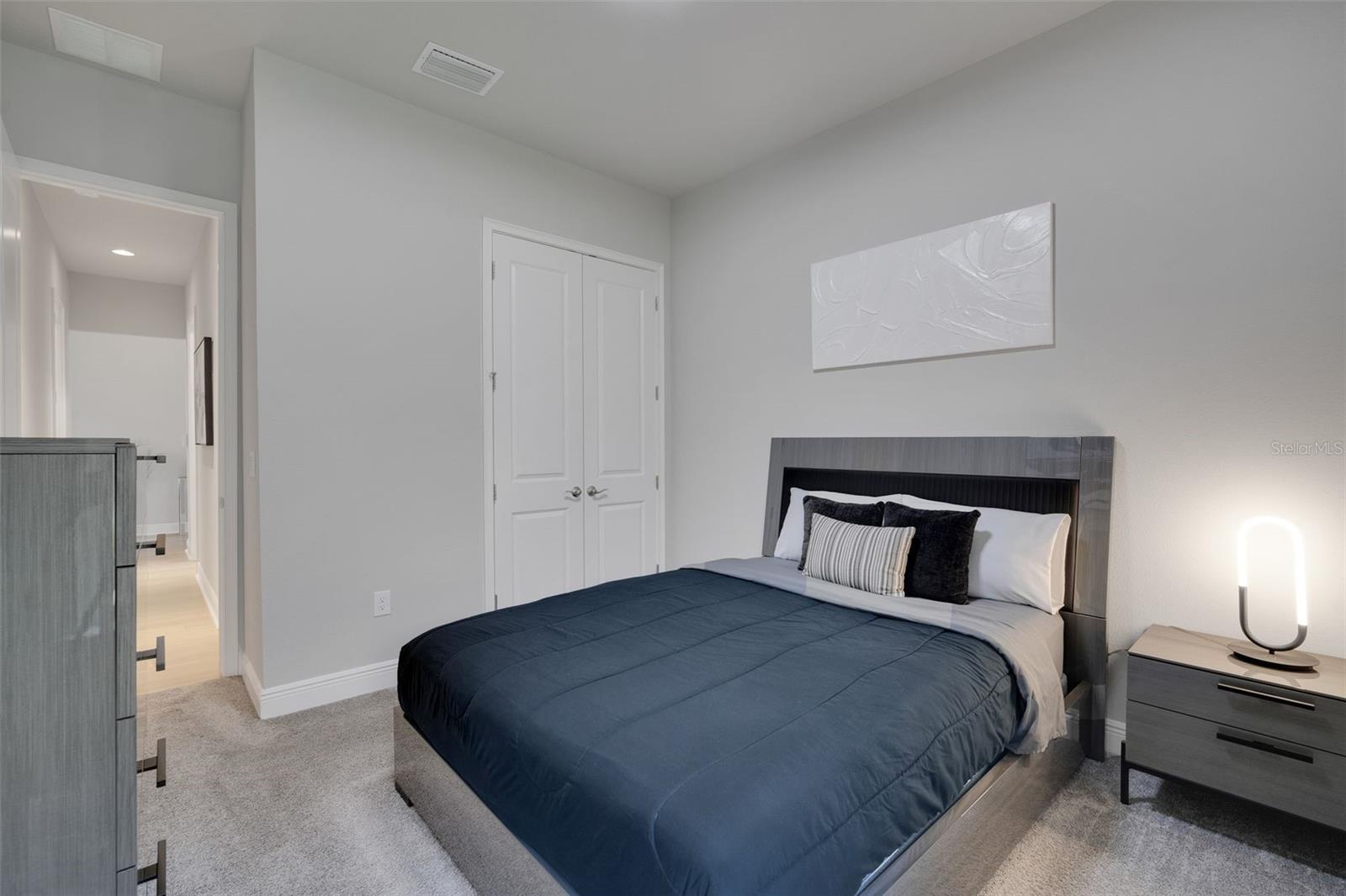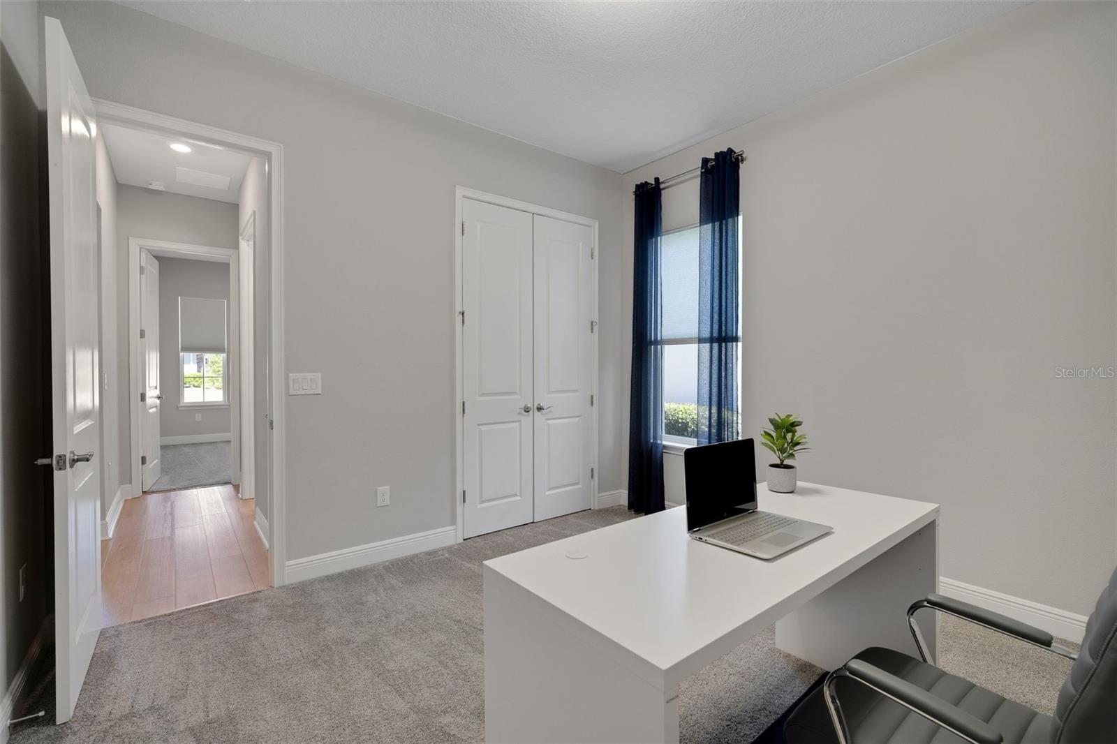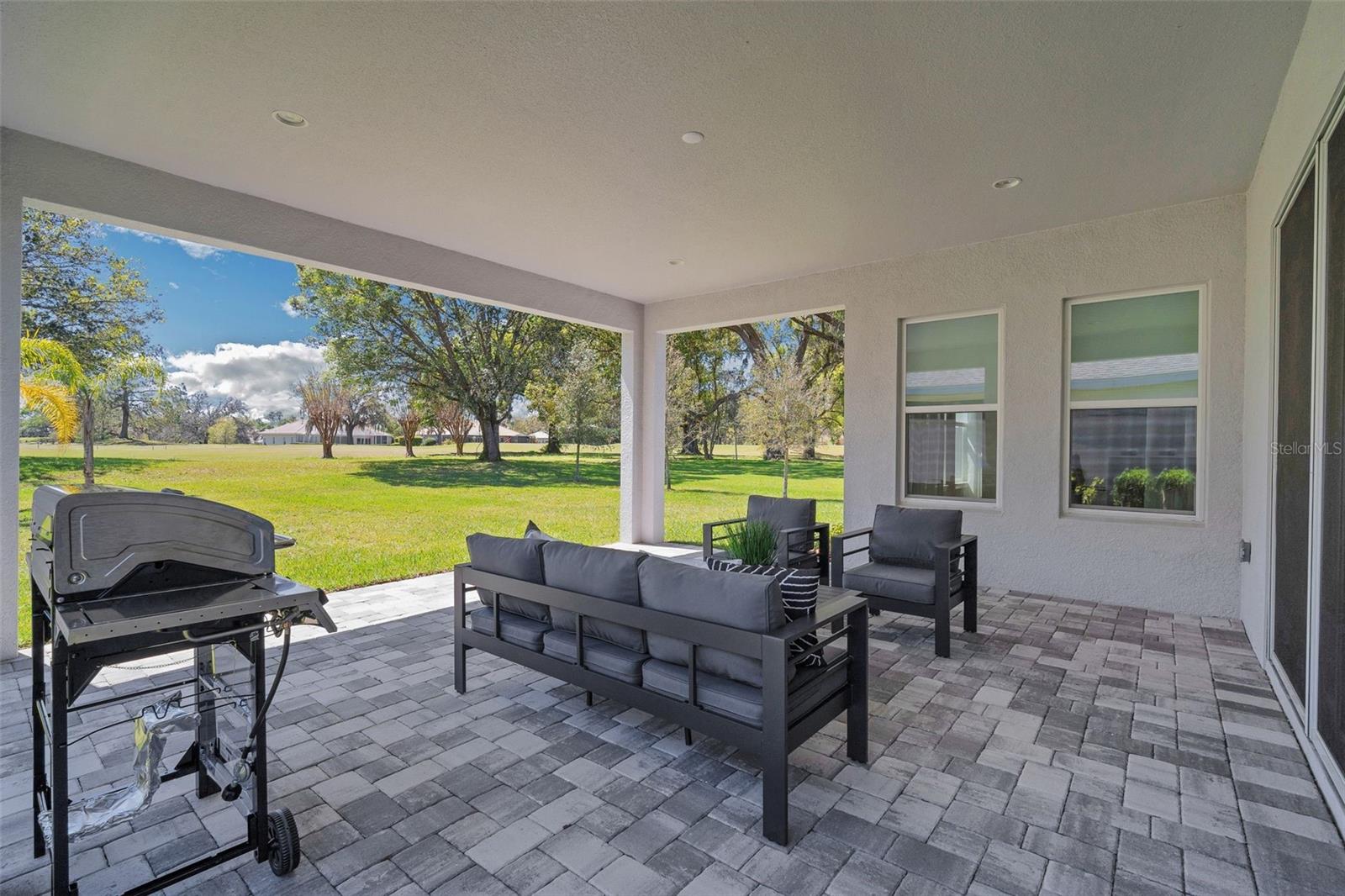 CONTEMPORARY. IMMACULATE. MOVE IN READY. This 2022 ICI home in Lake Jovita Golf and Country Club shows like a model and blends modern luxury with everyday ease. Escape the traffic and enjoy a newer build tucked inside a beautifully established community. Soaring tray ceilings and elegant lighting set the stage for a bright, modern open layout. Triple sliders frame golf course views, while the chef’s kitchen stuns with quartz counters, stainless steel appliances, soft close cabinetry, under cabinet lighting, and a 10 ft island built for entertaining. Your spacious primary suite is a peaceful retreat with a picture window overlooking the fairway and a spa like en-suite bath. Outside, unwind on the extended covered patio with peaceful views of the tee box. This home is packed with premium upgrades, including FULL IMPACT WINDOWS AND DOORS for energy efficiency, lower insurance costs, and added peace of mind, plus professionally designed closet systems, Sparc Tek garage flooring, overhead storage, and an EV charger. The low $86/month HOA includes Blue Stream Fiber internet, 24/7 guard gated entry, pickleball courts, and scenic walking trails, with OPTIONAL golf and country club memberships for access to the championship course, tennis courts, resort style pool, clubhouse, and on-site restaurant.