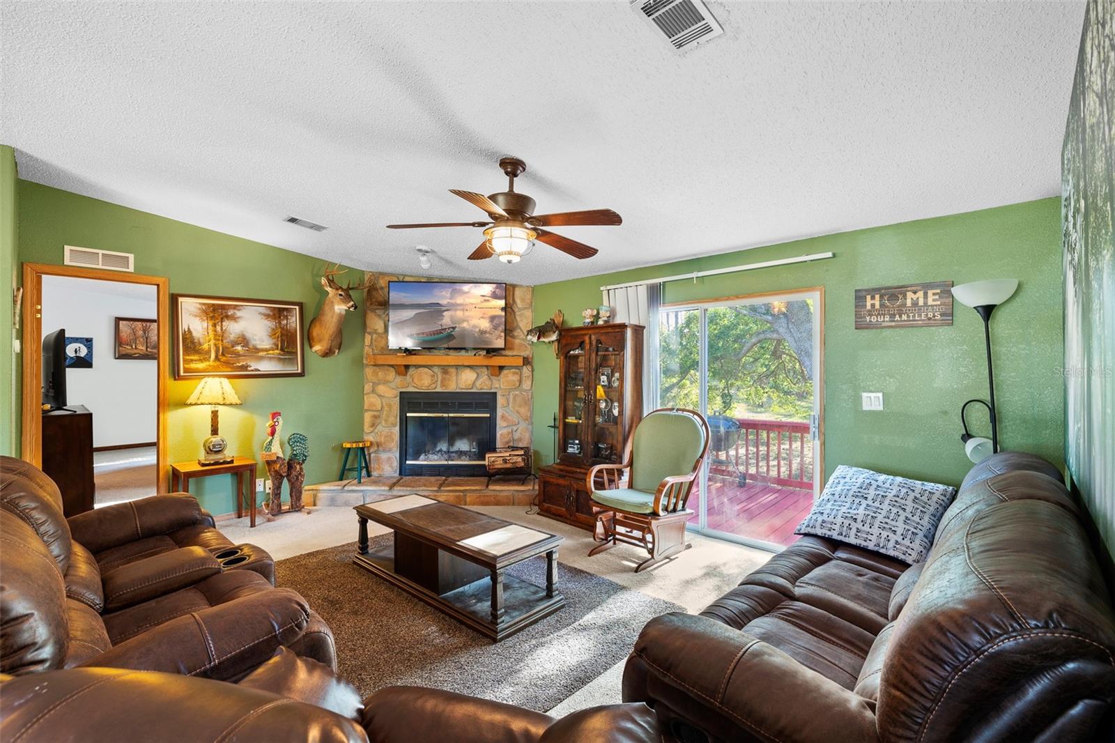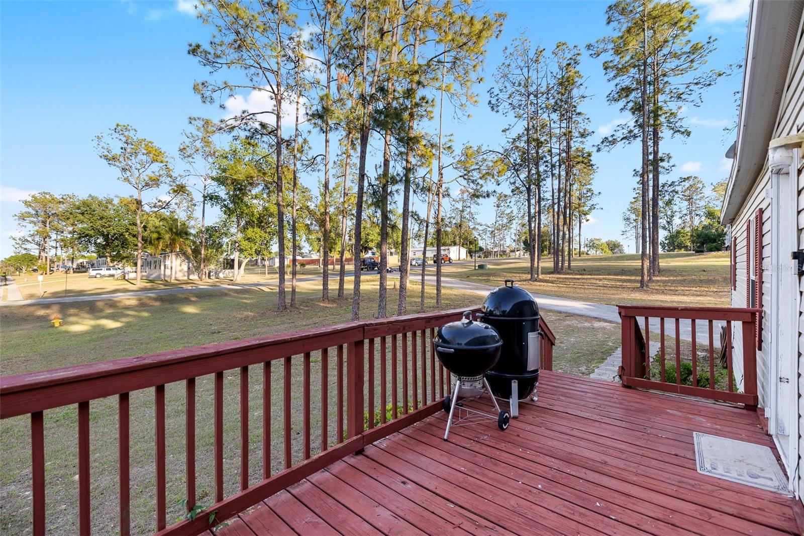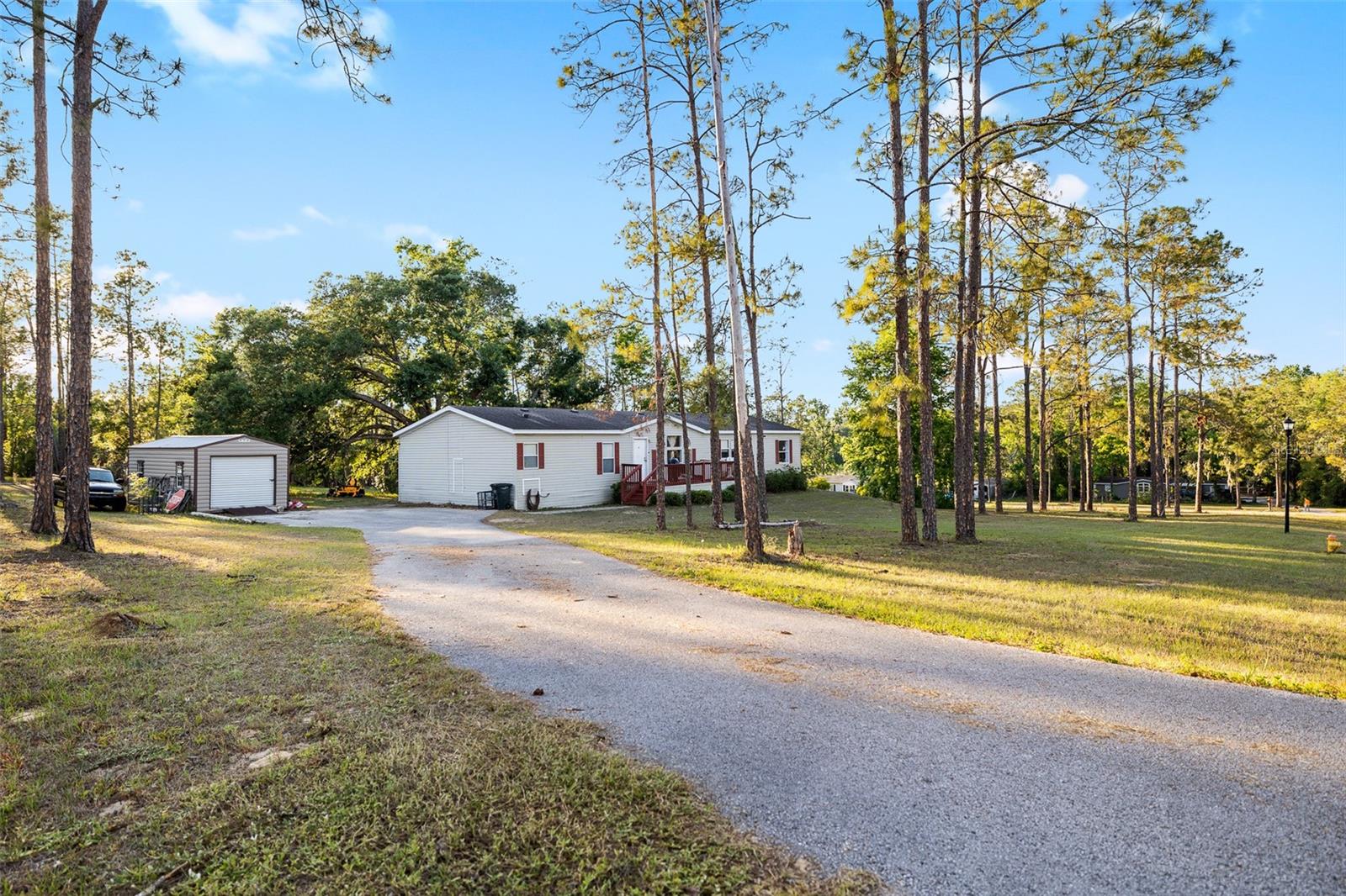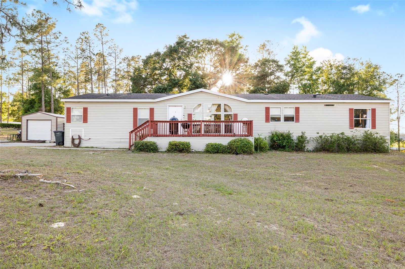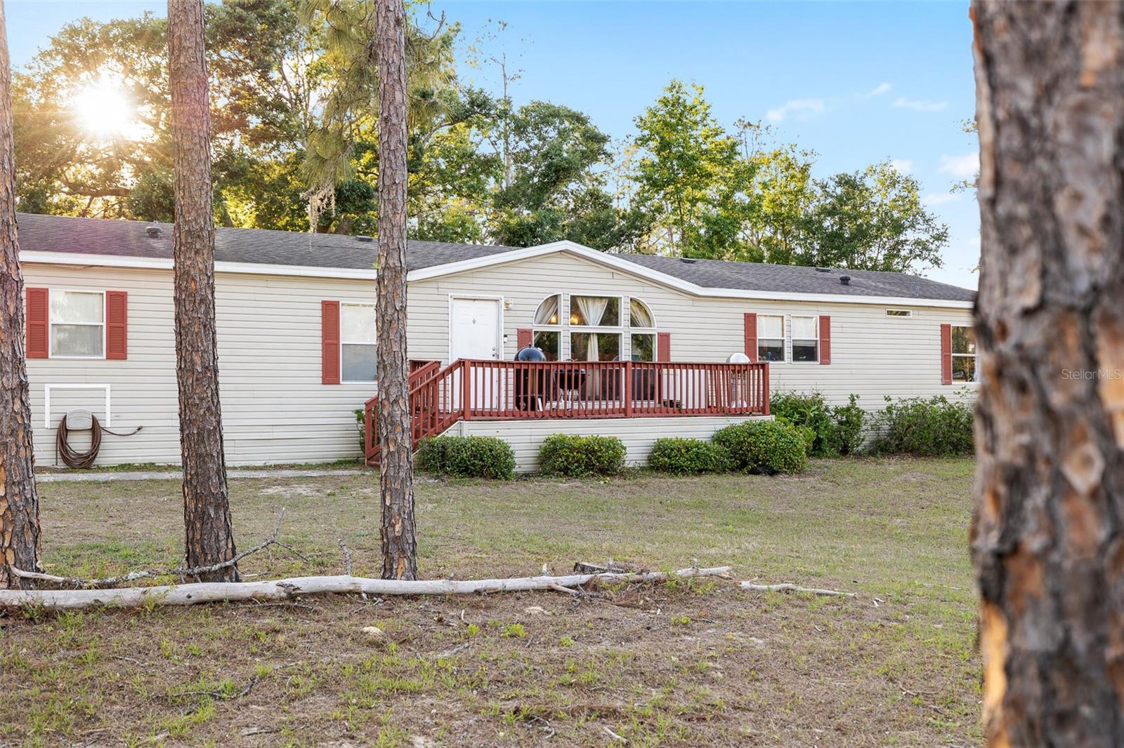MOTIVATED SELLER RELOCATING! Serene surroundings await at this 3 bedroom, 2 bath manufactured home, perfectly set on nearly 3 picturesque acres of horse-friendly, corner-lot land just moments from Burks Park, downtown Dade City's charming shops, restaurants, and vibrant community events! Framed by mature pine trees, the property invites you to enjoy Florida’s natural beauty from two expansive decks- one at the front and a freshly updated deck overlooking the peaceful backyard. Whether you’re sipping coffee at sunrise or winding down in the evening, there’s no better place to relax and take it all in. Step inside to a thoughtfully designed, open layout where formal and casual spaces flow seamlessly. The formal living room, dedicated dining area, and spacious family room are perfectly connected, offering vaulted ceilings, sliding glass doors to the back deck, and a cozy wood-burning fireplace set in stone, complete with a classic wooden mantle- ideal for gatherings year-round. At the heart of the home, the 17x12 eat-in kitchen is a true standout, featuring two breakfast bar seating areas, a central island for easy prep, pantry storage, and a peek-a-boo view into the family room, allowing you to stay connected while cooking. A desirable split-bedroom floor plan ensures privacy for all. The primary suite has generously sized sleeping quarters, a walk-in closet, and an ensuite bath with a garden tub and a walk-in shower. The second bedroom is impressively oversized, originally designed as two separate rooms, now combined into a sprawling 22x12 space! The third bedroom is positioned near the full guest bath with a convenient tub/shower combo. Additional perks include a 2023 AC system, offering peace of mind for years to come, and a large storage shed! This property is a wonderful combination of space, comfort, and lifestyle- just minutes from everything Dade City has to offer. Don’t miss your chance to make it yours, call today for your private showing!