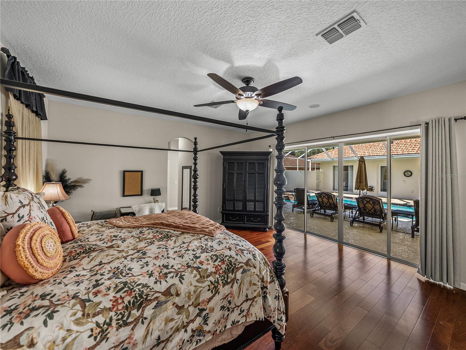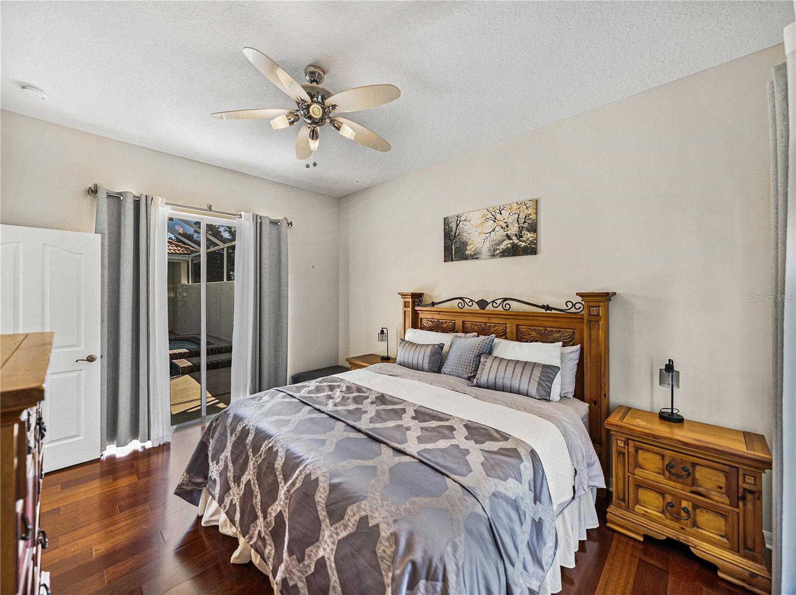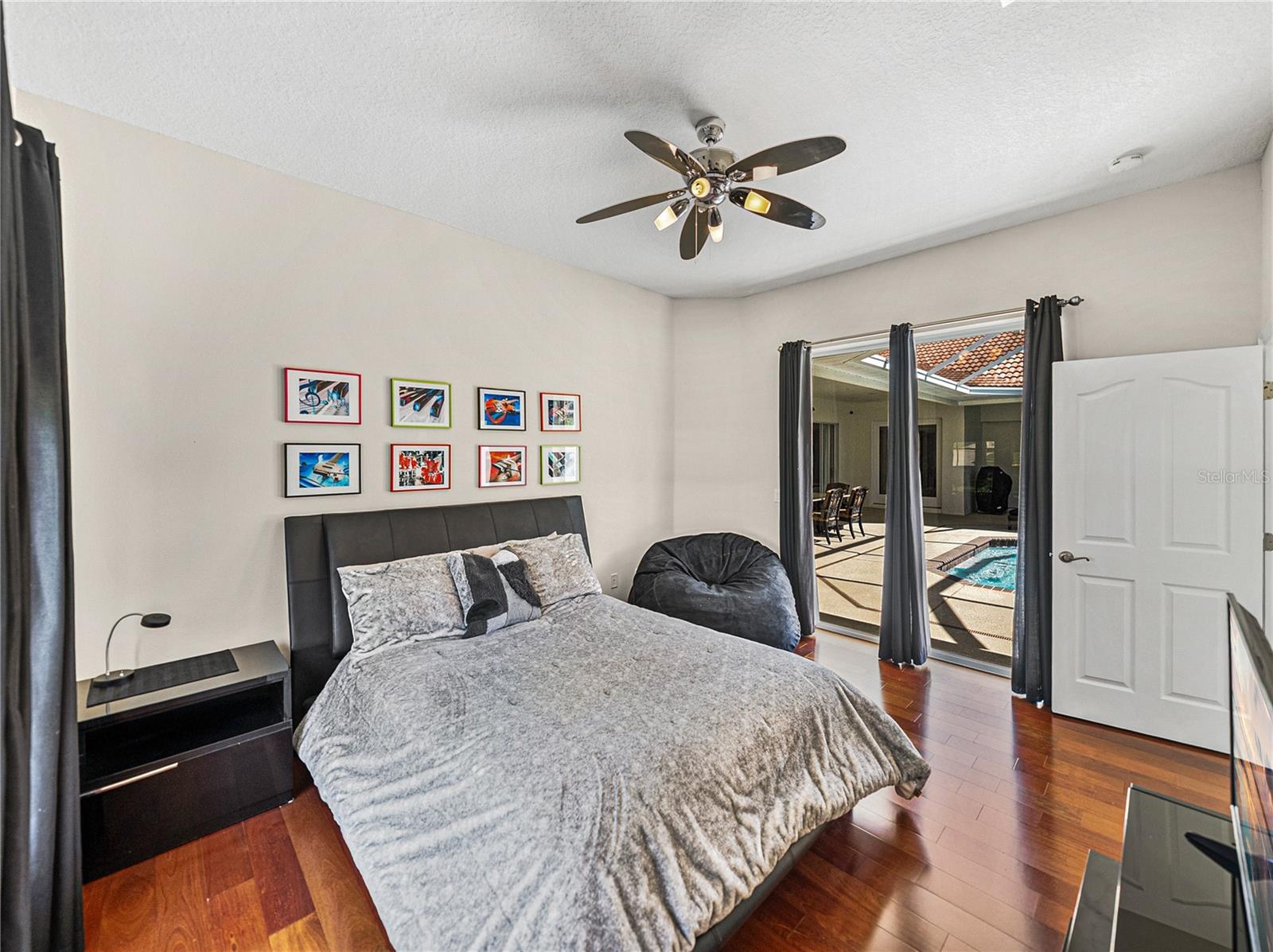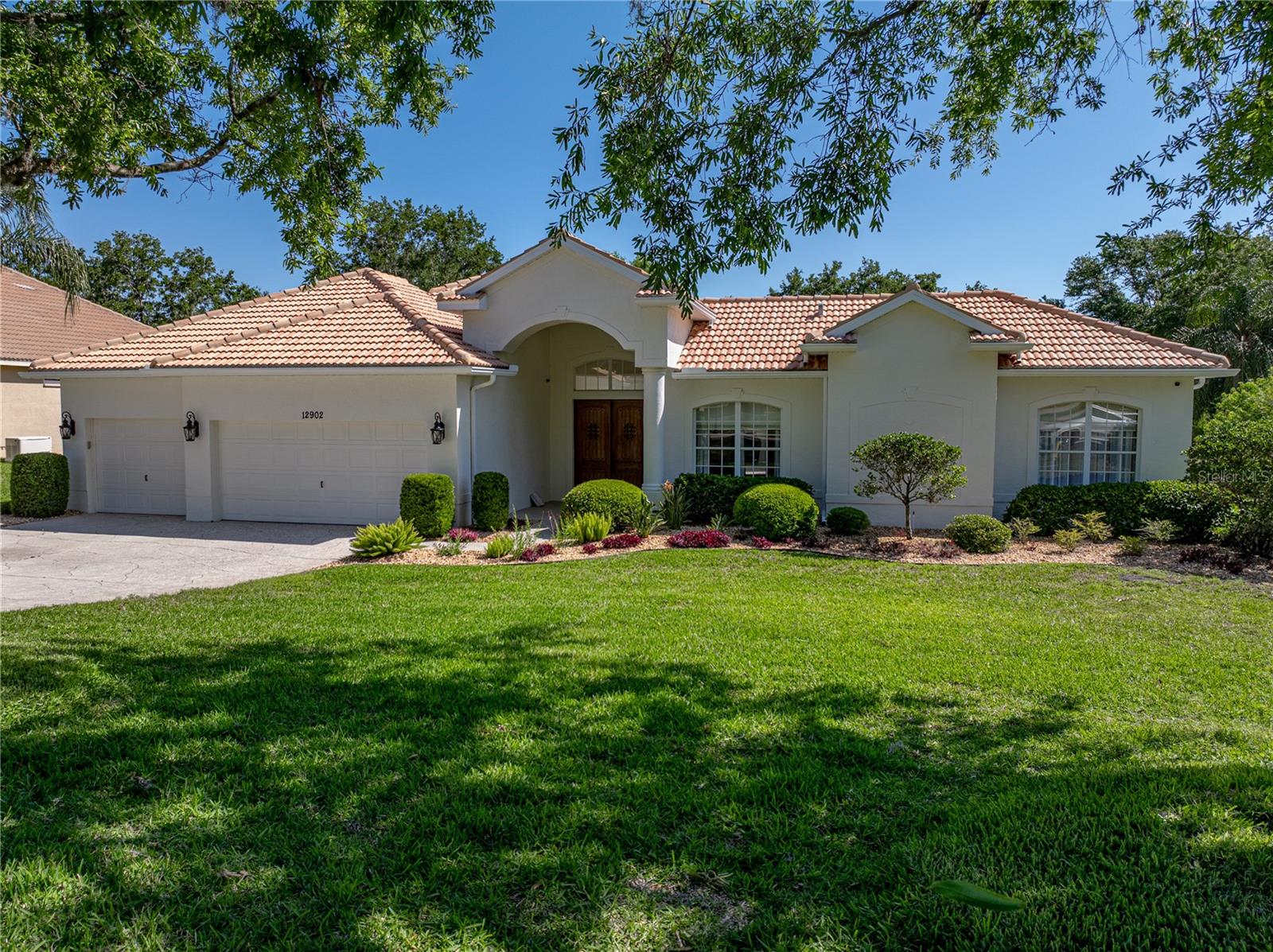 SELLER IS OFFERING UP TO $5,000 towards golf initiation fees, closing costs or HOA fees! Set on a scenic 1/2 acre with breathtaking golf course views, this beautifully updated, 5 bedroom, 3 bath cabana-style residence wraps around a private pool. It offers a unique layout that is ideal for entertaining or multi-generational living. Step through custom wood double doors into the serene courtyard, where the pool becomes the centerpiece of this thoughtfully designed home. Inside the main house, you'll find 3 spacious bedrooms, 2 full bathrooms, and 2 inviting living areas. The main living area features beautiful hardwood flooring, soaring ceilings with dual decorative fans, and multiple sets of sliding doors that flood the space with natural light. It flows seamlessly into the formal dining area, creating an open atmosphere perfect for gatherings. The updated kitchen offers granite countertops, breakfast bar seating, 2024 stainless steel appliances, recessed lighting, pantry storage, and a sunny eat-in dinette. A second living area nearby adds flexibility for everyday comfort. Privately split from the secondary bedrooms, the primary suite is a retreat of its own with wood flooring, sliding doors to the pool, and an expansive walk-in closet. There is new tile flooring in the spa-like ensuite bathroom with dual sinks, vanity seating, a soaking tub, and a walk-in shower. Bedrooms 2 and 3 are located on the opposite side of the home and share a well-appointed guest bath. One of the most desirable features of this floor plan is the detached cabana style guest house. It is a secluded suite with 2 generously sized bedrooms, each offering walk-in closets and connected by the full cabana pool bath. It's an ideal setup for a private office, visitors, in-laws, or teens! Recent upgrades add style and peace of mind.:There is new tile in the kitchen, primary bath, and living area (2024), new kitchen appliances (2024), and a new washer and dryer (2025), updated flooring in the cabana suite (2024), fresh exterior paint (2024), and interior paint (2021). The heated pool and spa provide a private backdrop for easy alfresco dining, quiet mornings, or fun-filled weekends under the sun. Enjoy all the amenities Lake Jovita has to offer, from 24-hour gated security and two championship golf courses, to tennis, pickleball, a fitness center, and optional club memberships. This is refined Florida living in one of the area's most desirable communities. Schedule your private showing today!