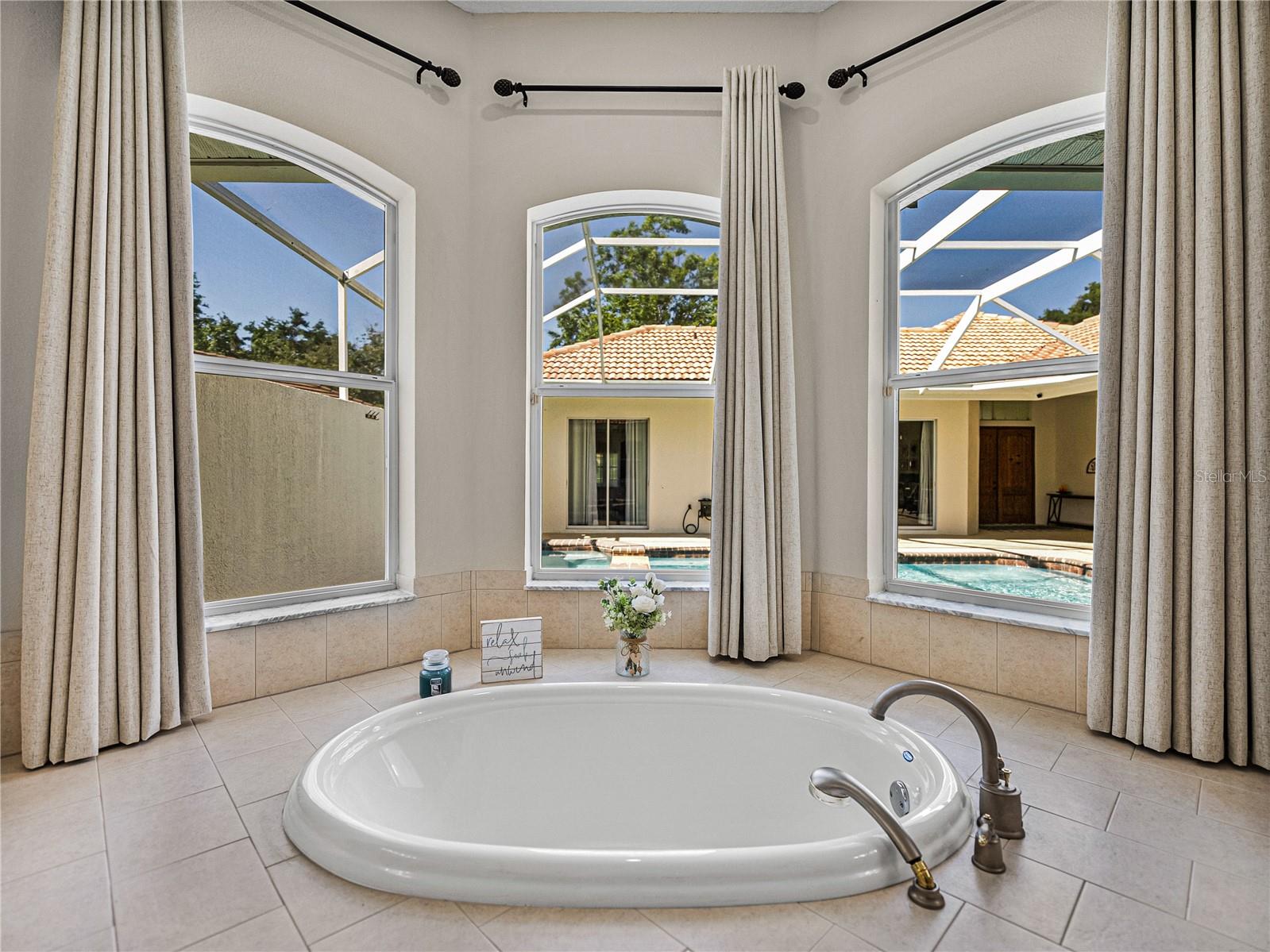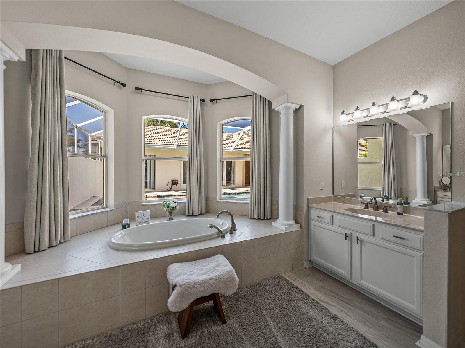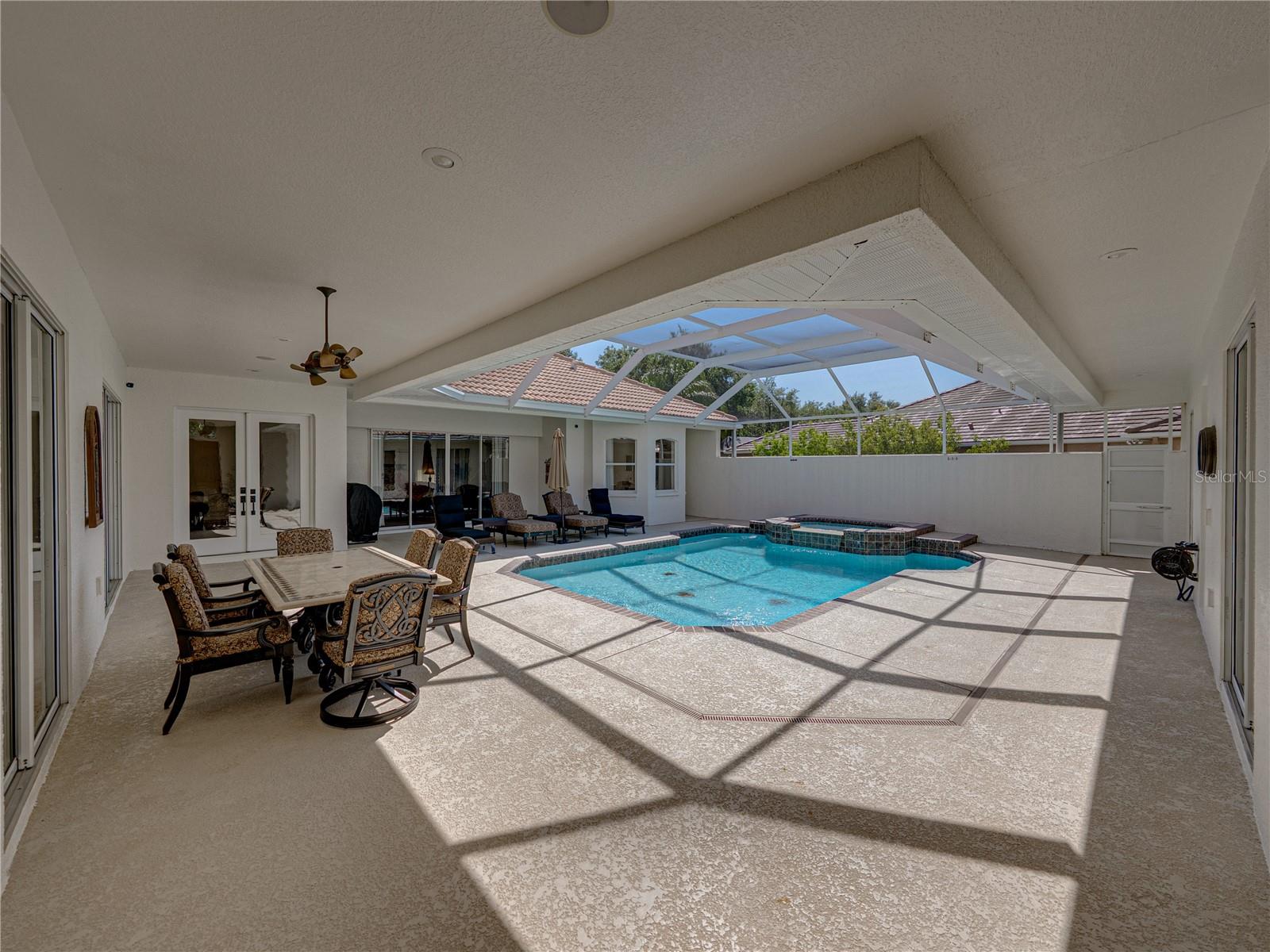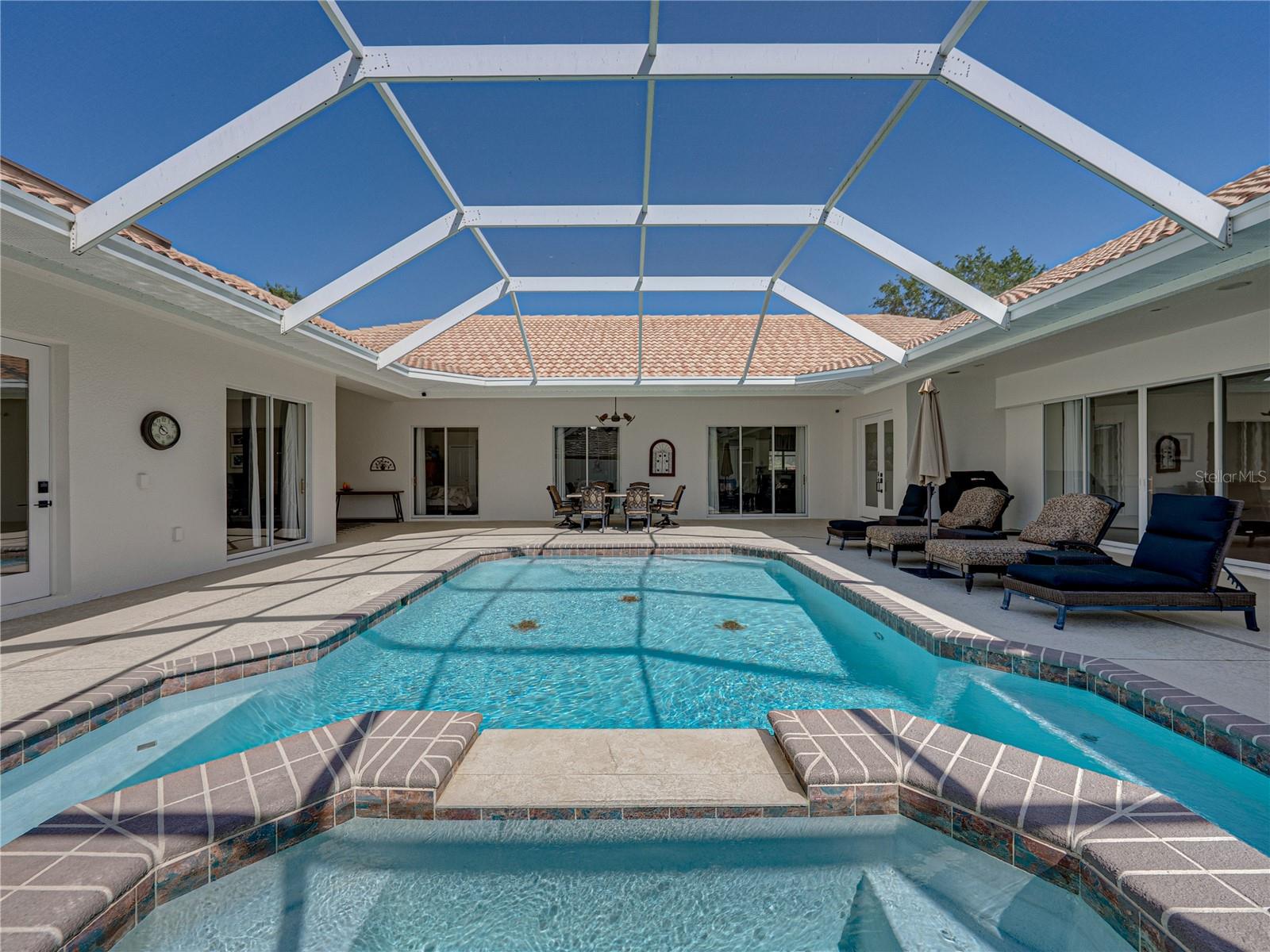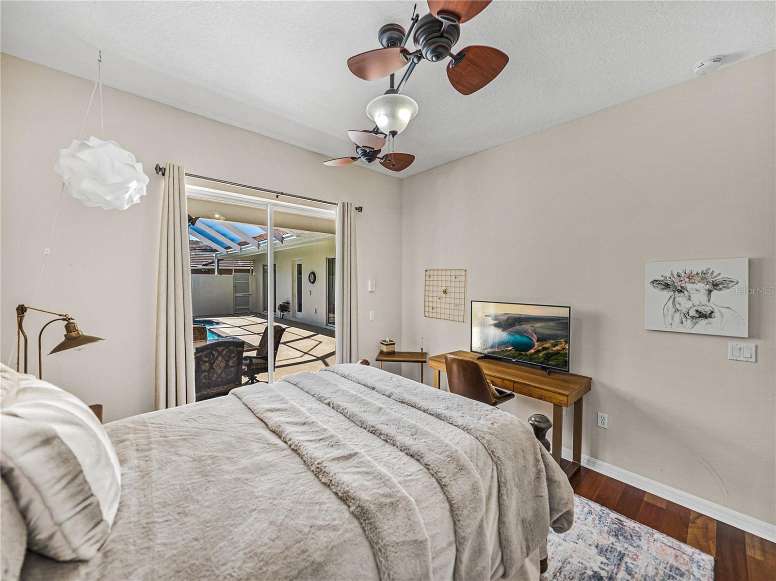 SELLER IS OFFERING UP TO $5,000 towards golf initiation fees, closing costs or HOA fees! Set on a scenic 1/2 acre with breathtaking golf course views, this beautifully updated, 5 bedroom, 3 bath cabana-style residence wraps around a private pool. It offers a unique layout that is ideal for entertaining or multi-generational living. Step through custom wood double doors into the serene courtyard, where the pool becomes the centerpiece of this thoughtfully designed home. Inside the main house, you'll find 3 spacious bedrooms, 2 full bathrooms, and 2 inviting living areas. The main living area features beautiful hardwood flooring, soaring ceilings with dual decorative fans, and multiple sets of sliding doors that flood the space with natural light. It flows seamlessly into the formal dining area, creating an open atmosphere perfect for gatherings. The updated kitchen offers granite countertops, breakfast bar seating, 2024 stainless steel appliances, recessed lighting, pantry storage, and a sunny eat-in dinette. A second living area nearby adds flexibility for everyday comfort. Privately split from the secondary bedrooms, the primary suite is a retreat of its own with wood flooring, sliding doors to the pool, and an expansive walk-in closet. There is new tile flooring in the spa-like ensuite bathroom with dual sinks, vanity seating, a soaking tub, and a walk-in shower. Bedrooms 2 and 3 are located on the opposite side of the home and share a well-appointed guest bath. One of the most desirable features of this floor plan is the detached cabana style guest house. It is a secluded suite with 2 generously sized bedrooms, each offering walk-in closets and connected by the full cabana pool bath. It's an ideal setup for a private office, visitors, in-laws, or teens! Recent upgrades add style and peace of mind.:There is new tile in the kitchen, primary bath, and living area (2024), new kitchen appliances (2024), and a new washer and dryer (2025), updated flooring in the cabana suite (2024), fresh exterior paint (2024), and interior paint (2021). The heated pool and spa provide a private backdrop for easy alfresco dining, quiet mornings, or fun-filled weekends under the sun. Enjoy all the amenities Lake Jovita has to offer, from 24-hour gated security and two championship golf courses, to tennis, pickleball, a fitness center, and optional club memberships. This is refined Florida living in one of the area's most desirable communities. Schedule your private showing today!