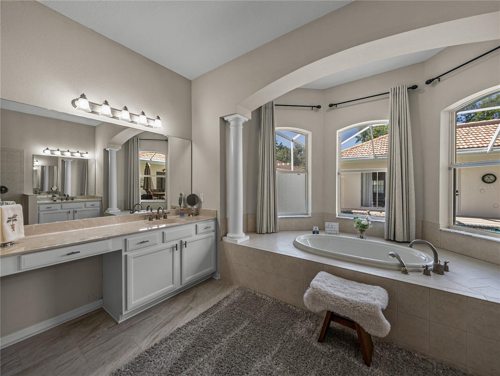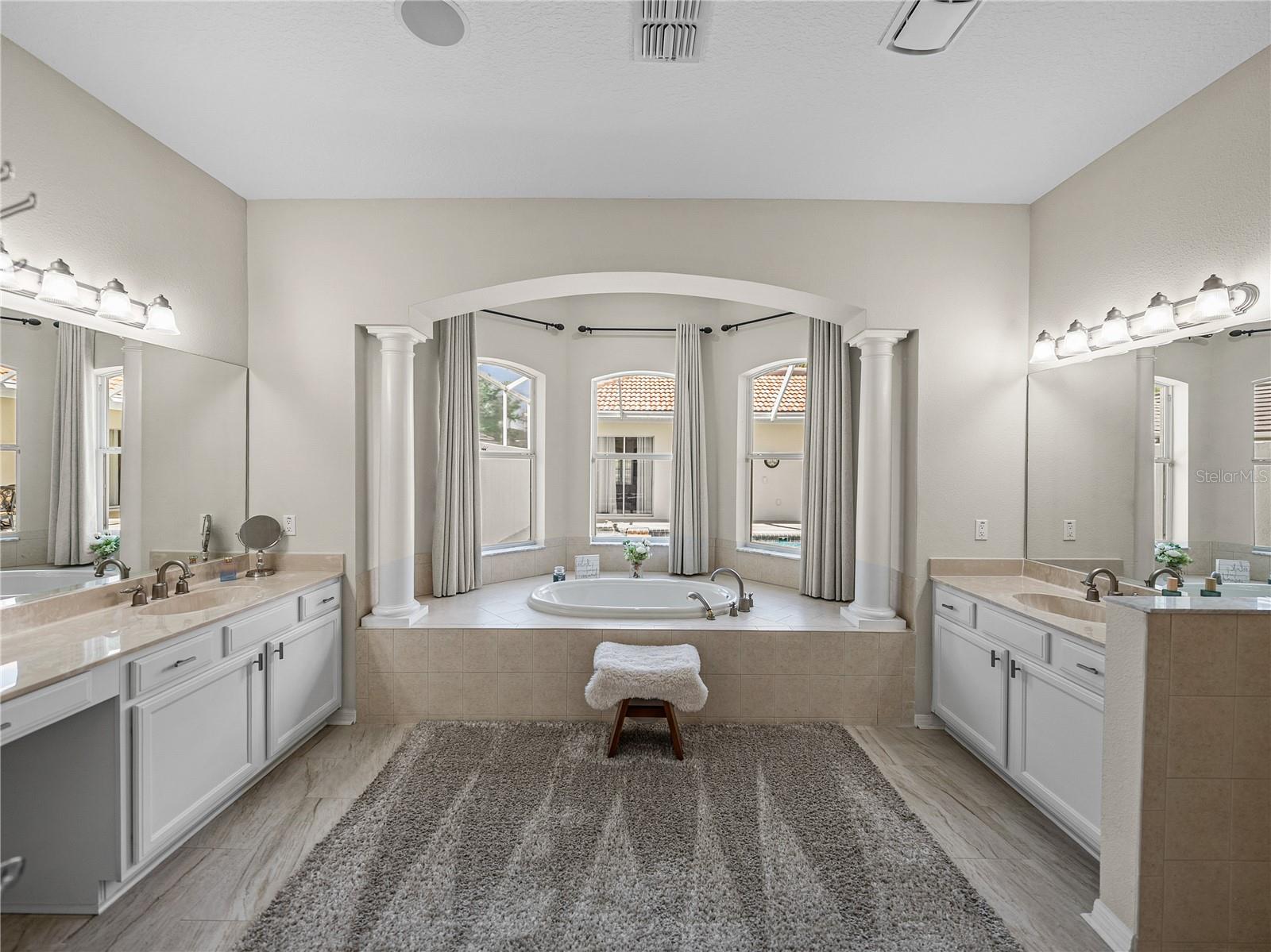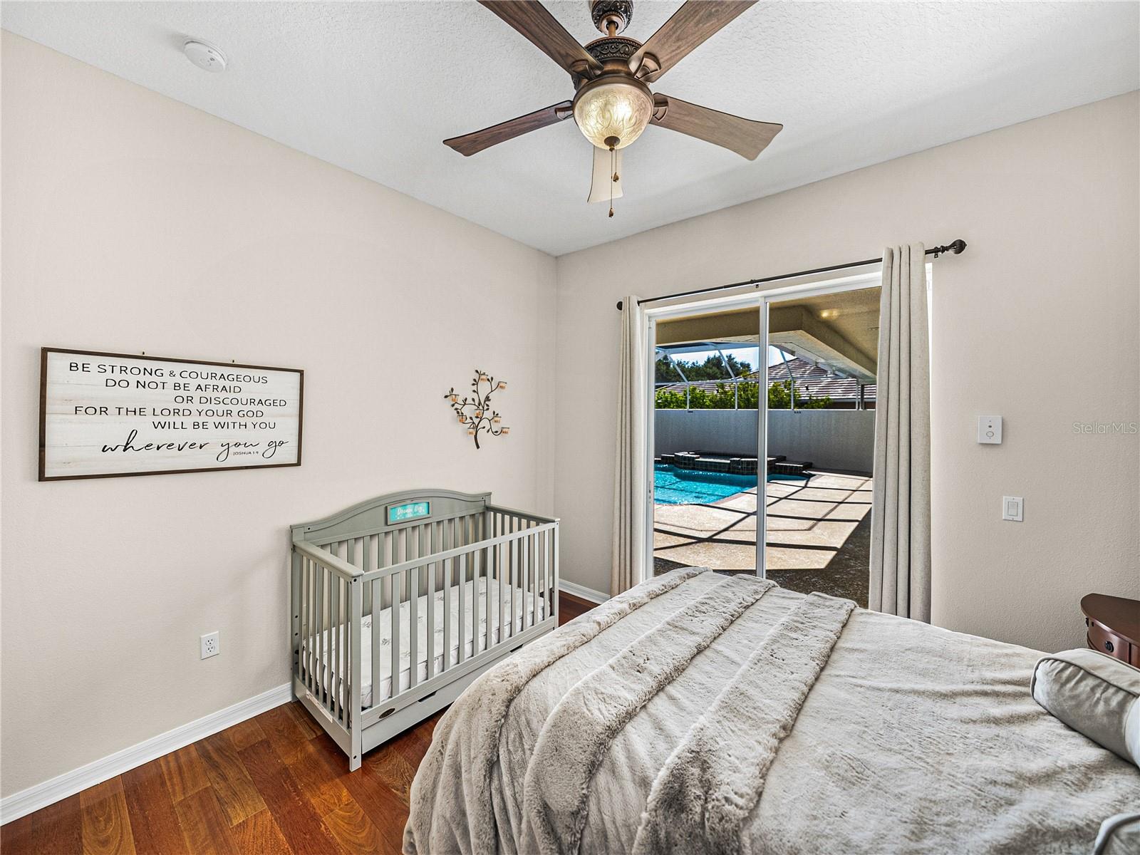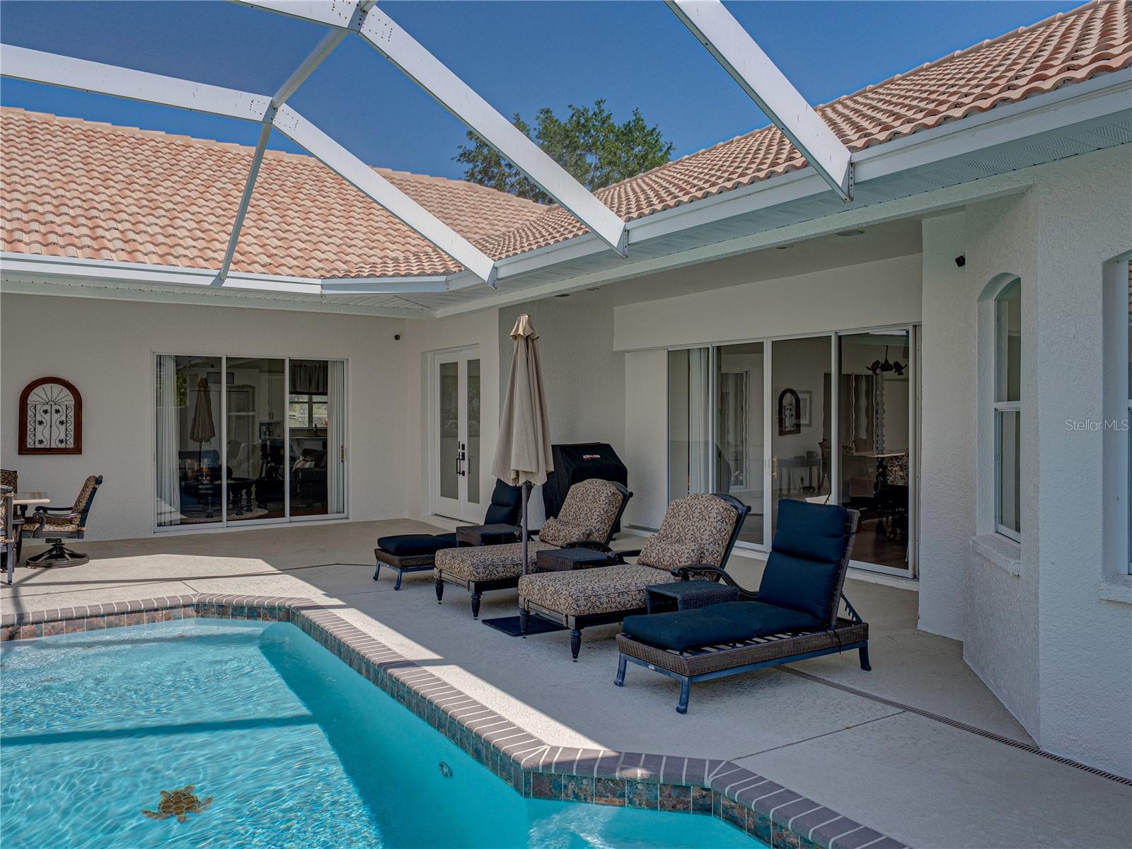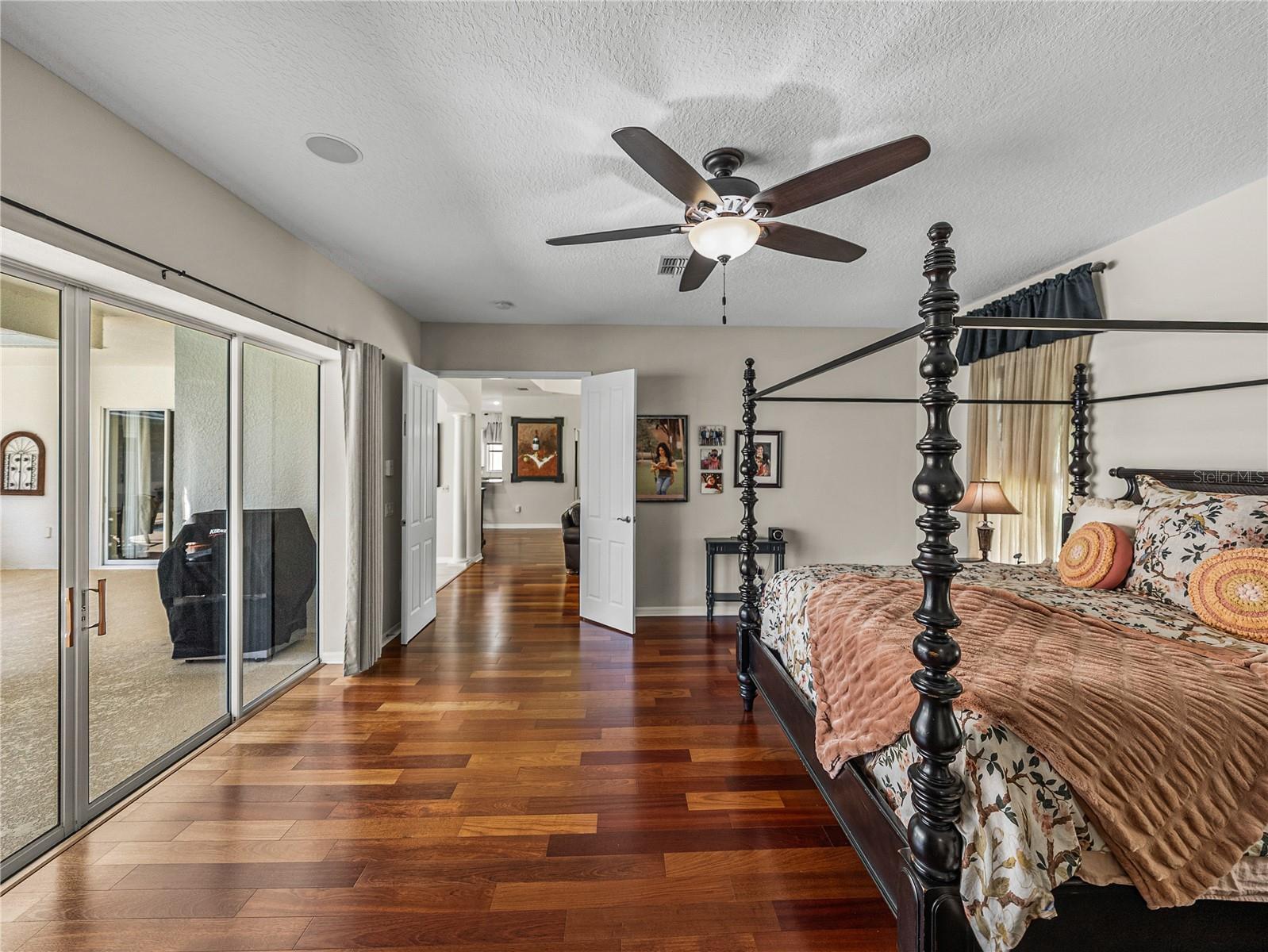 SELLER IS OFFERING UP TO $5,000 towards golf initiation fees, closing costs or HOA fees! Set on a scenic 1/2 acre with breathtaking golf course views, this beautifully updated, 5 bedroom, 3 bath cabana-style residence wraps around a private pool. It offers a unique layout that is ideal for entertaining or multi-generational living. Step through custom wood double doors into the serene courtyard, where the pool becomes the centerpiece of this thoughtfully designed home. Inside the main house, you'll find 3 spacious bedrooms, 2 full bathrooms, and 2 inviting living areas. The main living area features beautiful hardwood flooring, soaring ceilings with dual decorative fans, and multiple sets of sliding doors that flood the space with natural light. It flows seamlessly into the formal dining area, creating an open atmosphere perfect for gatherings. The updated kitchen offers granite countertops, breakfast bar seating, 2024 stainless steel appliances, recessed lighting, pantry storage, and a sunny eat-in dinette. A second living area nearby adds flexibility for everyday comfort. Privately split from the secondary bedrooms, the primary suite is a retreat of its own with wood flooring, sliding doors to the pool, and an expansive walk-in closet. There is new tile flooring in the spa-like ensuite bathroom with dual sinks, vanity seating, a soaking tub, and a walk-in shower. Bedrooms 2 and 3 are located on the opposite side of the home and share a well-appointed guest bath. One of the most desirable features of this floor plan is the detached cabana style guest house. It is a secluded suite with 2 generously sized bedrooms, each offering walk-in closets and connected by the full cabana pool bath. It's an ideal setup for a private office, visitors, in-laws, or teens! Recent upgrades add style and peace of mind.:There is new tile in the kitchen, primary bath, and living area (2024), new kitchen appliances (2024), and a new washer and dryer (2025), updated flooring in the cabana suite (2024), fresh exterior paint (2024), and interior paint (2021). The heated pool and spa provide a private backdrop for easy alfresco dining, quiet mornings, or fun-filled weekends under the sun. Enjoy all the amenities Lake Jovita has to offer, from 24-hour gated security and two championship golf courses, to tennis, pickleball, a fitness center, and optional club memberships. This is refined Florida living in one of the area's most desirable communities. Schedule your private showing today!