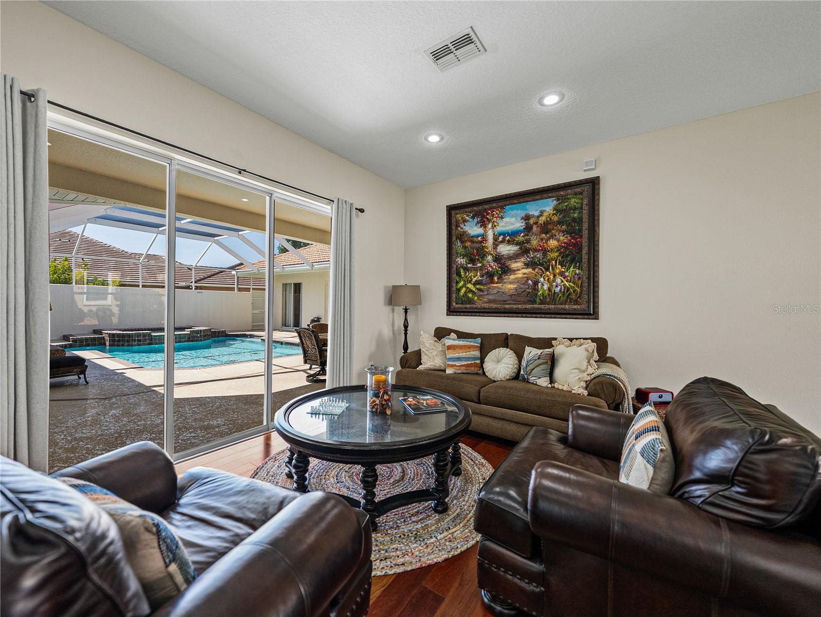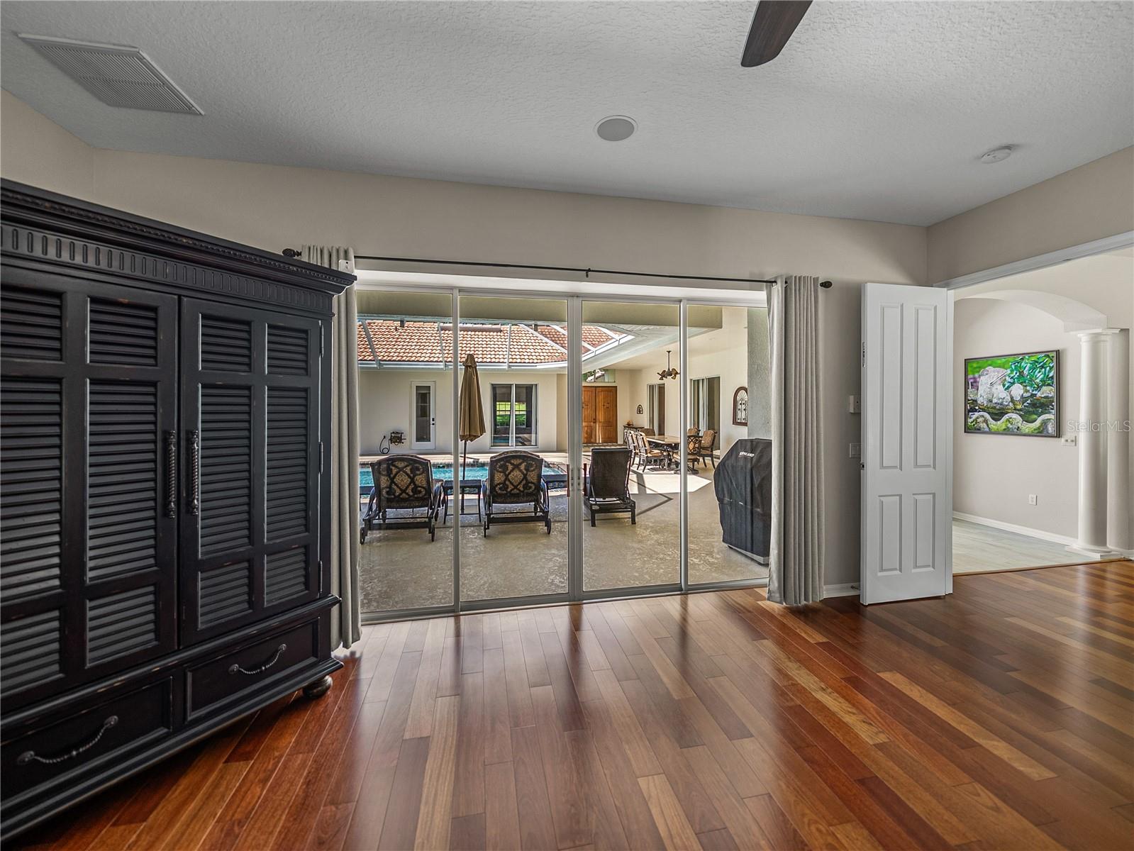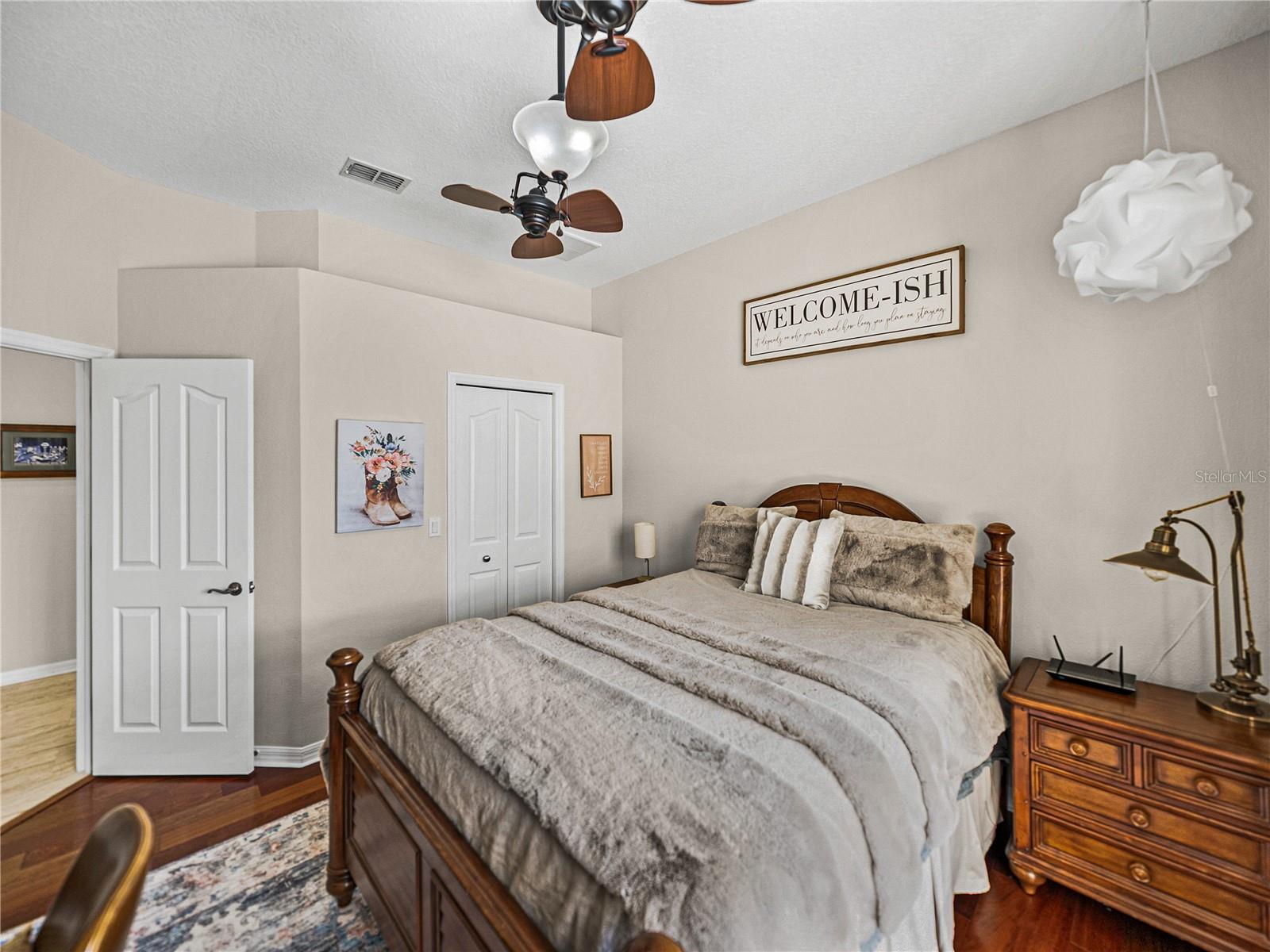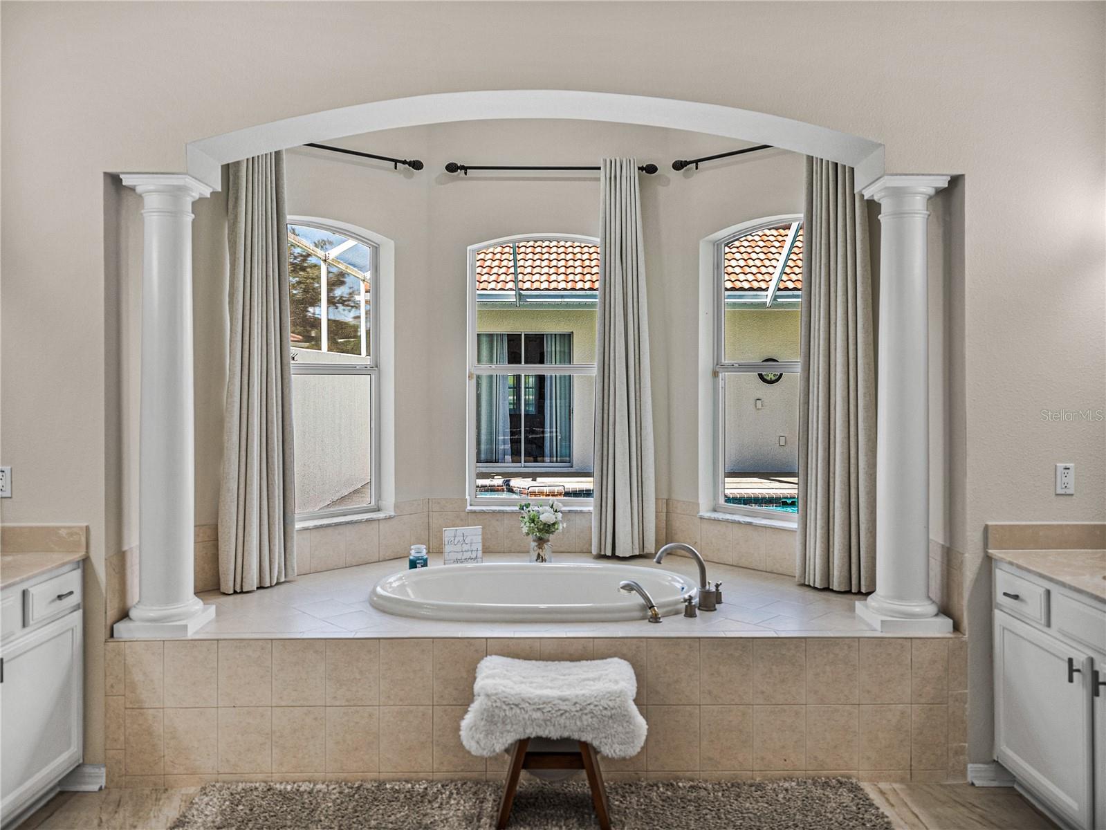 SELLER IS OFFERING UP TO $5,000 towards golf initiation fees, closing costs or HOA fees! Set on a scenic 1/2 acre with breathtaking golf course views, this beautifully updated, 5 bedroom, 3 bath cabana-style residence wraps around a private pool. It offers a unique layout that is ideal for entertaining or multi-generational living. Step through custom wood double doors into the serene courtyard, where the pool becomes the centerpiece of this thoughtfully designed home. Inside the main house, you'll find 3 spacious bedrooms, 2 full bathrooms, and 2 inviting living areas. The main living area features beautiful hardwood flooring, soaring ceilings with dual decorative fans, and multiple sets of sliding doors that flood the space with natural light. It flows seamlessly into the formal dining area, creating an open atmosphere perfect for gatherings. The updated kitchen offers granite countertops, breakfast bar seating, 2024 stainless steel appliances, recessed lighting, pantry storage, and a sunny eat-in dinette. A second living area nearby adds flexibility for everyday comfort. Privately split from the secondary bedrooms, the primary suite is a retreat of its own with wood flooring, sliding doors to the pool, and an expansive walk-in closet. There is new tile flooring in the spa-like ensuite bathroom with dual sinks, vanity seating, a soaking tub, and a walk-in shower. Bedrooms 2 and 3 are located on the opposite side of the home and share a well-appointed guest bath. One of the most desirable features of this floor plan is the detached cabana style guest house. It is a secluded suite with 2 generously sized bedrooms, each offering walk-in closets and connected by the full cabana pool bath. It's an ideal setup for a private office, visitors, in-laws, or teens! Recent upgrades add style and peace of mind.:There is new tile in the kitchen, primary bath, and living area (2024), new kitchen appliances (2024), and a new washer and dryer (2025), updated flooring in the cabana suite (2024), fresh exterior paint (2024), and interior paint (2021). The heated pool and spa provide a private backdrop for easy alfresco dining, quiet mornings, or fun-filled weekends under the sun. Enjoy all the amenities Lake Jovita has to offer, from 24-hour gated security and two championship golf courses, to tennis, pickleball, a fitness center, and optional club memberships. This is refined Florida living in one of the area's most desirable communities. Schedule your private showing today!