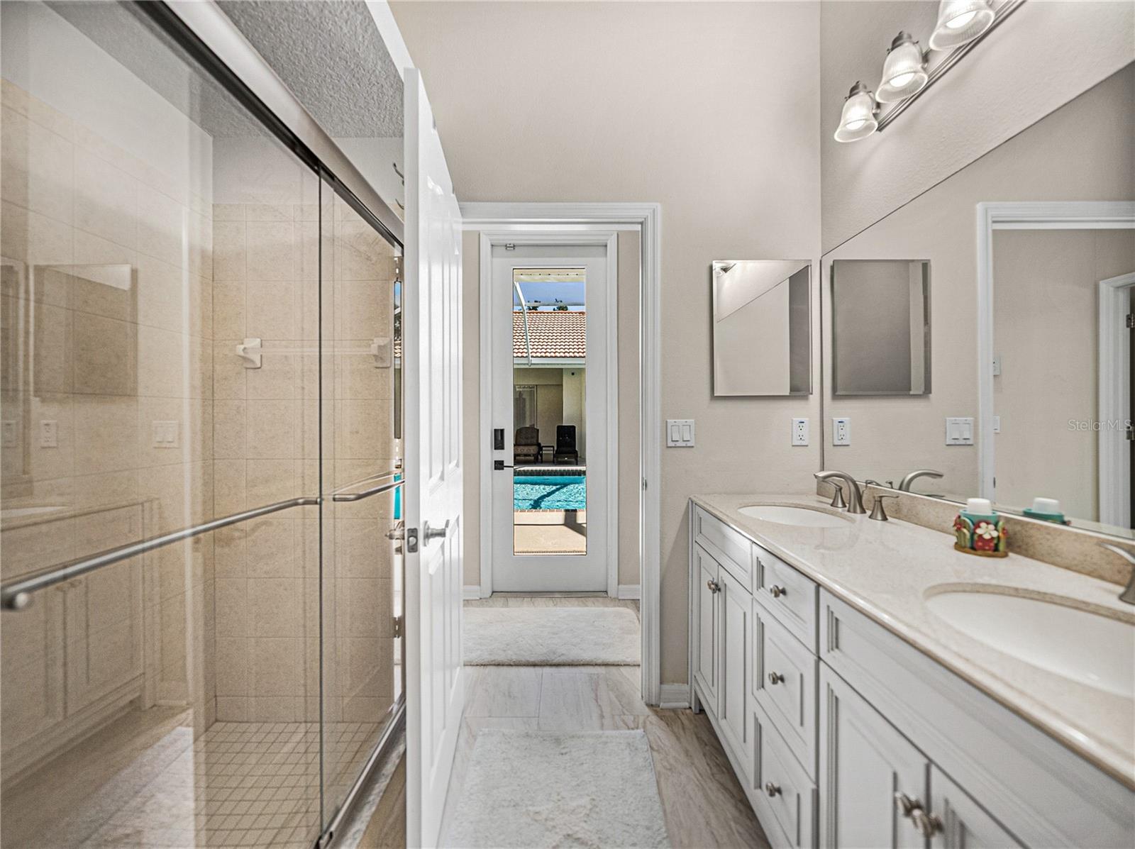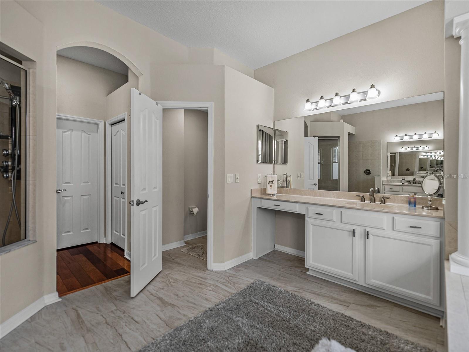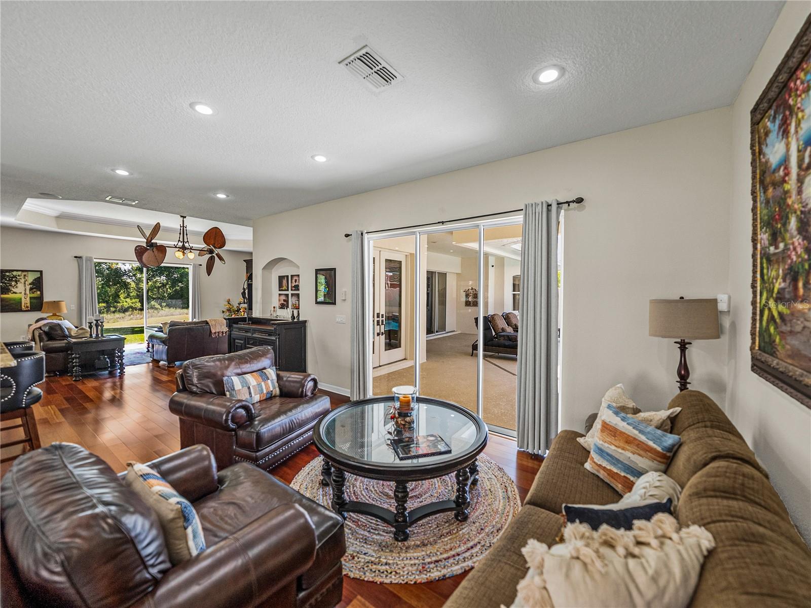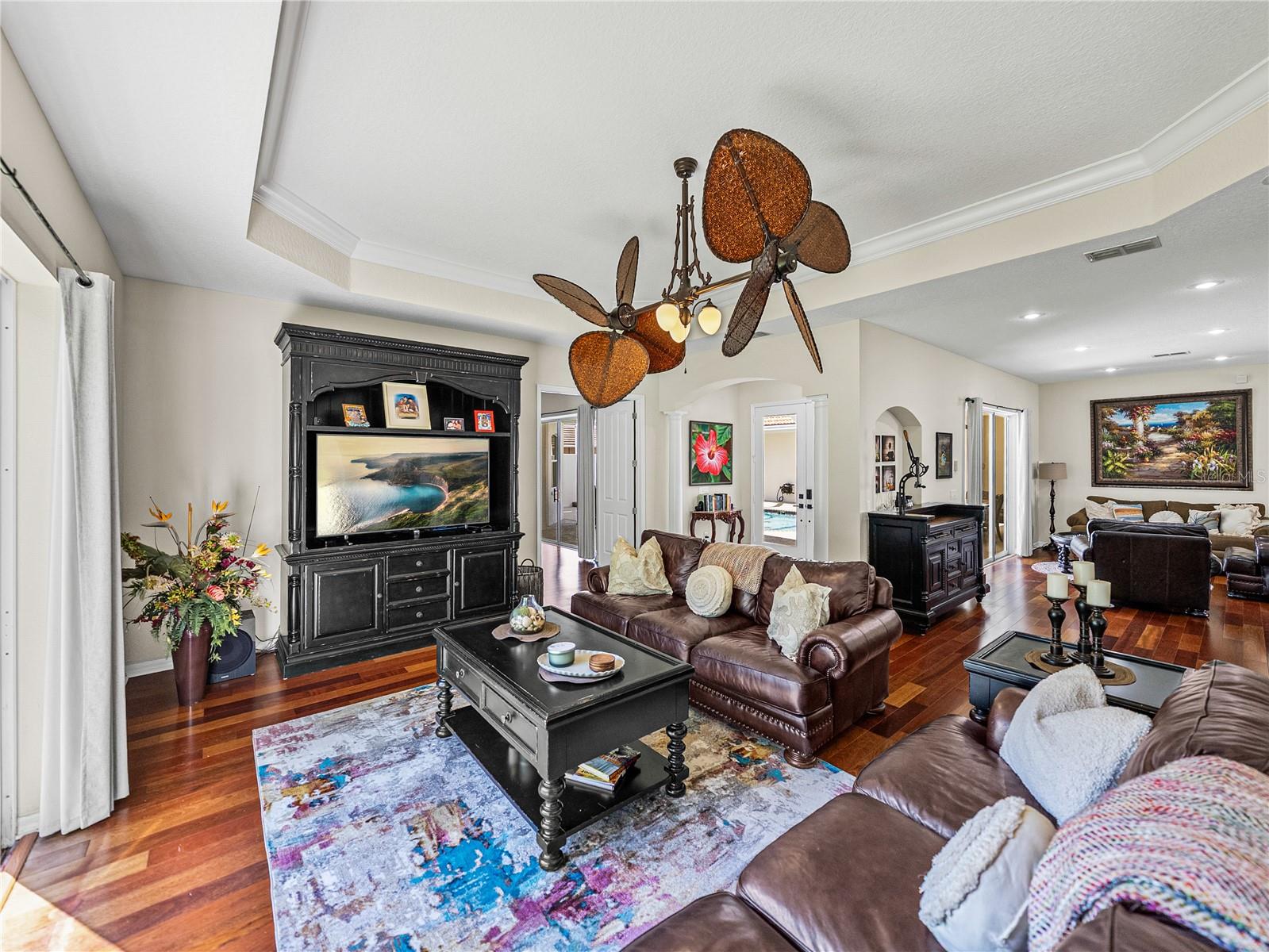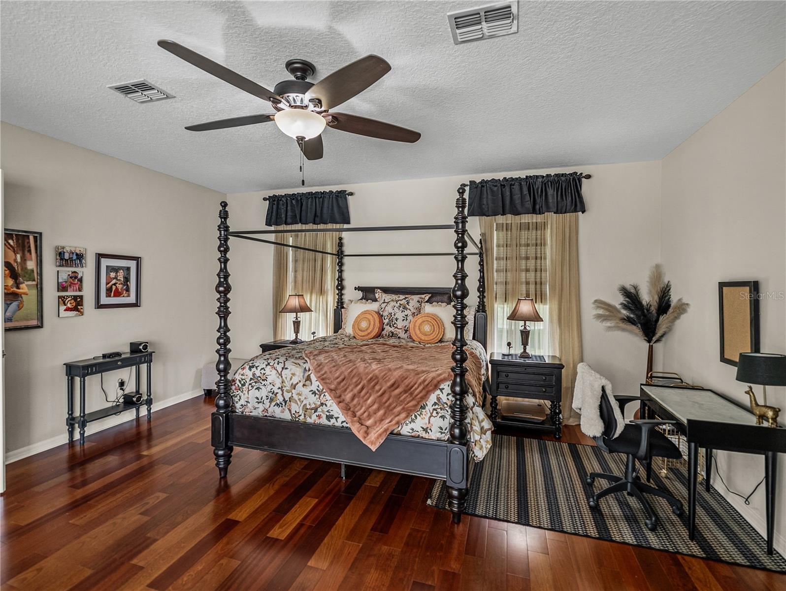 SELLER IS OFFERING UP TO $5,000 towards golf initiation fees, closing costs or HOA fees! Set on a scenic 1/2 acre with breathtaking golf course views, this beautifully updated, 5 bedroom, 3 bath cabana-style residence wraps around a private pool. It offers a unique layout that is ideal for entertaining or multi-generational living. Step through custom wood double doors into the serene courtyard, where the pool becomes the centerpiece of this thoughtfully designed home. Inside the main house, you'll find 3 spacious bedrooms, 2 full bathrooms, and 2 inviting living areas. The main living area features beautiful hardwood flooring, soaring ceilings with dual decorative fans, and multiple sets of sliding doors that flood the space with natural light. It flows seamlessly into the formal dining area, creating an open atmosphere perfect for gatherings. The updated kitchen offers granite countertops, breakfast bar seating, 2024 stainless steel appliances, recessed lighting, pantry storage, and a sunny eat-in dinette. A second living area nearby adds flexibility for everyday comfort. Privately split from the secondary bedrooms, the primary suite is a retreat of its own with wood flooring, sliding doors to the pool, and an expansive walk-in closet. There is new tile flooring in the spa-like ensuite bathroom with dual sinks, vanity seating, a soaking tub, and a walk-in shower. Bedrooms 2 and 3 are located on the opposite side of the home and share a well-appointed guest bath. One of the most desirable features of this floor plan is the detached cabana style guest house. It is a secluded suite with 2 generously sized bedrooms, each offering walk-in closets and connected by the full cabana pool bath. It's an ideal setup for a private office, visitors, in-laws, or teens! Recent upgrades add style and peace of mind.:There is new tile in the kitchen, primary bath, and living area (2024), new kitchen appliances (2024), and a new washer and dryer (2025), updated flooring in the cabana suite (2024), fresh exterior paint (2024), and interior paint (2021). The heated pool and spa provide a private backdrop for easy alfresco dining, quiet mornings, or fun-filled weekends under the sun. Enjoy all the amenities Lake Jovita has to offer, from 24-hour gated security and two championship golf courses, to tennis, pickleball, a fitness center, and optional club memberships. This is refined Florida living in one of the area's most desirable communities. Schedule your private showing today!