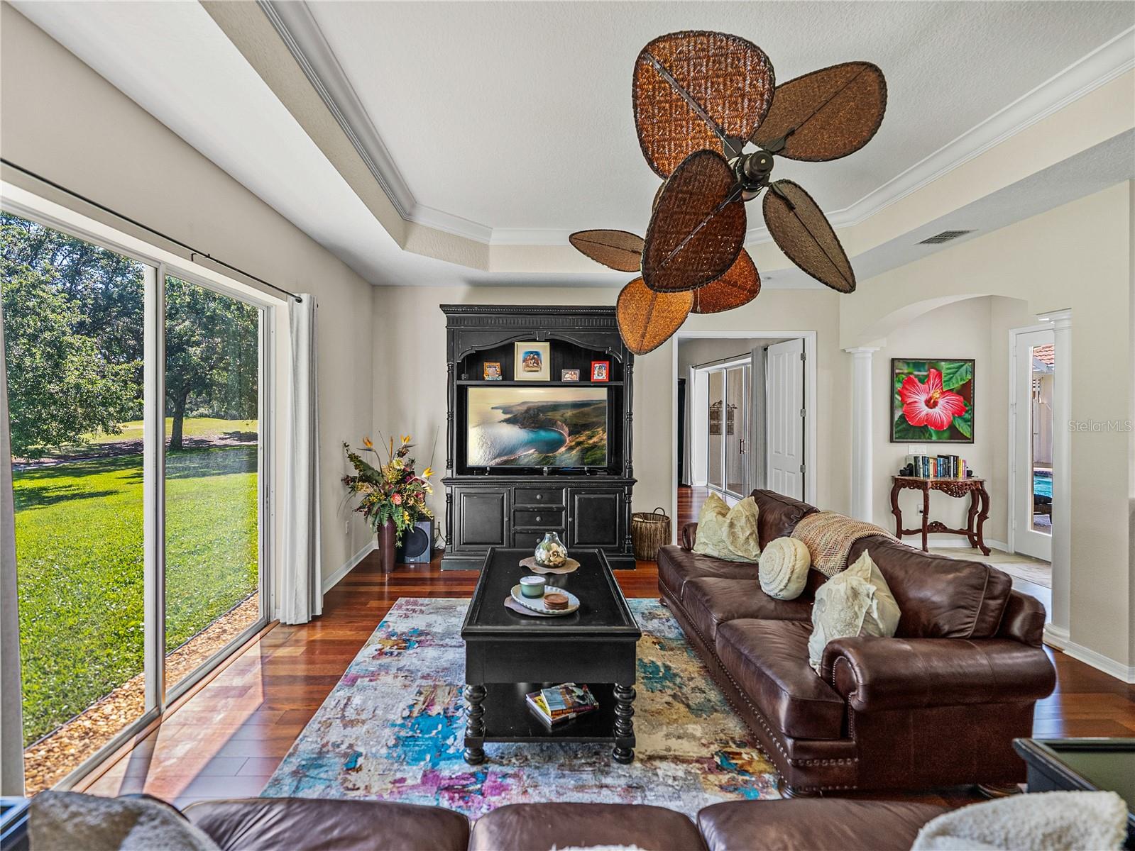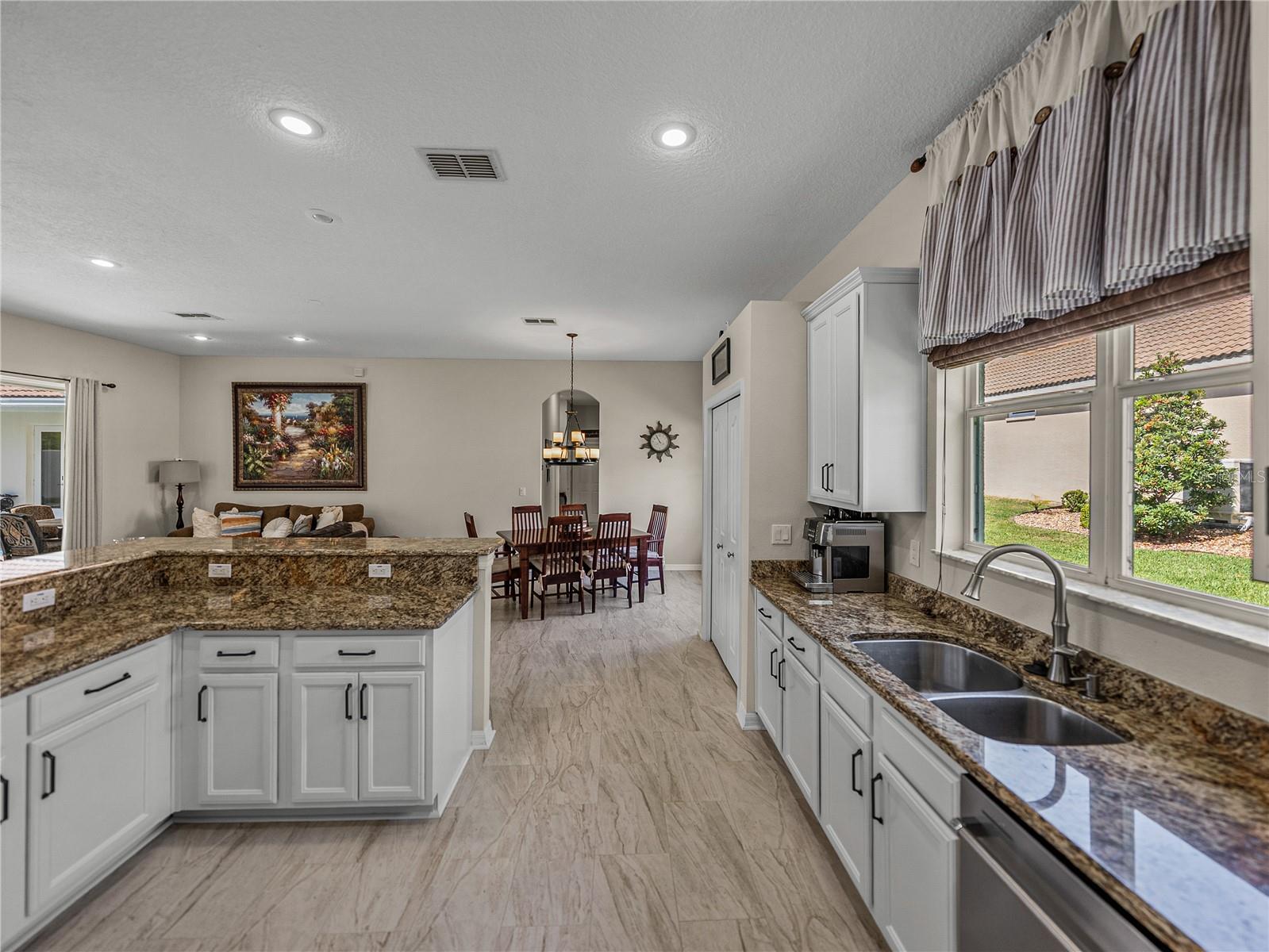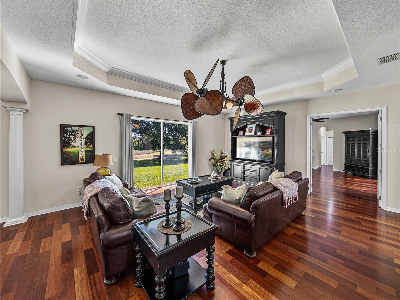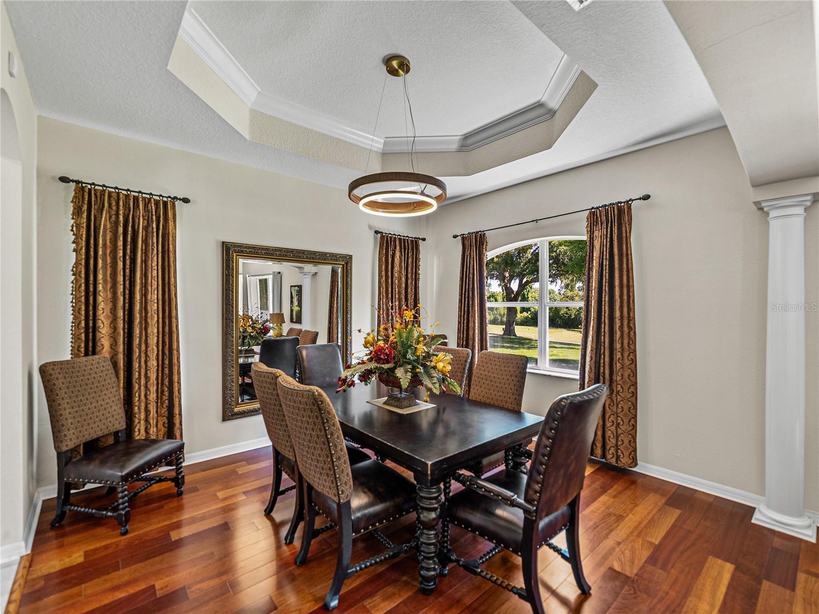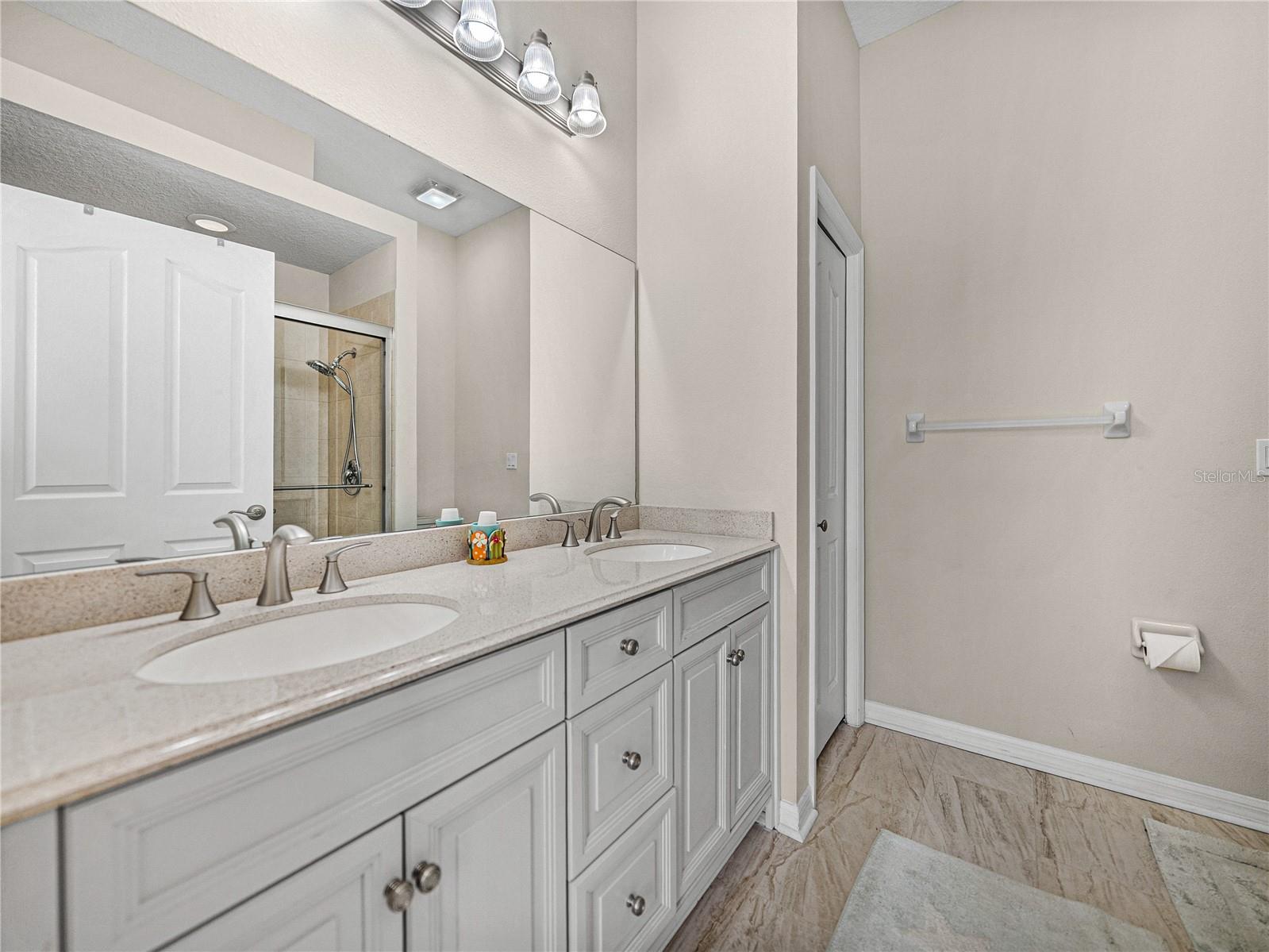 SELLER IS OFFERING UP TO $5,000 towards golf initiation fees, closing costs or HOA fees! Set on a scenic 1/2 acre with breathtaking golf course views, this beautifully updated, 5 bedroom, 3 bath cabana-style residence wraps around a private pool. It offers a unique layout that is ideal for entertaining or multi-generational living. Step through custom wood double doors into the serene courtyard, where the pool becomes the centerpiece of this thoughtfully designed home. Inside the main house, you'll find 3 spacious bedrooms, 2 full bathrooms, and 2 inviting living areas. The main living area features beautiful hardwood flooring, soaring ceilings with dual decorative fans, and multiple sets of sliding doors that flood the space with natural light. It flows seamlessly into the formal dining area, creating an open atmosphere perfect for gatherings. The updated kitchen offers granite countertops, breakfast bar seating, 2024 stainless steel appliances, recessed lighting, pantry storage, and a sunny eat-in dinette. A second living area nearby adds flexibility for everyday comfort. Privately split from the secondary bedrooms, the primary suite is a retreat of its own with wood flooring, sliding doors to the pool, and an expansive walk-in closet. There is new tile flooring in the spa-like ensuite bathroom with dual sinks, vanity seating, a soaking tub, and a walk-in shower. Bedrooms 2 and 3 are located on the opposite side of the home and share a well-appointed guest bath. One of the most desirable features of this floor plan is the detached cabana style guest house. It is a secluded suite with 2 generously sized bedrooms, each offering walk-in closets and connected by the full cabana pool bath. It's an ideal setup for a private office, visitors, in-laws, or teens! Recent upgrades add style and peace of mind.:There is new tile in the kitchen, primary bath, and living area (2024), new kitchen appliances (2024), and a new washer and dryer (2025), updated flooring in the cabana suite (2024), fresh exterior paint (2024), and interior paint (2021). The heated pool and spa provide a private backdrop for easy alfresco dining, quiet mornings, or fun-filled weekends under the sun. Enjoy all the amenities Lake Jovita has to offer, from 24-hour gated security and two championship golf courses, to tennis, pickleball, a fitness center, and optional club memberships. This is refined Florida living in one of the area's most desirable communities. Schedule your private showing today!