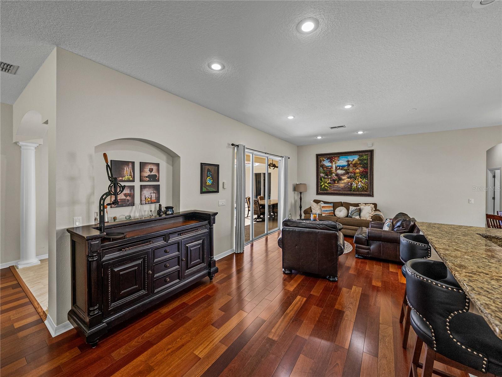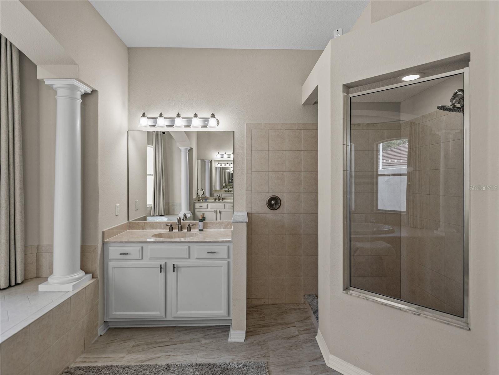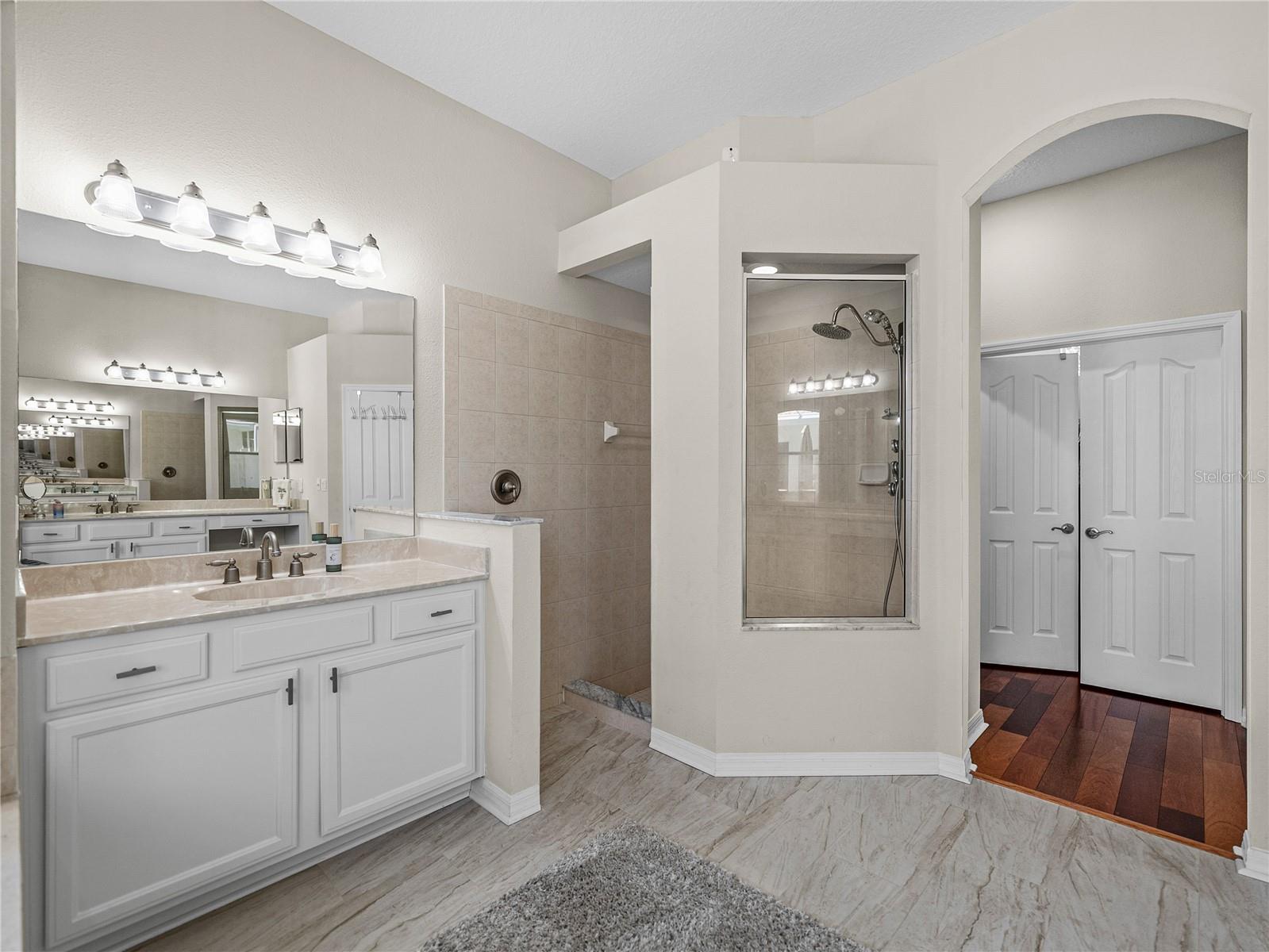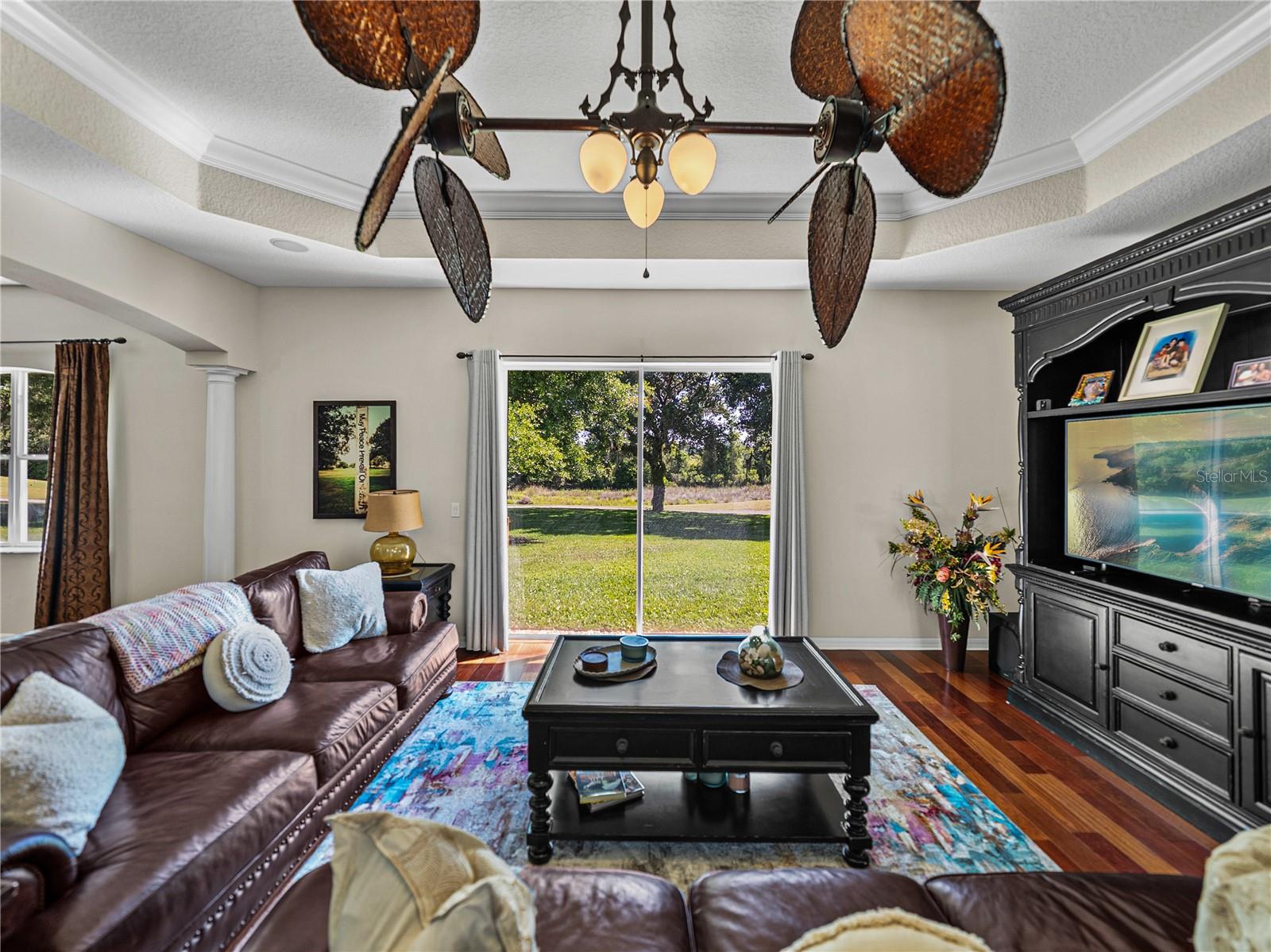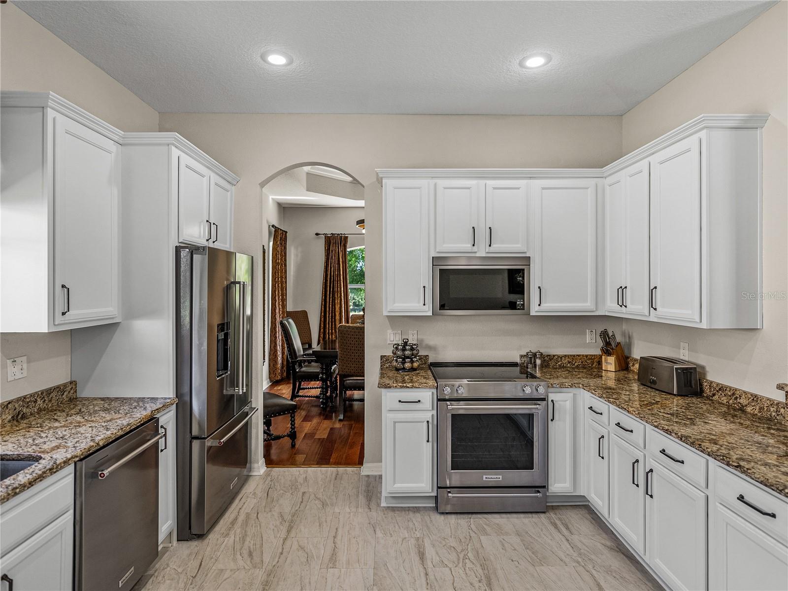 SELLER IS OFFERING UP TO $5,000 towards golf initiation fees, closing costs or HOA fees! Set on a scenic 1/2 acre with breathtaking golf course views, this beautifully updated, 5 bedroom, 3 bath cabana-style residence wraps around a private pool. It offers a unique layout that is ideal for entertaining or multi-generational living. Step through custom wood double doors into the serene courtyard, where the pool becomes the centerpiece of this thoughtfully designed home. Inside the main house, you'll find 3 spacious bedrooms, 2 full bathrooms, and 2 inviting living areas. The main living area features beautiful hardwood flooring, soaring ceilings with dual decorative fans, and multiple sets of sliding doors that flood the space with natural light. It flows seamlessly into the formal dining area, creating an open atmosphere perfect for gatherings. The updated kitchen offers granite countertops, breakfast bar seating, 2024 stainless steel appliances, recessed lighting, pantry storage, and a sunny eat-in dinette. A second living area nearby adds flexibility for everyday comfort. Privately split from the secondary bedrooms, the primary suite is a retreat of its own with wood flooring, sliding doors to the pool, and an expansive walk-in closet. There is new tile flooring in the spa-like ensuite bathroom with dual sinks, vanity seating, a soaking tub, and a walk-in shower. Bedrooms 2 and 3 are located on the opposite side of the home and share a well-appointed guest bath. One of the most desirable features of this floor plan is the detached cabana style guest house. It is a secluded suite with 2 generously sized bedrooms, each offering walk-in closets and connected by the full cabana pool bath. It's an ideal setup for a private office, visitors, in-laws, or teens! Recent upgrades add style and peace of mind.:There is new tile in the kitchen, primary bath, and living area (2024), new kitchen appliances (2024), and a new washer and dryer (2025), updated flooring in the cabana suite (2024), fresh exterior paint (2024), and interior paint (2021). The heated pool and spa provide a private backdrop for easy alfresco dining, quiet mornings, or fun-filled weekends under the sun. Enjoy all the amenities Lake Jovita has to offer, from 24-hour gated security and two championship golf courses, to tennis, pickleball, a fitness center, and optional club memberships. This is refined Florida living in one of the area's most desirable communities. Schedule your private showing today!