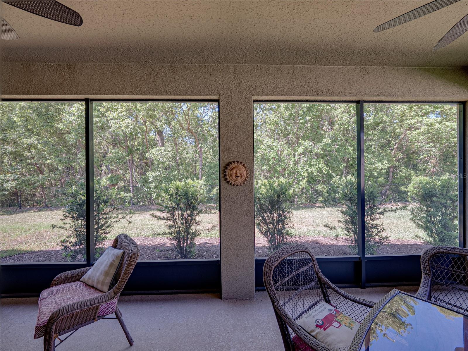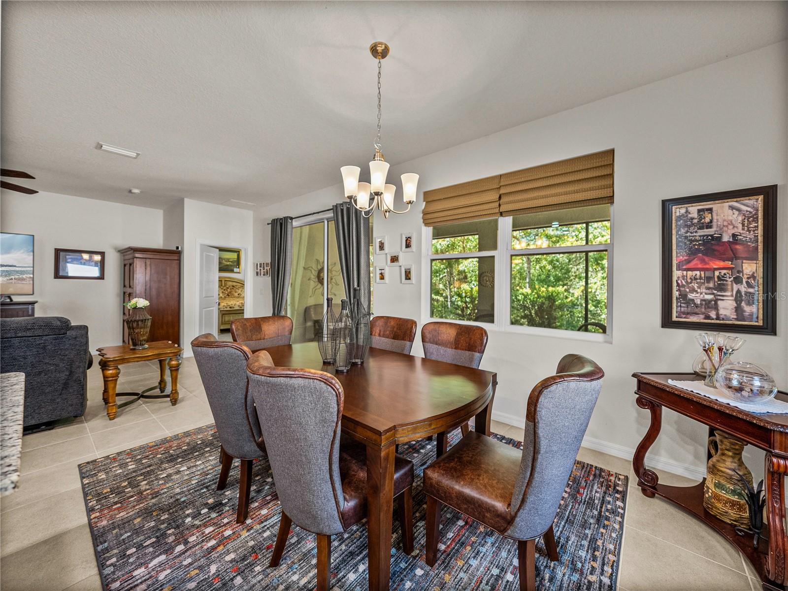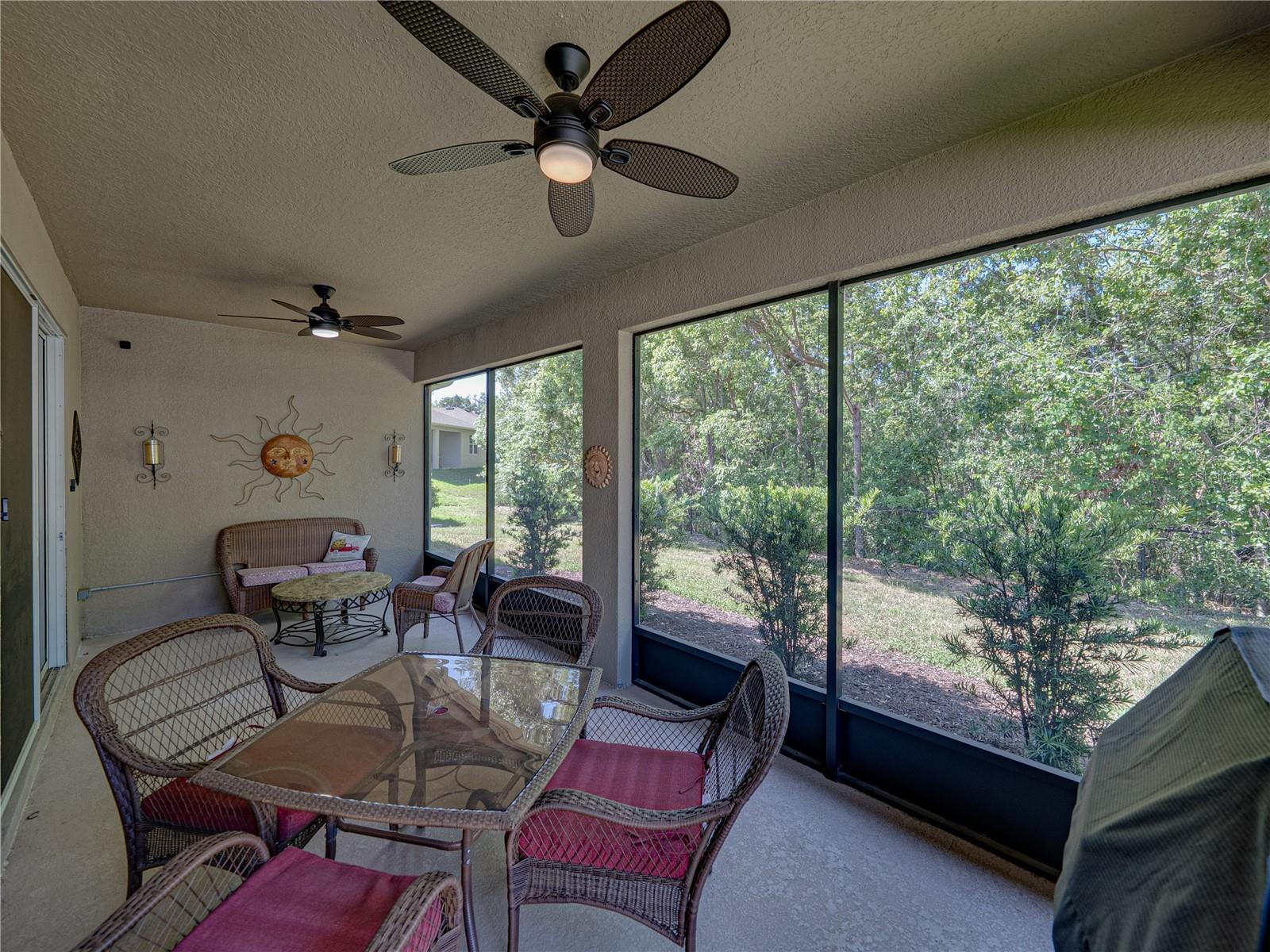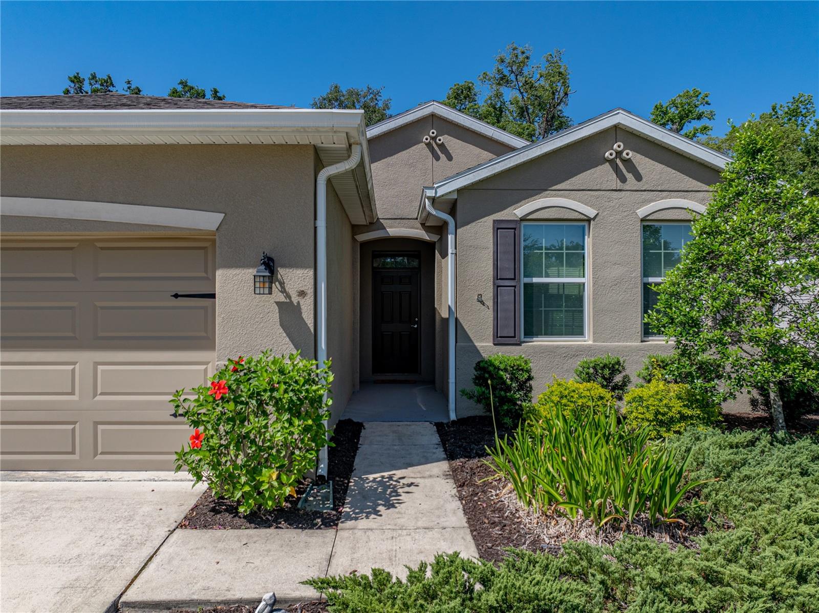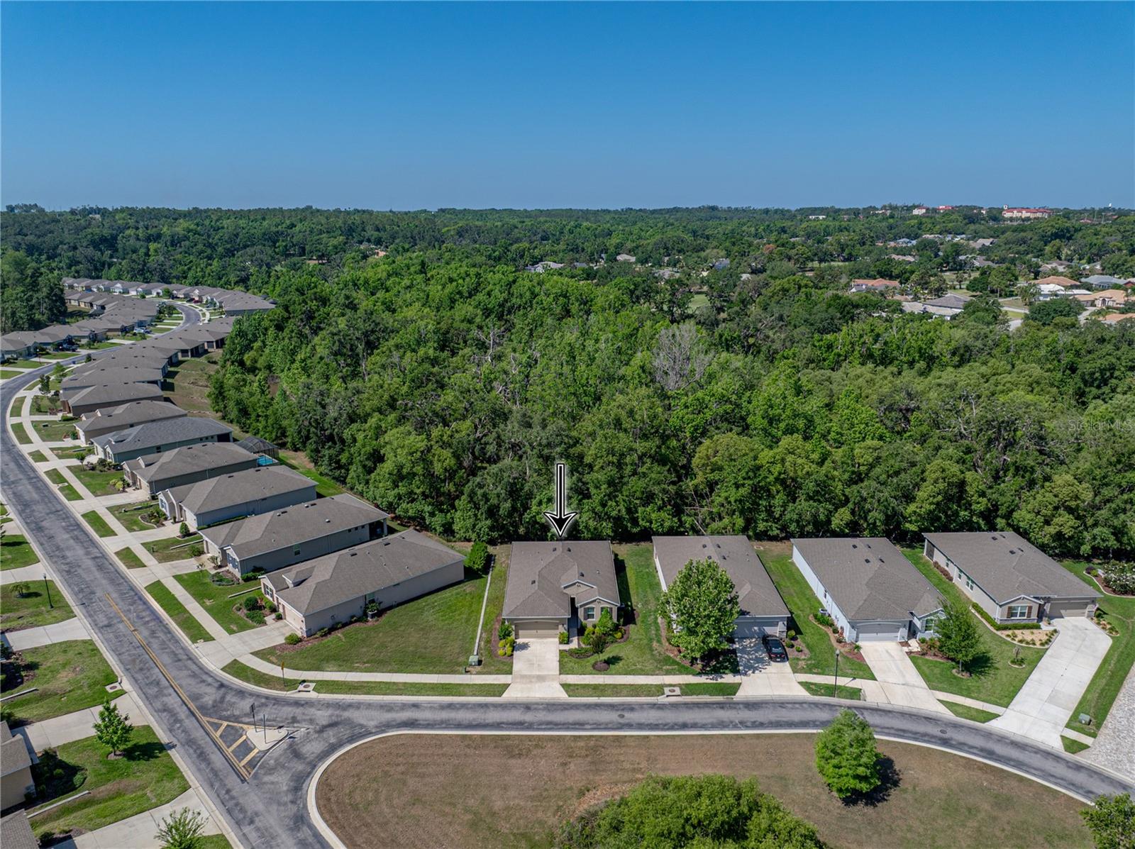Nestled in Eastpointe, a privately gated section of Lake Jovita, this charming 3 bedroom, 2 bath, 2 car garage home offers a peaceful cul-de-sac setting with a wooded backdrop and no rear neighbors. The beautifully landscaped exterior and covered front entryway provide a welcoming first impression. Inside, an open and inviting floor plan unfolds with streaming natural light and easy-to-maintain tile flooring throughout the main living areas. The spacious living room flows seamlessly into the dining area, centrally located kitchen, and out to the screened lanai through sliding glass doors- creating an effortless space for daily living and entertaining. The kitchen is thoughtfully designed with granite countertops, a central island with breakfast bar seating, recessed lighting, a 4-piece stainless steel appliance package, and generous pantry storage. Nicely tucked away from the secondary bedrooms, the primary suite features carpeting, an ensuite bathroom with dual sinks, separate water closet, and a glass-enclosed walk-in shower.It is nicely outfitted with a spacious walk-in closet. Bedrooms 2 and 3 are split and are situated near the front of the home for added privacy and share the second full bathroom, which includes a tub/shower combo. The laundry room has extra shelving and is conveniently located near the garage and secondary bedrooms. Outdoors, unwind on the covered, screened lanai complete with dual ceiling fans and peaceful views of the lush wooded view beyond. This space is ideal for enjoying your morning coffee or easy evening relaxation. Enjoy the lifestyle, luxury, and security of Lake Jovita, a premier gated community offering two championship golf courses, tennis courts, a fitness center, scenic walking trails, a vibrant clubhouse, pickleball courts, a playground, a dog park, and more! Schedule your private showing today!