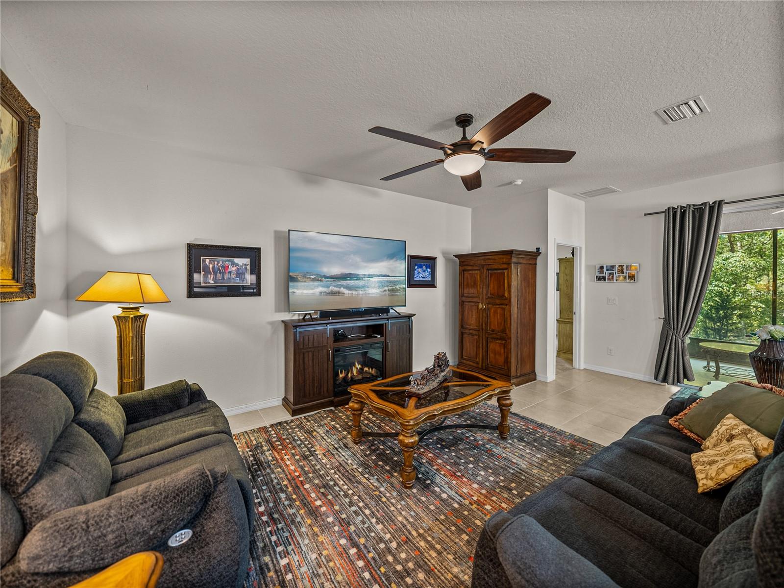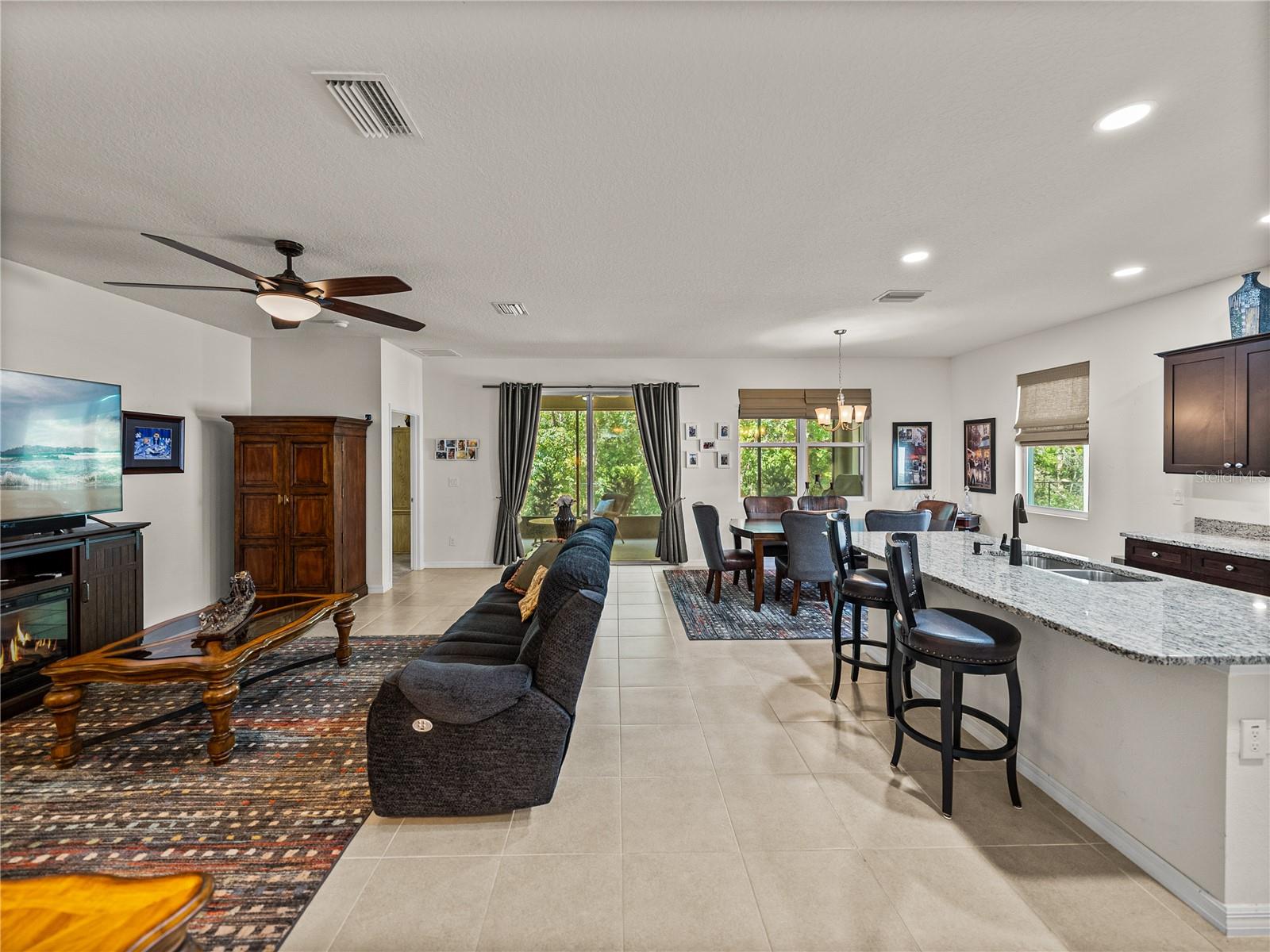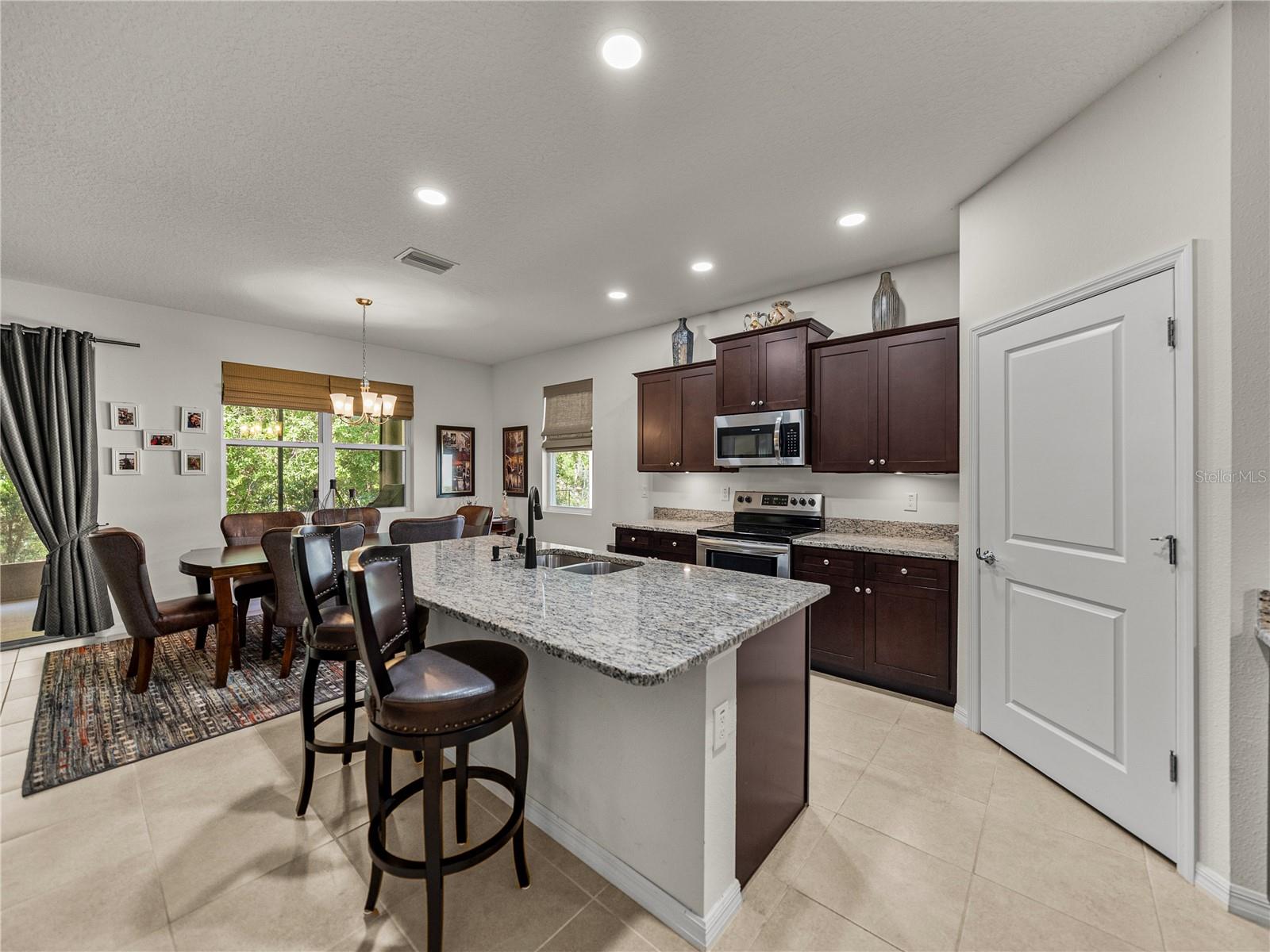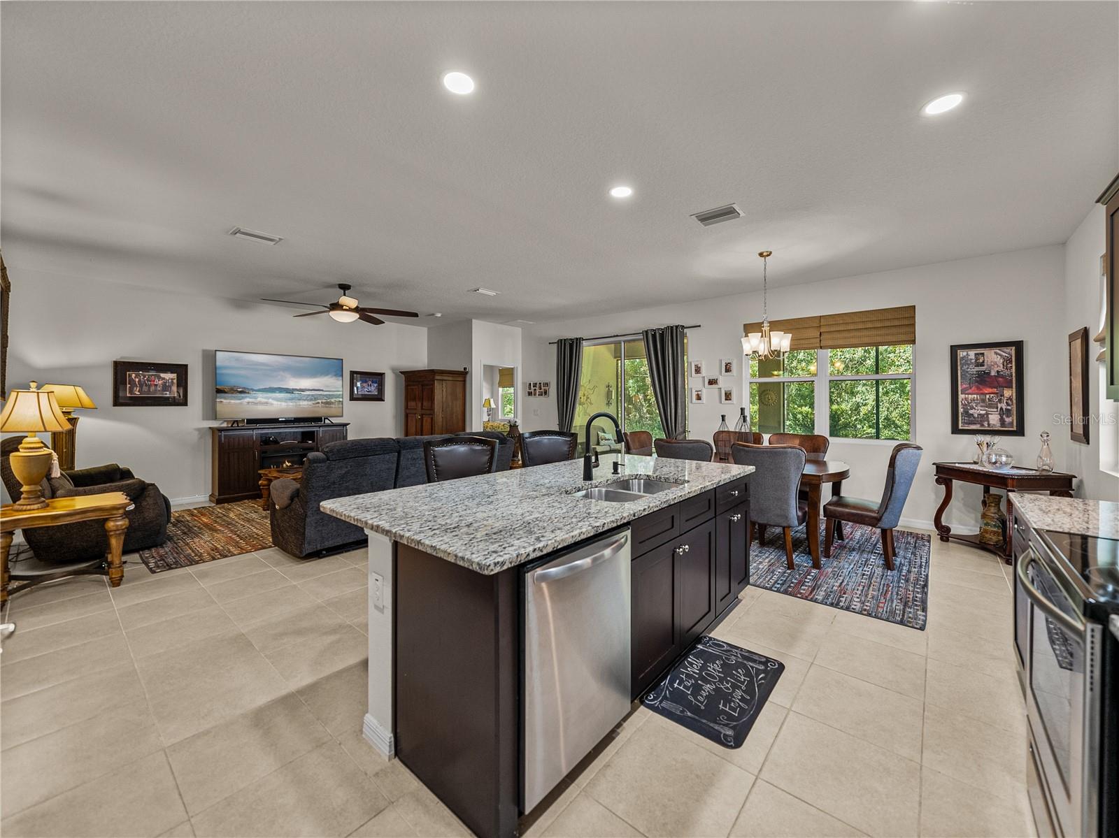 Nestled in Eastpointe, a privately gated section of Lake Jovita, this charming 3 bedroom, 2 bath, 2 car garage home offers a peaceful cul-de-sac setting with a wooded backdrop and no rear neighbors. The beautifully landscaped exterior and covered front entryway provide a welcoming first impression. Inside, an open and inviting floor plan unfolds with streaming natural light and easy-to-maintain tile flooring throughout the main living areas. The spacious living room flows seamlessly into the dining area, centrally located kitchen, and out to the screened lanai through sliding glass doors- creating an effortless space for daily living and entertaining. The kitchen is thoughtfully designed with granite countertops, a central island with breakfast bar seating, recessed lighting, a 4-piece stainless steel appliance package, and generous pantry storage. Nicely tucked away from the secondary bedrooms, the primary suite features carpeting, an ensuite bathroom with dual sinks, separate water closet, and a glass-enclosed walk-in shower.It is nicely outfitted with a spacious walk-in closet. Bedrooms 2 and 3 are split and are situated near the front of the home for added privacy and share the second full bathroom, which includes a tub/shower combo. The laundry room has extra shelving and is conveniently located near the garage and secondary bedrooms. Outdoors, unwind on the covered, screened lanai complete with dual ceiling fans and peaceful views of the lush wooded view beyond. This space is ideal for enjoying your morning coffee or easy evening relaxation. Enjoy the lifestyle, luxury, and security of Lake Jovita, a premier gated community offering two championship golf courses, tennis courts, a fitness center, scenic walking trails, a vibrant clubhouse, pickleball courts, a playground, a dog park, and more! Schedule your private showing today!