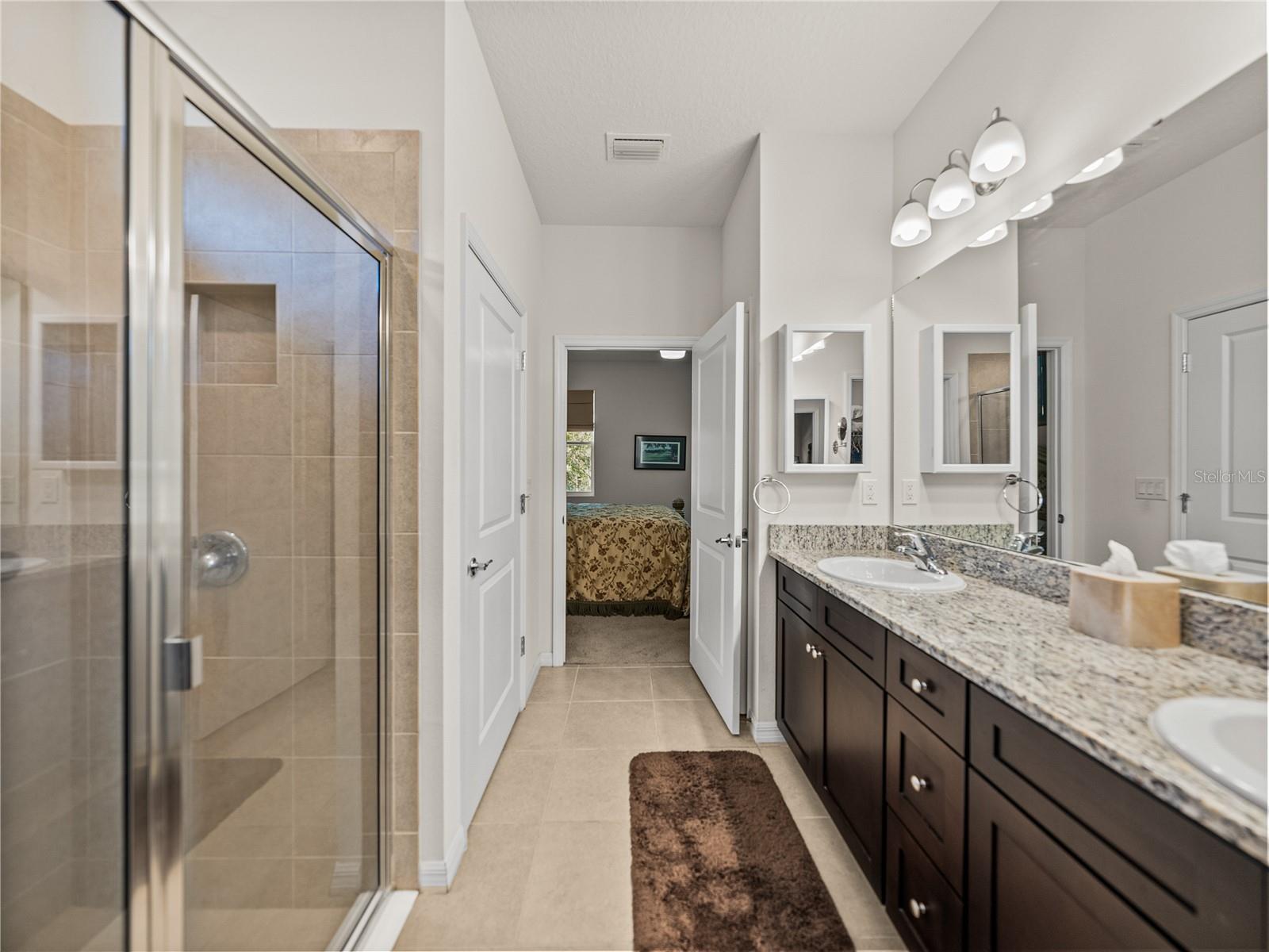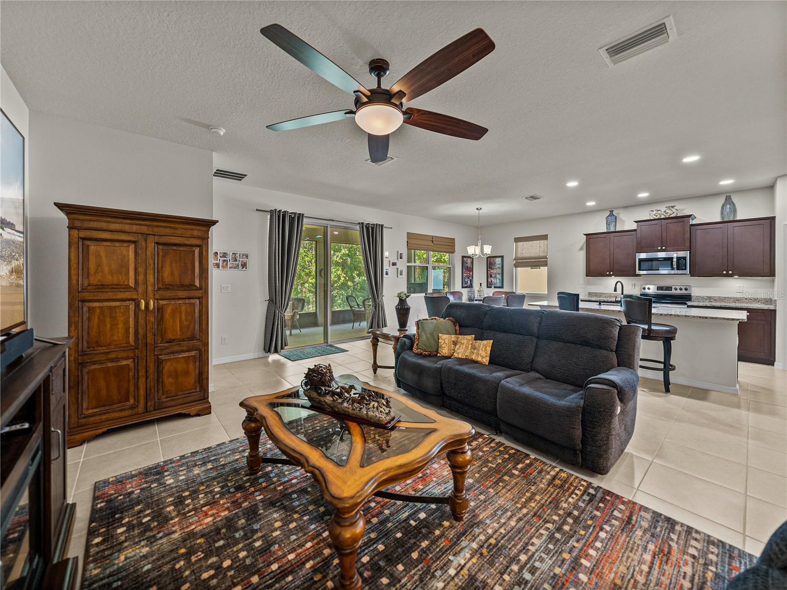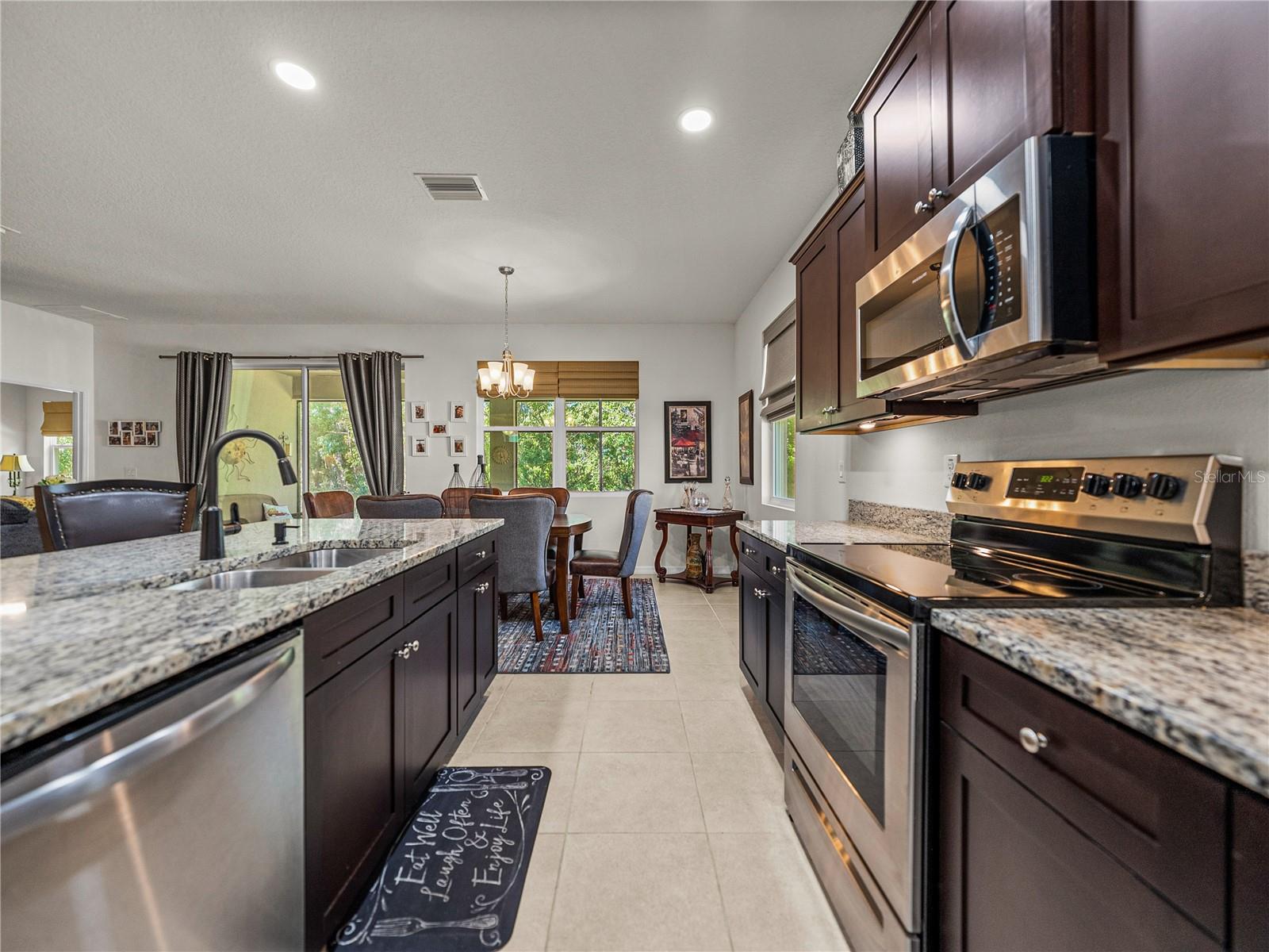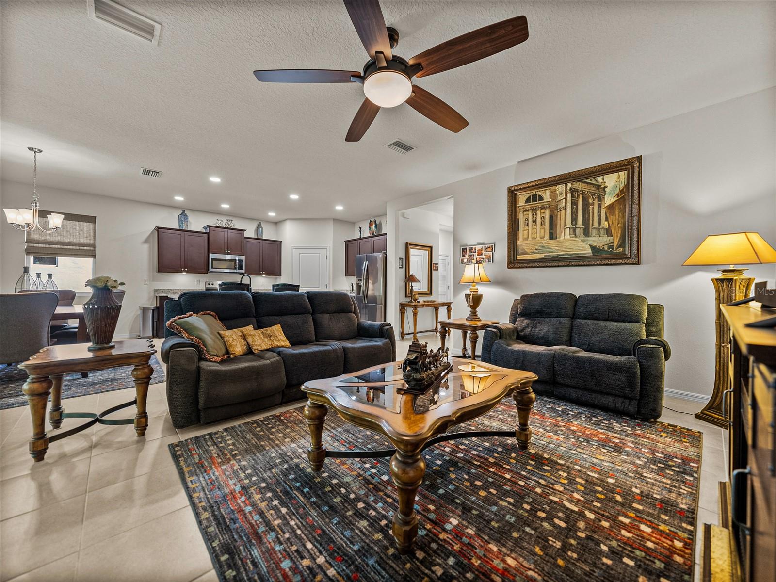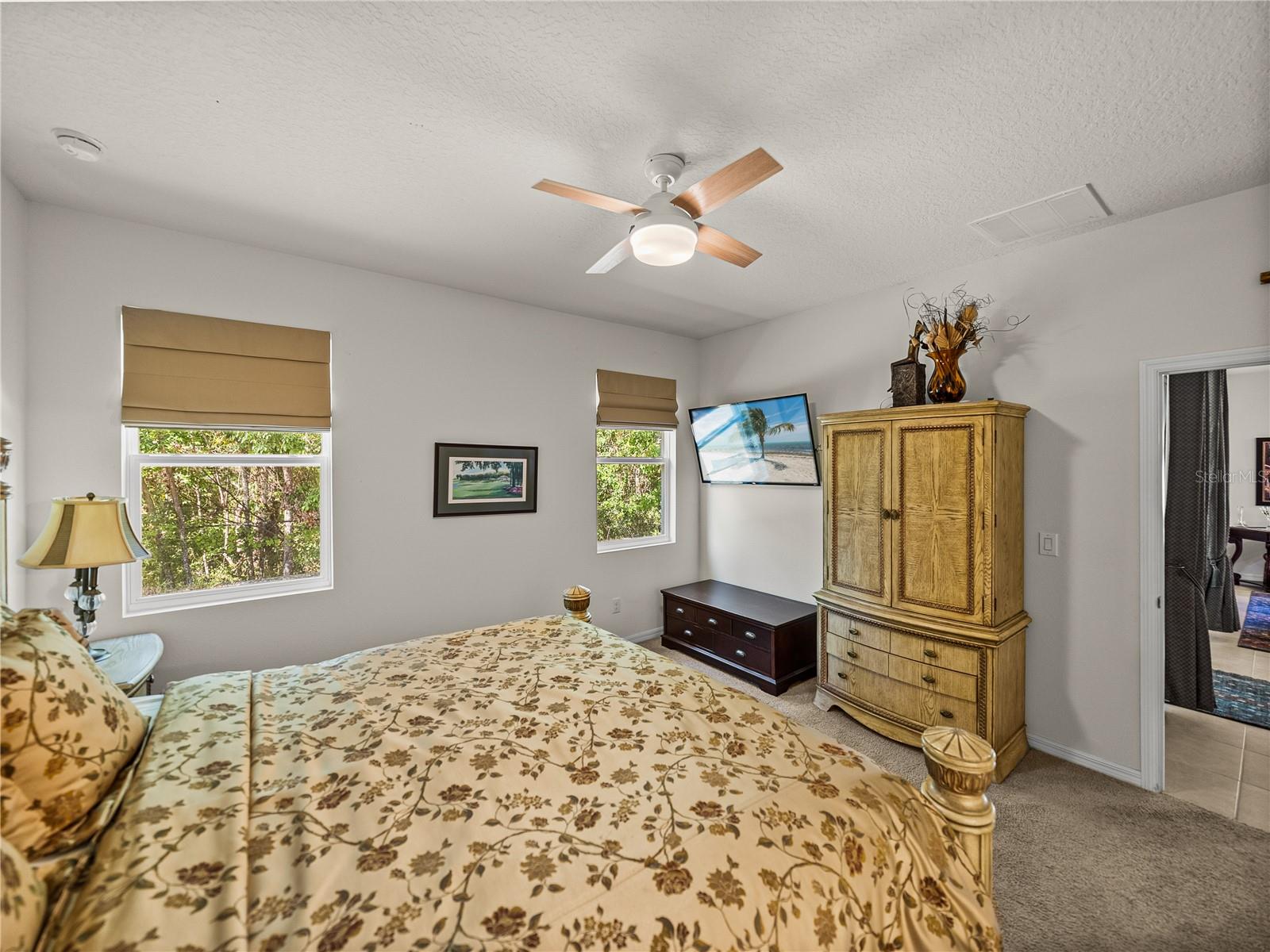 Nestled in Eastpointe, a privately gated section of Lake Jovita, this charming 3 bedroom, 2 bath, 2 car garage home offers a peaceful cul-de-sac setting with a wooded backdrop and no rear neighbors. The beautifully landscaped exterior and covered front entryway provide a welcoming first impression. Inside, an open and inviting floor plan unfolds with streaming natural light and easy-to-maintain tile flooring throughout the main living areas. The spacious living room flows seamlessly into the dining area, centrally located kitchen, and out to the screened lanai through sliding glass doors- creating an effortless space for daily living and entertaining. The kitchen is thoughtfully designed with granite countertops, a central island with breakfast bar seating, recessed lighting, a 4-piece stainless steel appliance package, and generous pantry storage. Nicely tucked away from the secondary bedrooms, the primary suite features carpeting, an ensuite bathroom with dual sinks, separate water closet, and a glass-enclosed walk-in shower.It is nicely outfitted with a spacious walk-in closet. Bedrooms 2 and 3 are split and are situated near the front of the home for added privacy and share the second full bathroom, which includes a tub/shower combo. The laundry room has extra shelving and is conveniently located near the garage and secondary bedrooms. Outdoors, unwind on the covered, screened lanai complete with dual ceiling fans and peaceful views of the lush wooded view beyond. This space is ideal for enjoying your morning coffee or easy evening relaxation. Enjoy the lifestyle, luxury, and security of Lake Jovita, a premier gated community offering two championship golf courses, tennis courts, a fitness center, scenic walking trails, a vibrant clubhouse, pickleball courts, a playground, a dog park, and more! Schedule your private showing today!