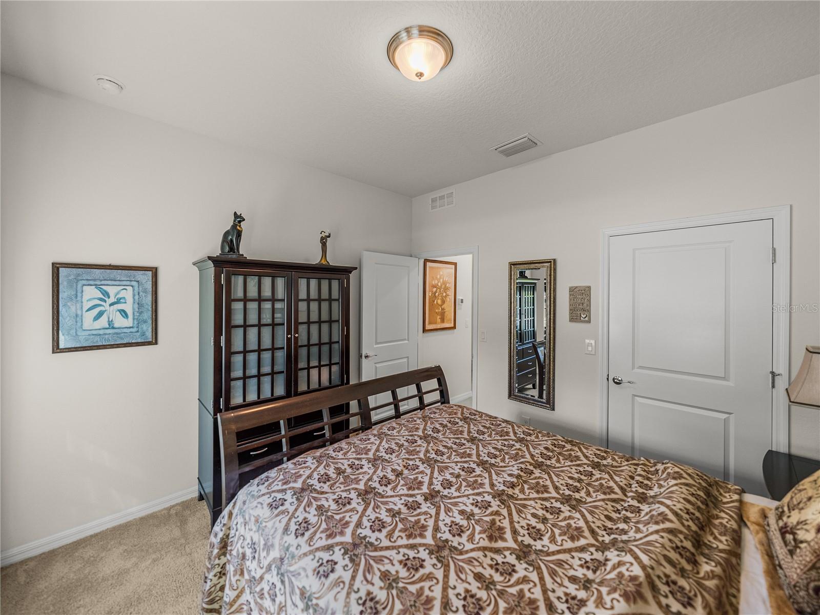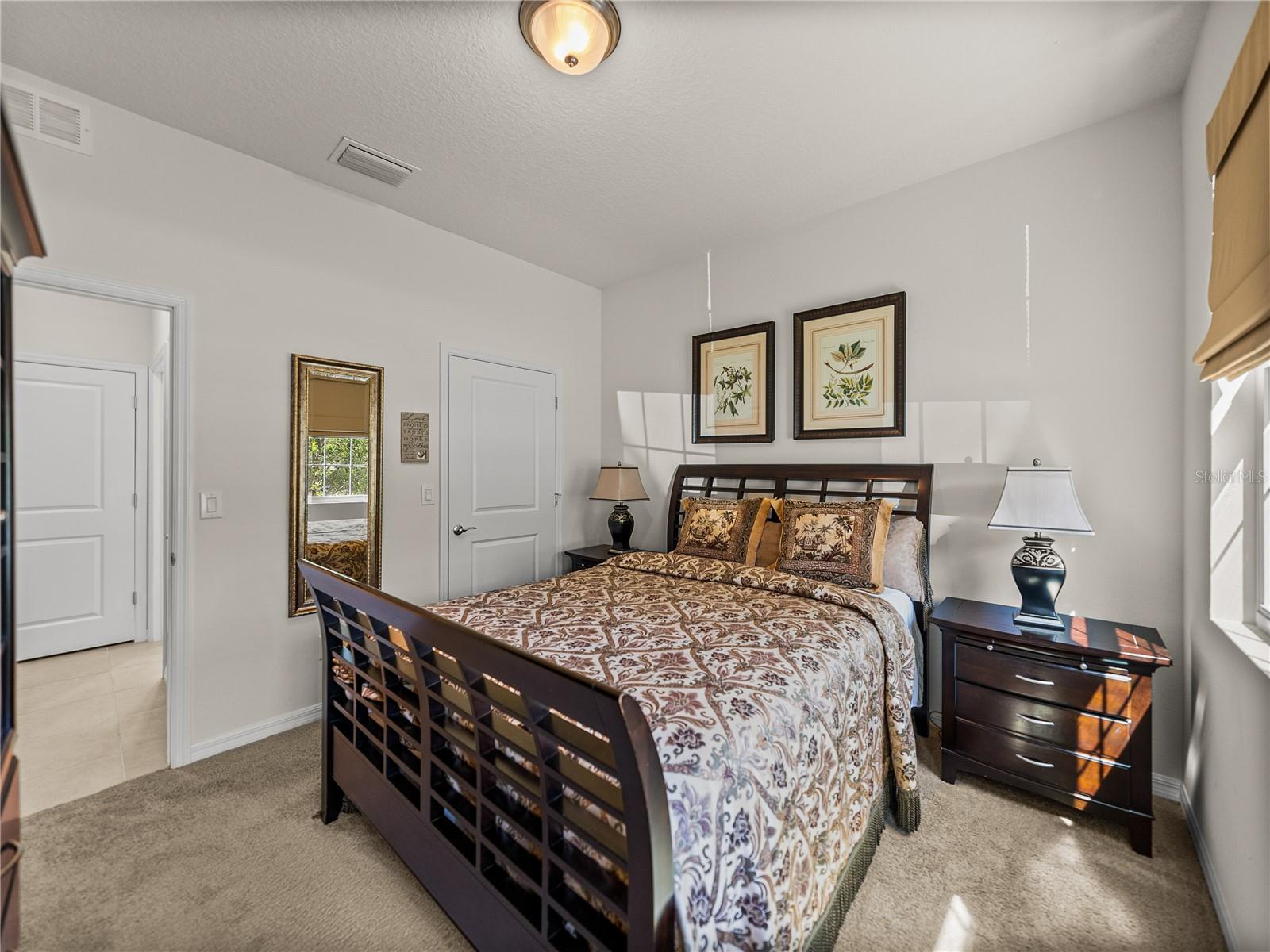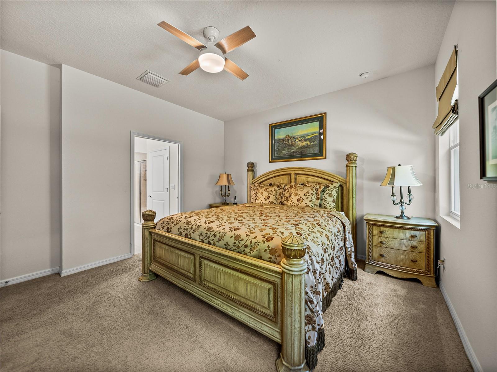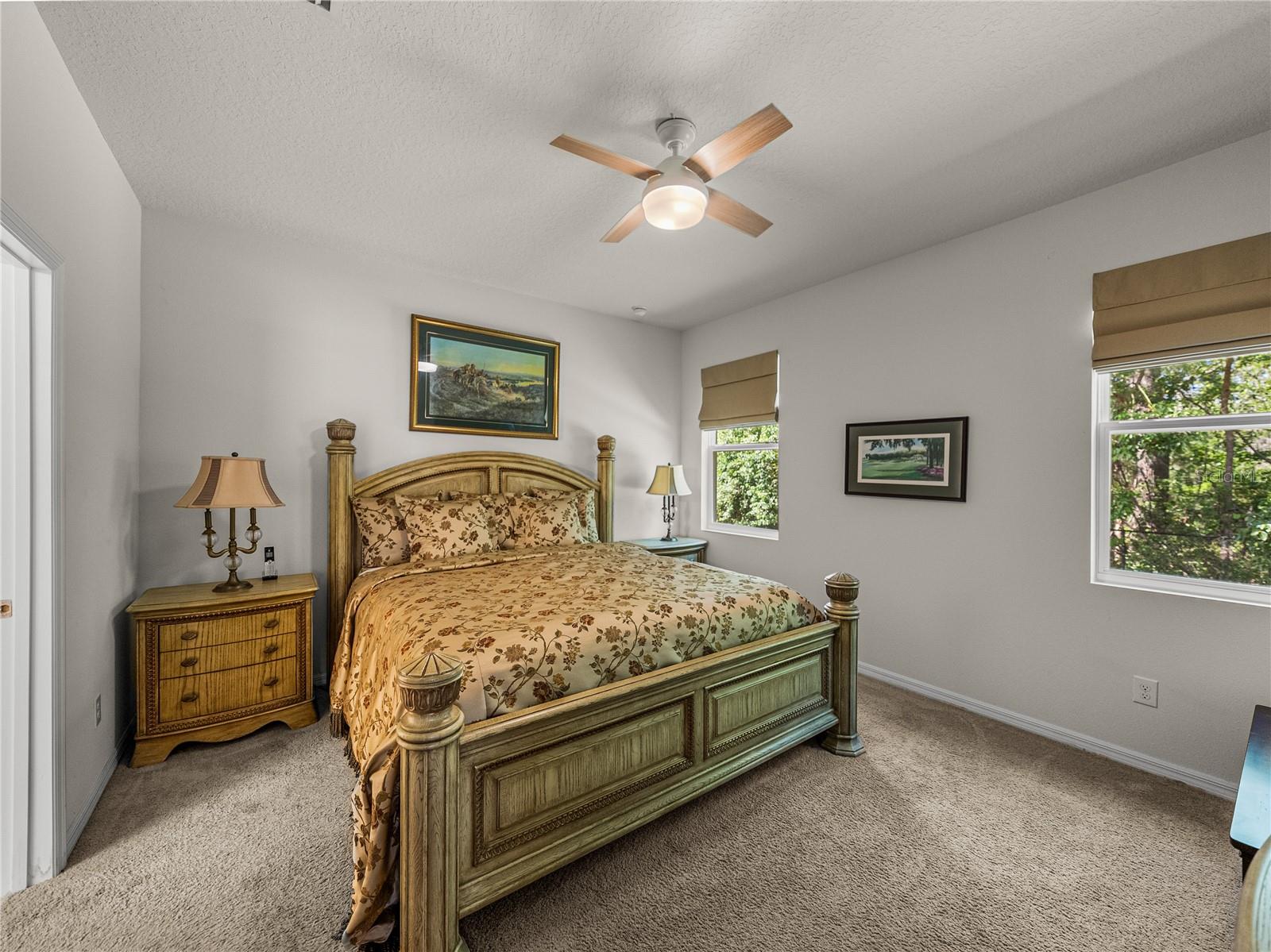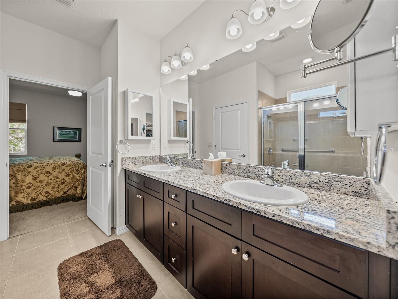 Nestled in Eastpointe, a privately gated section of Lake Jovita, this charming 3 bedroom, 2 bath, 2 car garage home offers a peaceful cul-de-sac setting with a wooded backdrop and no rear neighbors. The beautifully landscaped exterior and covered front entryway provide a welcoming first impression. Inside, an open and inviting floor plan unfolds with streaming natural light and easy-to-maintain tile flooring throughout the main living areas. The spacious living room flows seamlessly into the dining area, centrally located kitchen, and out to the screened lanai through sliding glass doors- creating an effortless space for daily living and entertaining. The kitchen is thoughtfully designed with granite countertops, a central island with breakfast bar seating, recessed lighting, a 4-piece stainless steel appliance package, and generous pantry storage. Nicely tucked away from the secondary bedrooms, the primary suite features carpeting, an ensuite bathroom with dual sinks, separate water closet, and a glass-enclosed walk-in shower.It is nicely outfitted with a spacious walk-in closet. Bedrooms 2 and 3 are split and are situated near the front of the home for added privacy and share the second full bathroom, which includes a tub/shower combo. The laundry room has extra shelving and is conveniently located near the garage and secondary bedrooms. Outdoors, unwind on the covered, screened lanai complete with dual ceiling fans and peaceful views of the lush wooded view beyond. This space is ideal for enjoying your morning coffee or easy evening relaxation. Enjoy the lifestyle, luxury, and security of Lake Jovita, a premier gated community offering two championship golf courses, tennis courts, a fitness center, scenic walking trails, a vibrant clubhouse, pickleball courts, a playground, a dog park, and more! Schedule your private showing today!