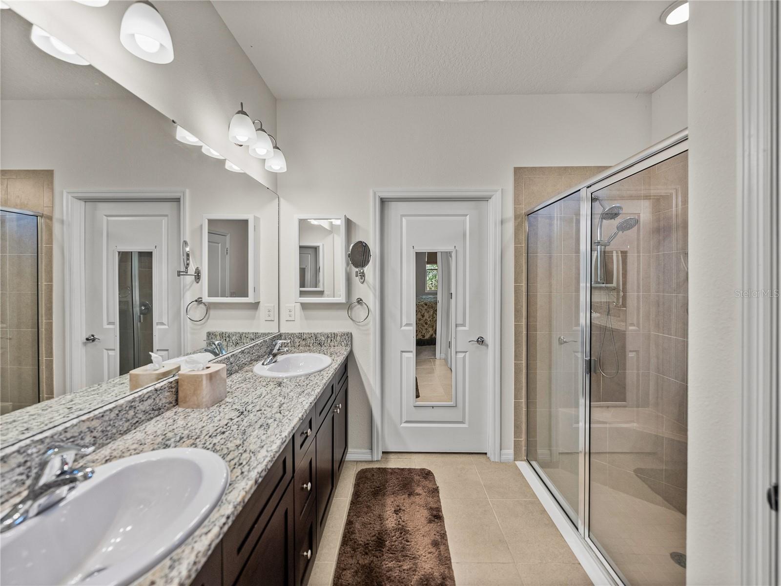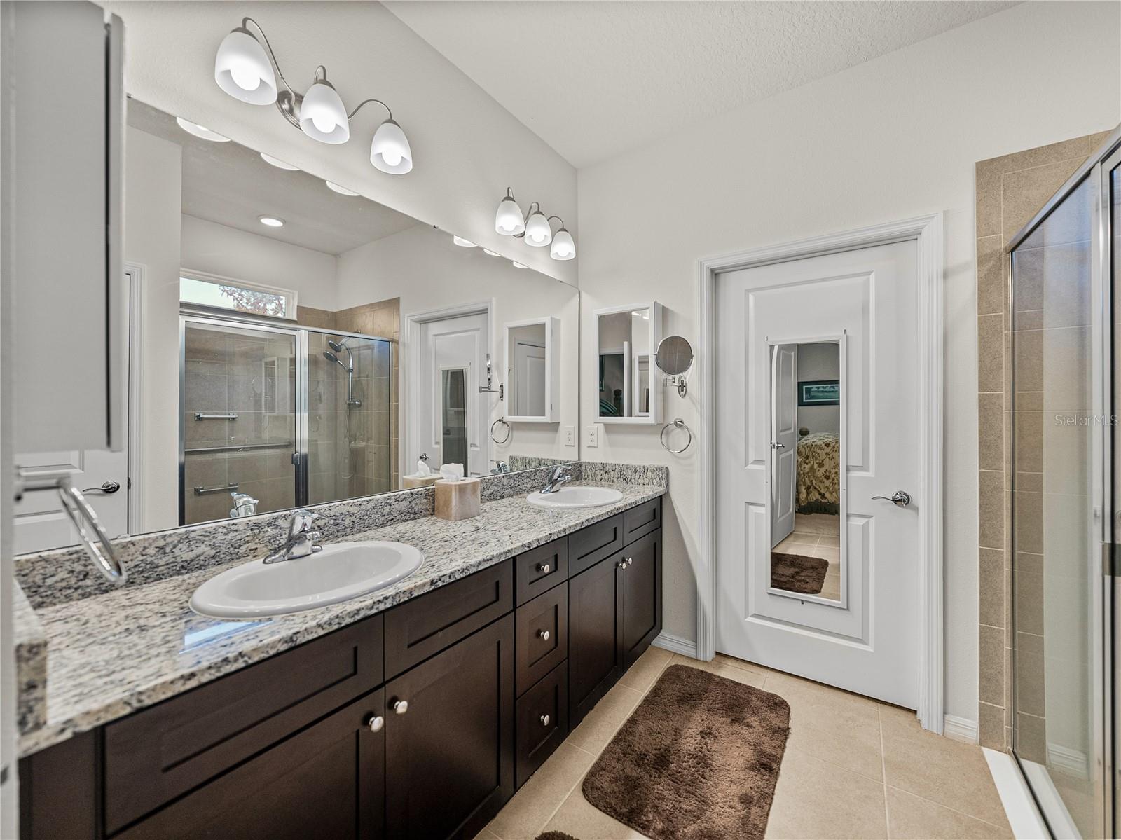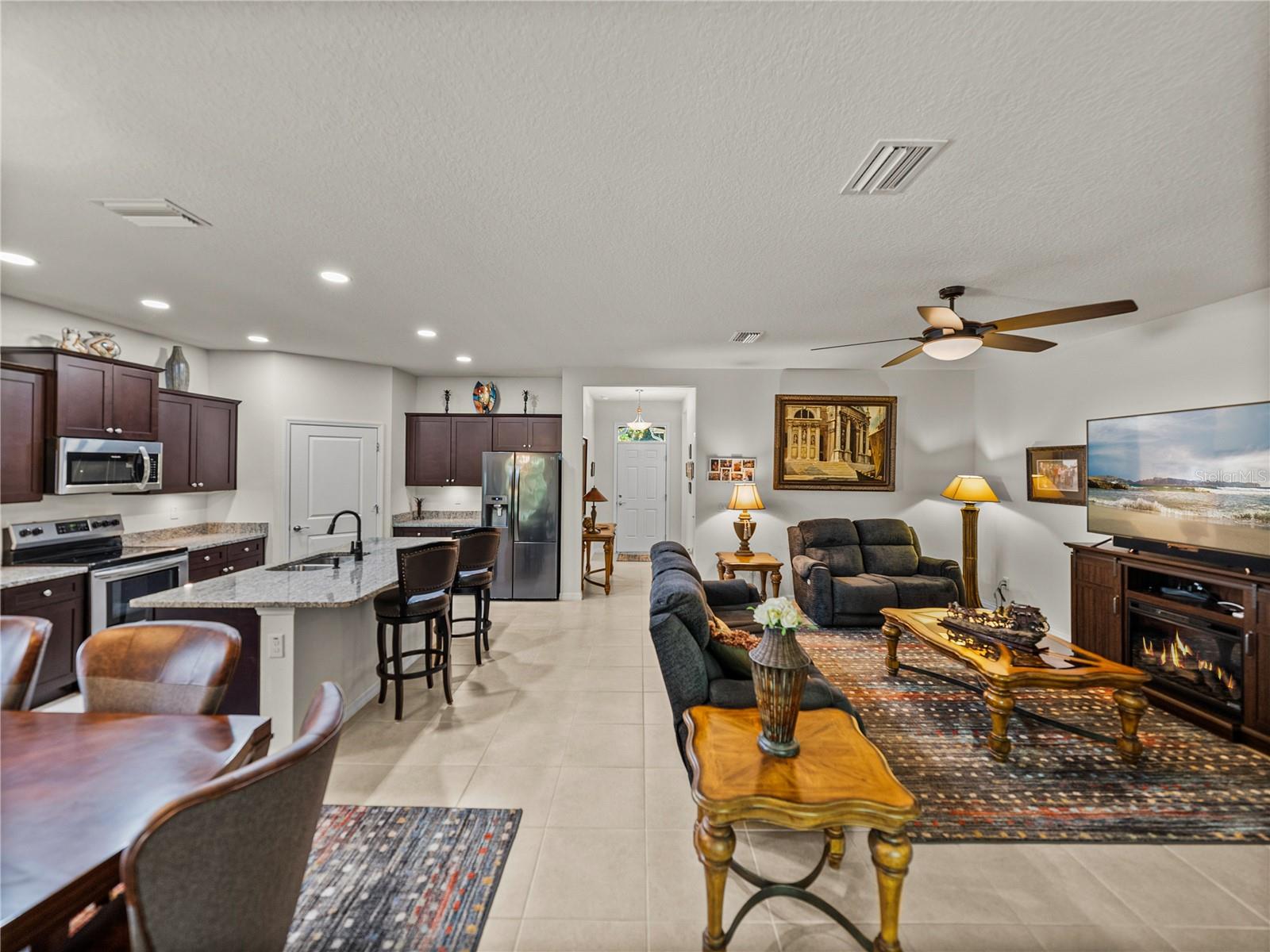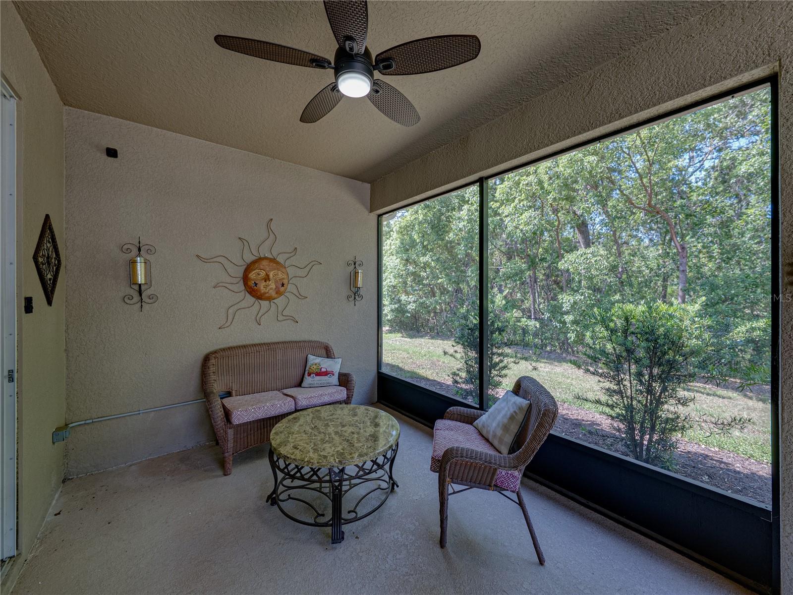 Nestled in Eastpointe, a privately gated section of Lake Jovita, this charming 3 bedroom, 2 bath, 2 car garage home offers a peaceful cul-de-sac setting with a wooded backdrop and no rear neighbors. The beautifully landscaped exterior and covered front entryway provide a welcoming first impression. Inside, an open and inviting floor plan unfolds with streaming natural light and easy-to-maintain tile flooring throughout the main living areas. The spacious living room flows seamlessly into the dining area, centrally located kitchen, and out to the screened lanai through sliding glass doors- creating an effortless space for daily living and entertaining. The kitchen is thoughtfully designed with granite countertops, a central island with breakfast bar seating, recessed lighting, a 4-piece stainless steel appliance package, and generous pantry storage. Nicely tucked away from the secondary bedrooms, the primary suite features carpeting, an ensuite bathroom with dual sinks, separate water closet, and a glass-enclosed walk-in shower.It is nicely outfitted with a spacious walk-in closet. Bedrooms 2 and 3 are split and are situated near the front of the home for added privacy and share the second full bathroom, which includes a tub/shower combo. The laundry room has extra shelving and is conveniently located near the garage and secondary bedrooms. Outdoors, unwind on the covered, screened lanai complete with dual ceiling fans and peaceful views of the lush wooded view beyond. This space is ideal for enjoying your morning coffee or easy evening relaxation. Enjoy the lifestyle, luxury, and security of Lake Jovita, a premier gated community offering two championship golf courses, tennis courts, a fitness center, scenic walking trails, a vibrant clubhouse, pickleball courts, a playground, a dog park, and more! Schedule your private showing today!