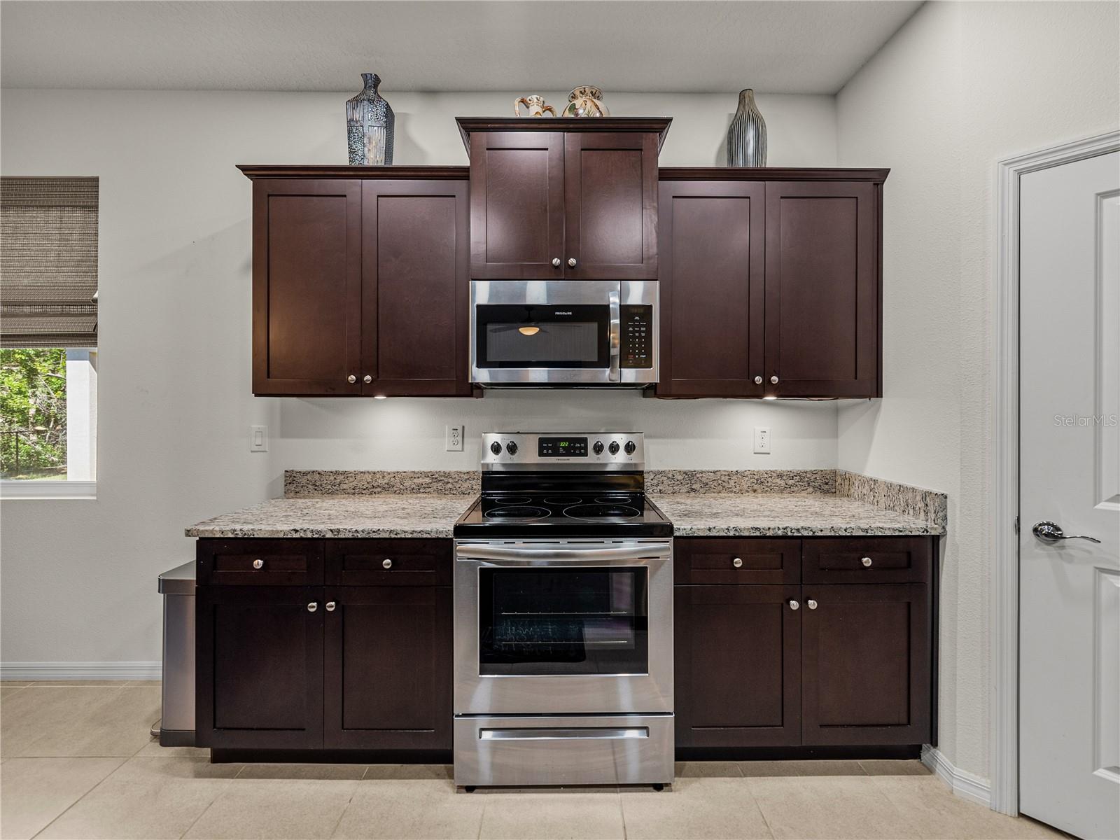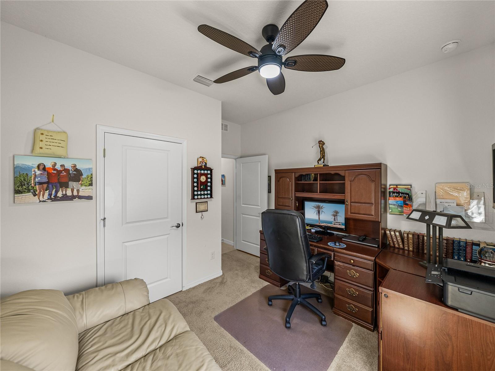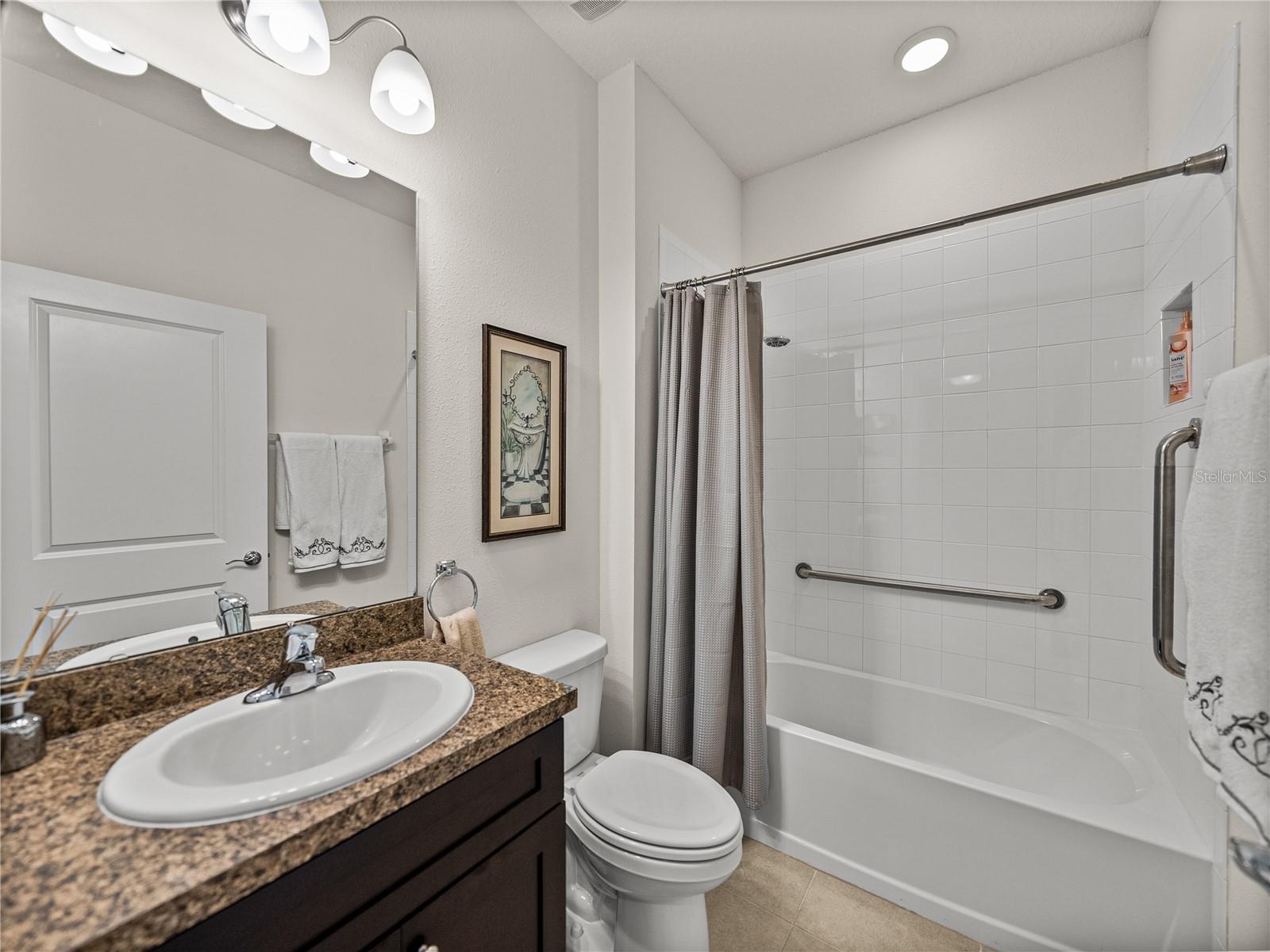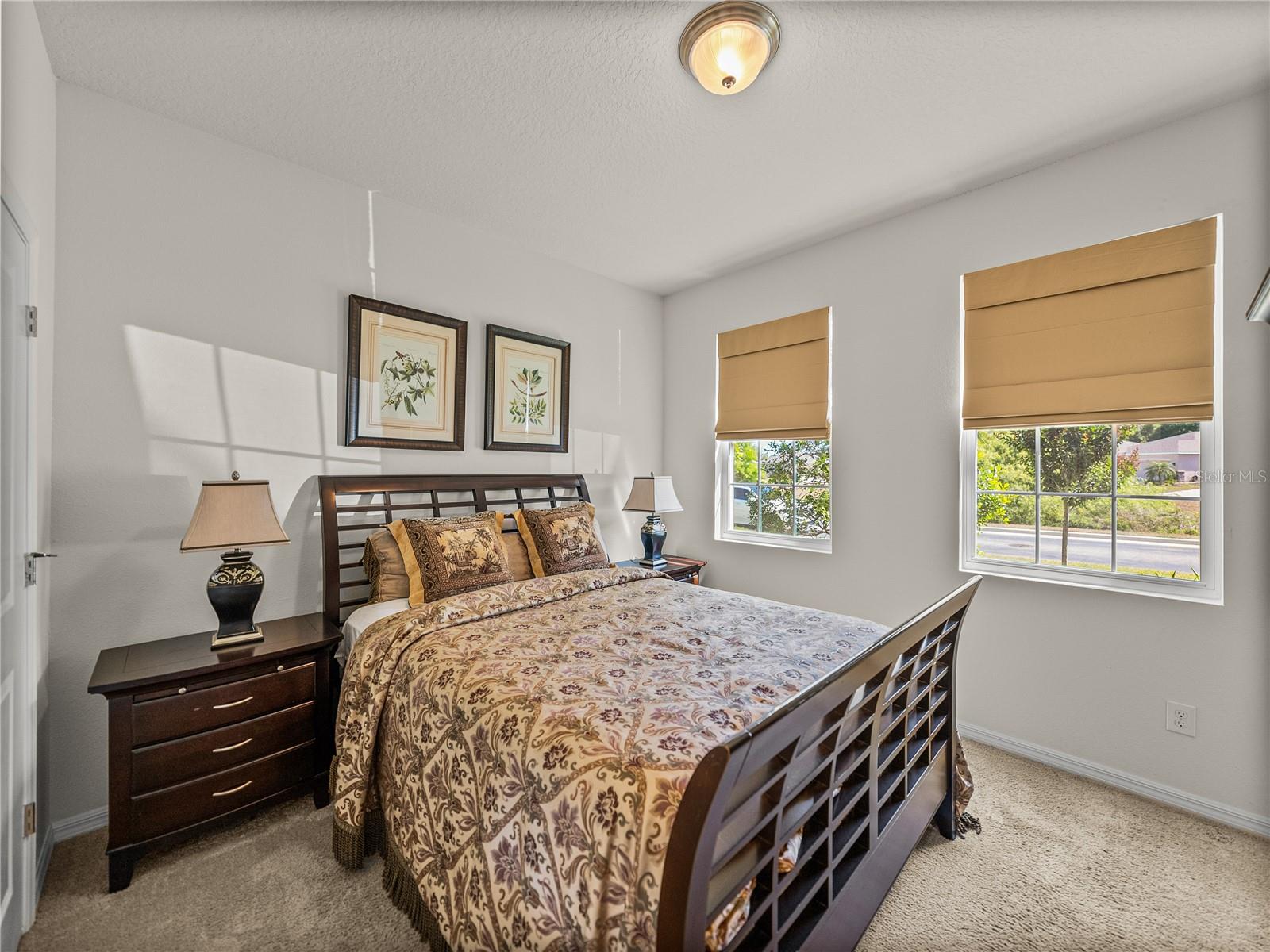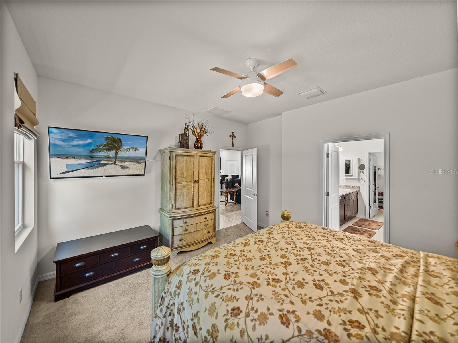 Nestled in Eastpointe, a privately gated section of Lake Jovita, this charming 3 bedroom, 2 bath, 2 car garage home offers a peaceful cul-de-sac setting with a wooded backdrop and no rear neighbors. The beautifully landscaped exterior and covered front entryway provide a welcoming first impression. Inside, an open and inviting floor plan unfolds with streaming natural light and easy-to-maintain tile flooring throughout the main living areas. The spacious living room flows seamlessly into the dining area, centrally located kitchen, and out to the screened lanai through sliding glass doors- creating an effortless space for daily living and entertaining. The kitchen is thoughtfully designed with granite countertops, a central island with breakfast bar seating, recessed lighting, a 4-piece stainless steel appliance package, and generous pantry storage. Nicely tucked away from the secondary bedrooms, the primary suite features carpeting, an ensuite bathroom with dual sinks, separate water closet, and a glass-enclosed walk-in shower.It is nicely outfitted with a spacious walk-in closet. Bedrooms 2 and 3 are split and are situated near the front of the home for added privacy and share the second full bathroom, which includes a tub/shower combo. The laundry room has extra shelving and is conveniently located near the garage and secondary bedrooms. Outdoors, unwind on the covered, screened lanai complete with dual ceiling fans and peaceful views of the lush wooded view beyond. This space is ideal for enjoying your morning coffee or easy evening relaxation. Enjoy the lifestyle, luxury, and security of Lake Jovita, a premier gated community offering two championship golf courses, tennis courts, a fitness center, scenic walking trails, a vibrant clubhouse, pickleball courts, a playground, a dog park, and more! Schedule your private showing today!